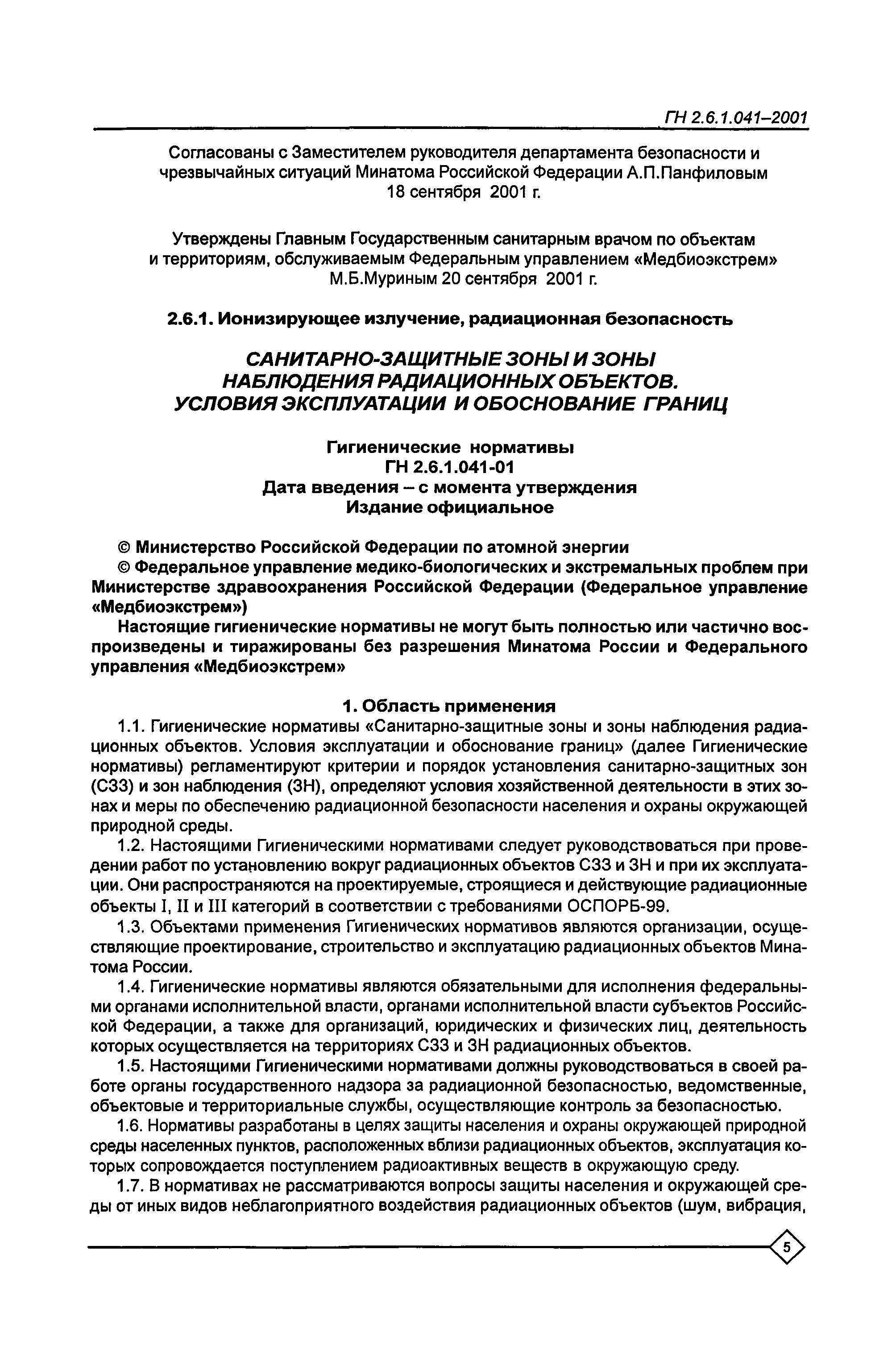 Оглавление:Санитарно-защитные зоны и зоны наблюдения радиационных объектов. Условия эксплуатации и обоснование границ. Гигиенические нормативы ГН 2.6.1.041—2001