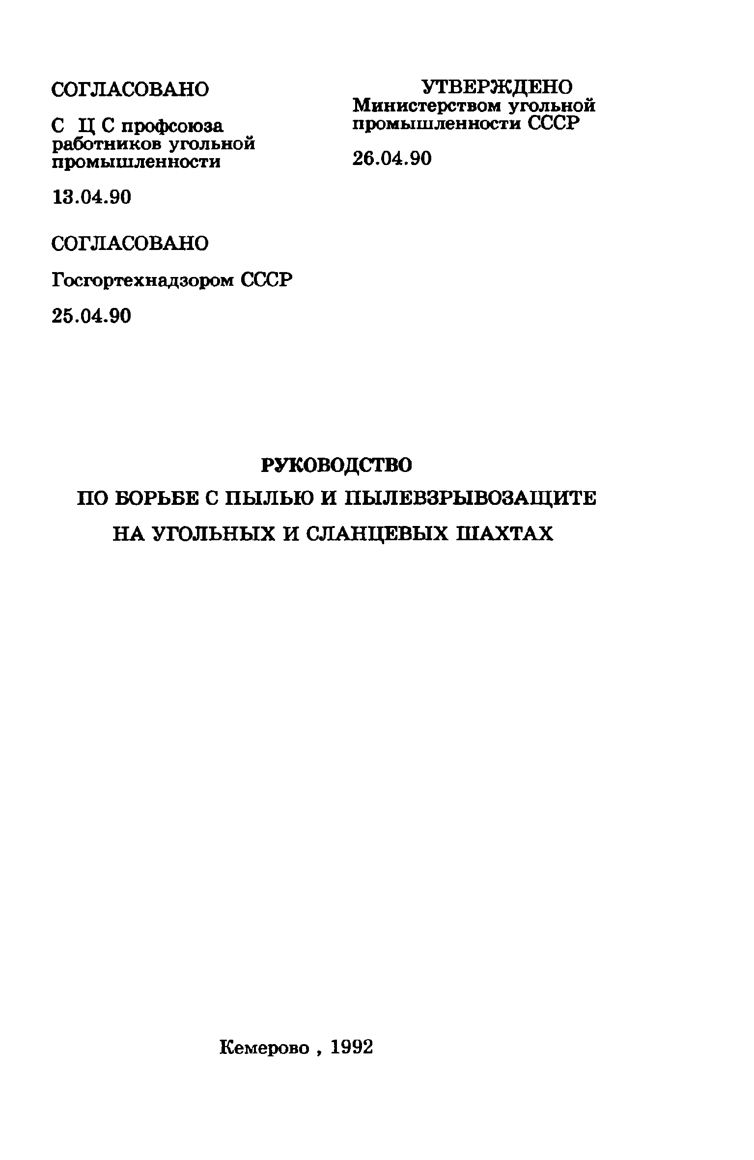 | Принят: | 25.04.1990 Госгортехнадзор СССР (USSR Gosgortekhnadzor ) 13.04.1990 ЦК профсоюза работников угольной промышленности |