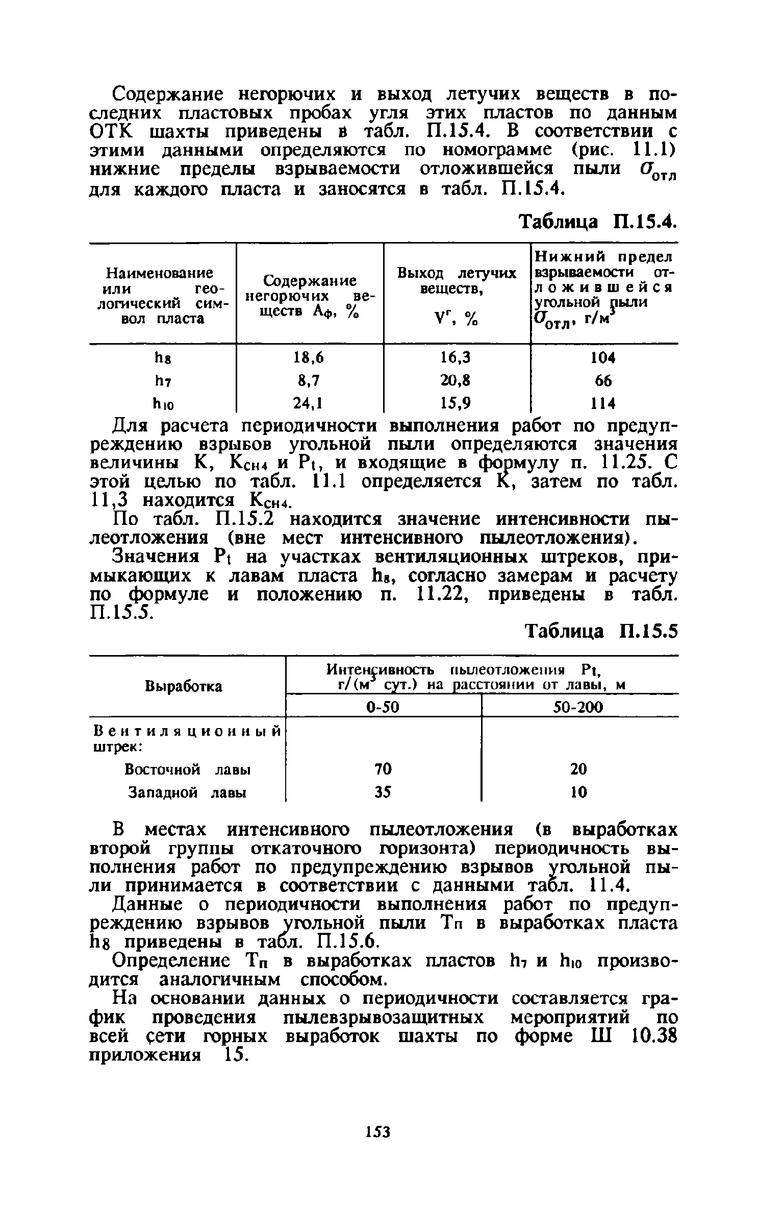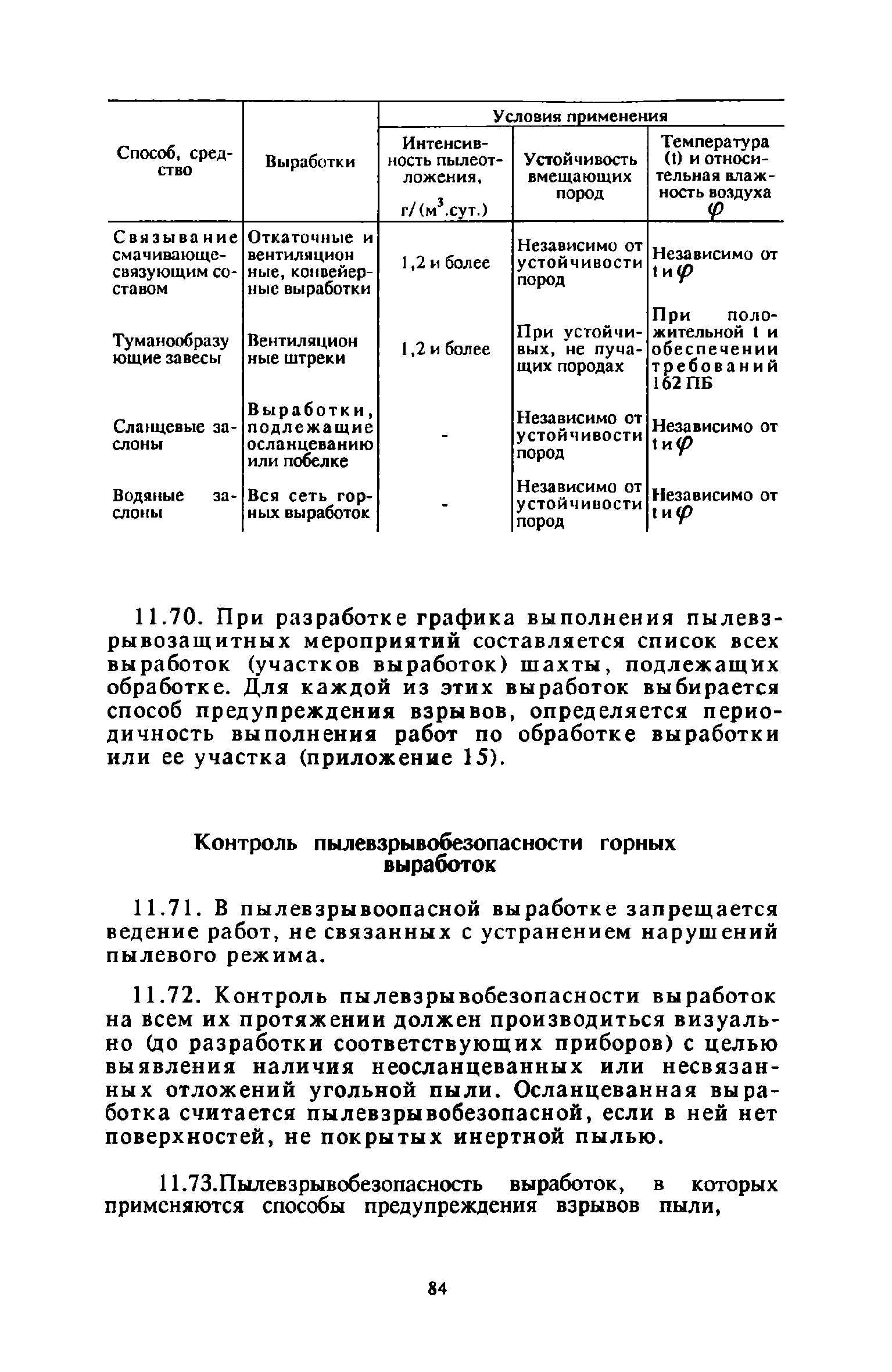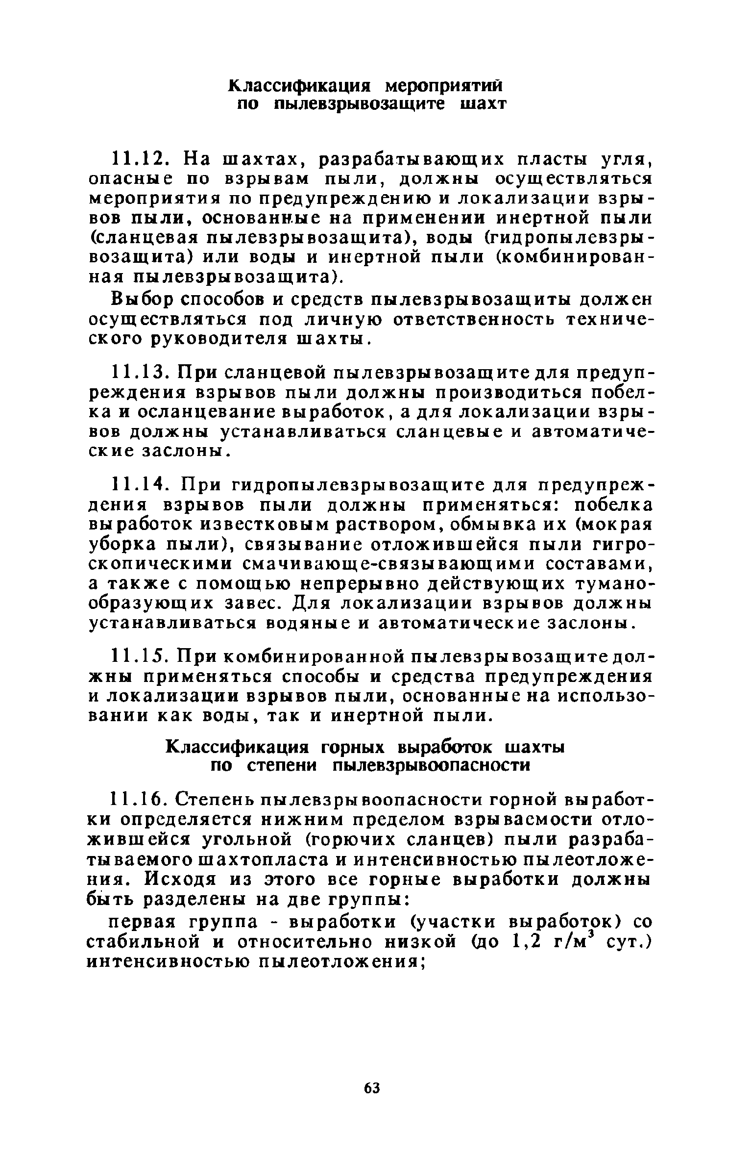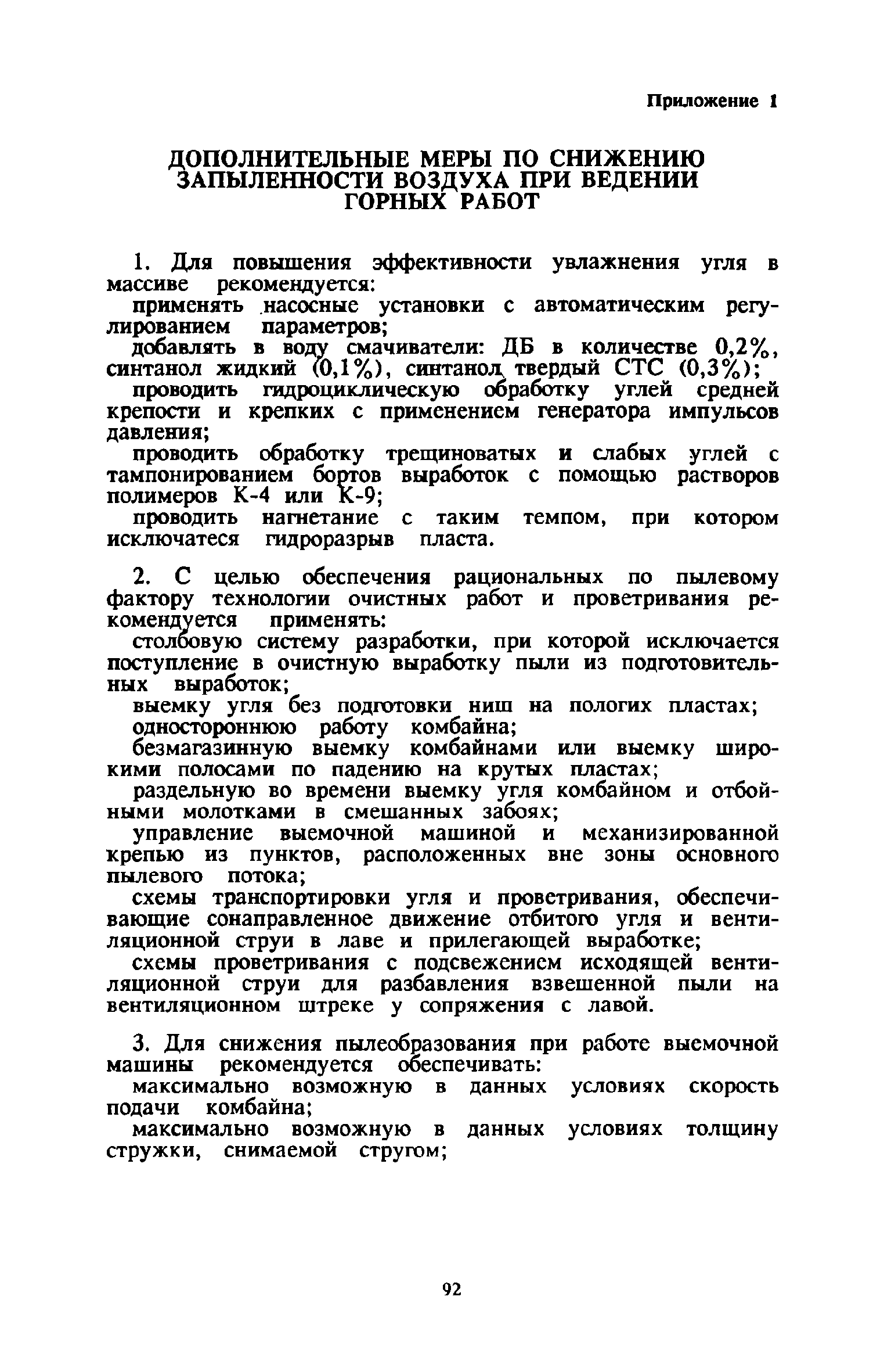| Оглавление: | 1 Общие положения 2 Предварительное увлажнение угольных пластов Общие положения Способы и схемы нагнетания жидкости Нагнетание жидкости из подготовительных выработок Нагнетание жидкости из очистной выработки Организация работ и техника безопасности 3 Борьба с пылью в очистных выработках Общие положения Борьба с пылью при работе очистных комбайнов на пологих пластах Борьба с пылью при работе стругов и агрегатов на пологих пластах Борьба с пылью в очистных выработках тонких крутых пластов Борьба с пылью при выемке мощных крутых пластов. Борьба с пылью при буровзрывной выемке угля Борьба с пылью при закладочных работах 4 Борьба с пылью в подготовительных выработках Общие положения Борьба с пылью при работе проходческих комбайнов Борьба с пылью при буровых работах Борьба с пылью при взрывных работах Обеспыливание воздуха при погрузочных работах Борьба с пылью при проходке стволов шахт 5 Борьба с пылью в транспортных и околоствольных выработках Борьба с пылью при транспортировании горной массы Борьба с пылью при работе опрокидывателей и загрузочных устройств Обеспыливание входящих и исходящих вентиляционных потоков 6 Дополнительные требования по борьбе с пылью в угольных шахтах Крайнего Севера 7 Дополнительные требования по борьбе с пылью в сланцевых шахтах 8 Обеспыливание воздуха на поверхностных комплексах шахт 9 Водоснабжение горных выработок и водоподготовка 10 Организация работ по борьбе с пылью и контроль качества применяемых мероприятий на шахтах Организация работ Контроль качества применямых мероприятий 11 Пылевзрывозащита угольных и сланцевых шахт Общие положения Определение взрывчатых свойств отложившейся угольной пыли Классификация горных выработок шахты по степени пылевзрывоопасности Определение интенсивности пылеотложения Определение периодичности выполнения работ по предупреждению взрывов угольной пыли Осланцевание горных выработок Предупреждение взрывов угольной пыли способами, основанными на применении воды Средства локализации взрывов угольной пыли Сланцевые заслоны Водяные заслоны Рассредоточенные водяные заслоны Пылевзрывозащита шахт, разрабатывающих горючие сланцы Организация работ Контроль пылевзрывобезопасности горных выработок Меры безопасности при выполнении работ по пылевзрывозащите шахты Приложение 1. Дополнительные меры по снижению запыленности воздуха при ведении горных работ Приложение 2. Оборудование и материалы для предварительного увлажнения угольных пластов Приложение 3. Параметры применения технологических схем предварительного увлажнения угольных пластов Приложение 4. Журнал контроля и учета по нагнетанию воды в пласт Приложение 5. Ориентировочные величины площадей неплотностей в укрытиях оборудования Приложение 6. Рекомендуемые параметры пылеподавления основных производственных процессов Приложение 7. Программа обучения лиц, производящих замеры запыленности воздуха Приложение 8. График выполнения пылевзрывозащитных мероприятий Приложение 9. Акт-извещение периодического контроля пылевзрывобезопасности горных выработок и запыленности воздуха Приложение 10. Определение свободной двуокиси кремния в витающей пыли угольных шахт Приложение 11. Журнал учета запыленности воздуха и содержания в пыли свободной двуокиси кремния в го