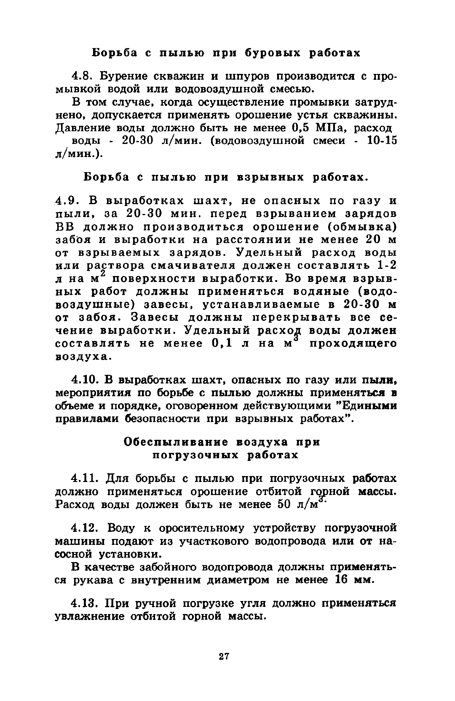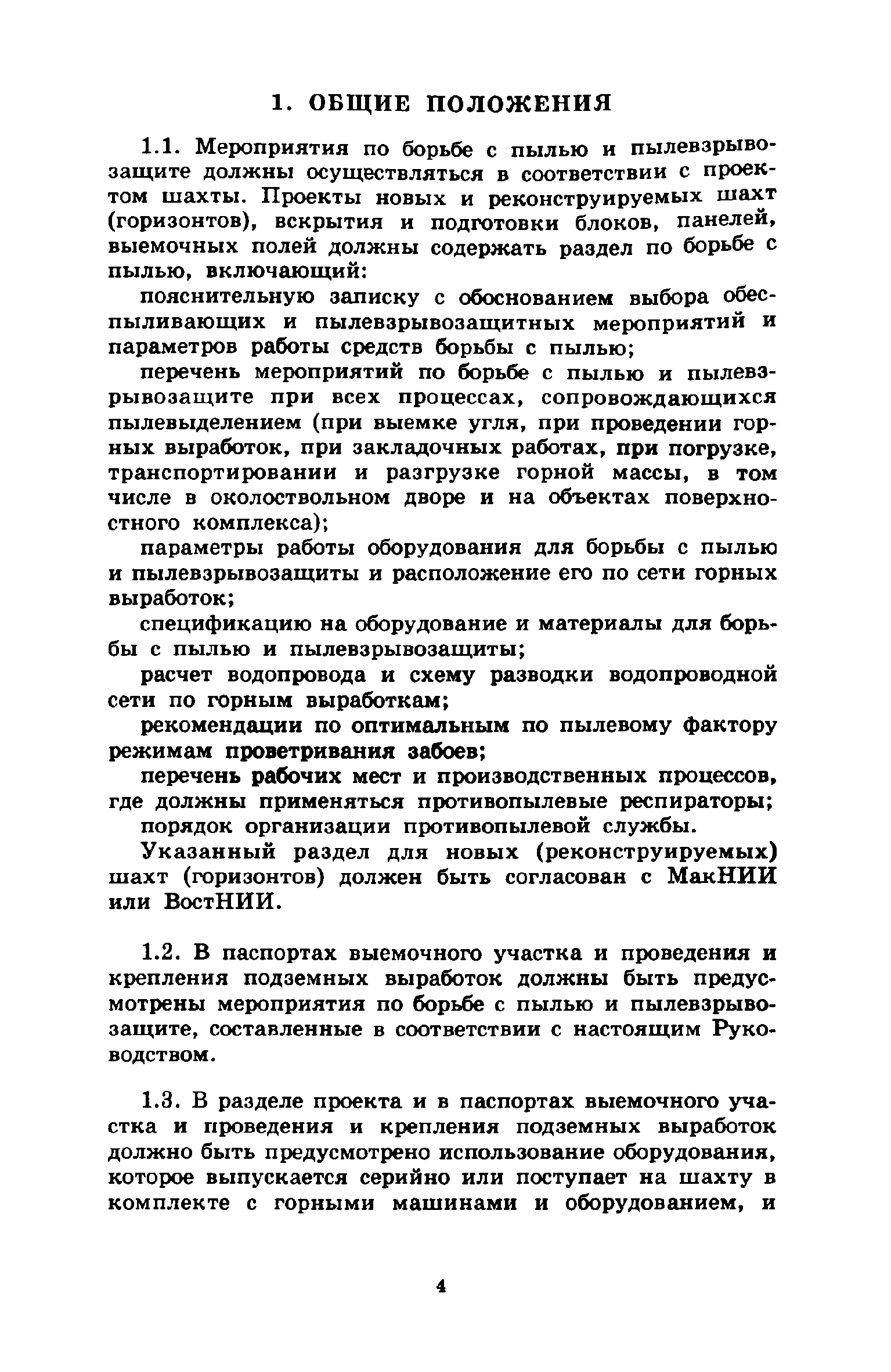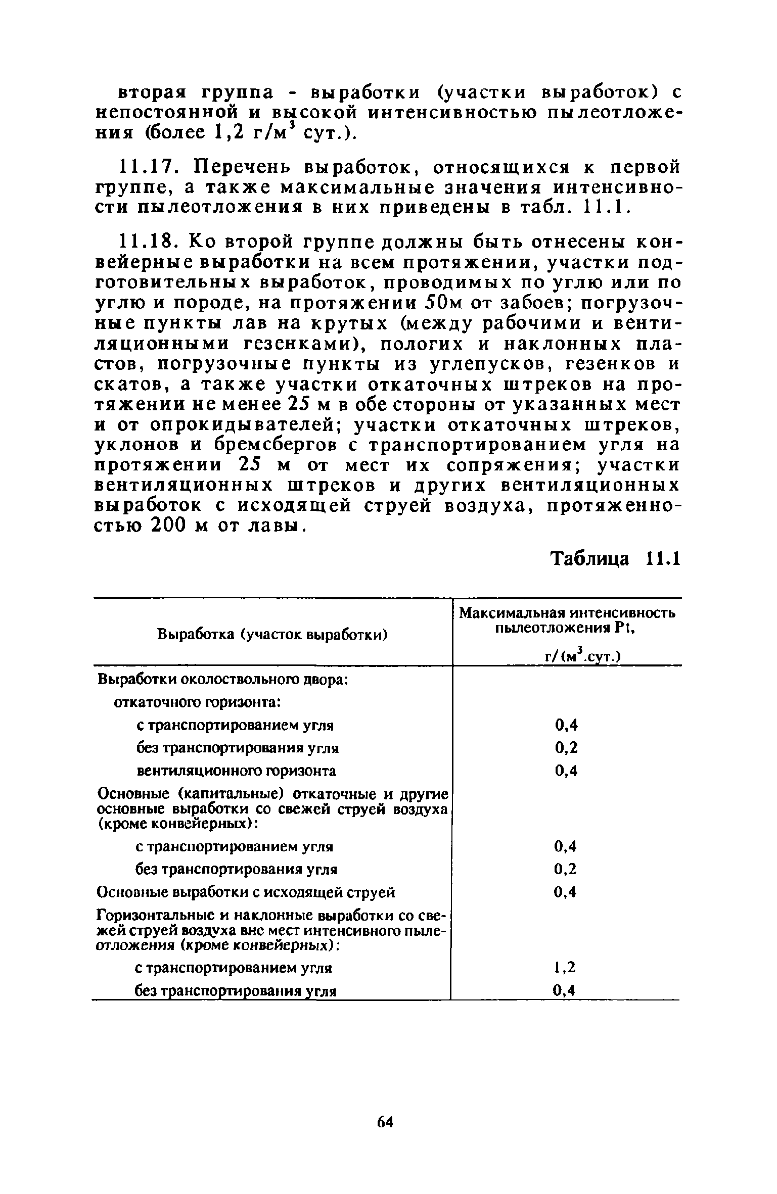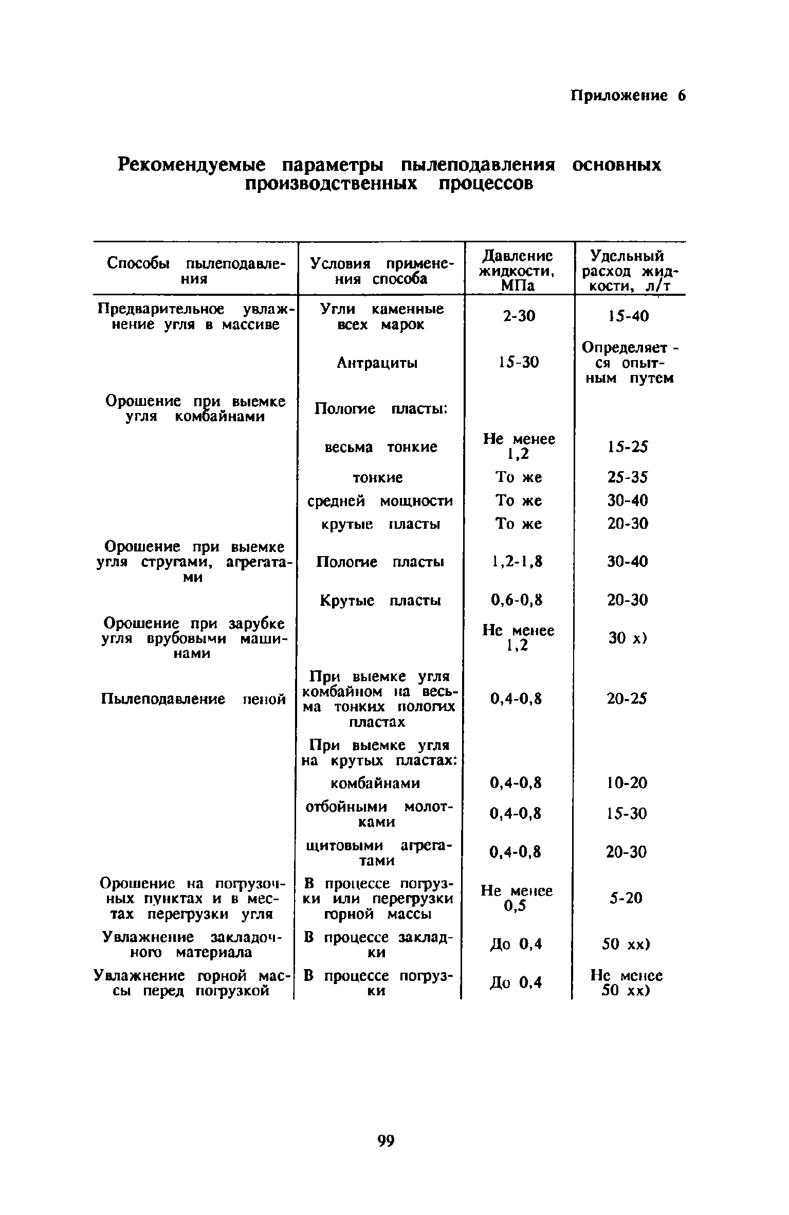 | Оглавление: | 1 Общие положения 2 Предварительное увлажнение угольных пластов Общие положения Способы и схемы нагнетания жидкости Нагнетание жидкости из подготовительных выработок Нагнетание жидкости из очистной выработки Организация работ и техника безопасности 3 Борьба с пылью в очистных выработках Общие положения Борьба с пылью при работе очистных комбайнов на пологих пластах Борьба с пылью при работе стругов и агрегатов на пологих пластах Борьба с пылью в очистных выработках тонких крутых пластов Борьба с пылью при выемке мощных крутых пластов. Борьба с пылью при буровзрывной выемке угля Борьба с пылью при закладочных работах 4 Борьба с пылью в подготовительных выработках Общие положения Борьба с пылью при работе проходческих комбайнов Борьба с пылью при буровых работах Борьба с пылью при взрывных работах Обеспыливание воздуха при погрузочных работах Борьба с пылью при проходке стволов шахт 5 Борьба с пылью в транспортных и околоствольных выработках Борьба с пылью при транспортировании горной массы Борьба с пылью при работе опрокидывателей и загрузочных устройств Обеспыливание входящих и исходящих вентиляционных потоков 6 Дополнительные требования по борьбе с пылью в угольных шахтах Крайнего Севера 7 Дополнительные требования по борьбе с пылью в сланцевых шахтах 8 Обеспыливание воздуха на поверхностных комплексах шахт 9 Водоснабжение горных выработок и водоподготовка 10 Организация работ по борьбе с пылью и контроль качества применяемых мероприятий на шахтах Организация работ Контроль качества применямых мероприятий 11 Пылевзрывозащита угольных и сланцевых шахт Общие положения Определение взрывчатых свойств отложившейся угольной пыли Классификация горных выработок шахты по степени пылевзрывоопасности Определение интенсивности пылеотложения Определение периодичности выполнения работ по предупреждению взрывов угольной пыли Осланцевание горных выработок Предупреждение взрывов угольной пыли способами, основанными на применении воды Средства локализации взрывов угольной пыли Сланцевые заслоны Водяные заслоны Рассредоточенные водяные заслоны Пылевзрывозащита шахт, разрабатывающих горючие сланцы Организация работ Контроль пылевзрывобезопасности горных выработок Меры безопасности при выполнении работ по пылевзрывозащите шахты Приложение 1. Дополнительные меры по снижению запыленности воздуха при ведении горных работ Приложение 2. Оборудование и материалы для предварительного увлажнения угольных пластов Приложение 3. Параметры применения технологических схем предварительного увлажнения угольных пластов Приложение 4. Журнал контроля и учета по нагнетанию воды в пласт Приложение 5. Ориентировочные величины площадей неплотностей в укрытиях оборудования Приложение 6. Рекомендуемые параметры пылеподавления основных производственных процессов Приложение 7. Программа обучения лиц, производящих замеры запыленности воздуха Приложение 8. График выполнения пылевзрывозащитных мероприятий Приложение 9. Акт-извещение периодического контроля пылевзрывобезопасности горных выработок и запыленности воздуха Приложение 10. Определение свободной двуокиси кремния в витающей пыли угольных шахт Приложение 11. Журнал учета запыленности воздуха и содержания в пыли свободной двуокиси кремния в го