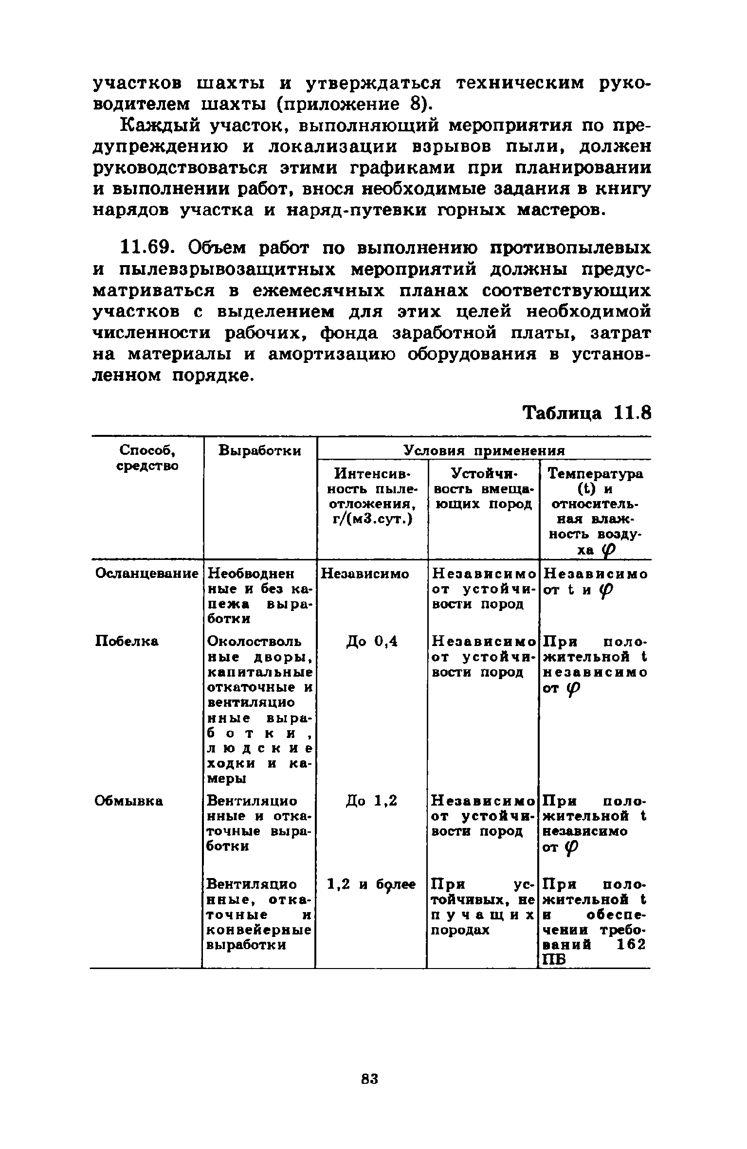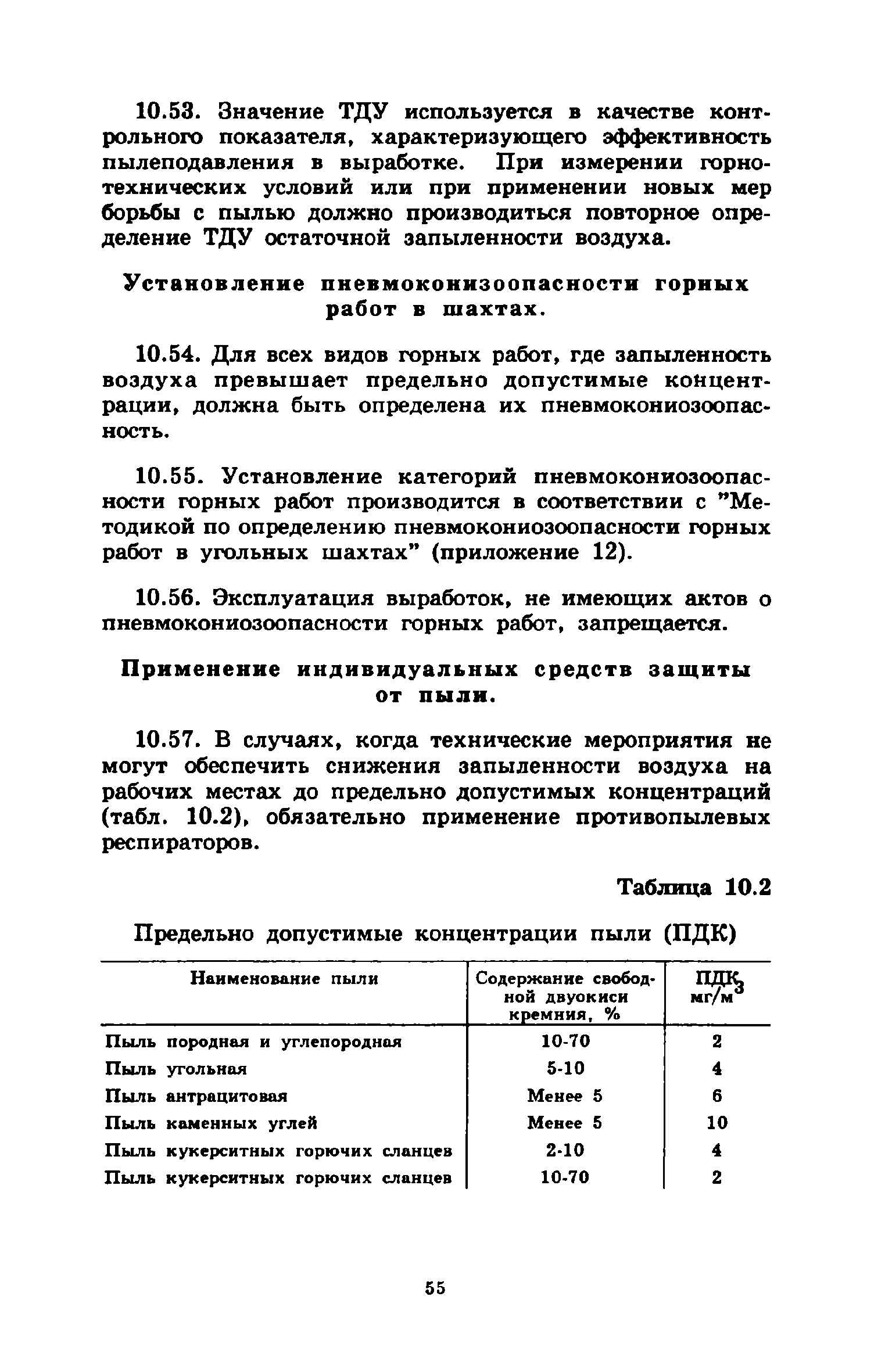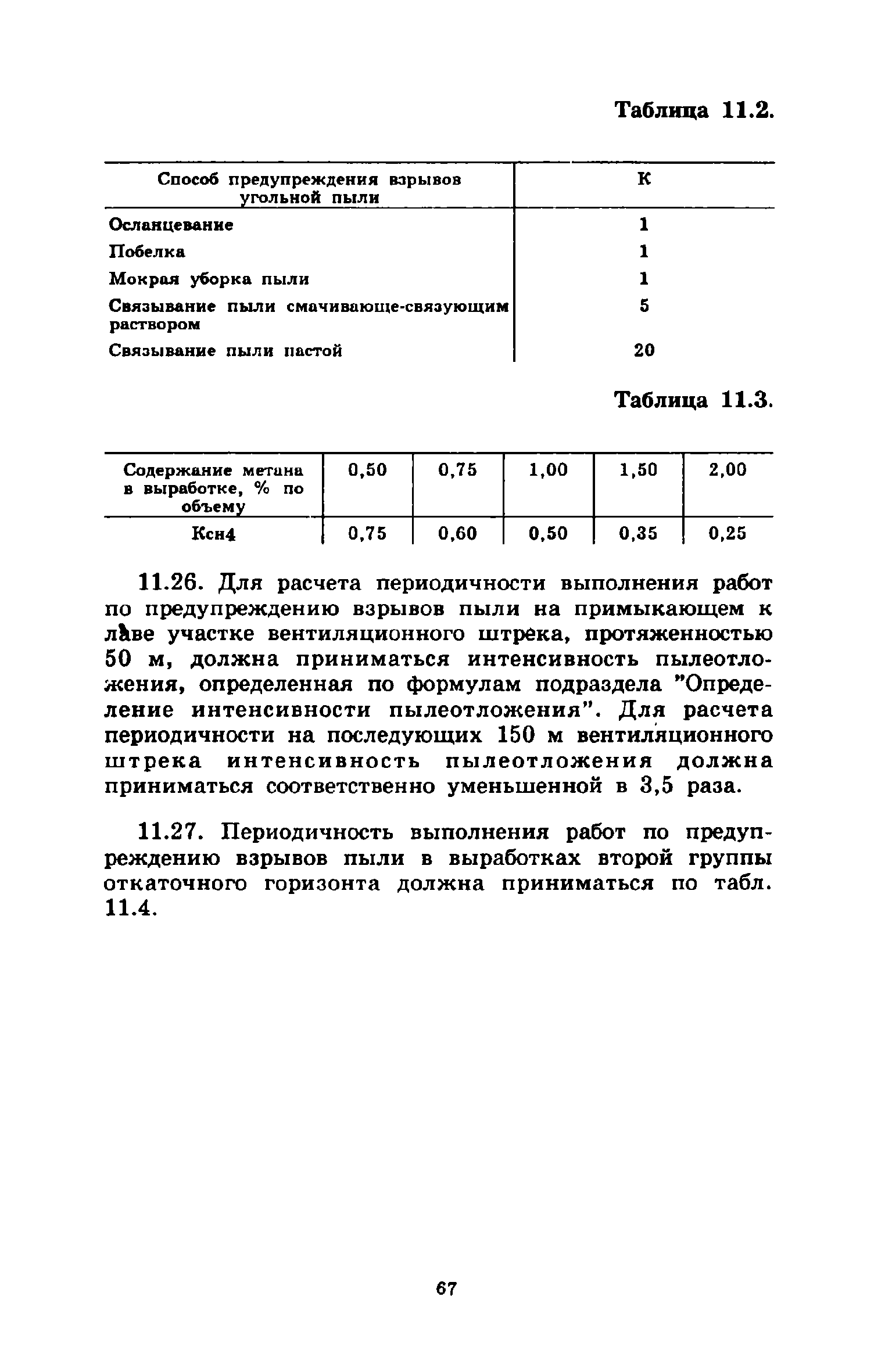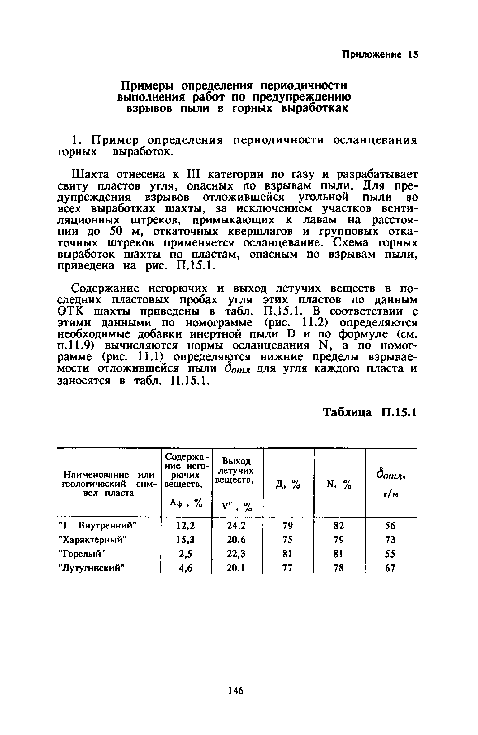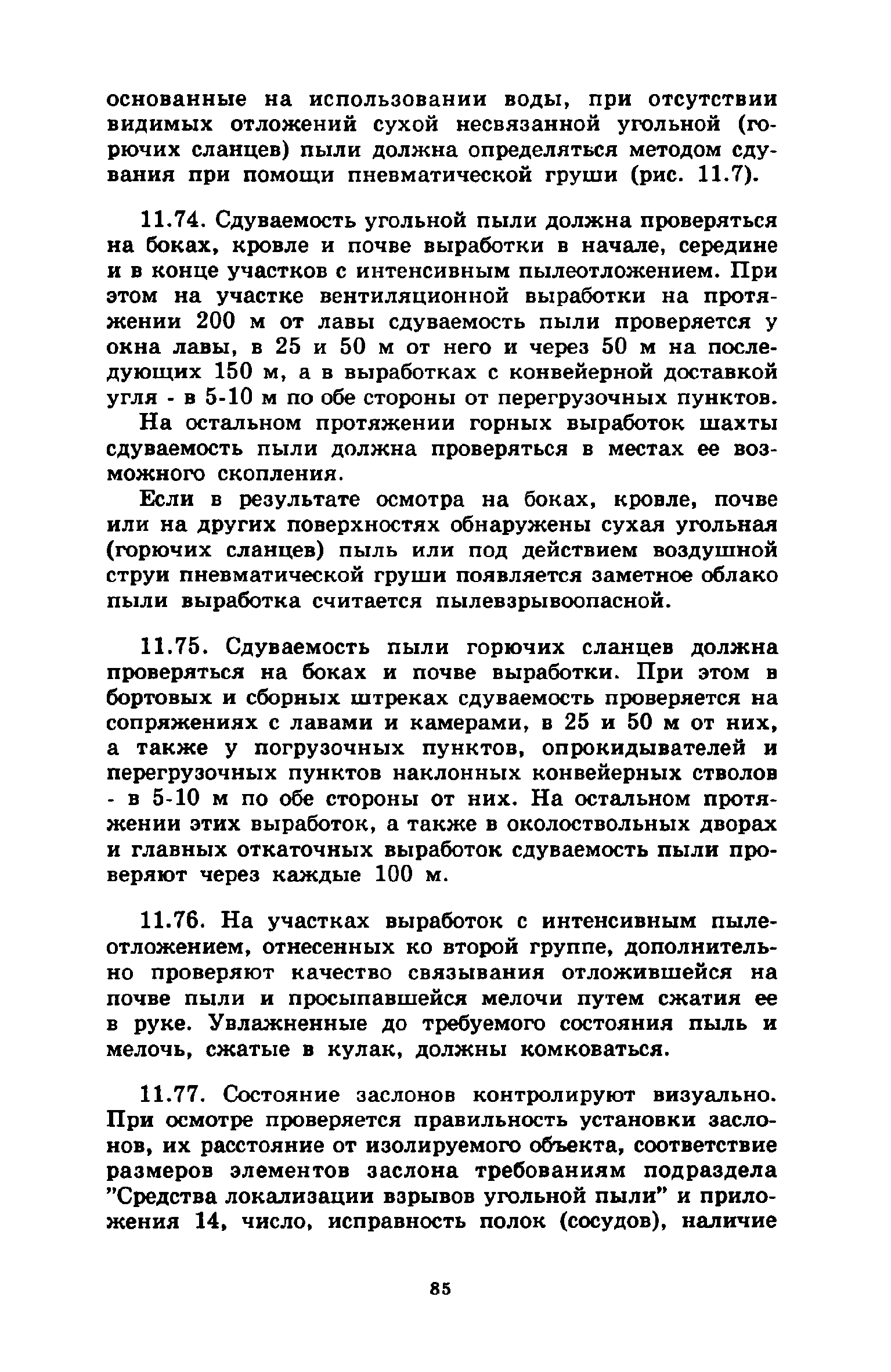 | Оглавление: | 1 Общие положения 2 Предварительное увлажнение угольных пластов Общие положения Способы и схемы нагнетания жидкости Нагнетание жидкости из подготовительных выработок Нагнетание жидкости из очистной выработки Организация работ и техника безопасности 3 Борьба с пылью в очистных выработках Общие положения Борьба с пылью при работе очистных комбайнов на пологих пластах Борьба с пылью при работе стругов и агрегатов на пологих пластах Борьба с пылью в очистных выработках тонких крутых пластов Борьба с пылью при выемке мощных крутых пластов. Борьба с пылью при буровзрывной выемке угля Борьба с пылью при закладочных работах 4 Борьба с пылью в подготовительных выработках Общие положения Борьба с пылью при работе проходческих комбайнов Борьба с пылью при буровых работах Борьба с пылью при взрывных работах Обеспыливание воздуха при погрузочных работах Борьба с пылью при проходке стволов шахт 5 Борьба с пылью в транспортных и околоствольных выработках Борьба с пылью при транспортировании горной массы Борьба с пылью при работе опрокидывателей и загрузочных устройств Обеспыливание входящих и исходящих вентиляционных потоков 6 Дополнительные требования по борьбе с пылью в угольных шахтах Крайнего Севера 7 Дополнительные требования по борьбе с пылью в сланцевых шахтах 8 Обеспыливание воздуха на поверхностных комплексах шахт 9 Водоснабжение горных выработок и водоподготовка 10 Организация работ по борьбе с пылью и контроль качества применяемых мероприятий на шахтах Организация работ Контроль качества применямых мероприятий 11 Пылевзрывозащита угольных и сланцевых шахт Общие положения Определение взрывчатых свойств отложившейся угольной пыли Классификация горных выработок шахты по степени пылевзрывоопасности Определение интенсивности пылеотложения Определение периодичности выполнения работ по предупреждению взрывов угольной пыли Осланцевание горных выработок Предупреждение взрывов угольной пыли способами, основанными на применении воды Средства локализации взрывов угольной пыли Сланцевые заслоны Водяные заслоны Рассредоточенные водяные заслоны Пылевзрывозащита шахт, разрабатывающих горючие сланцы Организация работ Контроль пылевзрывобезопасности горных выработок Меры безопасности при выполнении работ по пылевзрывозащите шахты Приложение 1. Дополнительные меры по снижению запыленности воздуха при ведении горных работ Приложение 2. Оборудование и материалы для предварительного увлажнения угольных пластов Приложение 3. Параметры применения технологических схем предварительного увлажнения угольных пластов Приложение 4. Журнал контроля и учета по нагнетанию воды в пласт Приложение 5. Ориентировочные величины площадей неплотностей в укрытиях оборудования Приложение 6. Рекомендуемые параметры пылеподавления основных производственных процессов Приложение 7. Программа обучения лиц, производящих замеры запыленности воздуха Приложение 8. График выполнения пылевзрывозащитных мероприятий Приложение 9. Акт-извещение периодического контроля пылевзрывобезопасности горных выработок и запыленности воздуха Приложение 10. Определение свободной двуокиси кремния в витающей пыли угольных шахт Приложение 11. Журнал учета запыленности воздуха и содержания в пыли свободной двуокиси кремния в го