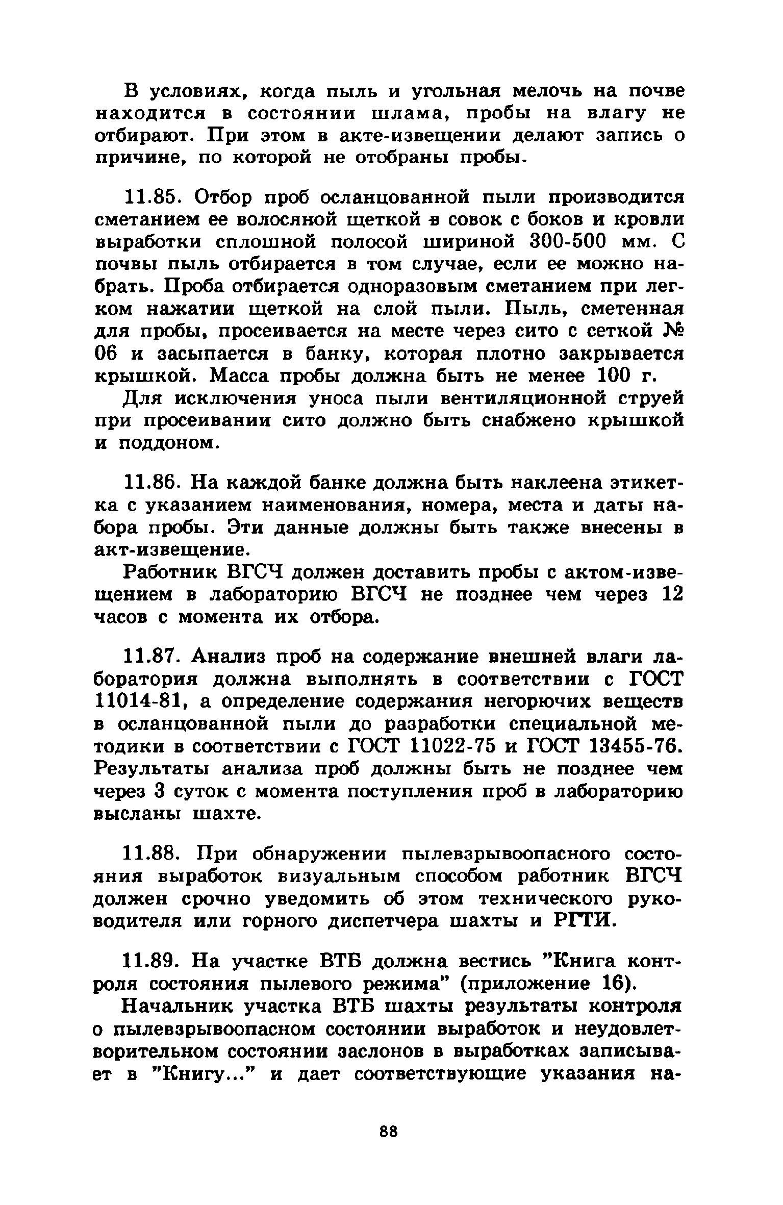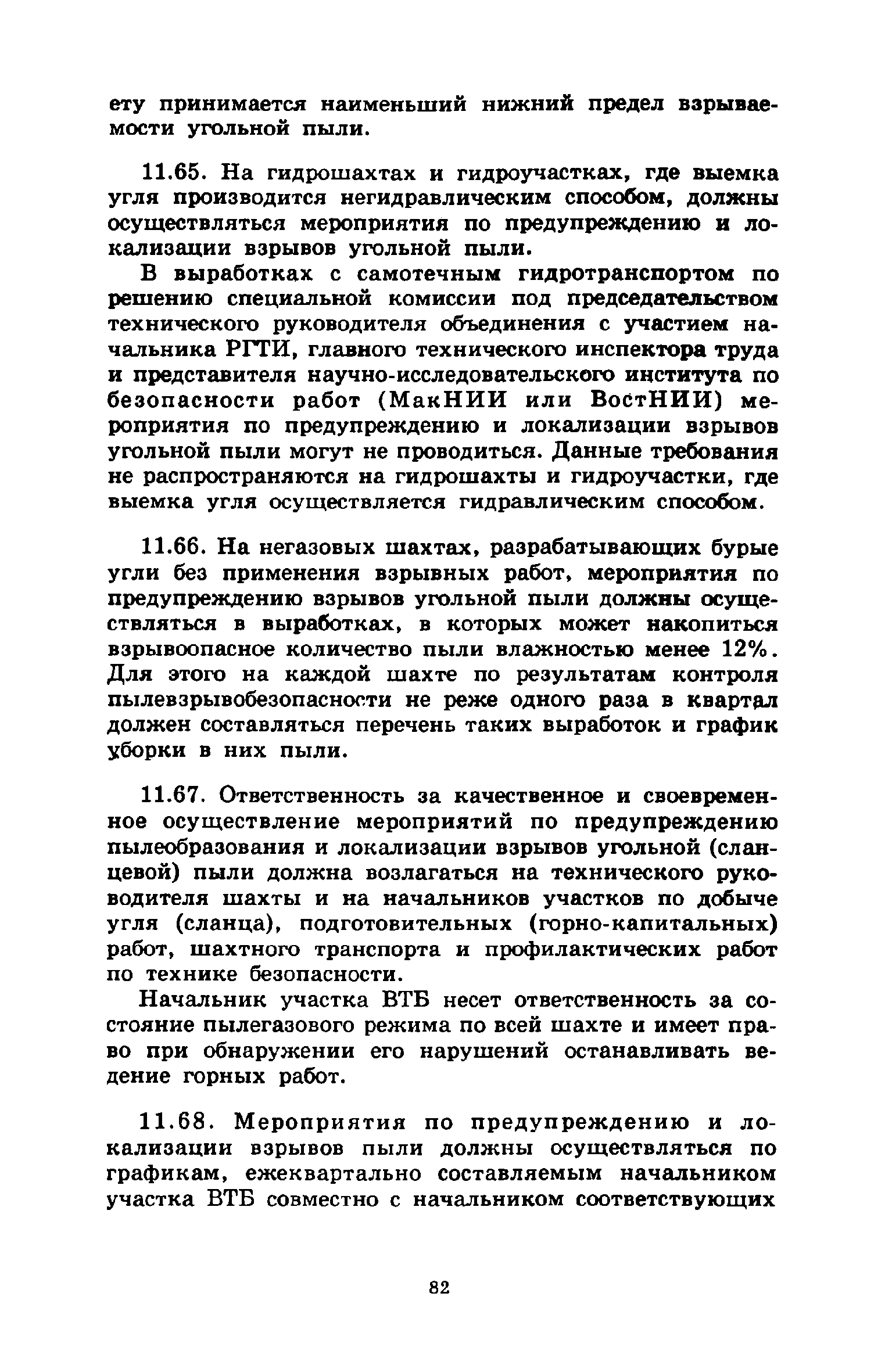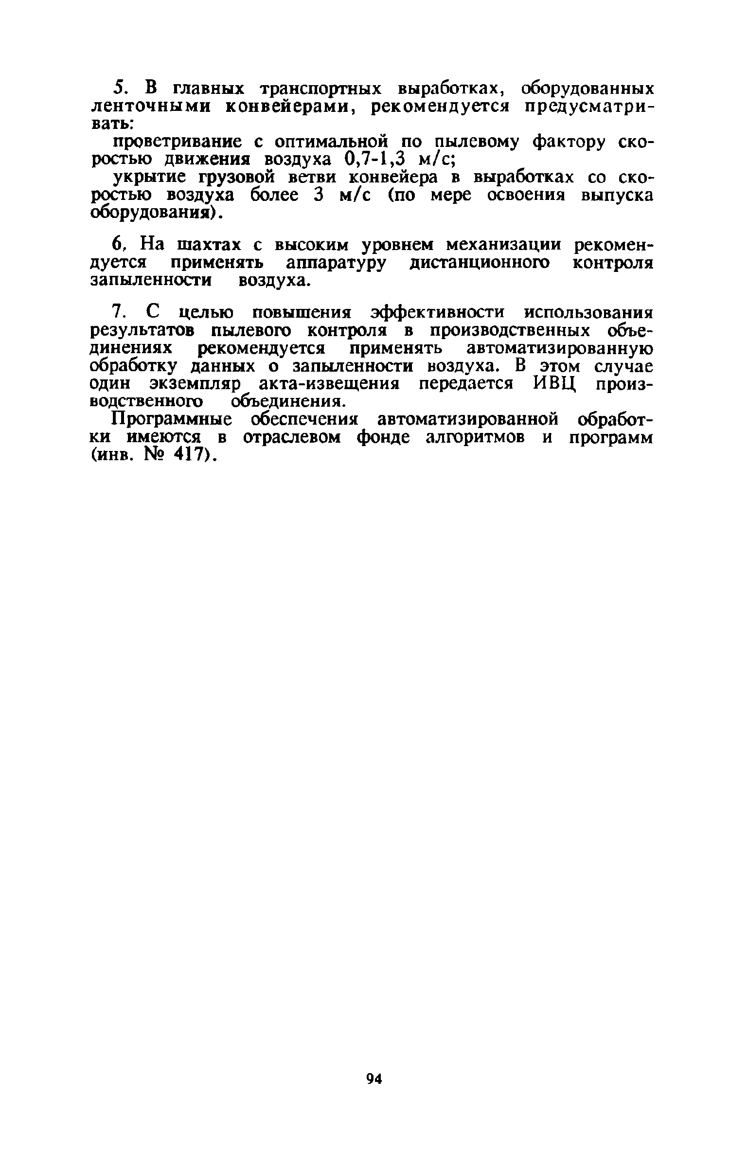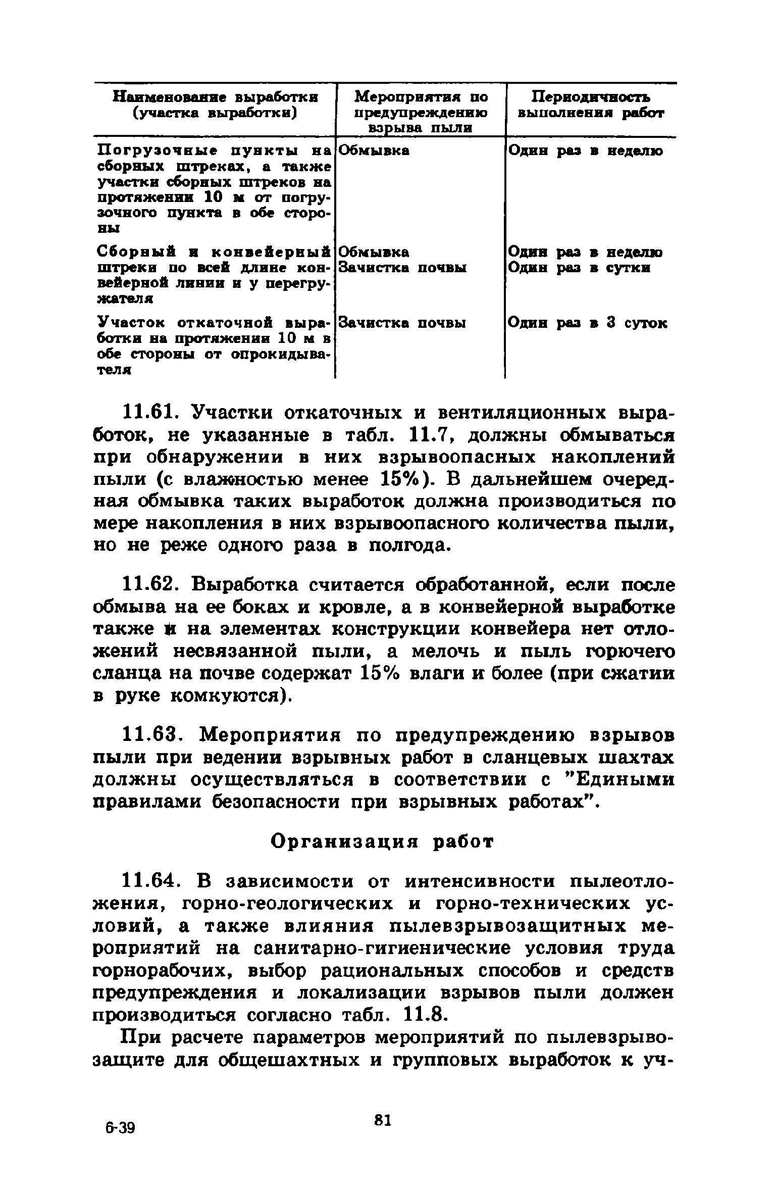 | Оглавление: | 1 Общие положения 2 Предварительное увлажнение угольных пластов Общие положения Способы и схемы нагнетания жидкости Нагнетание жидкости из подготовительных выработок Нагнетание жидкости из очистной выработки Организация работ и техника безопасности 3 Борьба с пылью в очистных выработках Общие положения Борьба с пылью при работе очистных комбайнов на пологих пластах Борьба с пылью при работе стругов и агрегатов на пологих пластах Борьба с пылью в очистных выработках тонких крутых пластов Борьба с пылью при выемке мощных крутых пластов. Борьба с пылью при буровзрывной выемке угля Борьба с пылью при закладочных работах 4 Борьба с пылью в подготовительных выработках Общие положения Борьба с пылью при работе проходческих комбайнов Борьба с пылью при буровых работах Борьба с пылью при взрывных работах Обеспыливание воздуха при погрузочных работах Борьба с пылью при проходке стволов шахт 5 Борьба с пылью в транспортных и околоствольных выработках Борьба с пылью при транспортировании горной массы Борьба с пылью при работе опрокидывателей и загрузочных устройств Обеспыливание входящих и исходящих вентиляционных потоков 6 Дополнительные требования по борьбе с пылью в угольных шахтах Крайнего Севера 7 Дополнительные требования по борьбе с пылью в сланцевых шахтах 8 Обеспыливание воздуха на поверхностных комплексах шахт 9 Водоснабжение горных выработок и водоподготовка 10 Организация работ по борьбе с пылью и контроль качества применяемых мероприятий на шахтах Организация работ Контроль качества применямых мероприятий 11 Пылевзрывозащита угольных и сланцевых шахт Общие положения Определение взрывчатых свойств отложившейся угольной пыли Классификация горных выработок шахты по степени пылевзрывоопасности Определение интенсивности пылеотложения Определение периодичности выполнения работ по предупреждению взрывов угольной пыли Осланцевание горных выработок Предупреждение взрывов угольной пыли способами, основанными на применении воды Средства локализации взрывов угольной пыли Сланцевые заслоны Водяные заслоны Рассредоточенные водяные заслоны Пылевзрывозащита шахт, разрабатывающих горючие сланцы Организация работ Контроль пылевзрывобезопасности горных выработок Меры безопасности при выполнении работ по пылевзрывозащите шахты Приложение 1. Дополнительные меры по снижению запыленности воздуха при ведении горных работ Приложение 2. Оборудование и материалы для предварительного увлажнения угольных пластов Приложение 3. Параметры применения технологических схем предварительного увлажнения угольных пластов Приложение 4. Журнал контроля и учета по нагнетанию воды в пласт Приложение 5. Ориентировочные величины площадей неплотностей в укрытиях оборудования Приложение 6. Рекомендуемые параметры пылеподавления основных производственных процессов Приложение 7. Программа обучения лиц, производящих замеры запыленности воздуха Приложение 8. График выполнения пылевзрывозащитных мероприятий Приложение 9. Акт-извещение периодического контроля пылевзрывобезопасности горных выработок и запыленности воздуха Приложение 10. Определение свободной двуокиси кремния в витающей пыли угольных шахт Приложение 11. Журнал учета запыленности воздуха и содержания в пыли свободной двуокиси кремния в го
