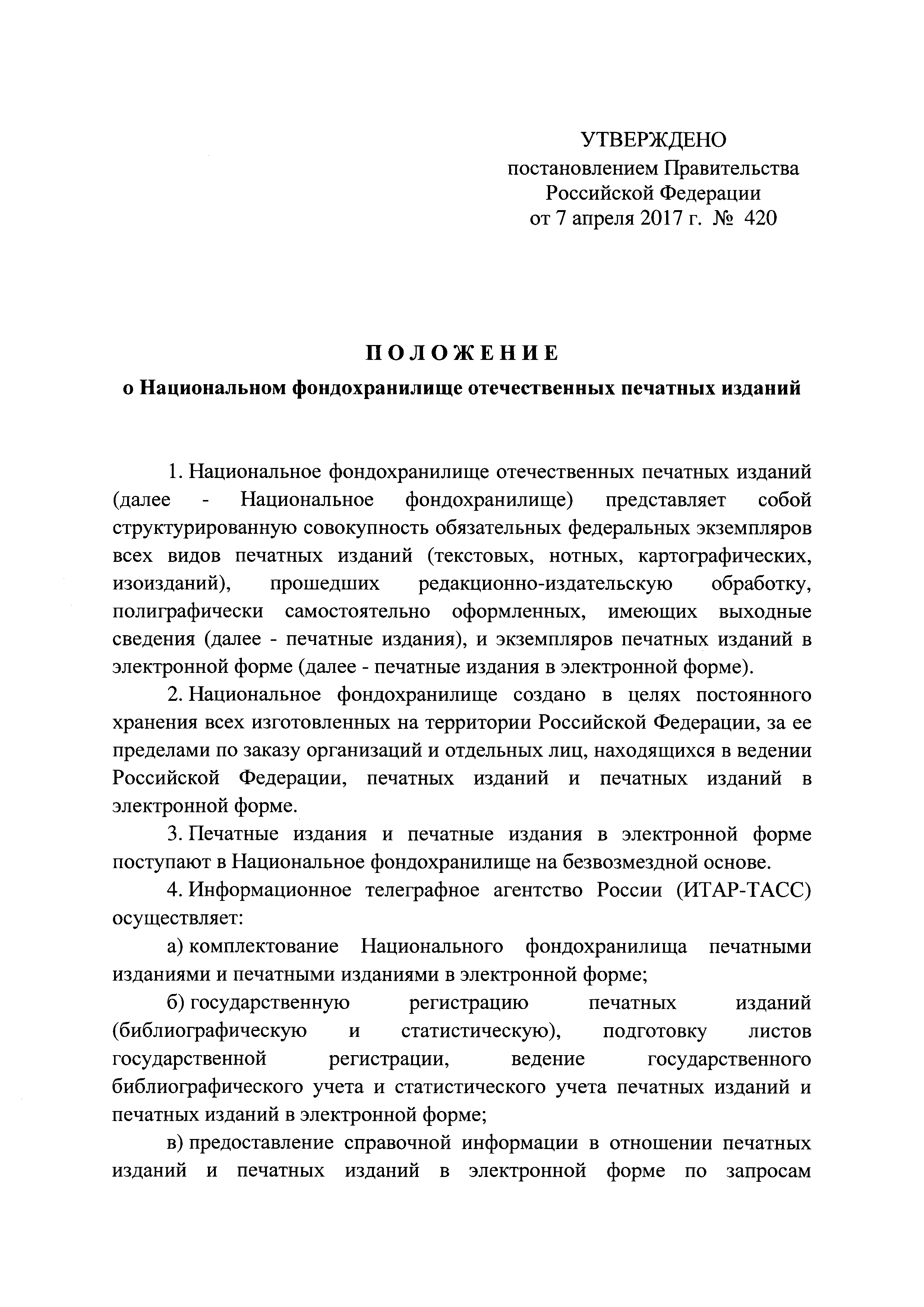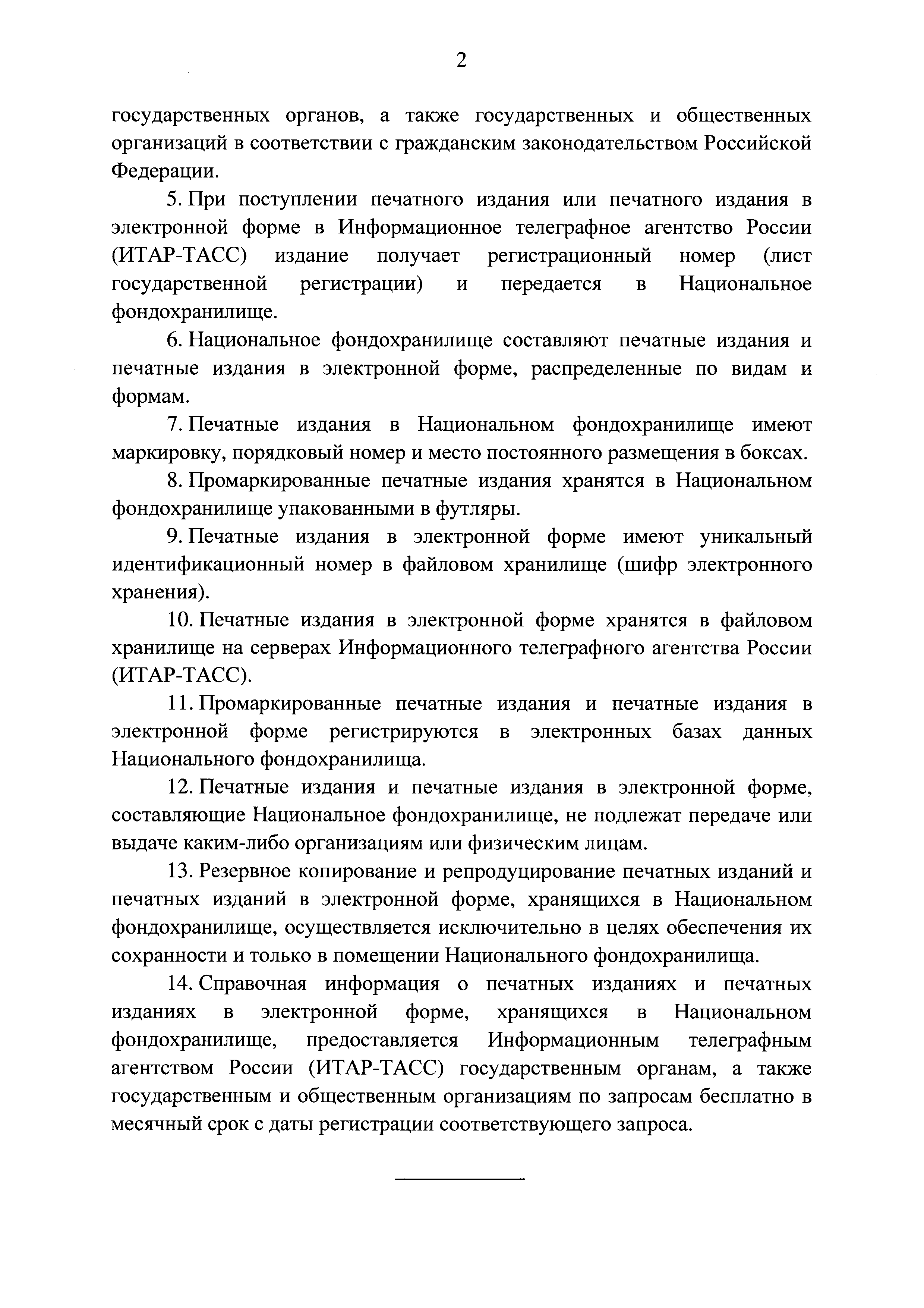 | Название рус.: | Положение о Национальном фондохранилище отечественных печатных изданий |