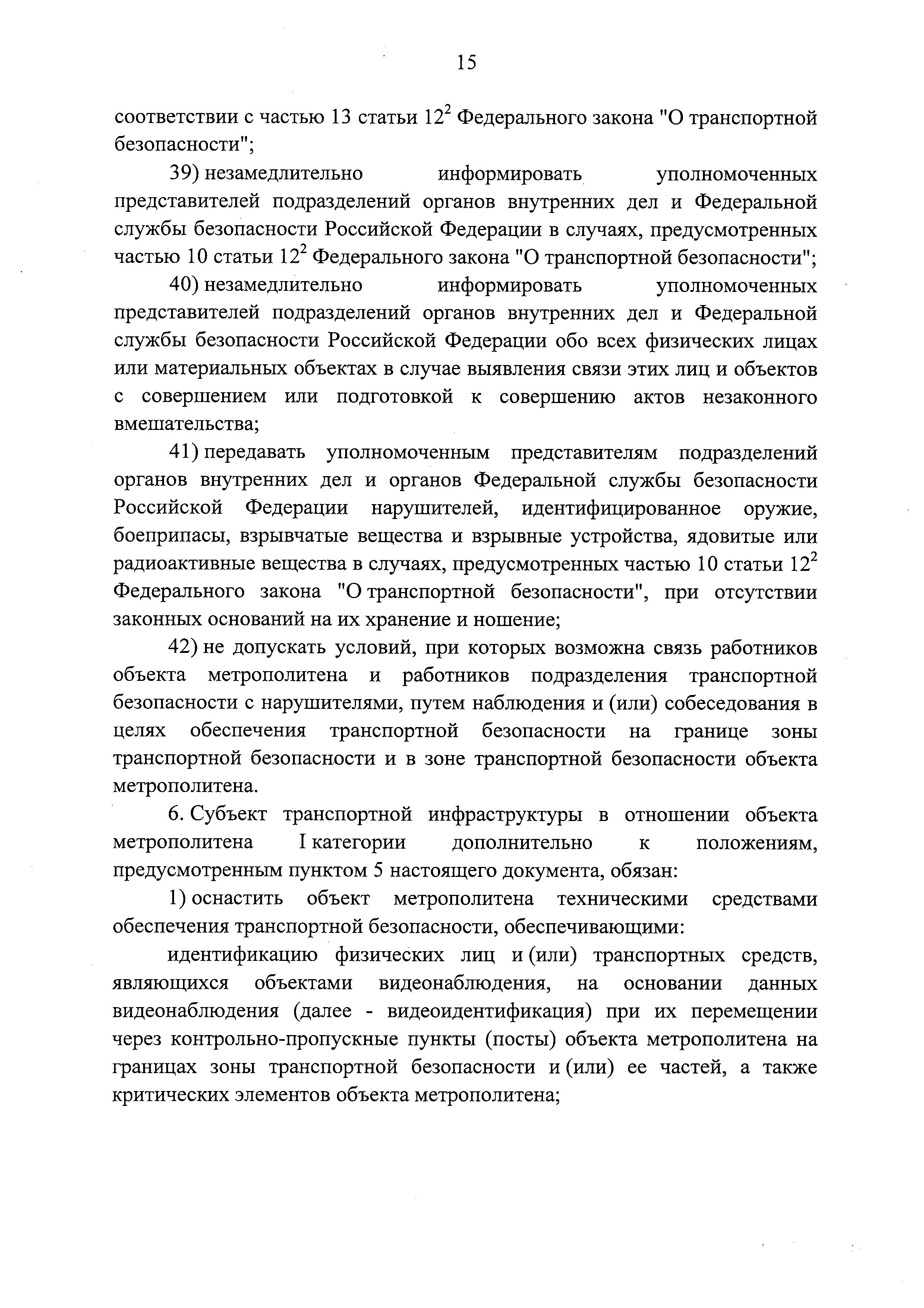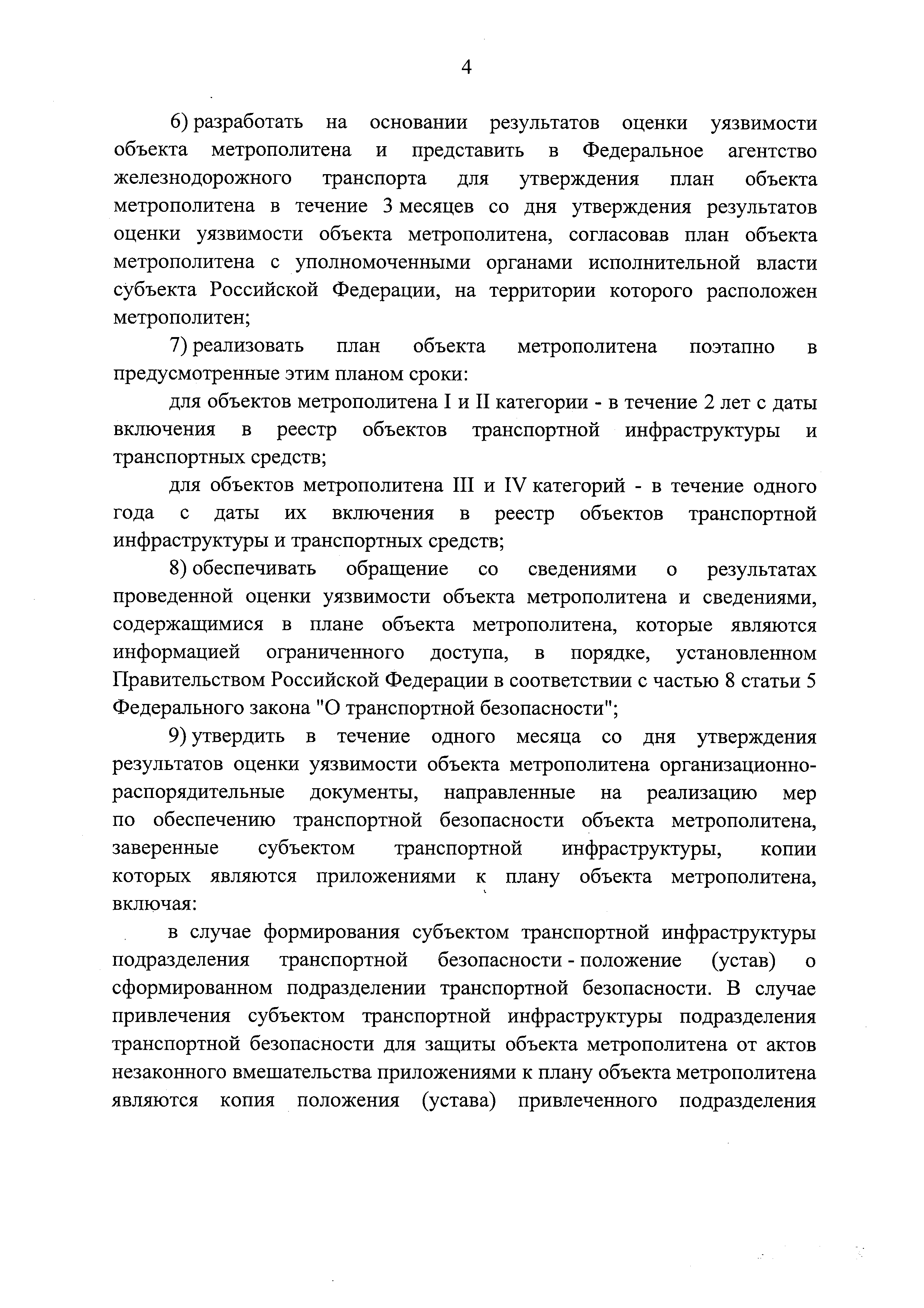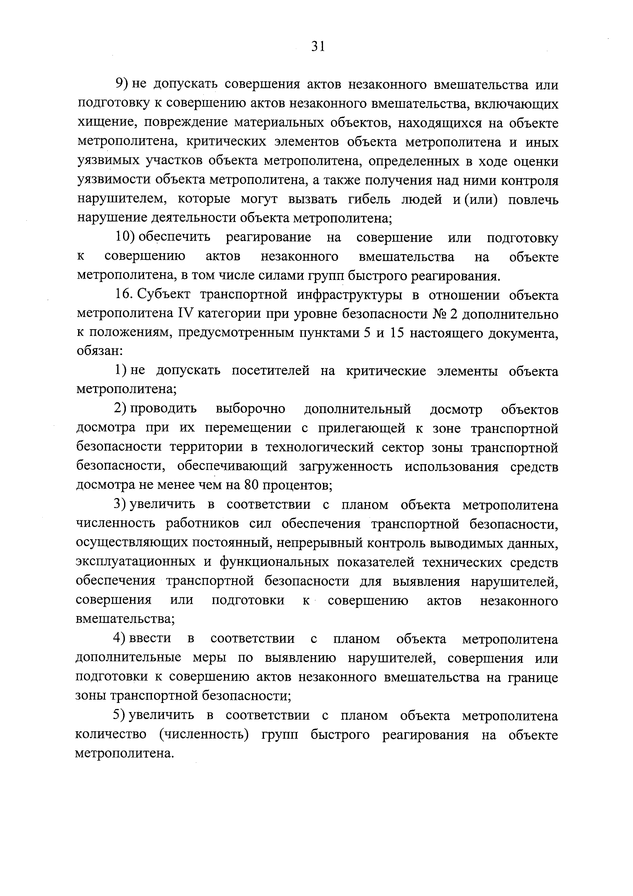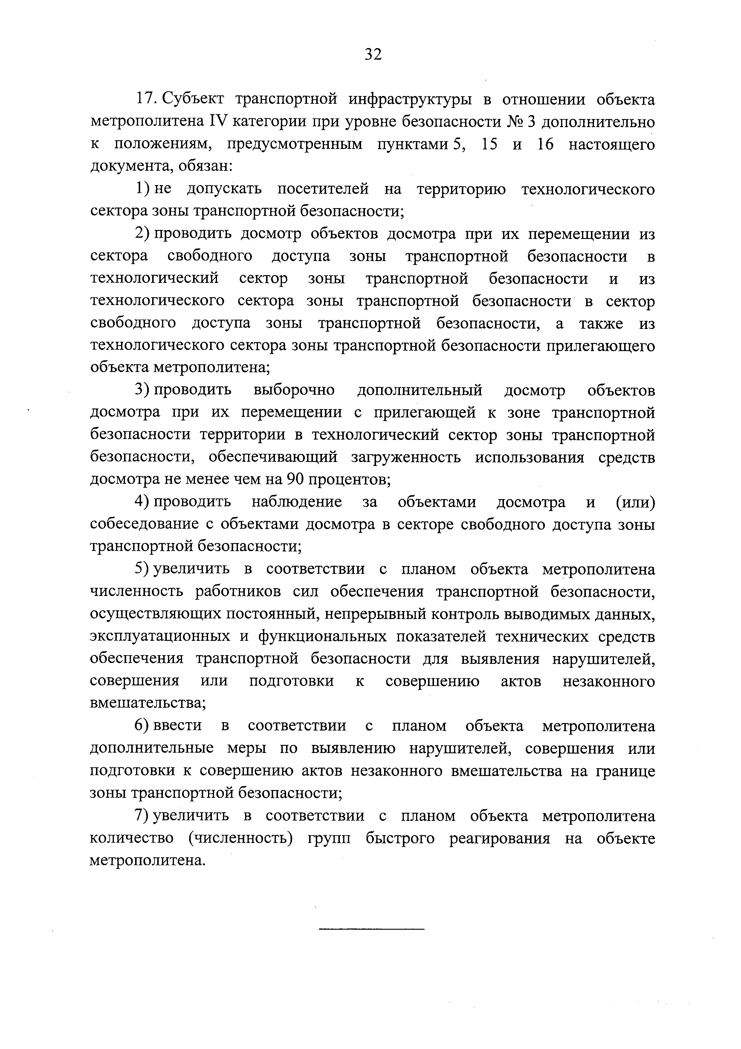 Требования по обеспечению транспортной безопасности, в том числе требования к антитеррористической защищенности объектов (территорий), учитывающие уровни безопасности для различных категорий метрополитенов| Статус: | действует | | Название рус.: | Требования по обеспечению транспортной безопасности, в том числе требования к антитеррористической защищенности объектов (территорий), учитывающие уровни безопасности для различных категорий метрополитенов | | Дата добавления в базу: | 05.05.2017 | | Дата актуализации: | 01.01.2021 | | Дата введения: | 14.04.2017 | | Дата окончания срока действия: | 01.01.2021 | | Область применения: | Документ устанавливает требования по обеспечению транспортной безопасности, в том числе требования к антитеррористической защищенности объектов (территорий), учитывающие уровни безопасности для различных категорий метрополитенов | | Оглавление: | Приложение. Правила допуска на объект метрополитена | | Утверждён: | 05.04.2017 Правительство РФ (Government of the Russian Federation 410)