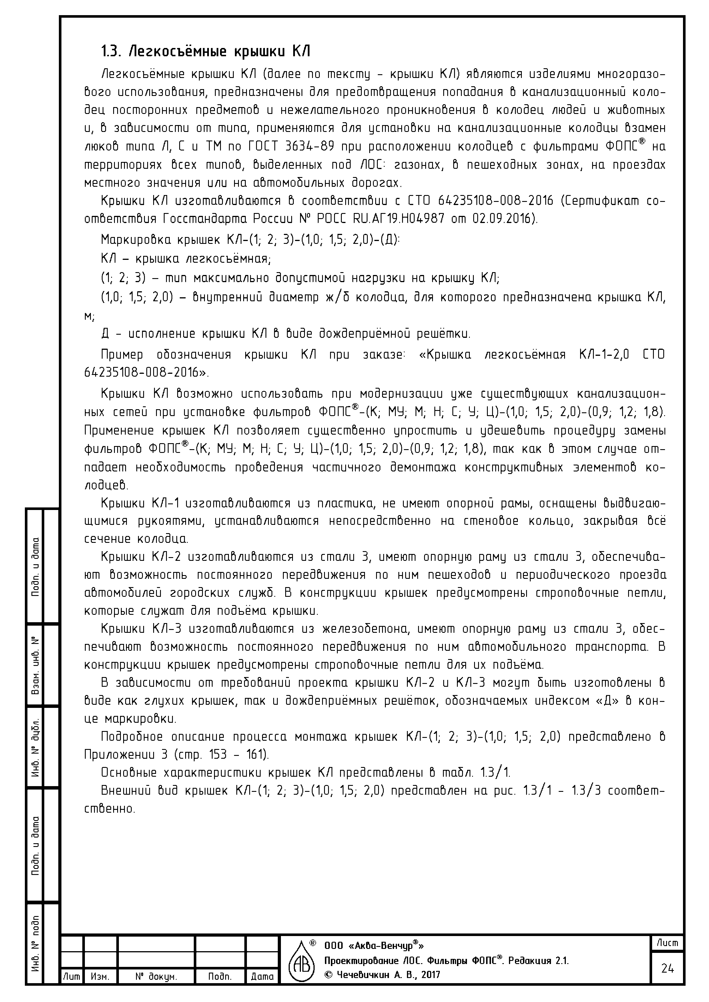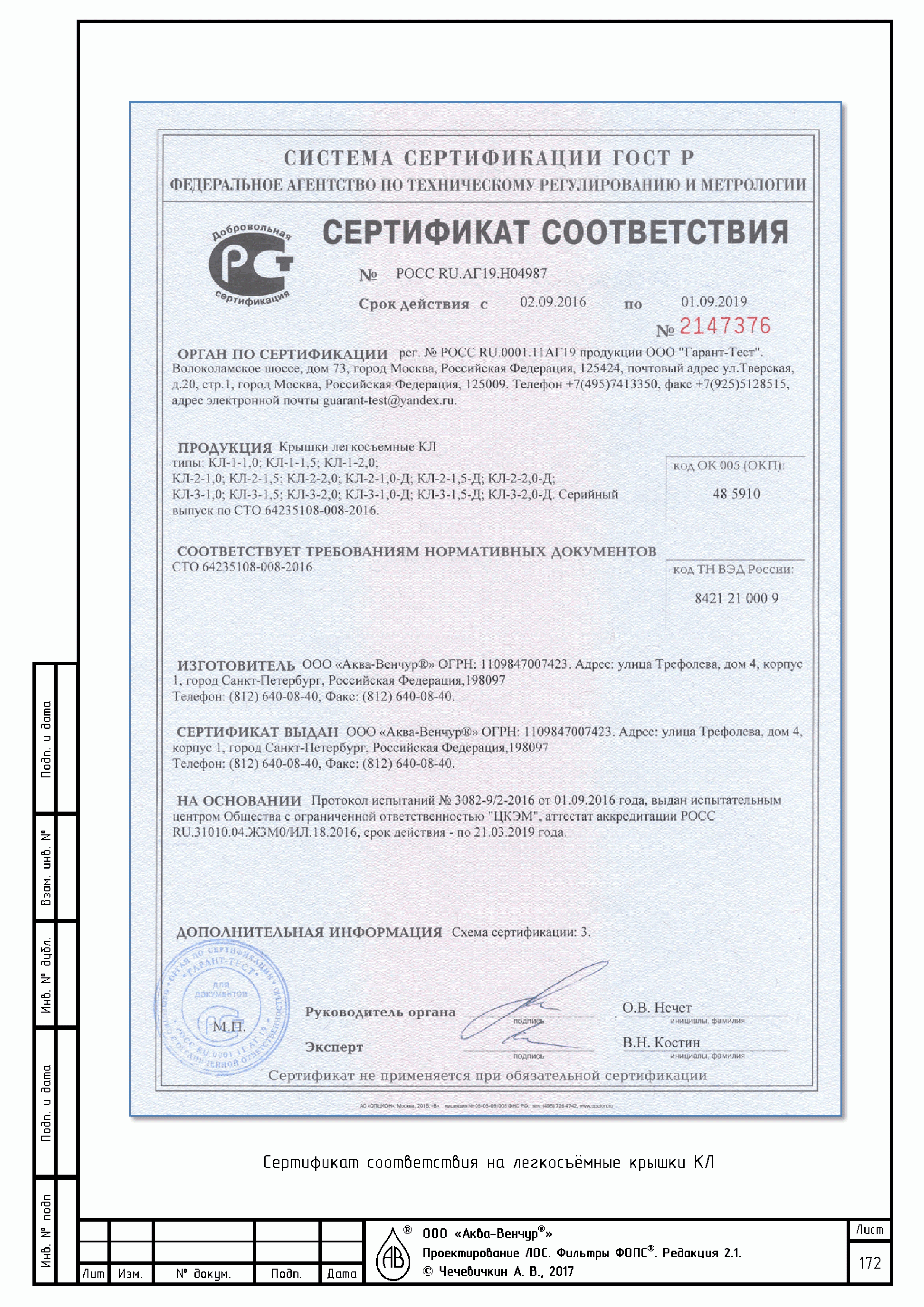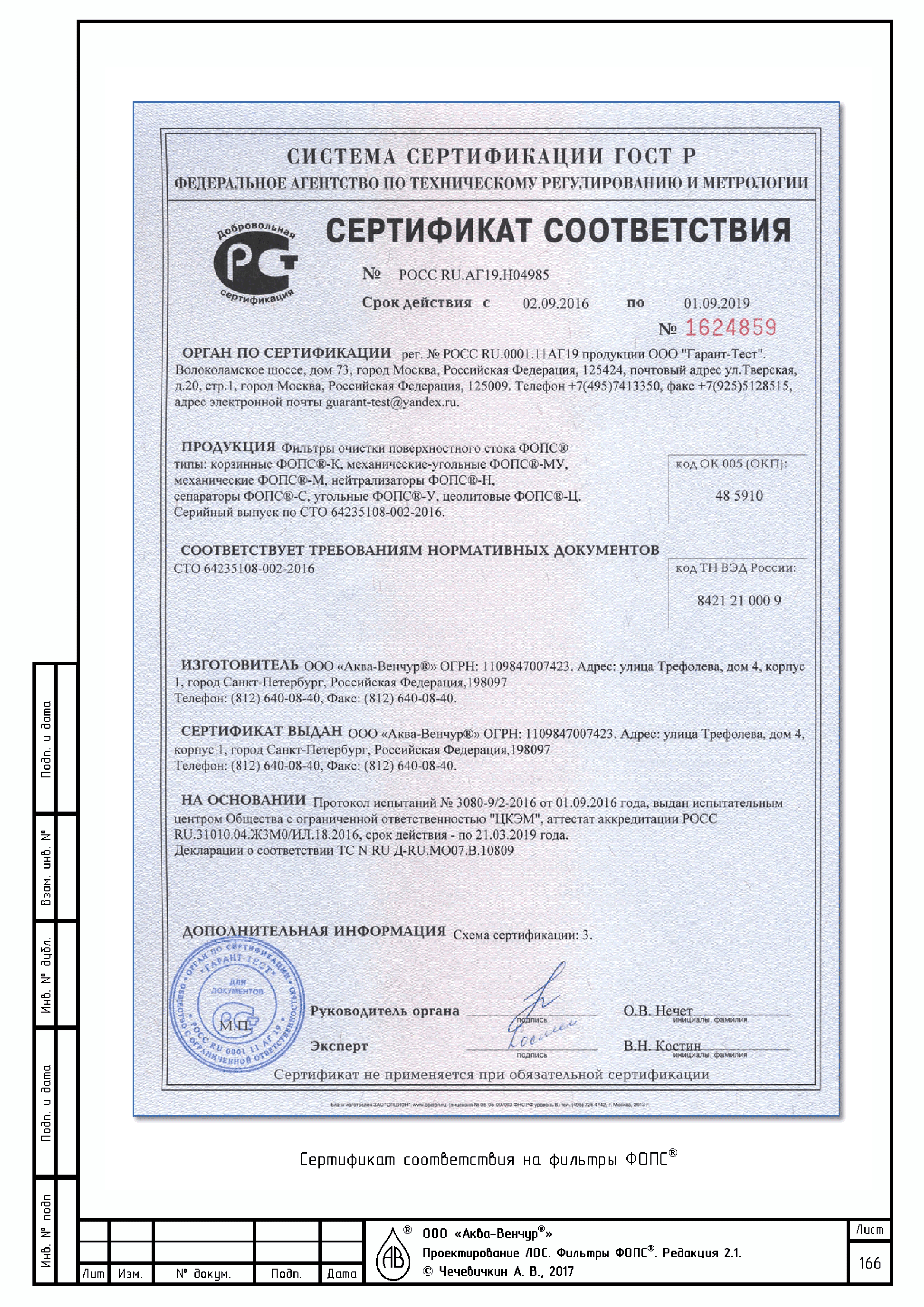 | Утверждён: | 17.10.2016 ООО Аква-Венчур® |