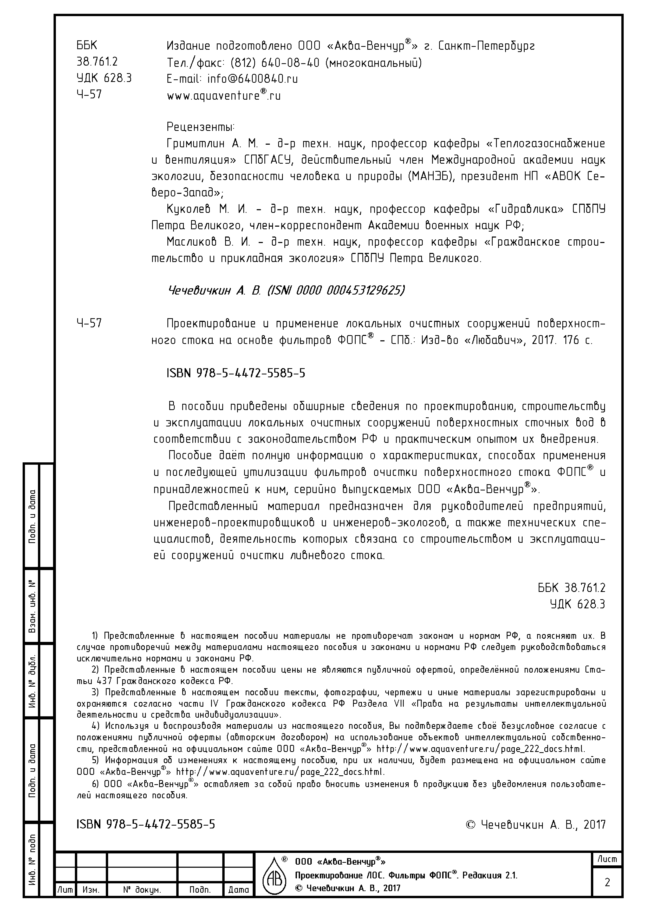 | Название рус.: | Проектирование и применение локальных очистных сооружений поверхностного стока на основе фильтров ФОПС® |