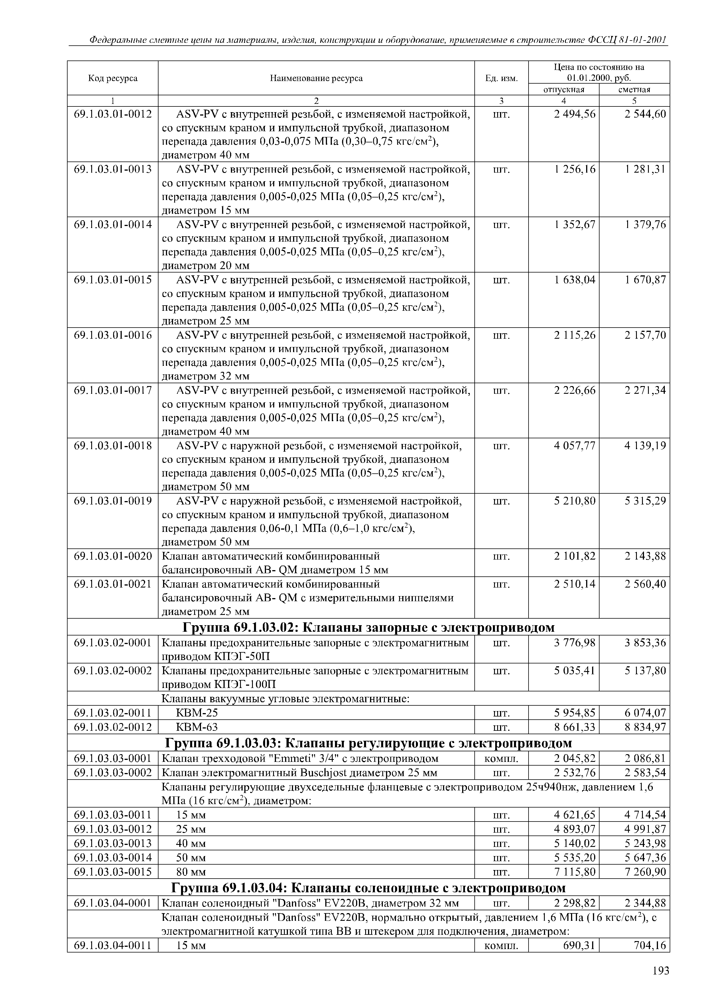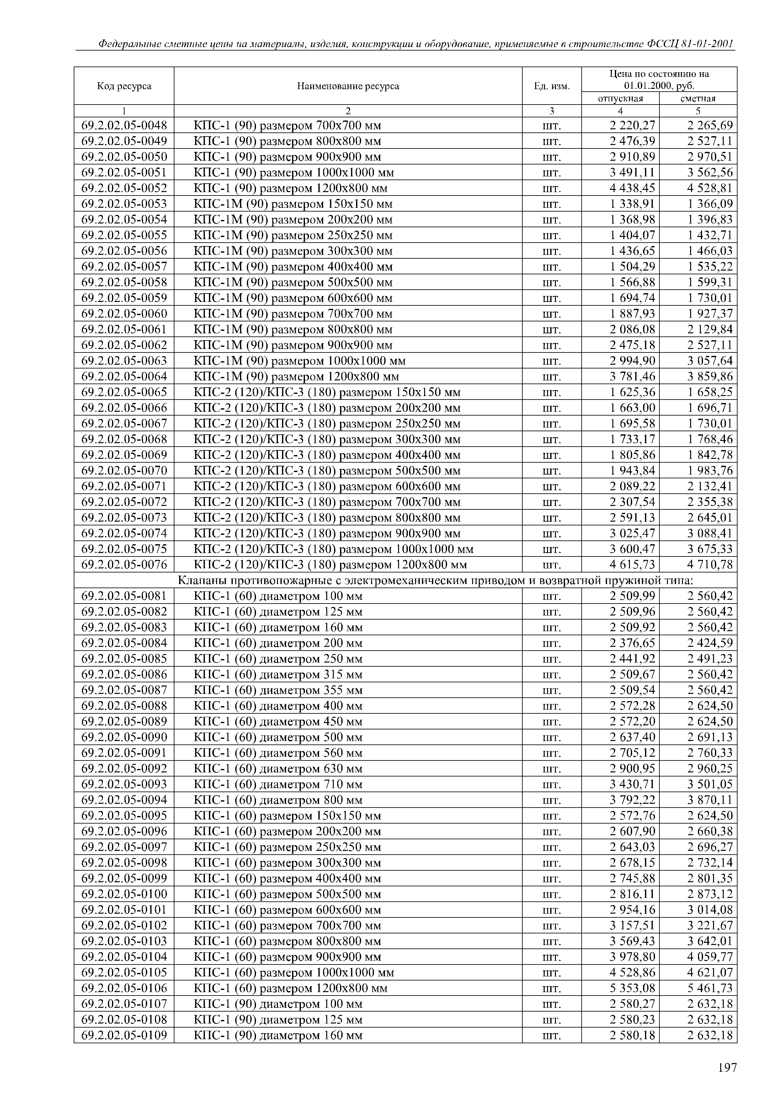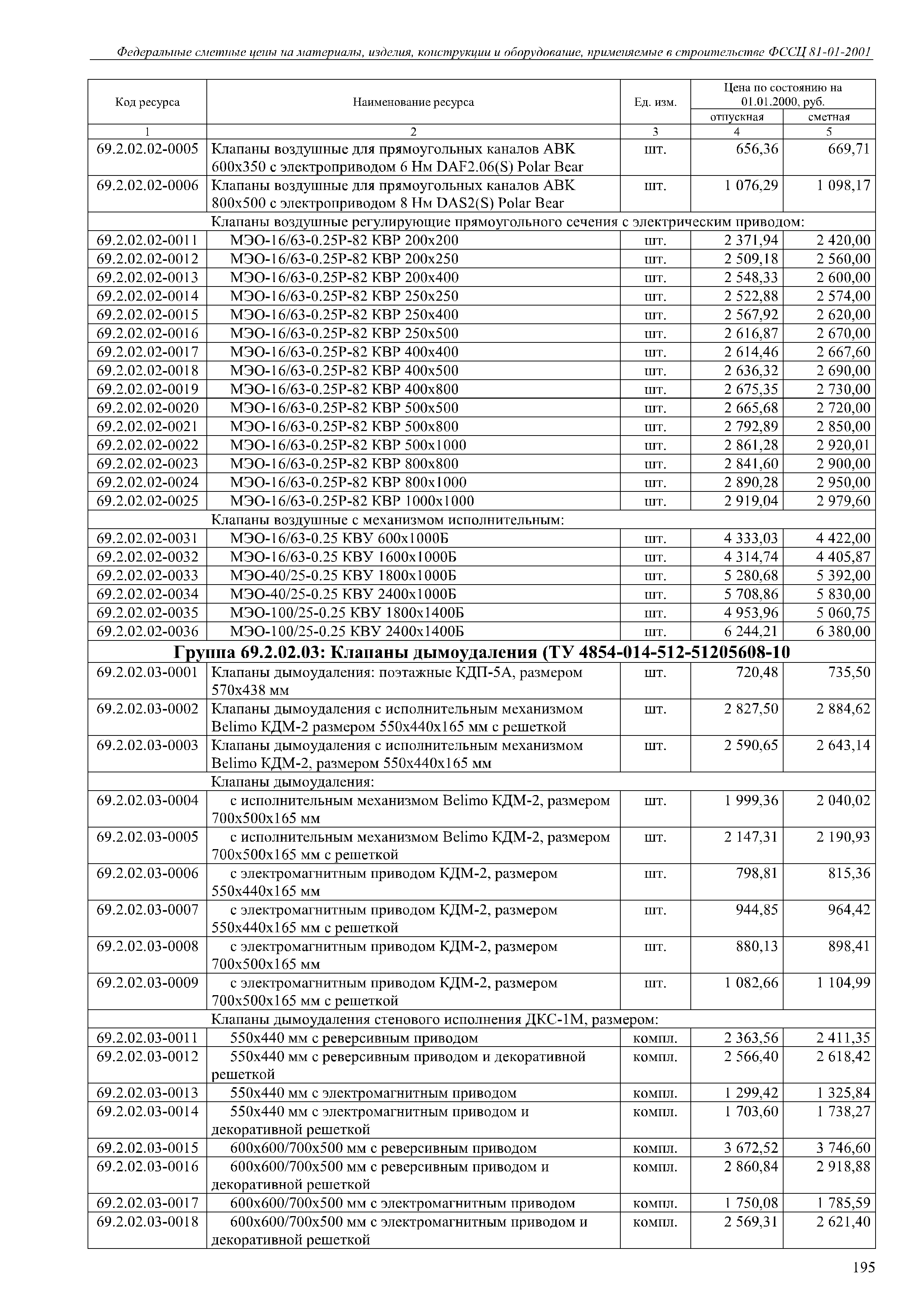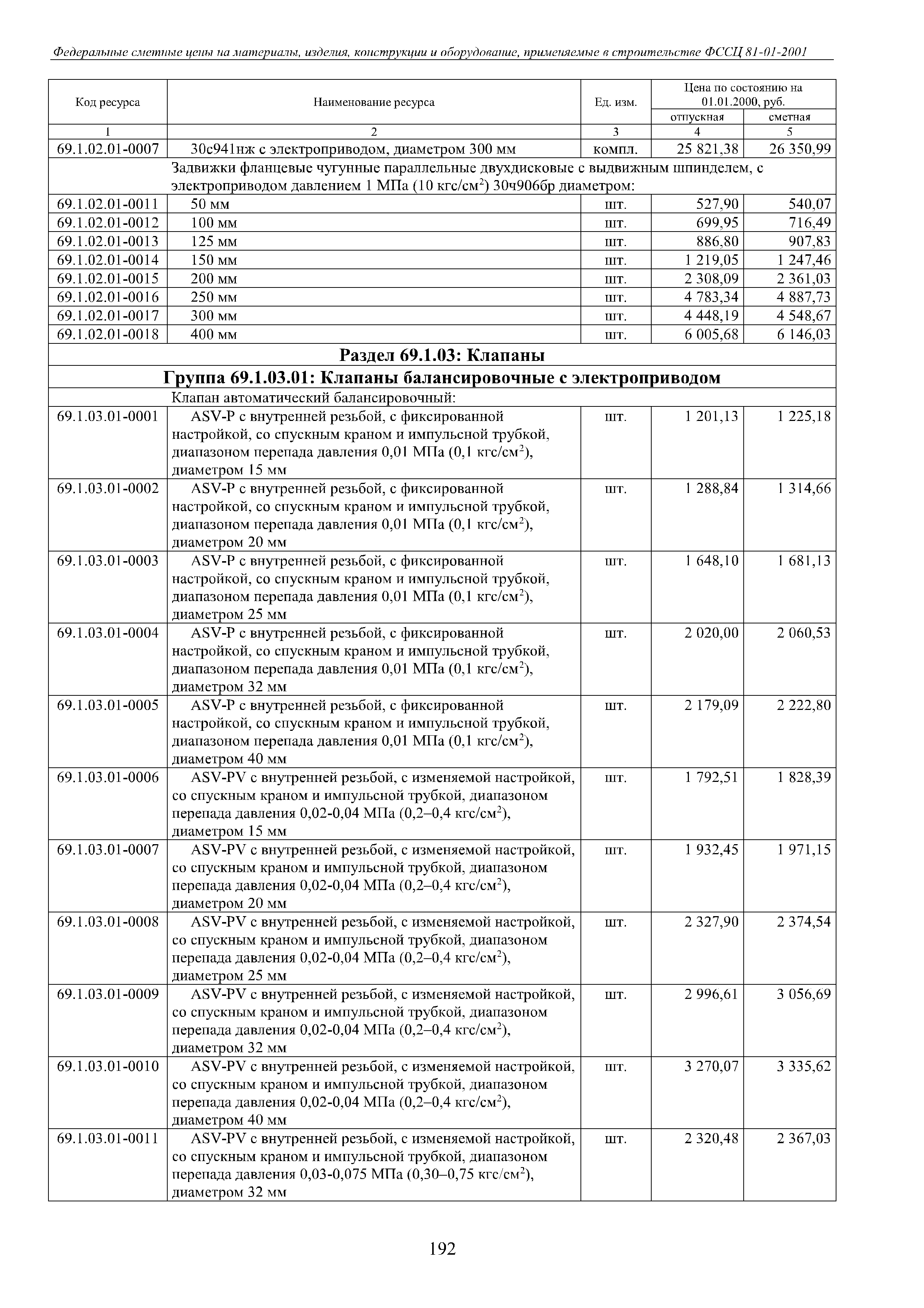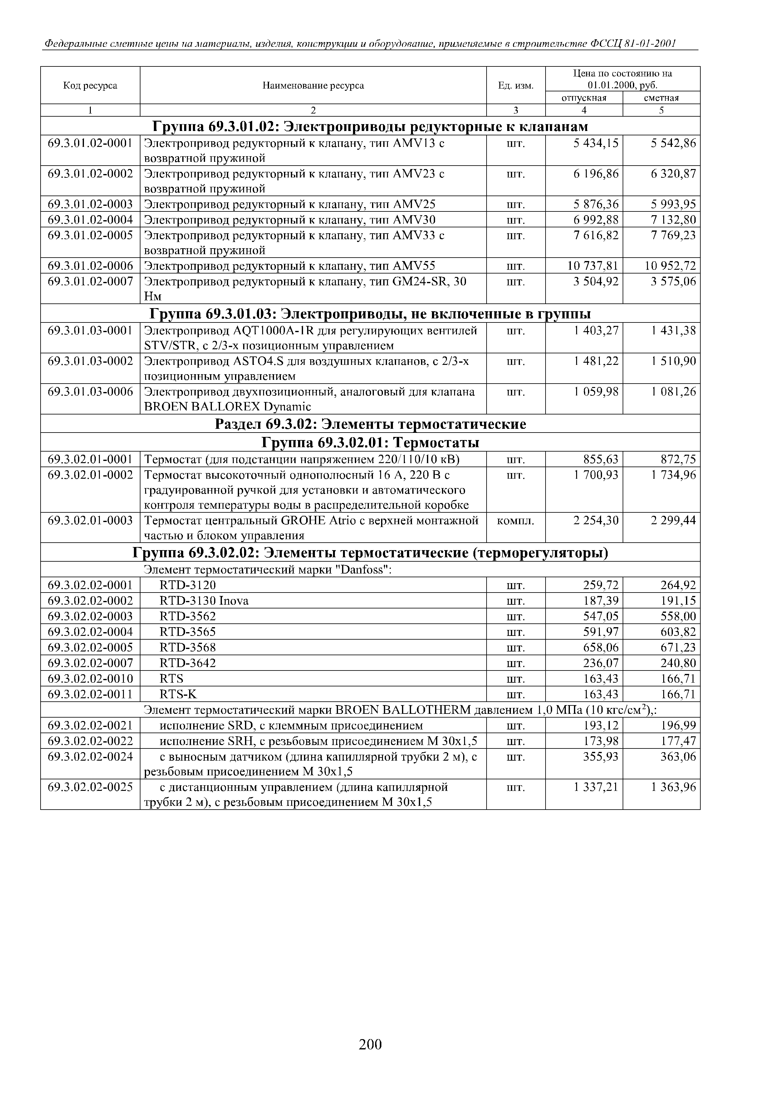 Книга 69: Арматура трубопроводная и воздуховодная с электроприводом. Федеральные сметные цены на материалы изделия, конструкции и оборудование, применяемые в строительстве. Федеральный сборник сметных цен на материалы, изделия и конструкции, применяемые в строительстве| Статус: | действует | | Название рус.: | Книга 69: Арматура трубопроводная и воздуховодная с электроприводом. Федеральные сметные цены на материалы изделия, конструкции и оборудование, применяемые в строительстве. Федеральный сборник сметных цен на материалы, изделия и конструкции, применяемые в строительстве | | Дата добавления в базу: | 05.05.2017 | | Дата актуализации: | 01.01.2021 | | Дата введения: | 28.04.2017 | | Область применения: | Государственные сметные нормативы "Федеральные сметные цены на материалы, изделия, конструкции и оборудование, применяемые в строительстве" предназначены для определения сметной стоимости строительства, реконструкции и капитального ремонта объектов капитального строительства. | | Оглавление: | Часть 69.1: Арматура трубопроводная с электроприводом Раздел 69.1.01: Вентили и устройства смывные Раздел 69.1.02: Задвижки Раздел 69.1.03: Клапаны Часть 69.2: Заслонки, клапаны для воздуховодов с электроприводом Раздел 69.2.01: Заслонки Раздел 69.2.02: Клапаны Часть 69.3: Элементы термостатические, электроприводы Раздел 69.3.01: Электроприводы Раздел 69.3.02: Элементы термостатические | | Утверждён: | 30.12.2016 Минстрой России (Russian Federation Minstroy 1039/пр)