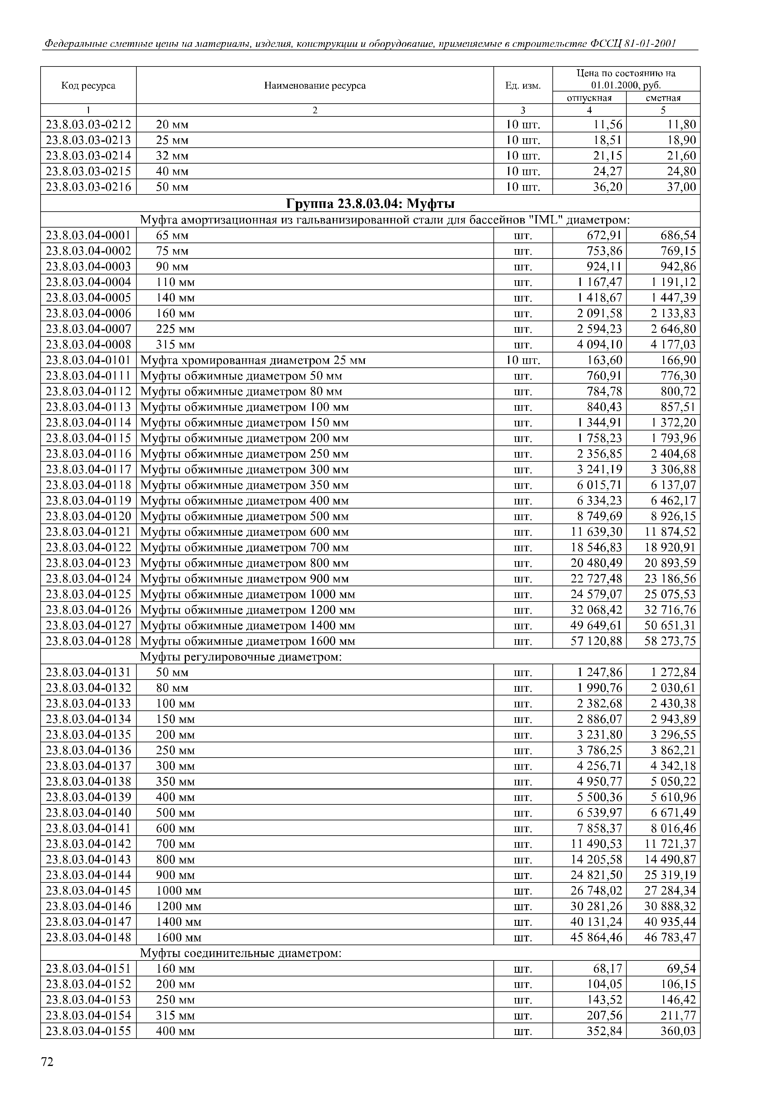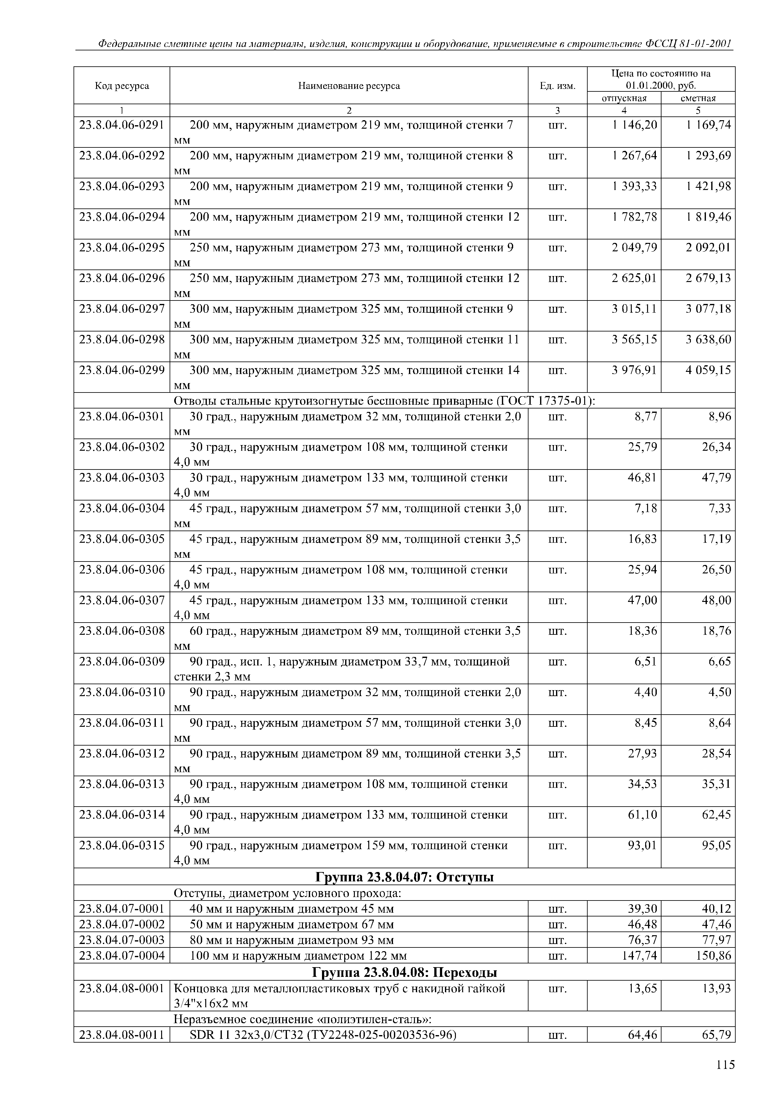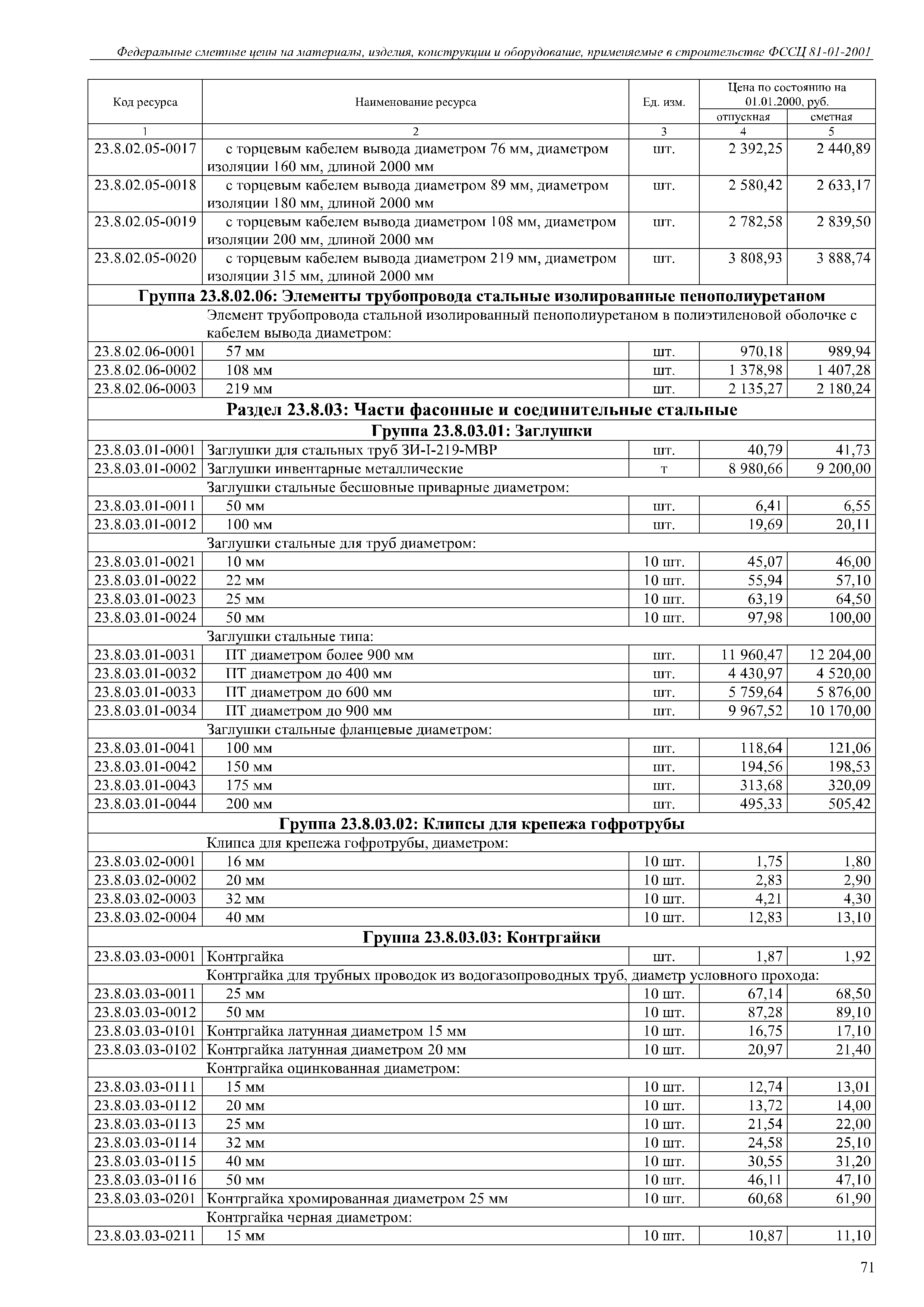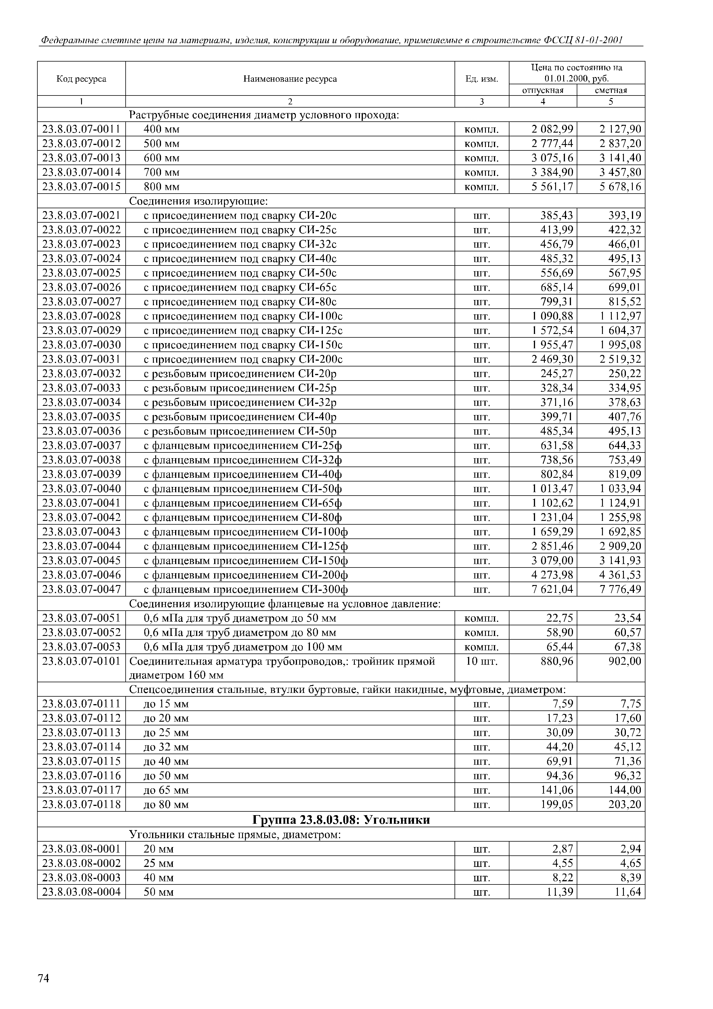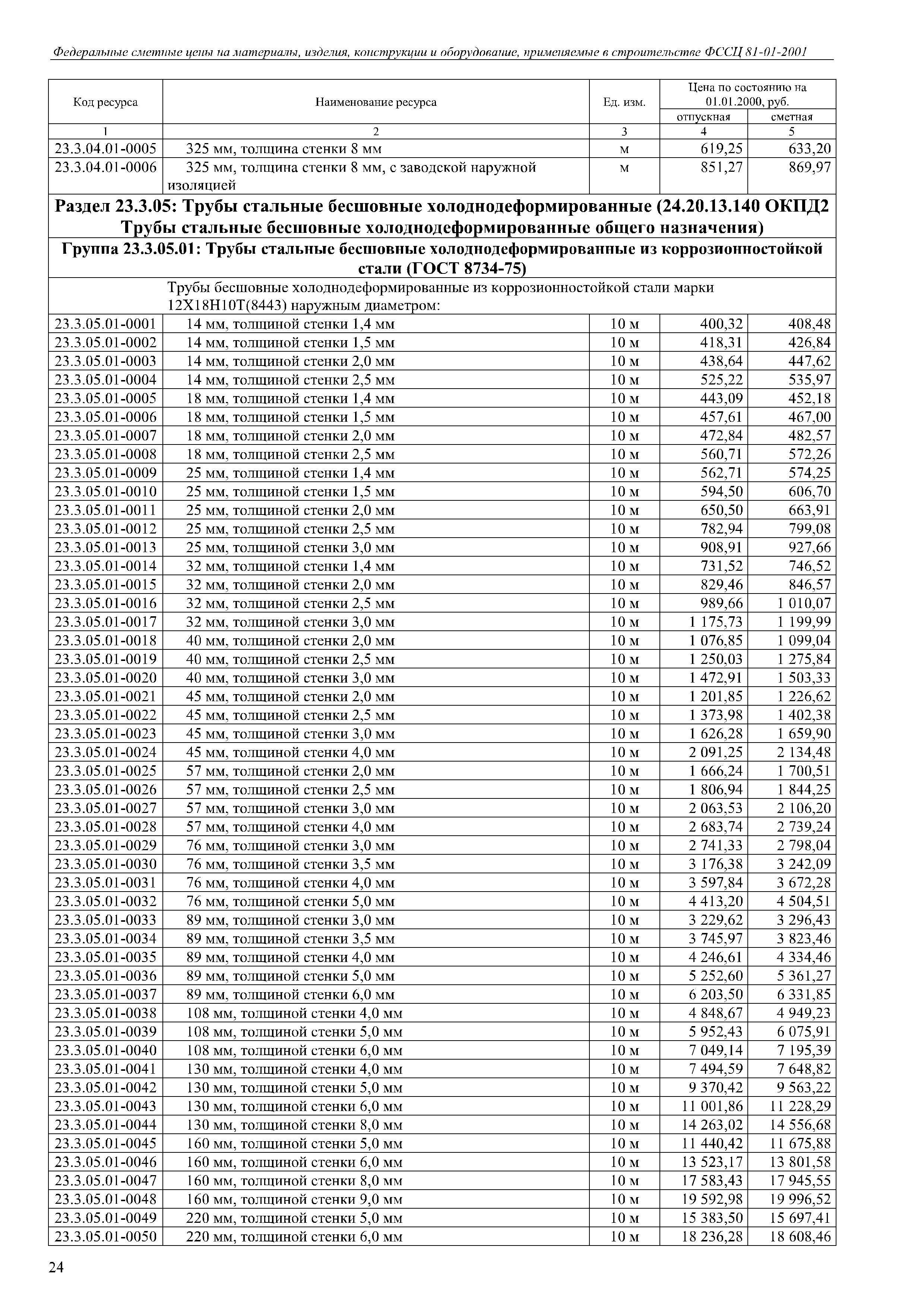 | Название рус.: | Книга 23: Трубы и трубопроводы, фасонные и соединительные части, фитинги стальные (24.20 ОКПД2 Трубы, профили пустотелые и их фитинги стальные). Федеральные сметные цены на материалы изделия, конструкции и оборудование, применяемые в строительстве. Федеральный сборник сметных цен на материалы, изделия и конструкции, применяемые в строительстве |