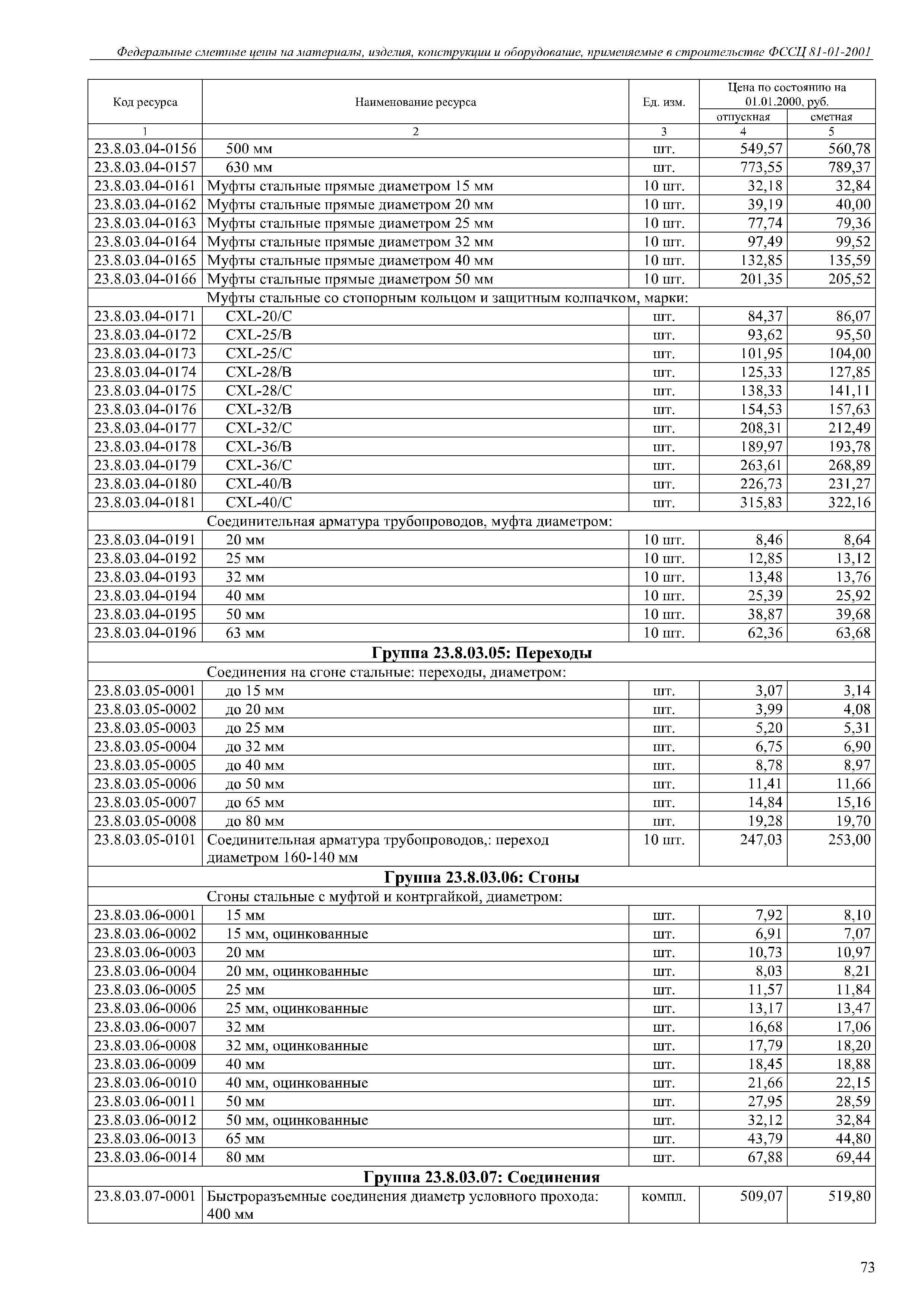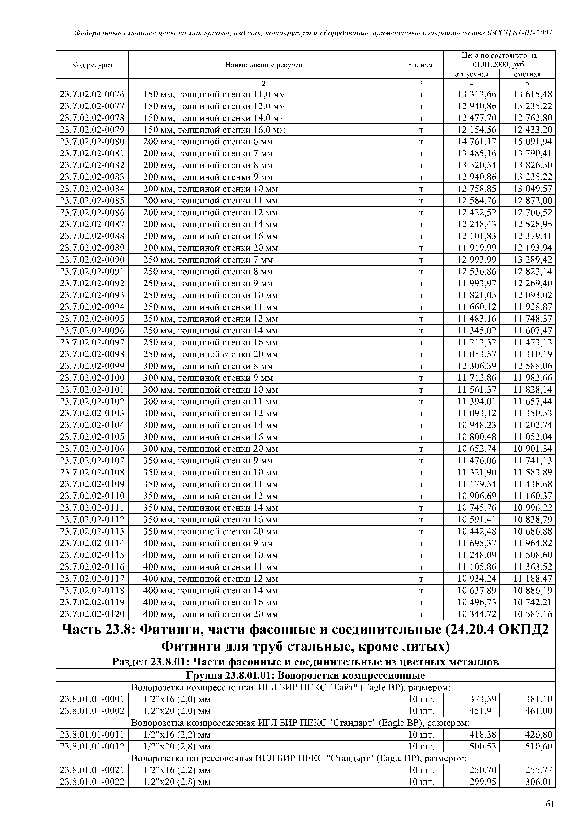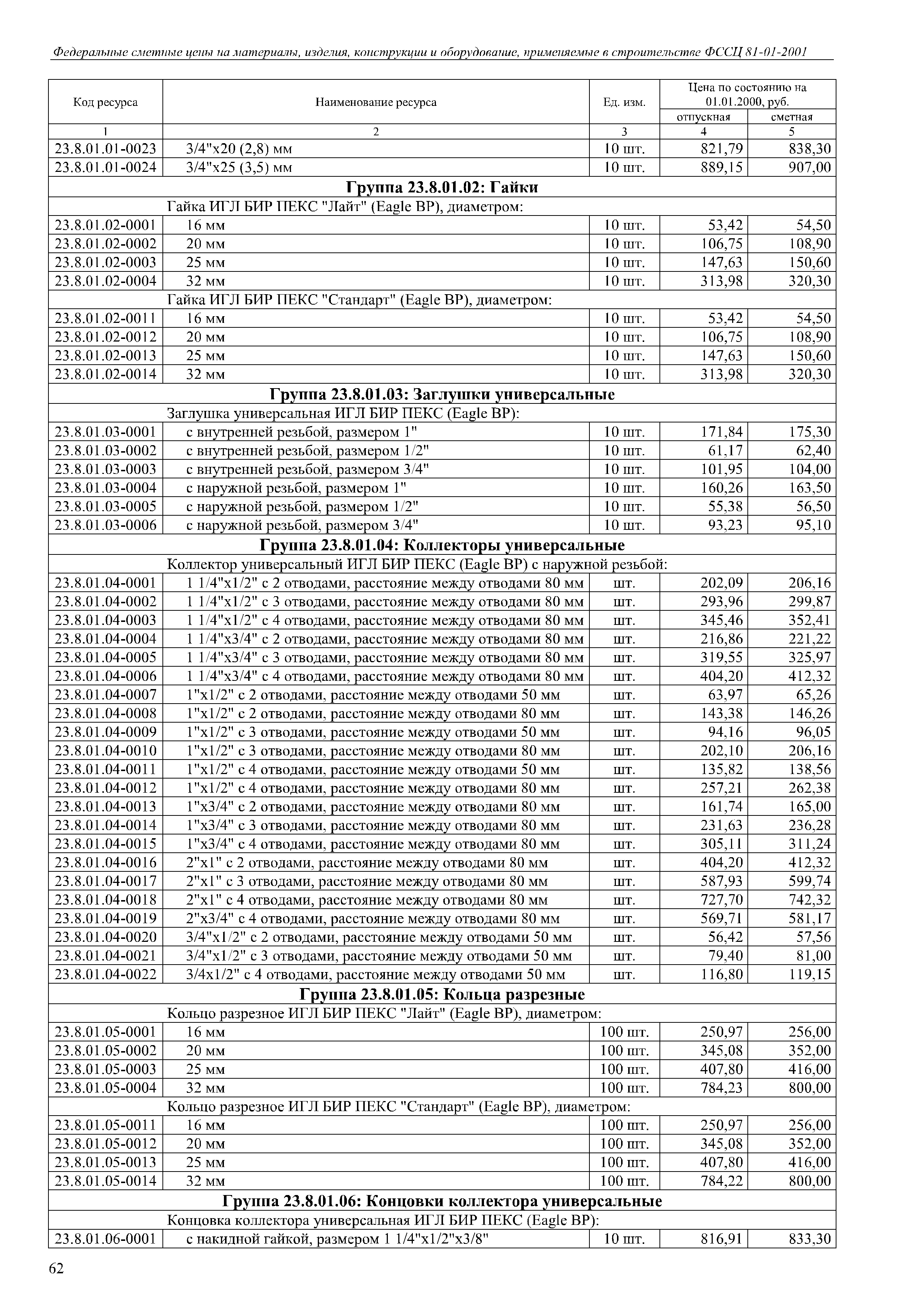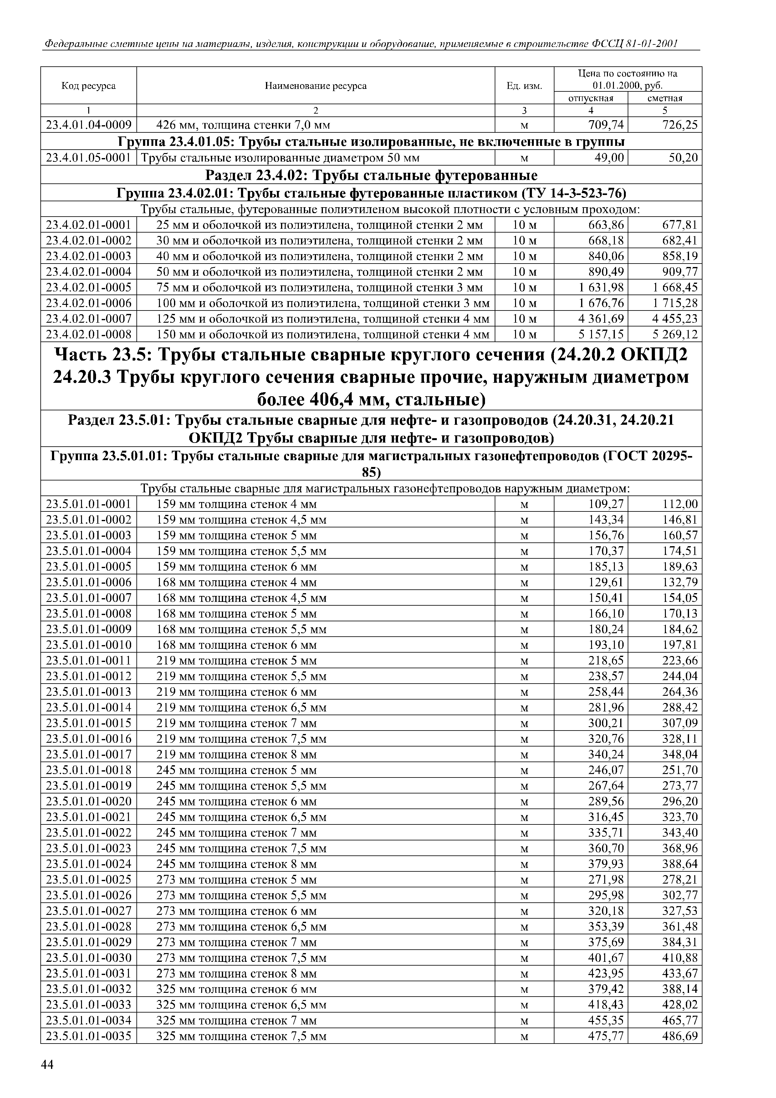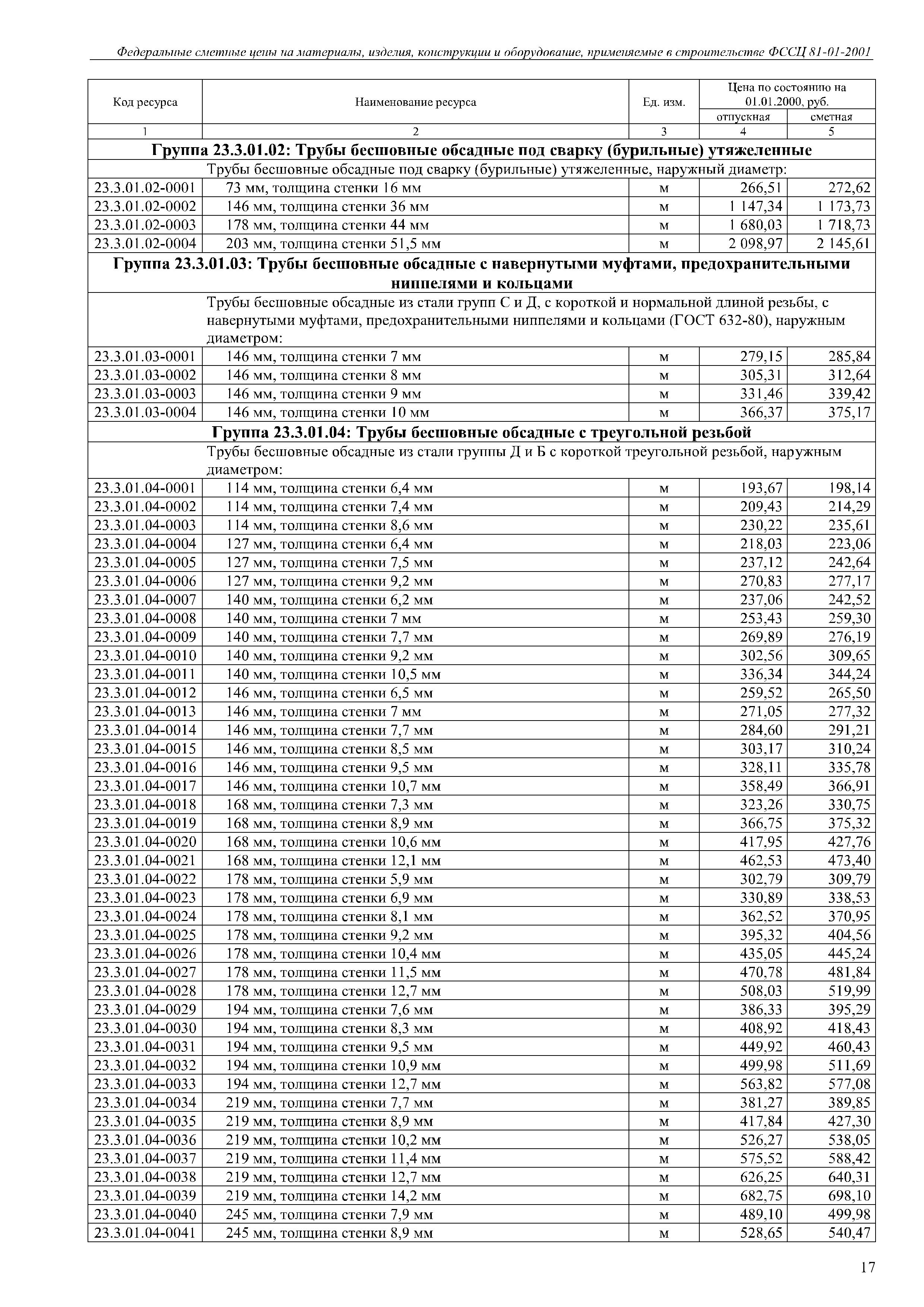 | Название рус.: | Книга 23: Трубы и трубопроводы, фасонные и соединительные части, фитинги стальные (24.20 ОКПД2 Трубы, профили пустотелые и их фитинги стальные). Федеральные сметные цены на материалы изделия, конструкции и оборудование, применяемые в строительстве. Федеральный сборник сметных цен на материалы, изделия и конструкции, применяемые в строительстве |