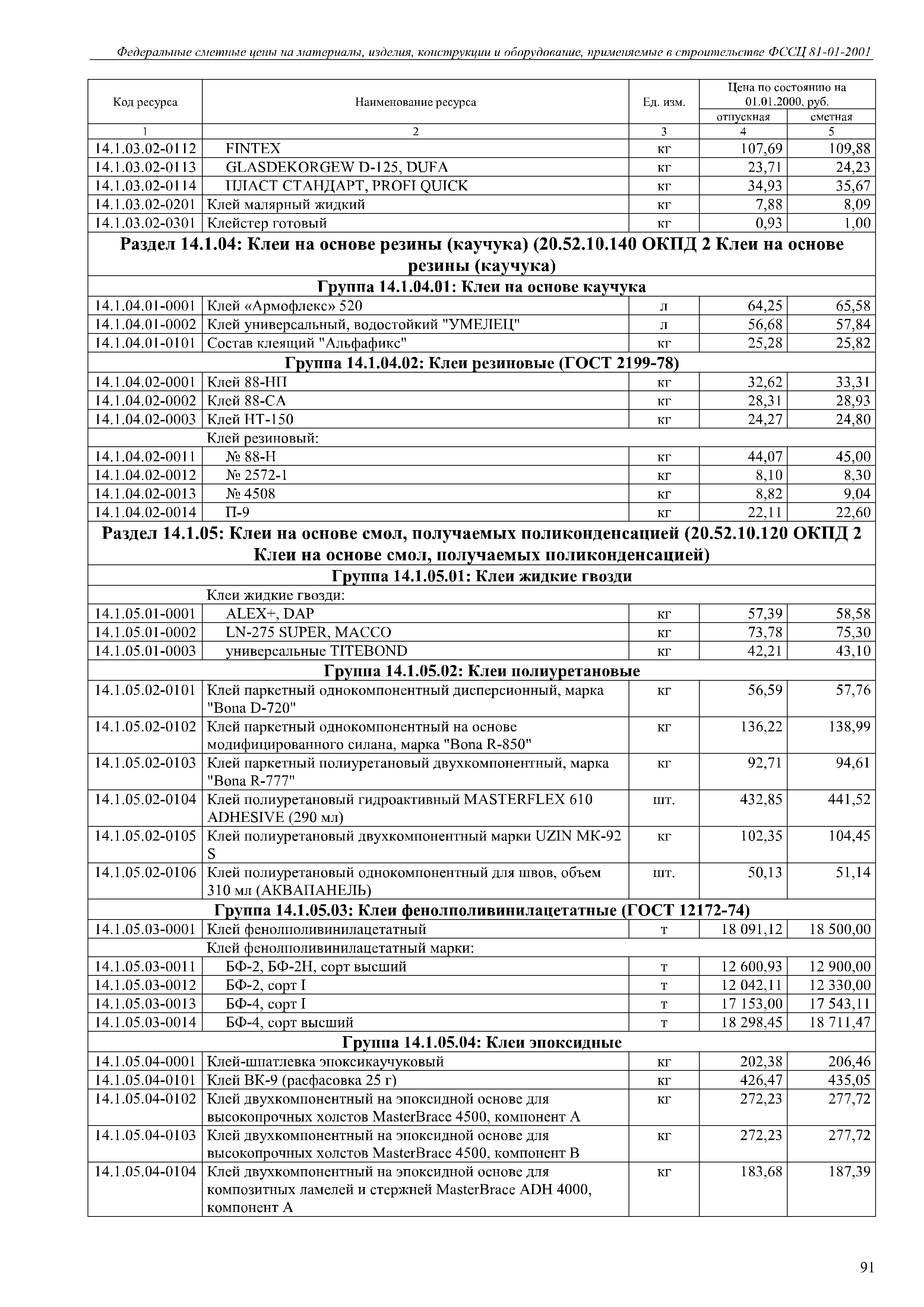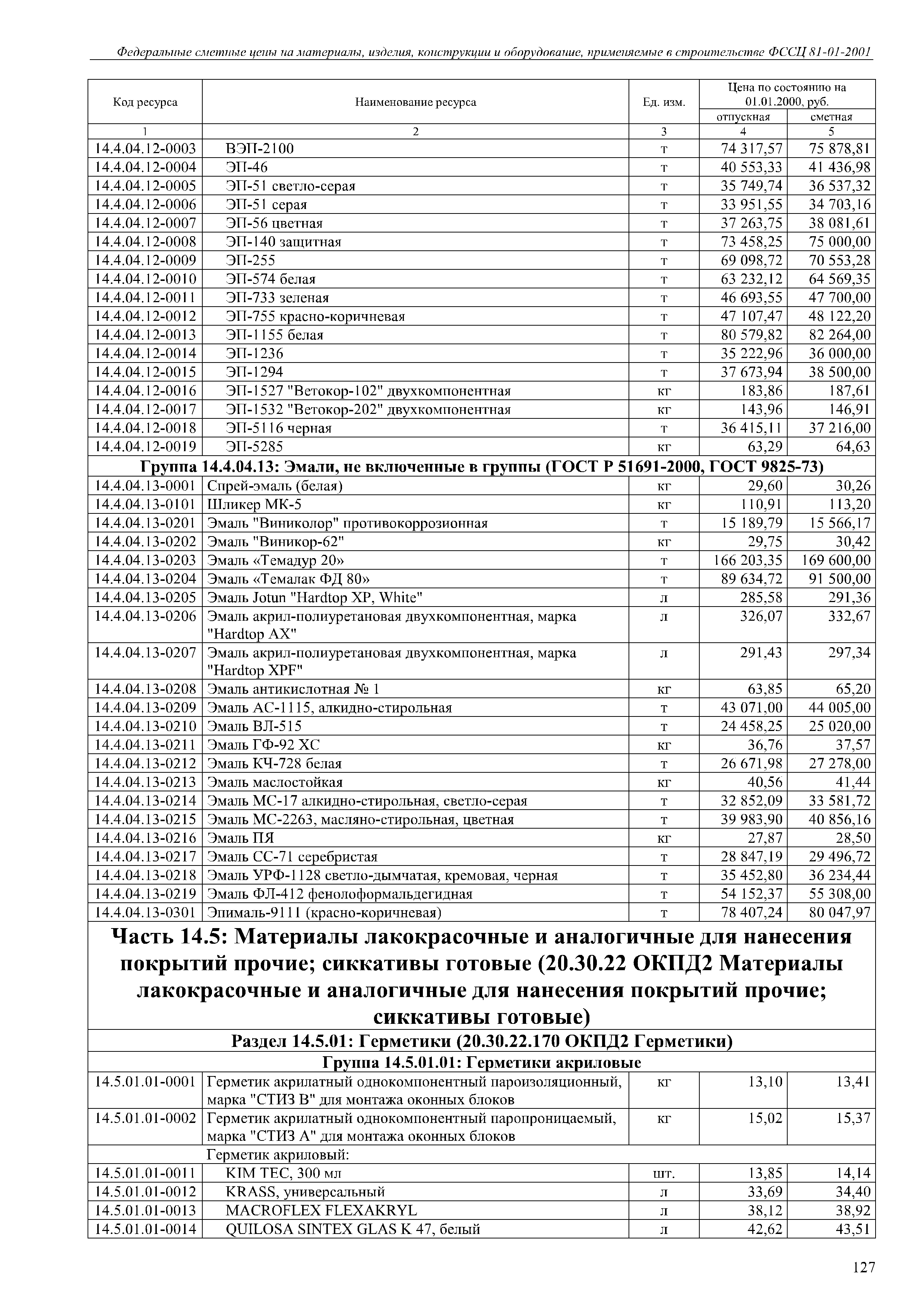 Скачать Книга 14: Материалы лакокрасочные, антикоррозийные, защитные и аналогичные покрытия, клеи. Федеральные сметные цены на материалы изделия, конструкции и оборудование, применяемые в строительстве. Федеральный сборник сметных цен на материалы, изделия и конструкции, применяемые в строительствеДата актуализации: 01.01.2021 |