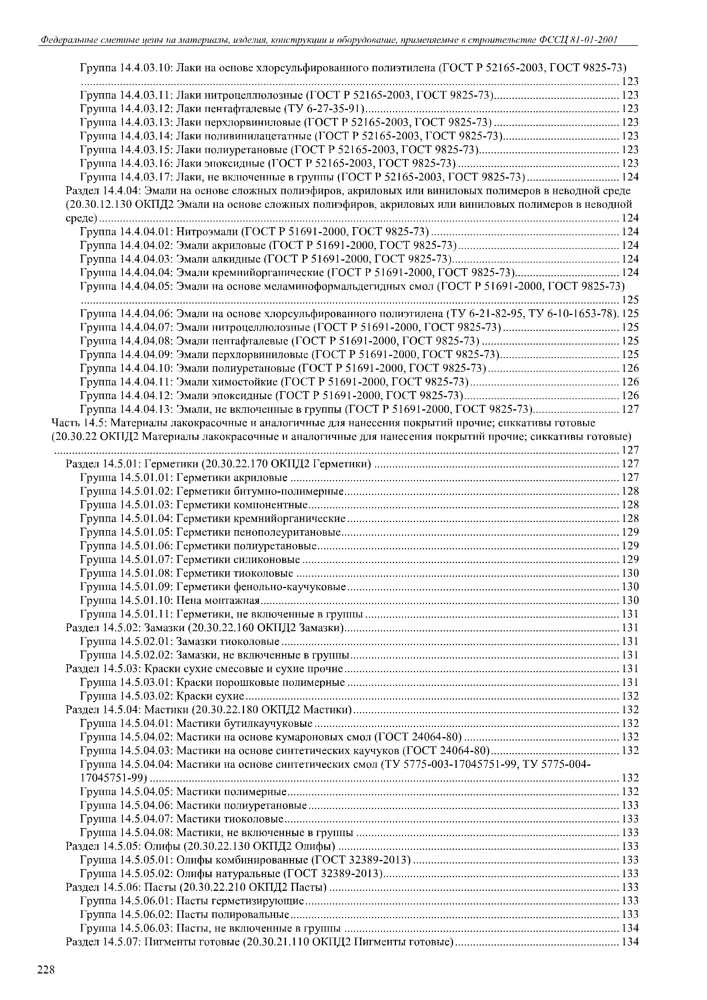 | Оглавление: | Часть 14.1: Клеи Раздел 14.1.01: Клеи животного происхождения Раздел 14.1.02: Клеи на основе полимеризационных смол Раздел 14.1.03: Клеи на основе природных химически модифицированных смол Раздел 14.1.04: Клеи на основе резины (каучука) Раздел 14.1.05: Клеи на основе смол, получаемых поликонденсацией Раздел 14.1.06: Клеи прочие (смеси клеевые) Часть 14.2: Материалы для антикоррозионных и защитных покрытий Раздел 14.2.01: Композиции Раздел 14.2.02: Материалы и изделия огнезащиты Раздел 14.2.03: Покрытия защиты Раздел 14.2.04: Смолы Раздел 14.2.05: Составы защиты Раздел 14.2.06: Материалы для антикоррозионных и защитных покрытий прочие Часть 14.3: Материалы лакокрасочные на основе акриловых или виниловых полимеров в водной среде Раздел 14.3.01: Грунтовки на основе акриловых или виниловых полимеров в водной среде Раздел 14.3.02: Краски на основе акриловых или виниловых полимеров в водной среде Раздел 14.3.03: Лаки на основе акриловых или виниловых полимеров в водной среде Часть 14.4: Материалы лакокрасочные на основе сложных полиэфиров, акриловых или виниловых полимеров в неводной среде; растворы Раздел 14.4.01: Грунтовки на основе сложных полиэфиров, акриловых или виниловых полимеров в неводной среде Раздел 14.4.02: Краски на основе сложных полиэфиров, акриловых или виниловых полимеров в неводной среде Раздел 14.4.03: Лаки на основе сложных полиэфиров, акриловых или виниловых полимеров в неводной среде Раздел 14.4.04: Эмали на основе сложных полиэфиров, акриловых или виниловых полимеров в неводной среде Часть 14.5: Материалы лакокрасочные и аналогичные для нанесения покрытий прочие; сиккативы готовые Раздел 14.5.01: Герметики Раздел 14.5.02: Замазки Раздел 14.5.03: Краски сухие смесовые и сухие прочие Раздел 14.5.04: Мастики Раздел 14.5.05: Олифы Раздел 14.5.06: Пасты Раздел 14.5.07: Пигменты готовые Раздел 14.5.08: Покрытия декоративные Раздел 14.5.09: Растворители и разбавители, смывки Раздел 14.5.10: Сиккативы готовые Раздел 14.5.11: Шпатлевки |