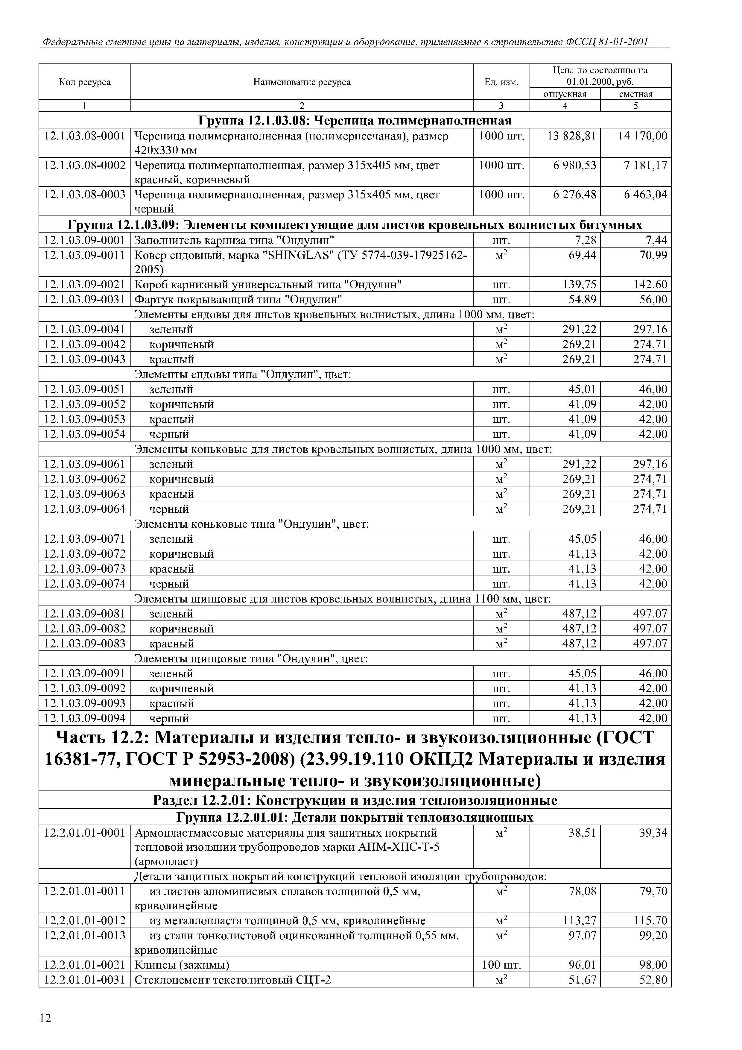 | Оглавление: | Часть 12.1: Материалы и изделия кровельные, гидро- и пароизоляционные Раздел 12.1.01: Материалы и изделия для кровли Раздел 12.1.02: Материалы рулонные Раздел 12.1.03: Черепица Часть 12.2: Материалы и изделия тепло-и звукоизоляционные Раздел 12.2.01: Конструкции и изделия теплоизоляционные Раздел 12.2.02: Материалы и изделия звукоизоляционные Раздел 12.2.03: Материалы теплоизоляционные Раздел 12.2.04: Маты изоляционные Раздел 12.2.05: Плиты изоляционные Раздел 12.2.06: Скорлупы, сегменты Раздел 12.2.07: Трубки, рулоны Раздел 12.2.08: Цилиндры и полуцилиндры теплоизоляционные |