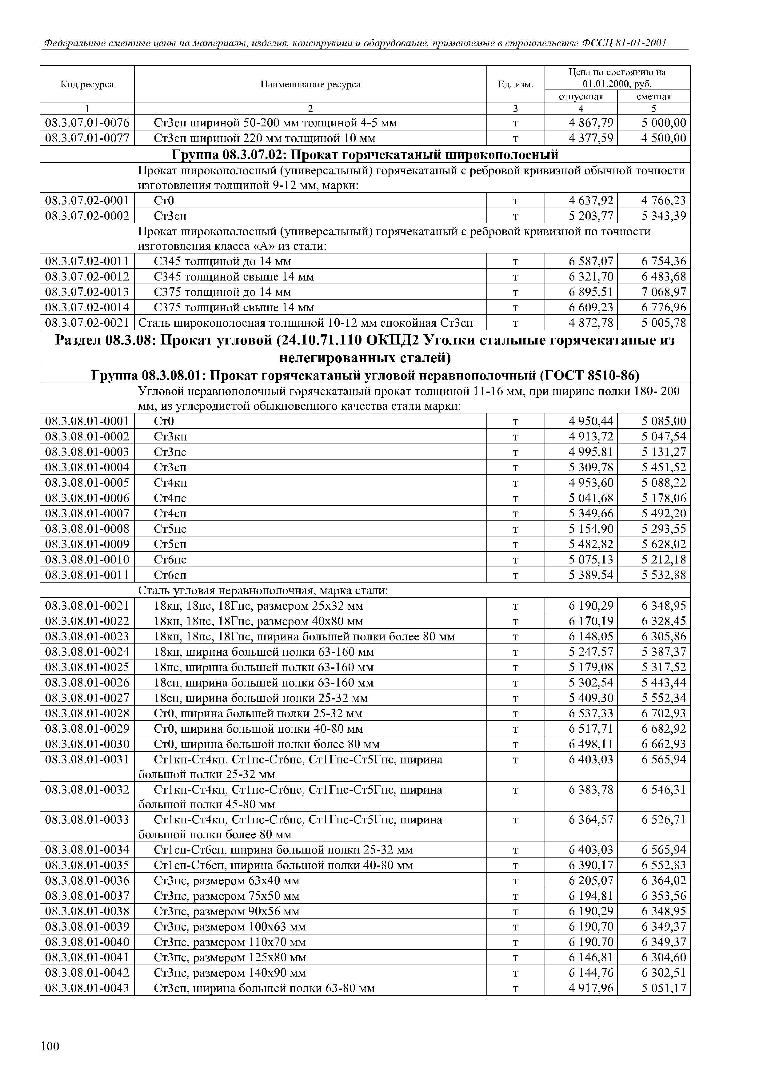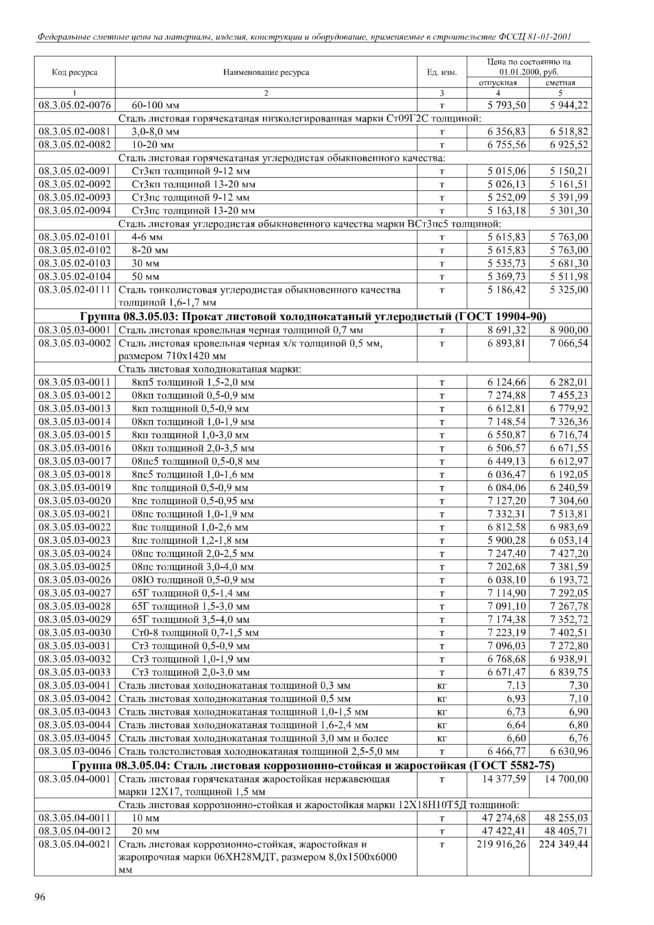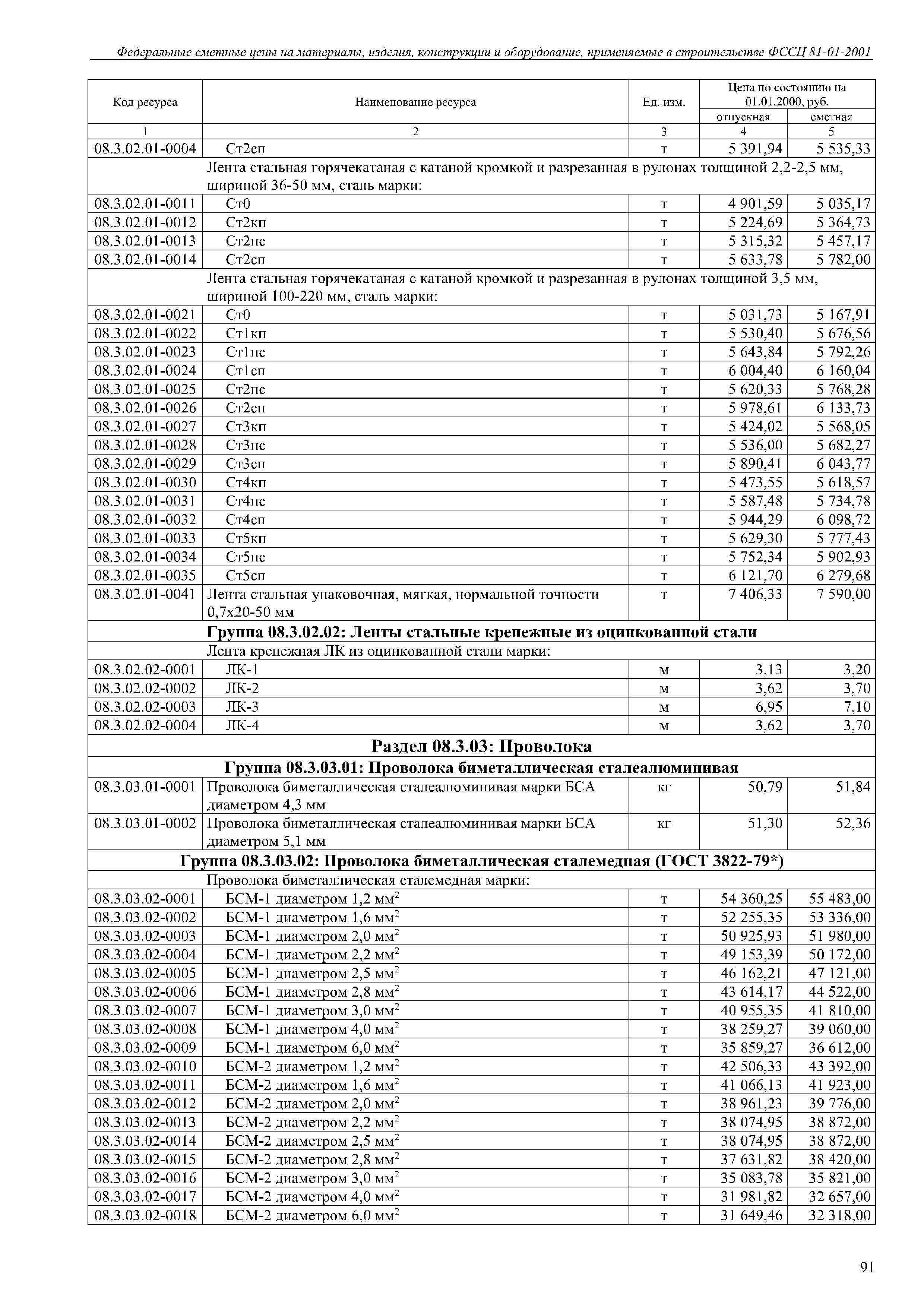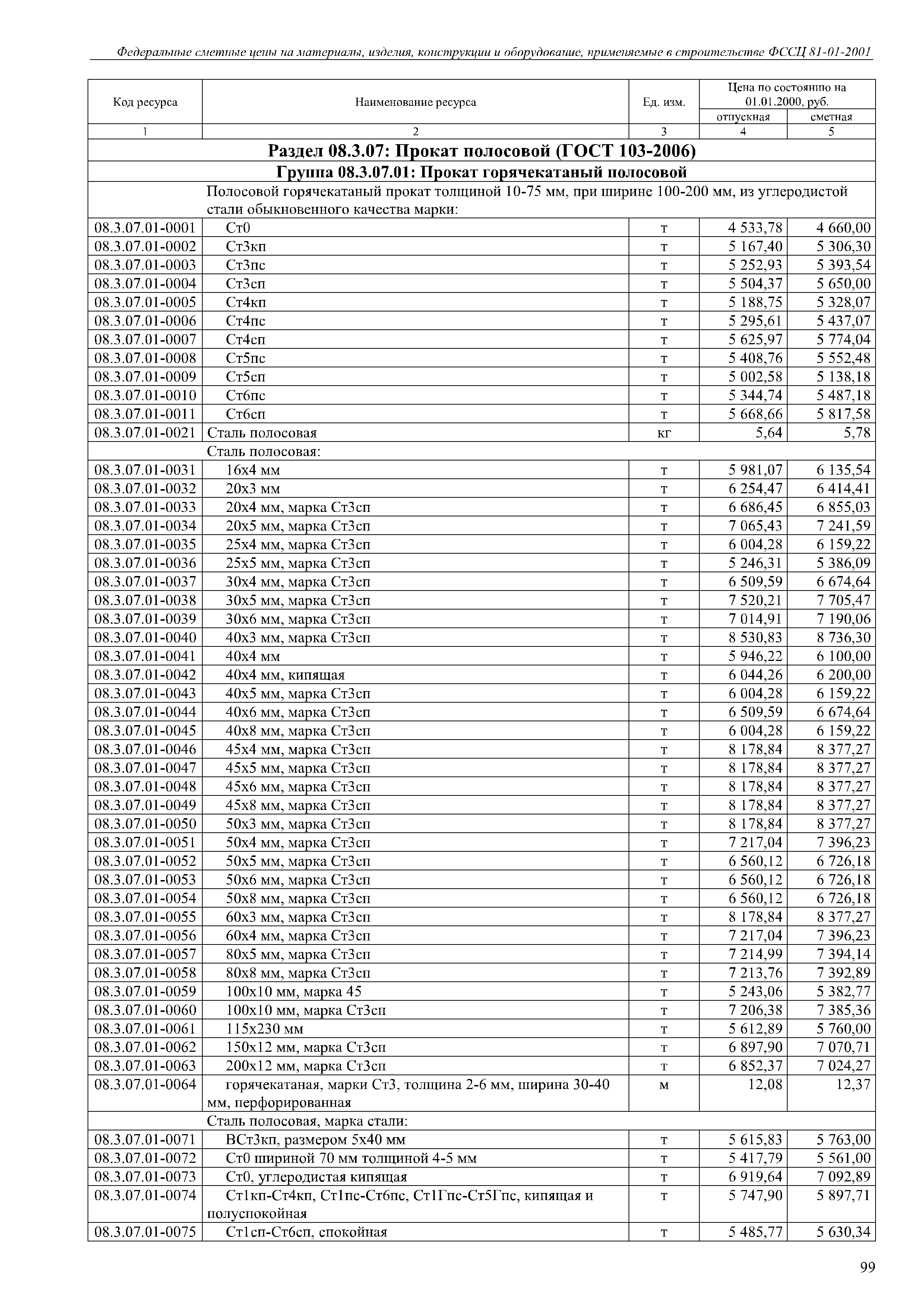 Книга 08: Изделия металлические, металлопрокат, канаты. Федеральные сметные цены на материалы изделия, конструкции и оборудование, применяемые в строительстве. Федеральный сборник сметных цен на материалы, изделия и конструкции, применяемые в строительстве| Статус: | действует | | Название рус.: | Книга 08: Изделия металлические, металлопрокат, канаты. Федеральные сметные цены на материалы изделия, конструкции и оборудование, применяемые в строительстве. Федеральный сборник сметных цен на материалы, изделия и конструкции, применяемые в строительстве | | Дата добавления в базу: | 05.05.2017 | | Дата актуализации: | 01.01.2021 | | Дата введения: | 28.04.2017 | | Область применения: | Государственные сметные нормативы "Федеральные сметные цены на материалы, изделия, конструкции и оборудование, применяемые в строительстве" предназначены для определения сметной стоимости строительства, реконструкции и капитального ремонта объектов капитального строительства. | | Оглавление: | Часть 08.1: Изделия из металла Раздел 08.1.01: Конструкции габионные Раздел 08.1.02: Металлоизделия общестроительного и специального назначения Раздел 08.1.03: Элементы вентиляционных камер и шахт Раздел 08.1.04: Элементы дымоходов Раздел 08.1.05: Элементы мусоропроводов Раздел 08.1.06: Элементы ограждений Часть 08.2: Канаты стальные Раздел 08.2.01: Канаты закрытые Раздел 08.2.02: Канаты круглые Раздел 08.2.03: Канаты плоские Раздел 08.2.04: Канаты стальные прочие Часть 08.3: Металлопрокат Раздел 08.3.01: Двутавры Раздел 08.3.02: Ленты стальные Раздел 08.3.03: Проволока Раздел 08.3.04: Прокат круглый и квадратный Раздел 08.3.05: Прокат листовой плоский Раздел 08.3.06: Прокат листовой рифленый и волнистый Раздел 08.3.07: Прокат полосовой Раздел 08.3.08: Прокат угловой Раздел 08.3.09: Профили гнутые Раздел 08.3.10: Профили фасонные Раздел 08.3.11: Швеллеры Раздел 08.3.12: Прокат и стали прочие Часть 08.4: Сталь арматурная Раздел 08.4.01: Детали закладные и накладные Раздел 08.4.02: Каркасы, сетки, пакеты Раздел 08.4.03: Сталь арматурная горячекатаная для железобетонных конструкций | | Утверждён: | 30.12.2016 Минстрой России (Russian Federation Minstroy 1039/пр)