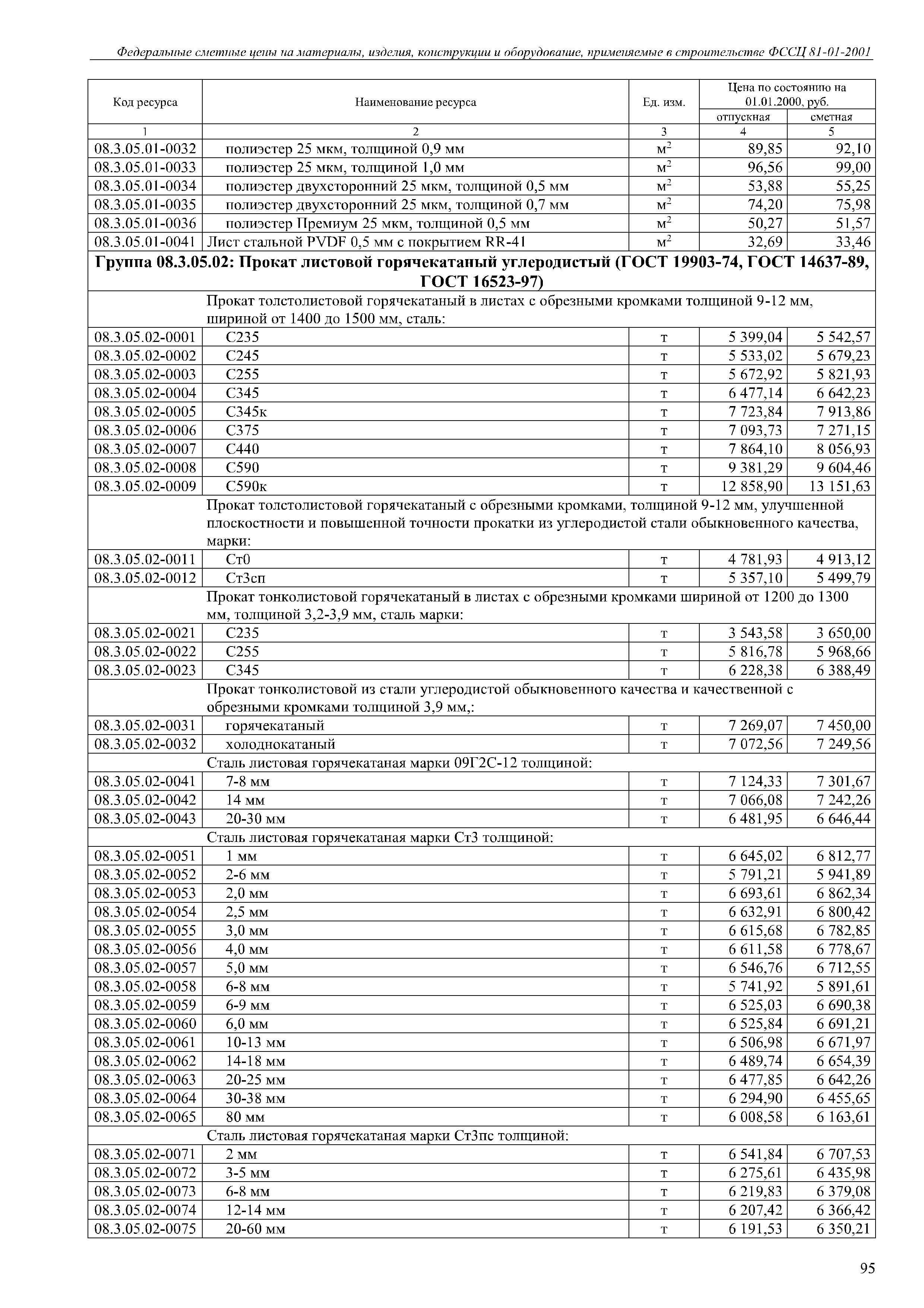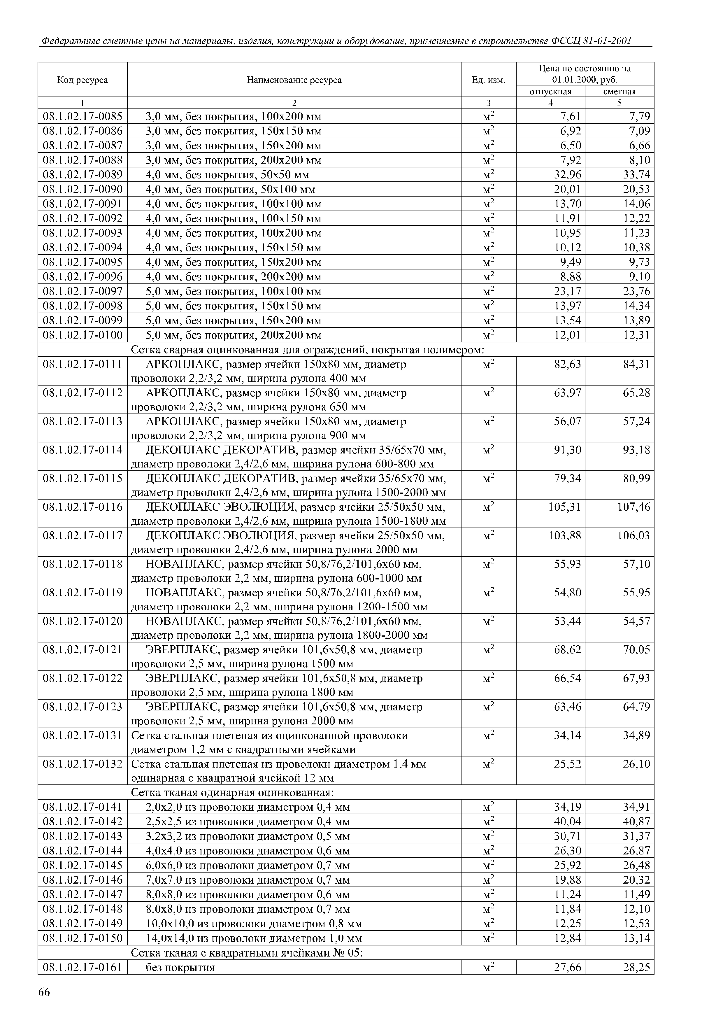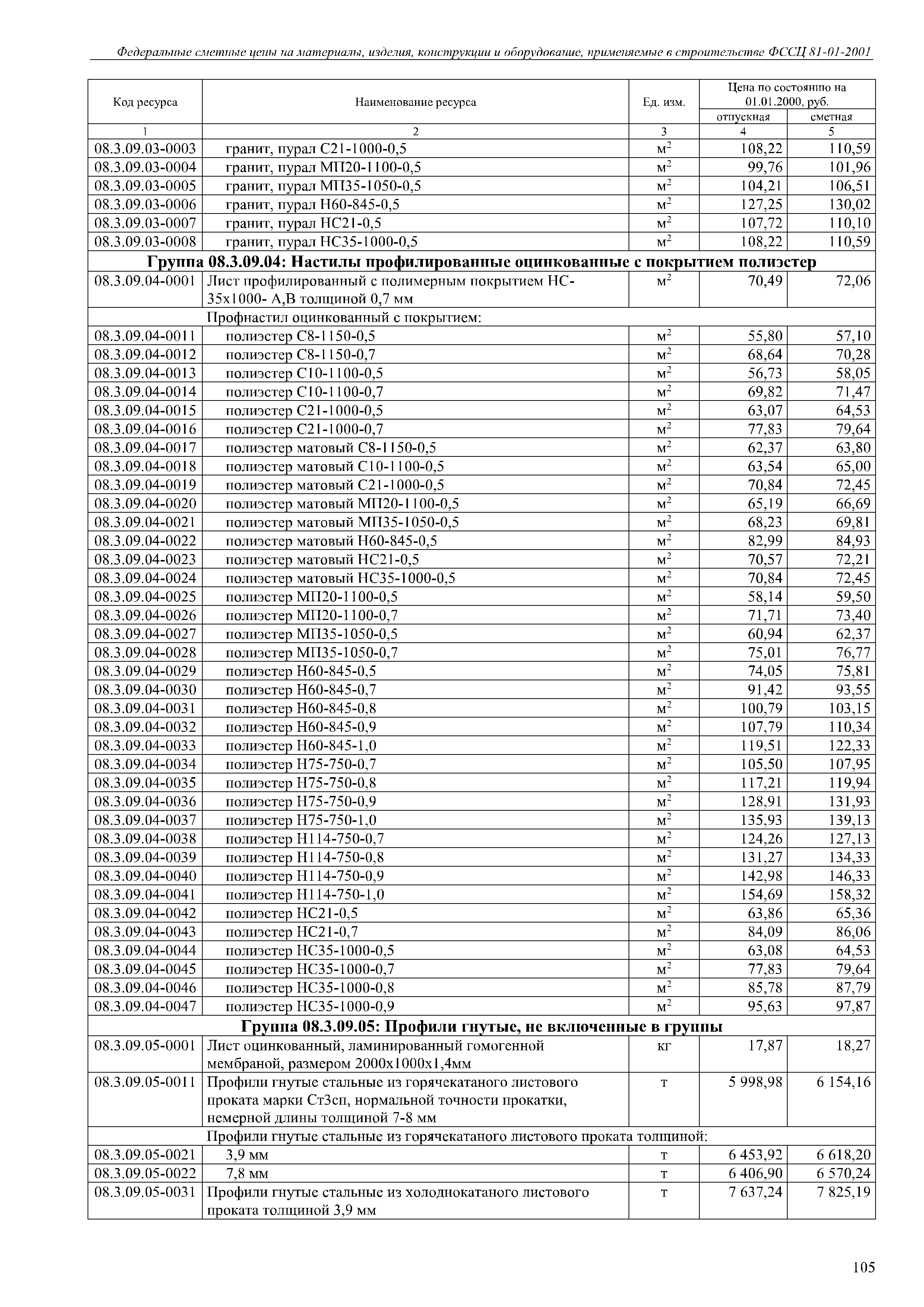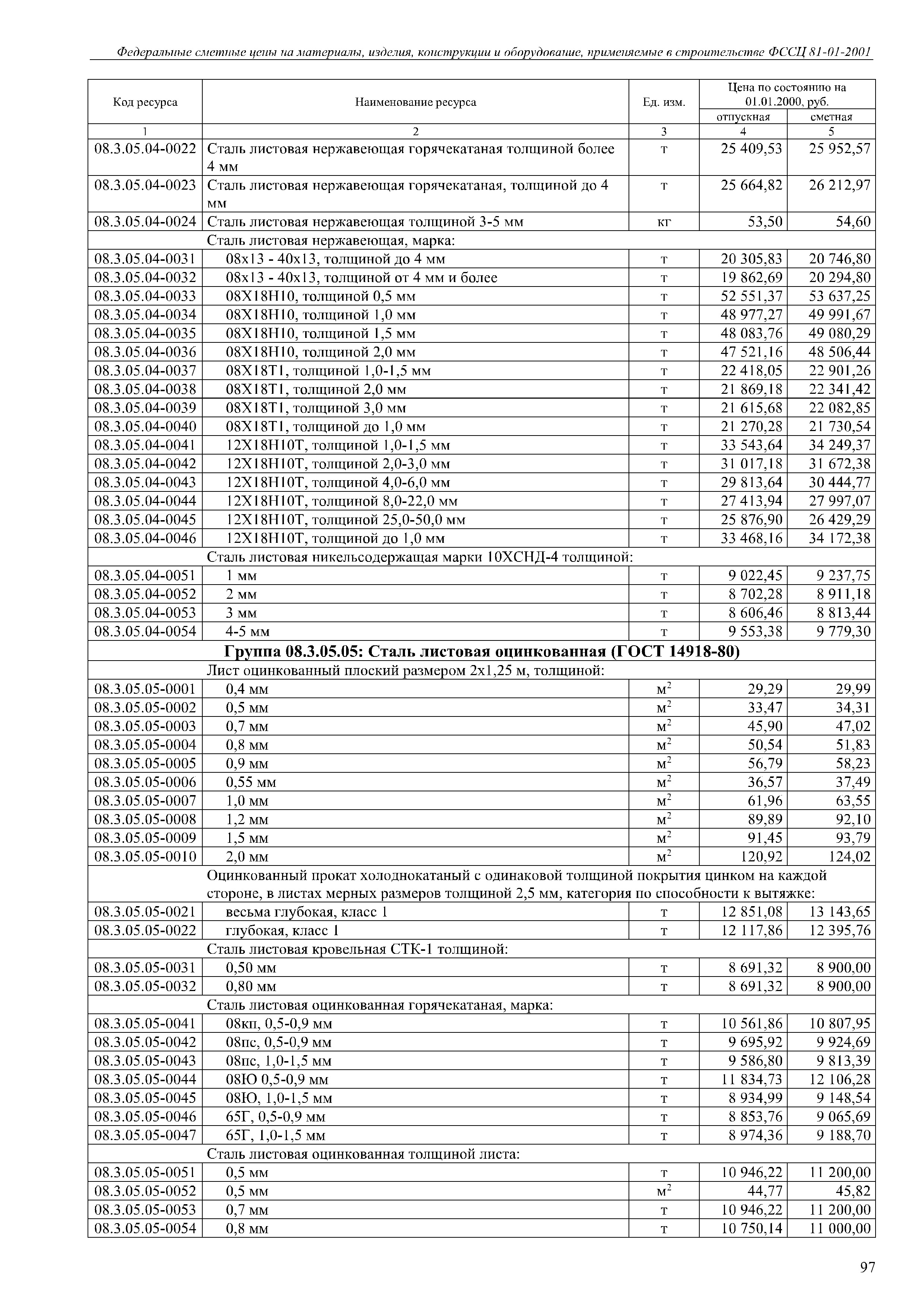 Книга 08: Изделия металлические, металлопрокат, канаты. Федеральные сметные цены на материалы изделия, конструкции и оборудование, применяемые в строительстве. Федеральный сборник сметных цен на материалы, изделия и конструкции, применяемые в строительстве| Статус: | действует | | Название рус.: | Книга 08: Изделия металлические, металлопрокат, канаты. Федеральные сметные цены на материалы изделия, конструкции и оборудование, применяемые в строительстве. Федеральный сборник сметных цен на материалы, изделия и конструкции, применяемые в строительстве | | Дата добавления в базу: | 05.05.2017 | | Дата актуализации: | 01.01.2021 | | Дата введения: | 28.04.2017 | | Область применения: | Государственные сметные нормативы "Федеральные сметные цены на материалы, изделия, конструкции и оборудование, применяемые в строительстве" предназначены для определения сметной стоимости строительства, реконструкции и капитального ремонта объектов капитального строительства. | | Оглавление: | Часть 08.1: Изделия из металла Раздел 08.1.01: Конструкции габионные Раздел 08.1.02: Металлоизделия общестроительного и специального назначения Раздел 08.1.03: Элементы вентиляционных камер и шахт Раздел 08.1.04: Элементы дымоходов Раздел 08.1.05: Элементы мусоропроводов Раздел 08.1.06: Элементы ограждений Часть 08.2: Канаты стальные Раздел 08.2.01: Канаты закрытые Раздел 08.2.02: Канаты круглые Раздел 08.2.03: Канаты плоские Раздел 08.2.04: Канаты стальные прочие Часть 08.3: Металлопрокат Раздел 08.3.01: Двутавры Раздел 08.3.02: Ленты стальные Раздел 08.3.03: Проволока Раздел 08.3.04: Прокат круглый и квадратный Раздел 08.3.05: Прокат листовой плоский Раздел 08.3.06: Прокат листовой рифленый и волнистый Раздел 08.3.07: Прокат полосовой Раздел 08.3.08: Прокат угловой Раздел 08.3.09: Профили гнутые Раздел 08.3.10: Профили фасонные Раздел 08.3.11: Швеллеры Раздел 08.3.12: Прокат и стали прочие Часть 08.4: Сталь арматурная Раздел 08.4.01: Детали закладные и накладные Раздел 08.4.02: Каркасы, сетки, пакеты Раздел 08.4.03: Сталь арматурная горячекатаная для железобетонных конструкций | | Утверждён: | 30.12.2016 Минстрой России (Russian Federation Minstroy 1039/пр)