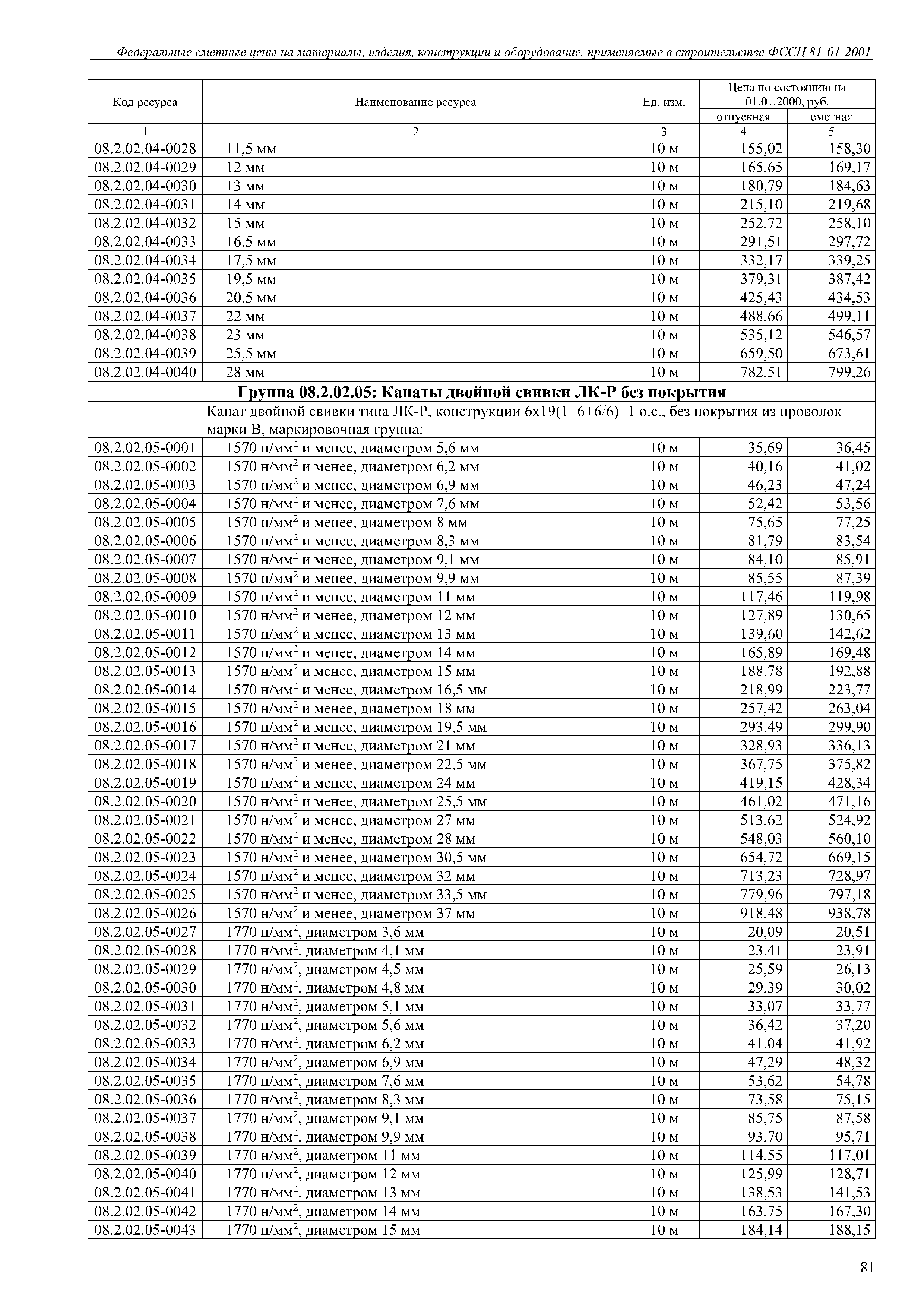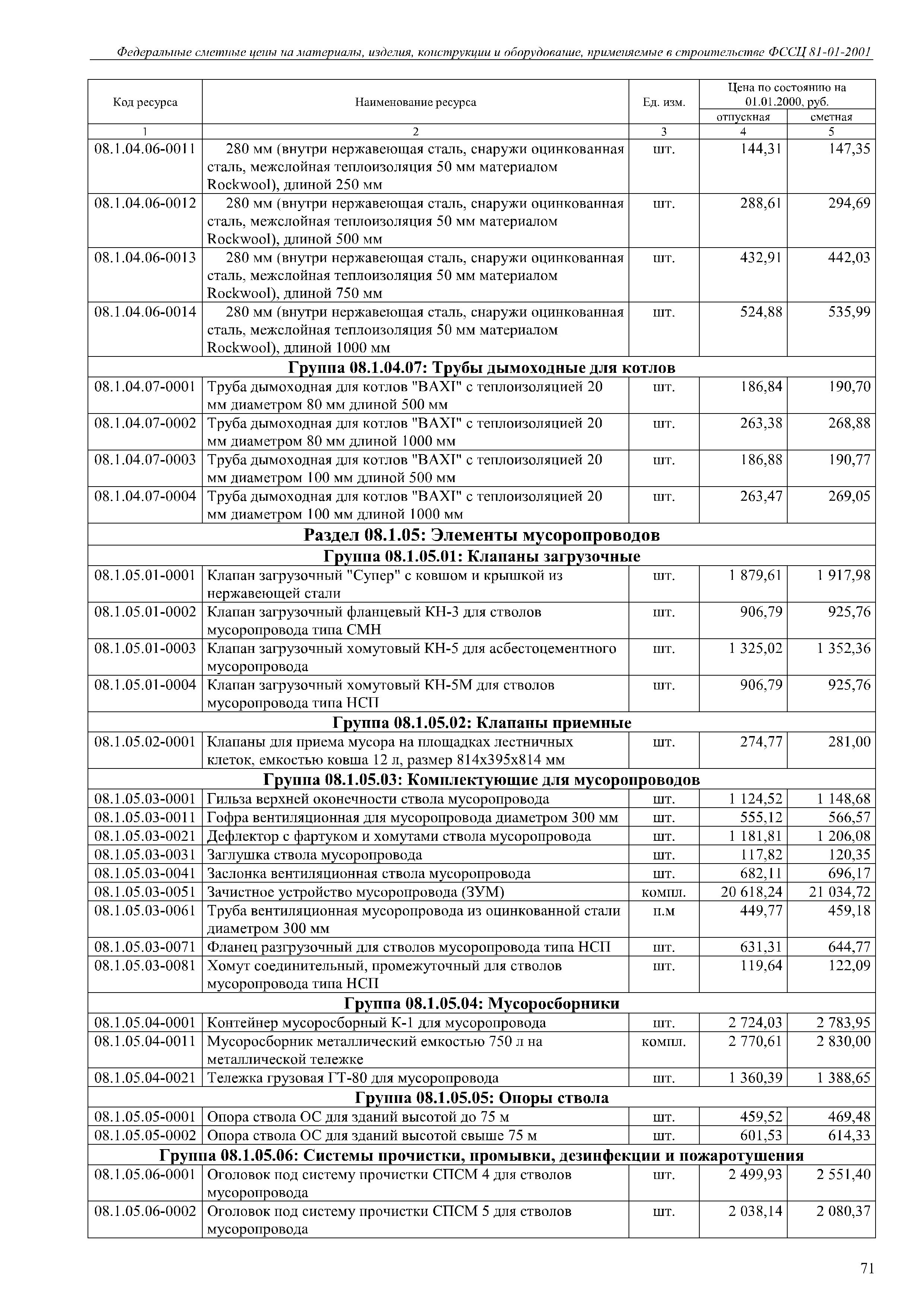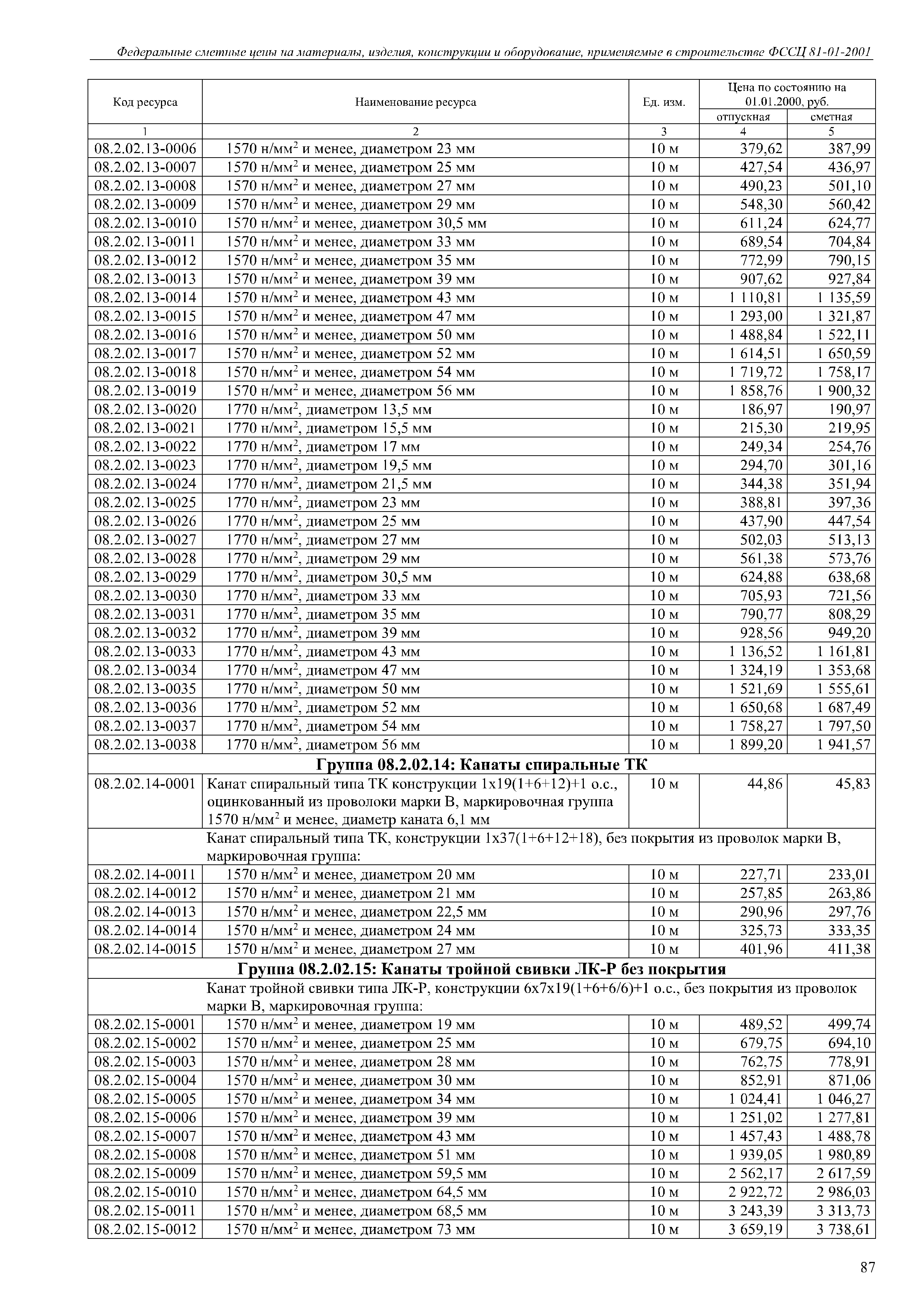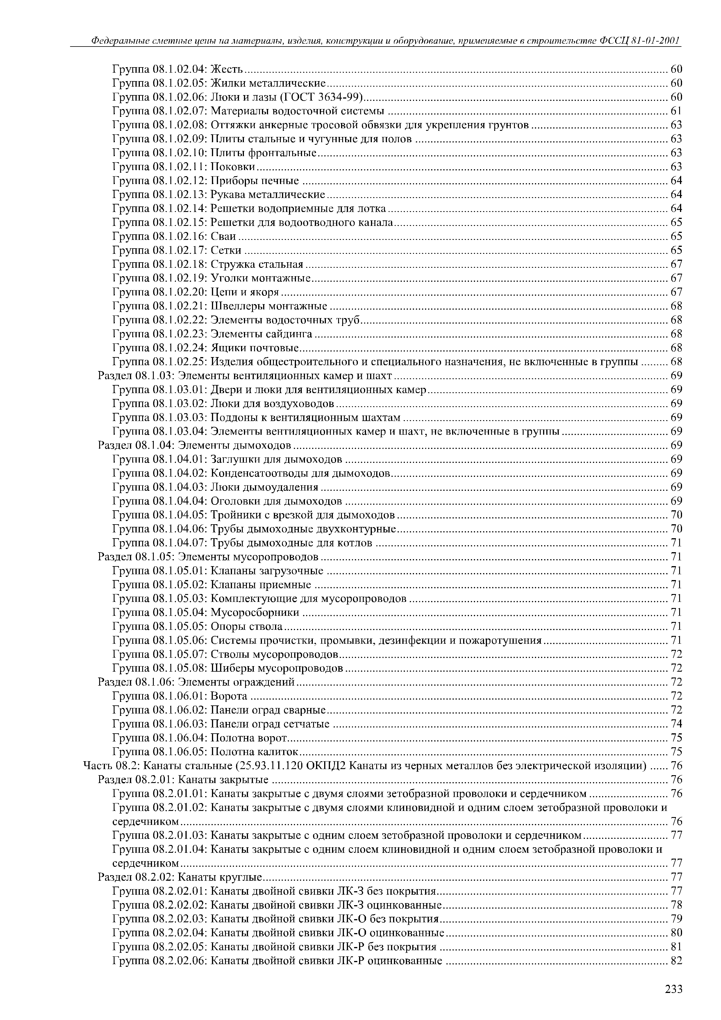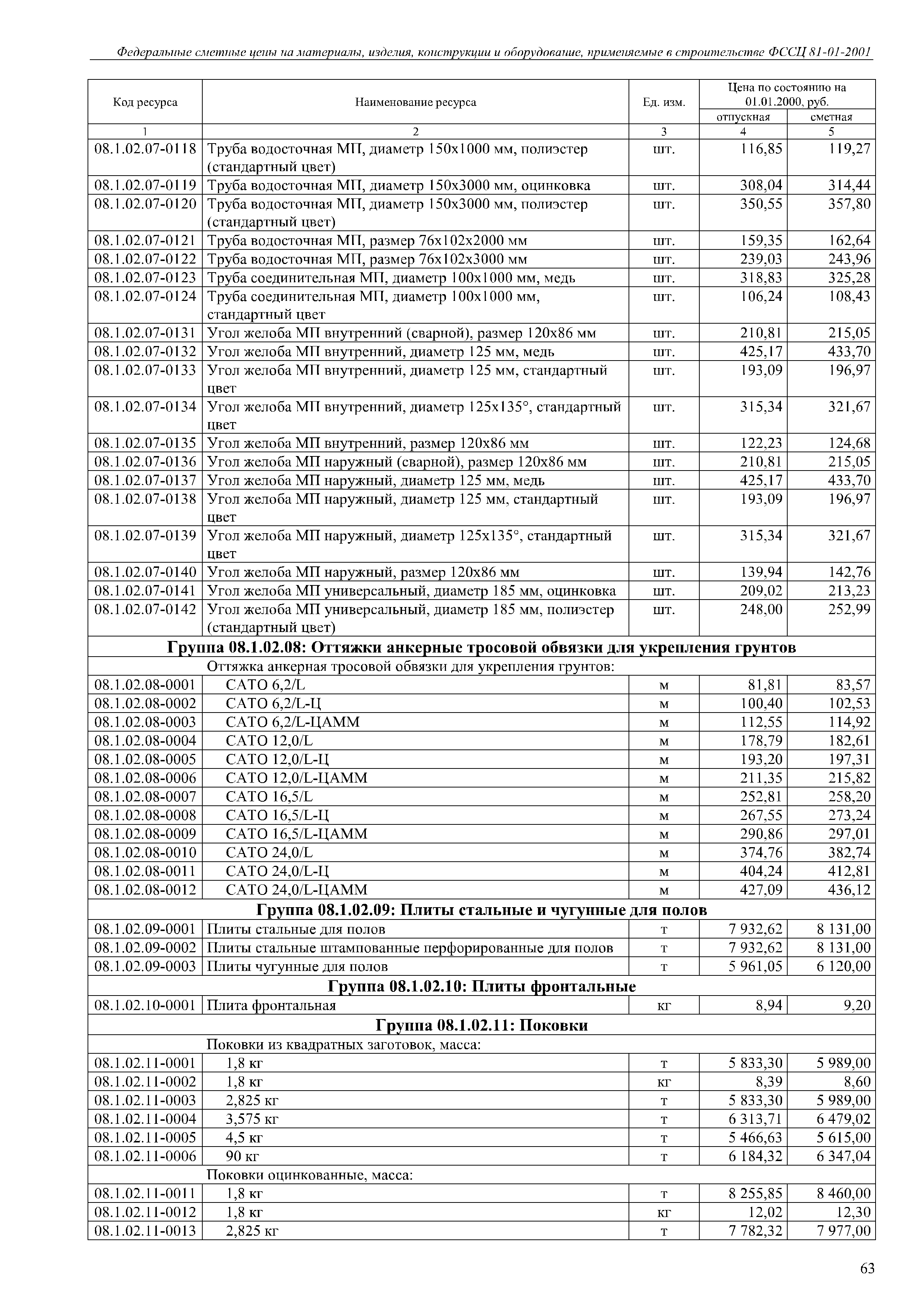 Книга 08: Изделия металлические, металлопрокат, канаты. Федеральные сметные цены на материалы изделия, конструкции и оборудование, применяемые в строительстве. Федеральный сборник сметных цен на материалы, изделия и конструкции, применяемые в строительстве| Статус: | действует | | Название рус.: | Книга 08: Изделия металлические, металлопрокат, канаты. Федеральные сметные цены на материалы изделия, конструкции и оборудование, применяемые в строительстве. Федеральный сборник сметных цен на материалы, изделия и конструкции, применяемые в строительстве | | Дата добавления в базу: | 05.05.2017 | | Дата актуализации: | 01.01.2021 | | Дата введения: | 28.04.2017 | | Область применения: | Государственные сметные нормативы "Федеральные сметные цены на материалы, изделия, конструкции и оборудование, применяемые в строительстве" предназначены для определения сметной стоимости строительства, реконструкции и капитального ремонта объектов капитального строительства. | | Оглавление: | Часть 08.1: Изделия из металла Раздел 08.1.01: Конструкции габионные Раздел 08.1.02: Металлоизделия общестроительного и специального назначения Раздел 08.1.03: Элементы вентиляционных камер и шахт Раздел 08.1.04: Элементы дымоходов Раздел 08.1.05: Элементы мусоропроводов Раздел 08.1.06: Элементы ограждений Часть 08.2: Канаты стальные Раздел 08.2.01: Канаты закрытые Раздел 08.2.02: Канаты круглые Раздел 08.2.03: Канаты плоские Раздел 08.2.04: Канаты стальные прочие Часть 08.3: Металлопрокат Раздел 08.3.01: Двутавры Раздел 08.3.02: Ленты стальные Раздел 08.3.03: Проволока Раздел 08.3.04: Прокат круглый и квадратный Раздел 08.3.05: Прокат листовой плоский Раздел 08.3.06: Прокат листовой рифленый и волнистый Раздел 08.3.07: Прокат полосовой Раздел 08.3.08: Прокат угловой Раздел 08.3.09: Профили гнутые Раздел 08.3.10: Профили фасонные Раздел 08.3.11: Швеллеры Раздел 08.3.12: Прокат и стали прочие Часть 08.4: Сталь арматурная Раздел 08.4.01: Детали закладные и накладные Раздел 08.4.02: Каркасы, сетки, пакеты Раздел 08.4.03: Сталь арматурная горячекатаная для железобетонных конструкций | | Утверждён: | 30.12.2016 Минстрой России (Russian Federation Minstroy 1039/пр)