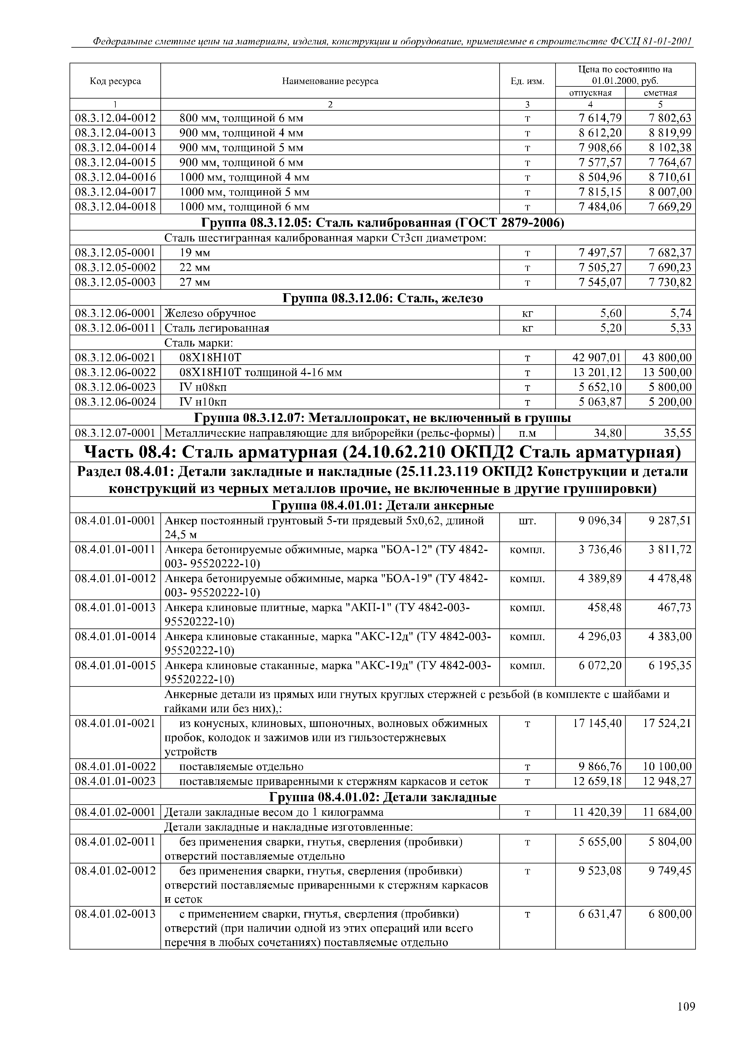 Скачать Книга 08: Изделия металлические, металлопрокат, канаты. Федеральные сметные цены на материалы изделия, конструкции и оборудование, применяемые в строительстве. Федеральный сборник сметных цен на материалы, изделия и конструкции, применяемые в строительствеДата актуализации: 01.01.2021