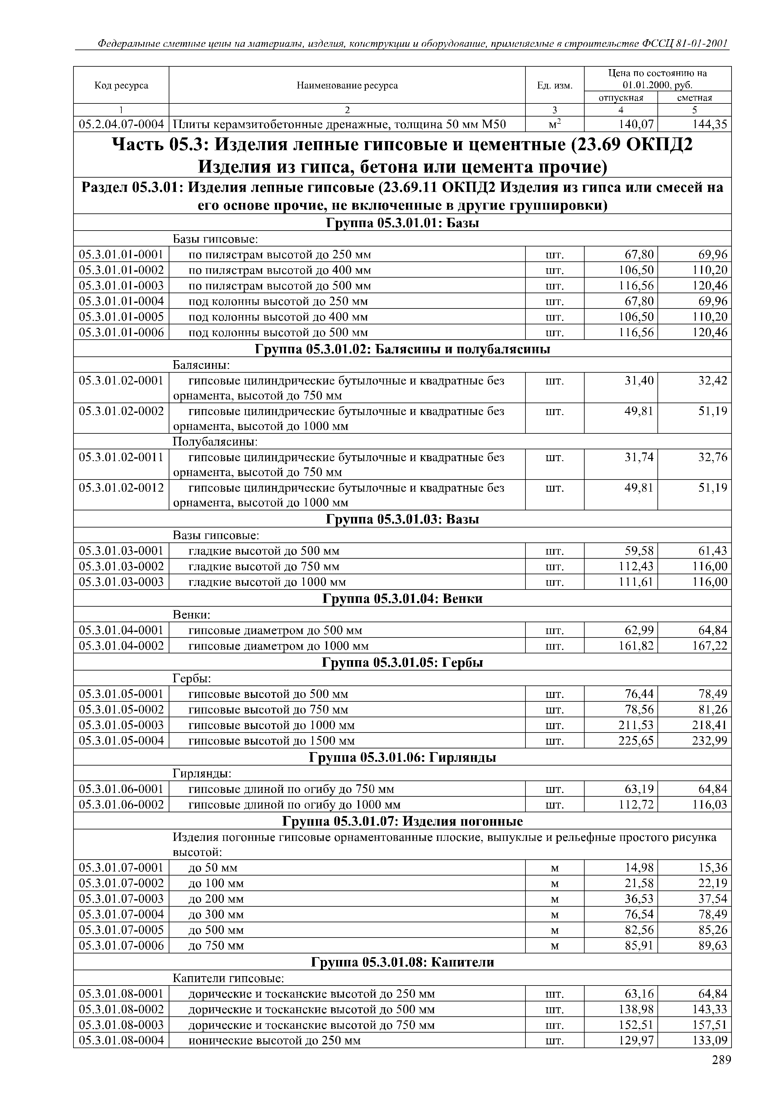 | Оглавление: | Часть 05.1: Конструкции и изделия сборные железобетонные Раздел 05.1.01: Конструкции и детали инженерных сооружений Раздел 05.1.02: Конструкции и детали специального назначения Раздел 05.1.03: Конструкции каркаса зданий и сооружений Раздел 05.1.04: Конструкции стен и перегородок Раздел 05.1.05: Конструкции фундаментов Раздел 05.1.06: Плиты, панели и настилы перекрытий и покрытий Раздел 05.1.07: Элементы конструктивные и архитектурно-строительные зданий и сооружений Раздел 05.1.08: Конструкции строительные прочие Часть 05.2: Плиты, кирпичи и аналогичные изделия из цемента, бетона или искусственного камня Раздел 05.2.01: Блоки силикатные Раздел 05.2.02: Изделия из цемента, бетона или искусственного камня Раздел 05.2.03: Кирпичи строительные (включая камни) из цемента, бетона или искусственного камня Раздел 05.2.04: Плиты из цемента, бетона или искусственного камня Часть 05.3: Изделия лепные гипсовые и цементные Раздел 05.3.0 1: Изделия лепные гипсовые Раздел 05.3.02: Изделия лепные цементные Часть 05.4: Изделия из гипса строительные Раздел 05.4.01: Камни, панели и плиты из гипса |