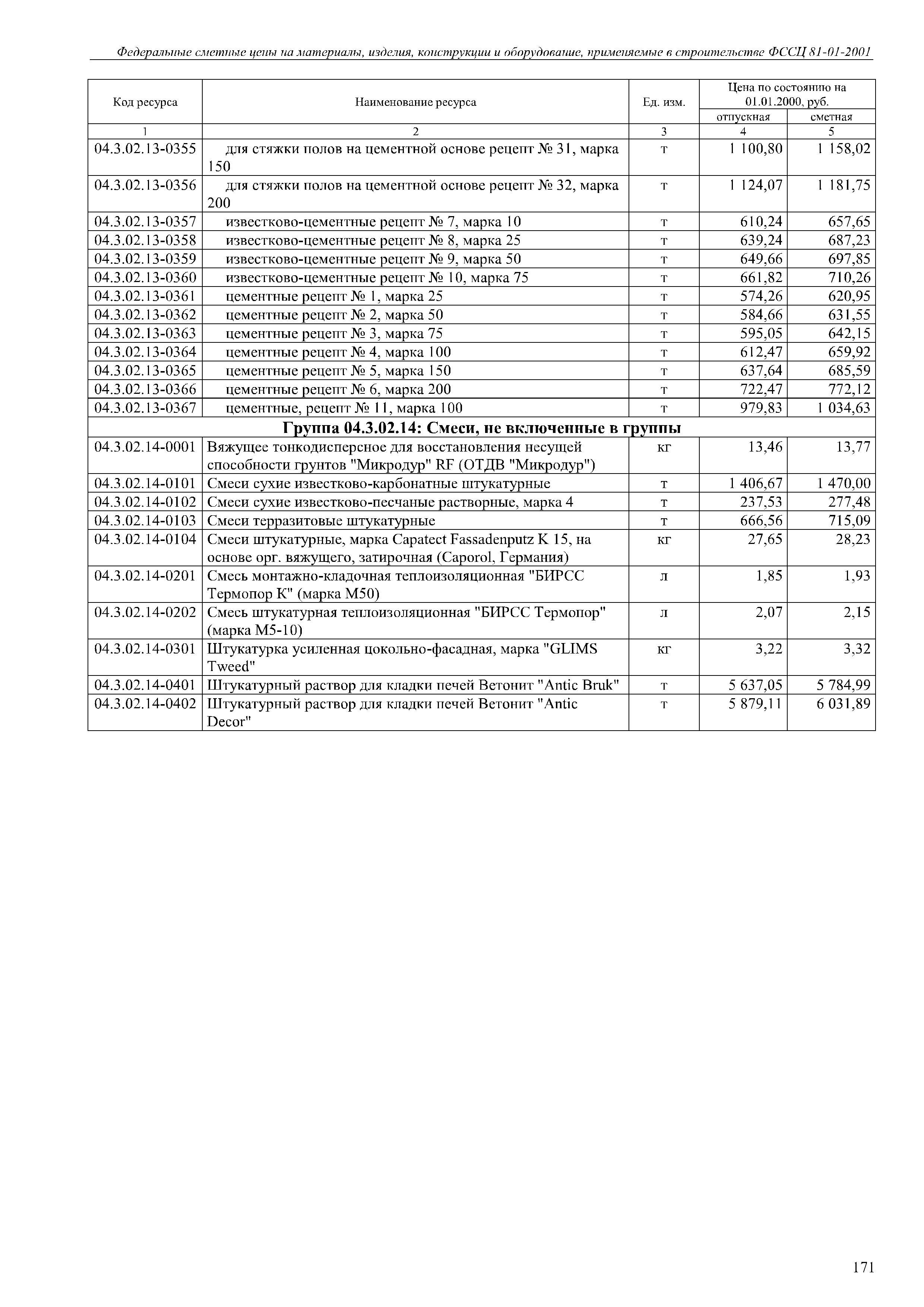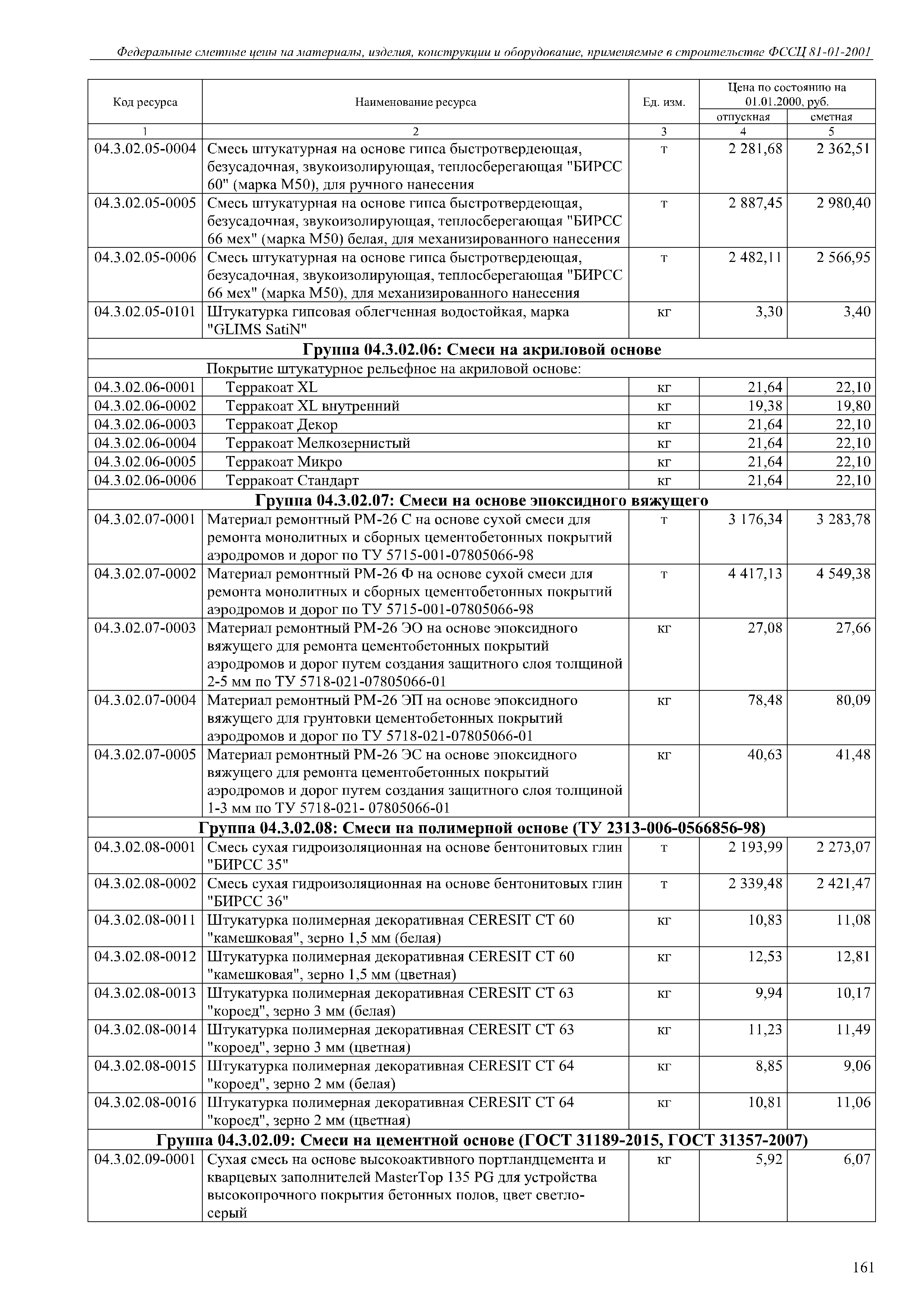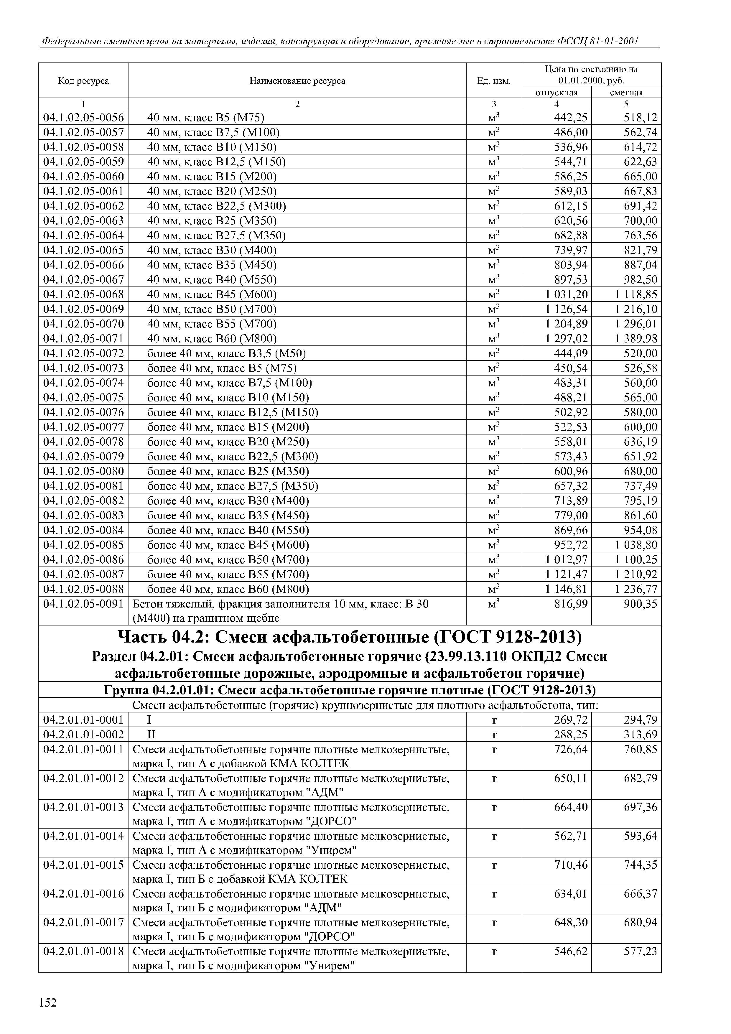 | Оглавление: | Часть 04.1: Бетоны готовые к употреблению Раздел 04.1.0 1: Бетоны легкие Раздел 04.1.02: Бетоны тяжелые и мелкозернистые Часть 04.2: Смеси асфальтобетонные Раздел 04.2.01: Смеси асфальтобетонные горячие Раздел 04.2.02: Смеси асфальтобетонные горячие литые Раздел 04.2.03: Смеси асфальтобетонные горячие щебено-мастичные Раздел 04.2.04: Смеси асфальтобетонные и асфальтобетон холодный Раздел 04.2.05: Смеси асфальтобетонные с применением композиционных материалов Часть 04.3: Смеси и растворы строительные Раздел 04.3.01: Растворы Раздел 04.3.02: Смеси |