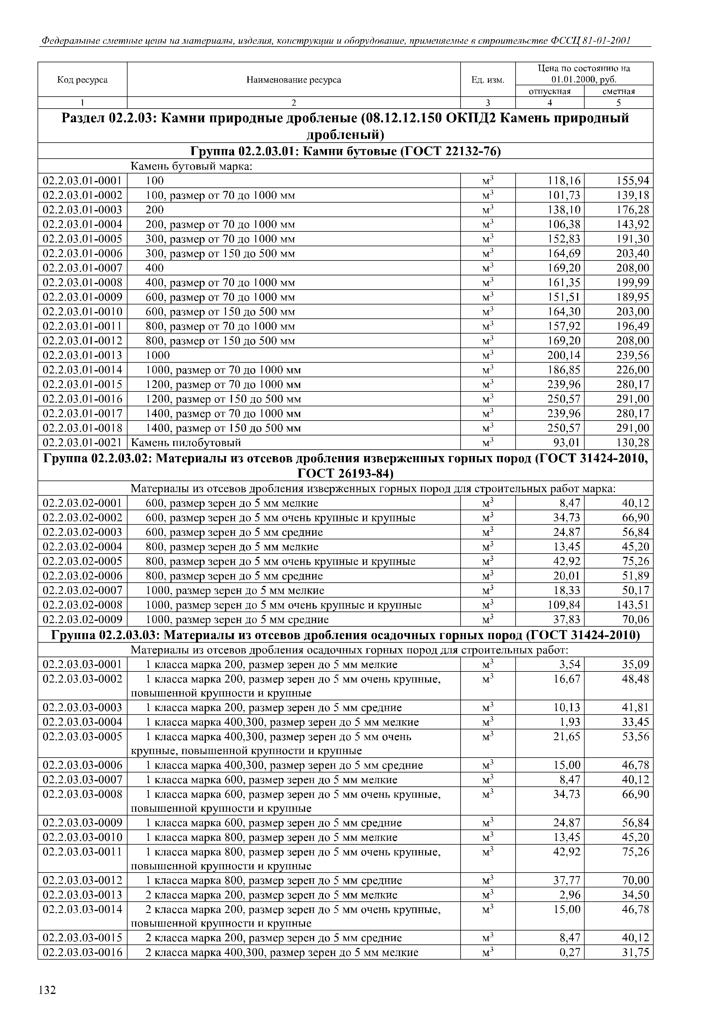 Книга 02: Щебень, гравий, песок, шлаки, смеси, глины, грунты. Федеральные сметные цены на материалы изделия, конструкции и оборудование, применяемые в строительстве. Федеральный сборник сметных цен на материалы, изделия и конструкции, применяемые в строительстве| Статус: | действует | | Название рус.: | Книга 02: Щебень, гравий, песок, шлаки, смеси, глины, грунты. Федеральные сметные цены на материалы изделия, конструкции и оборудование, применяемые в строительстве. Федеральный сборник сметных цен на материалы, изделия и конструкции, применяемые в строительстве | | Дата добавления в базу: | 05.05.2017 | | Дата актуализации: | 01.01.2021 | | Дата введения: | 28.04.2017 | | Область применения: | Государственные сметные нормативы "Федеральные сметные цены на материалы, изделия, конструкции и оборудование, применяемые в строительстве" предназначены для определения сметной стоимости строительства, реконструкции и капитального ремонта объектов капитального строительства. | | Оглавление: | Часть 02.1: Глины, грунты, смеси грунтосодержащие Раздел 02.1.01: Глины, грунты Раздел 02.1.02: Смеси грунтосодержащие Часть 02.2: Гранулы каменные, крошка и порошки, галька, гравий, щебень, смеси Раздел 02.2.01: Галька, гравий Раздел 02.2.02: Гранулы каменные, крошка и порошки Раздел 02.2.03: Камни природные дробленые Раздел 02.2.04: Смеси Раздел 02.2.05: Щебень Часть 02.3: Песок Раздел 02.3.01: Песок строительный и декоративный Часть 02.4: Смеси шлака и аналогичных промышленных отходов Раздел 02.4.01: Песок шлаковый Раздел 02.4.02: Смеси шлаковые Раздел 02.4.03: Щебень шлаковый | | Утверждён: | 30.12.2016 Минстрой России (Russian Federation Minstroy 1039/пр)