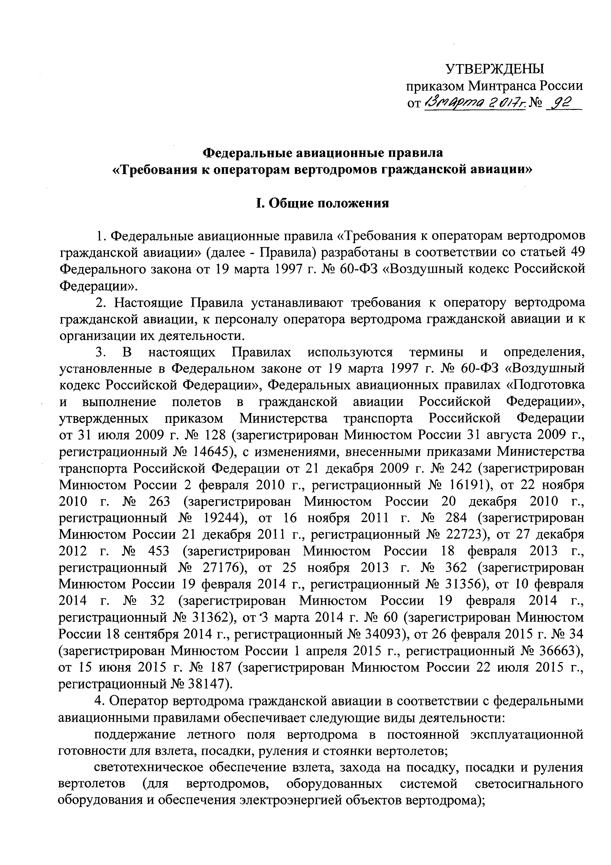 | Название рус.: | Федеральные авиационные правила "Требования к операторам вертодромов гражданской авиации" |