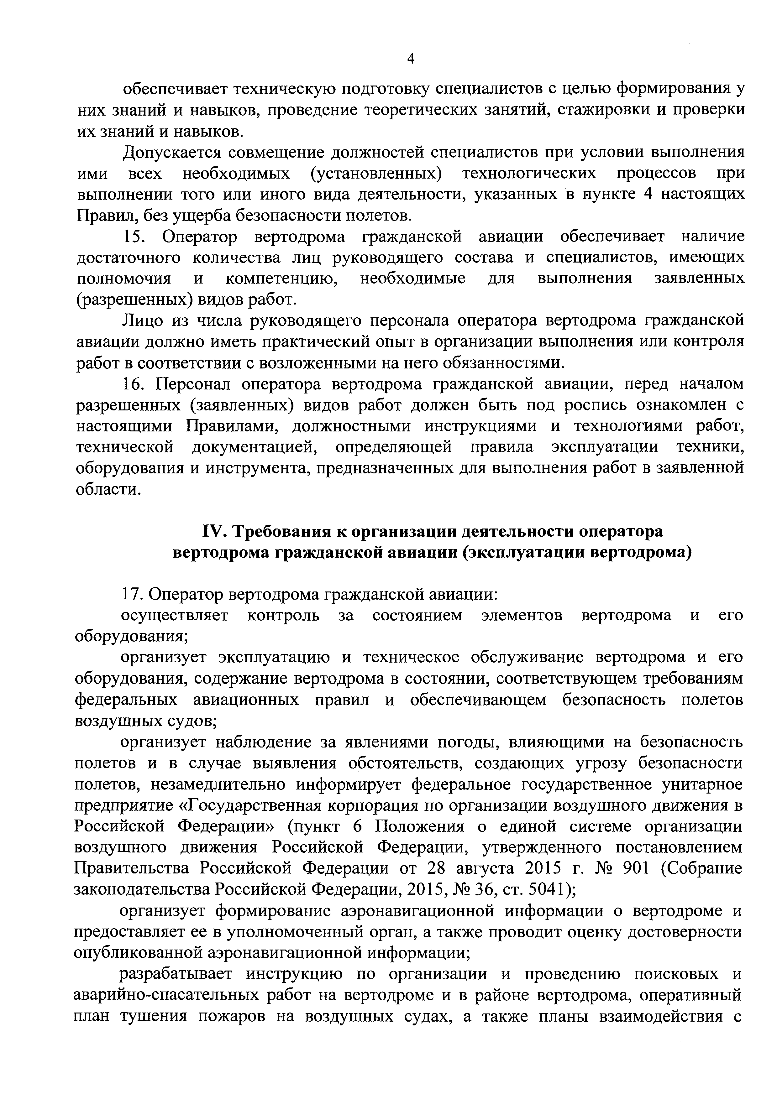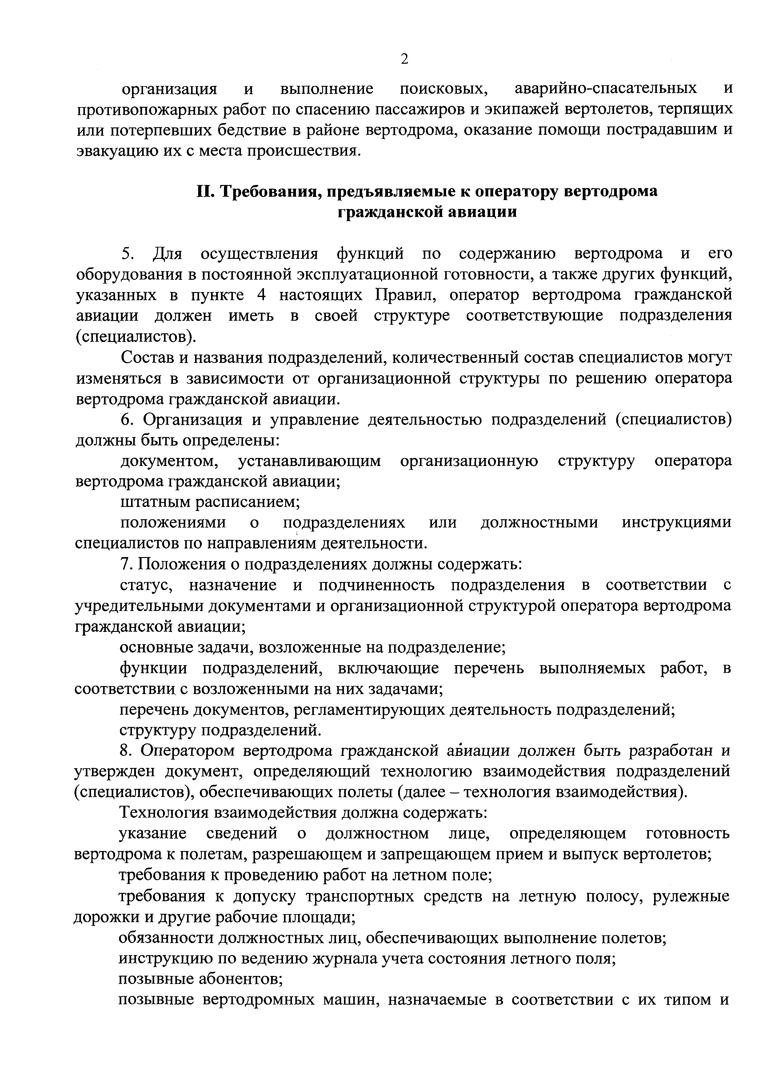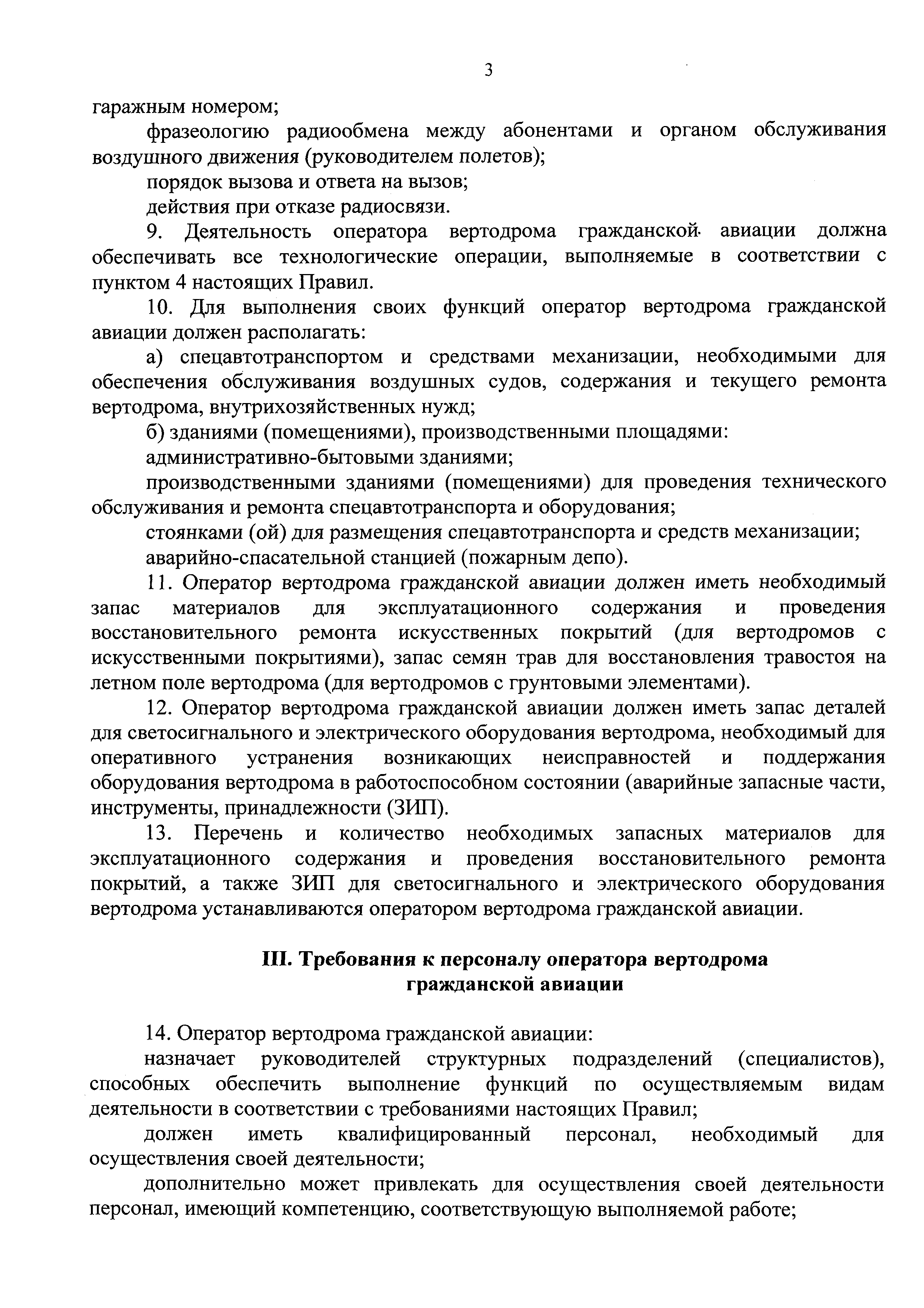 | Оглавление: | I. Общие положения II. Требования, предъявляемые к оператору вертодрома гражданской авиации III. Требования к персоналу оператора вертодрома гражданской авиации IV. Требования к организации деятельности оператора вертодрома гражданской авиации (эксплуатации вертодрома) |
