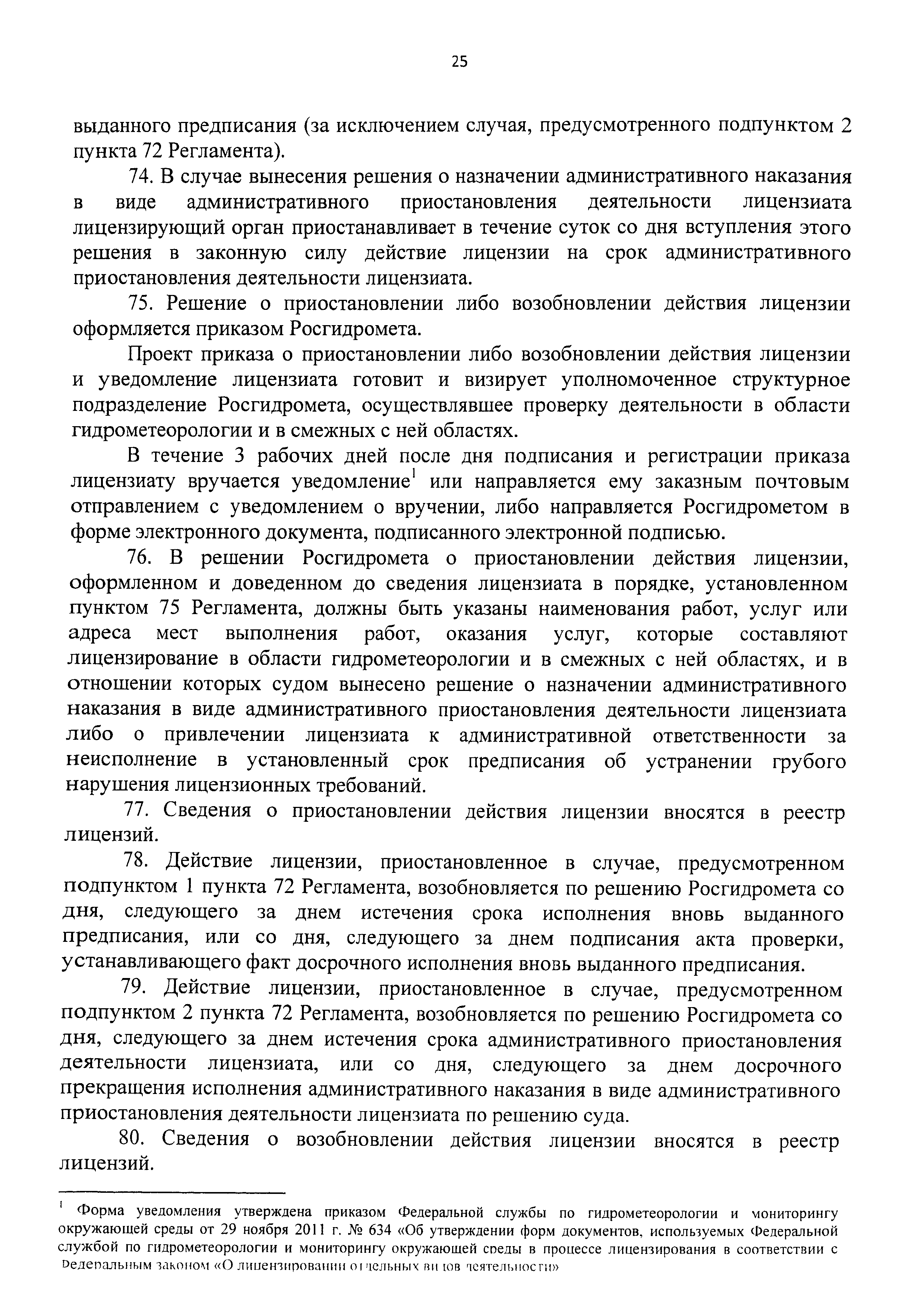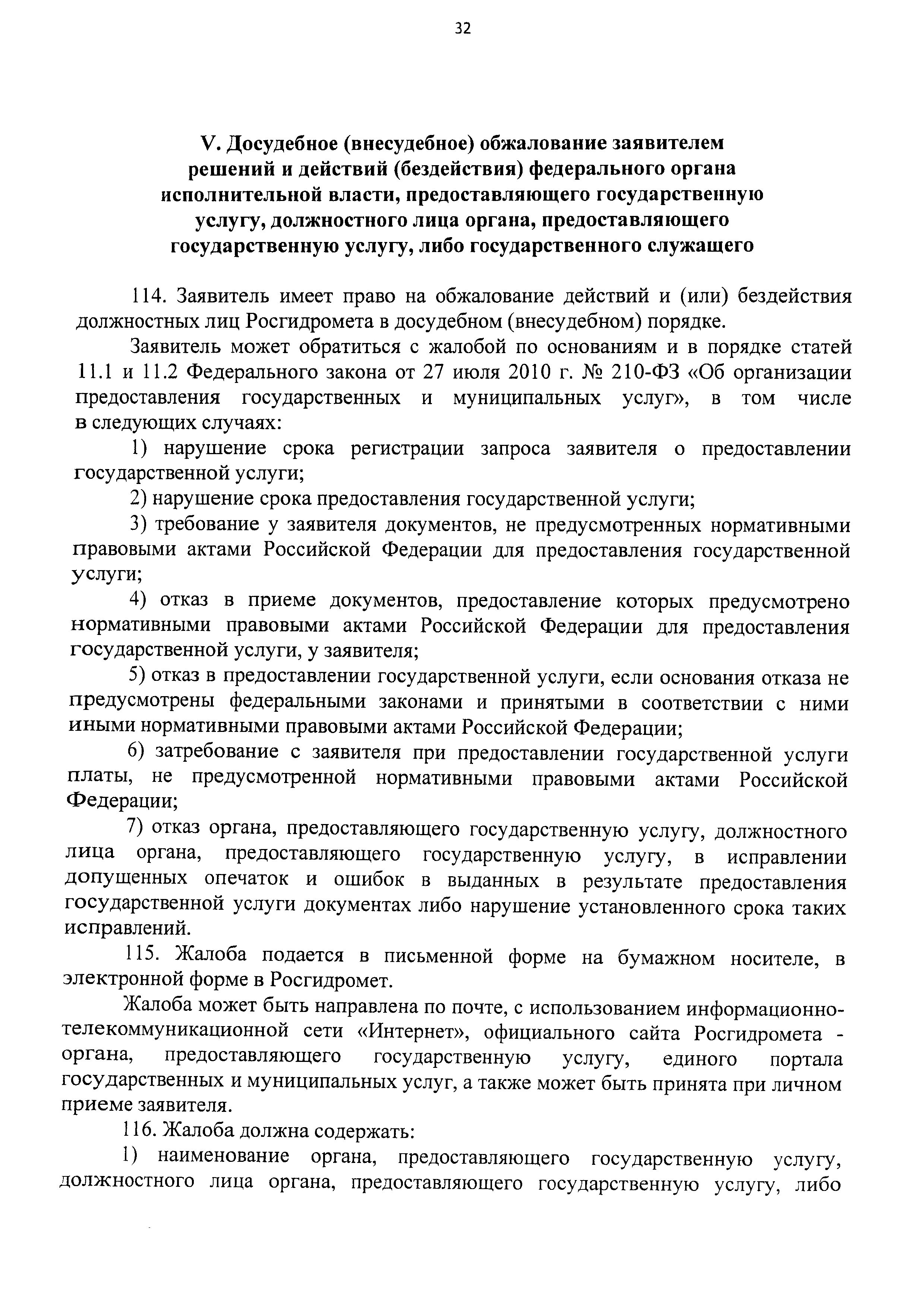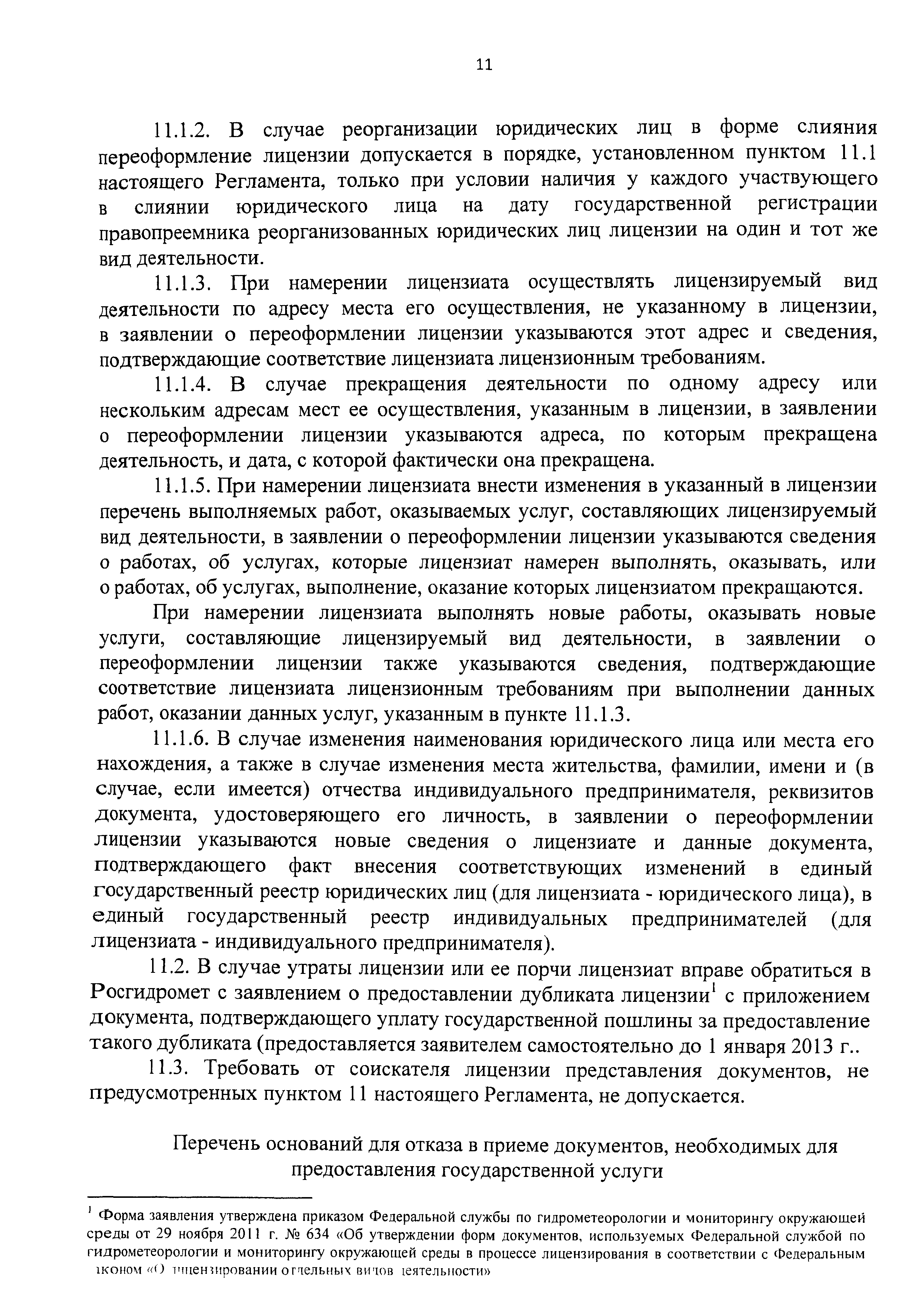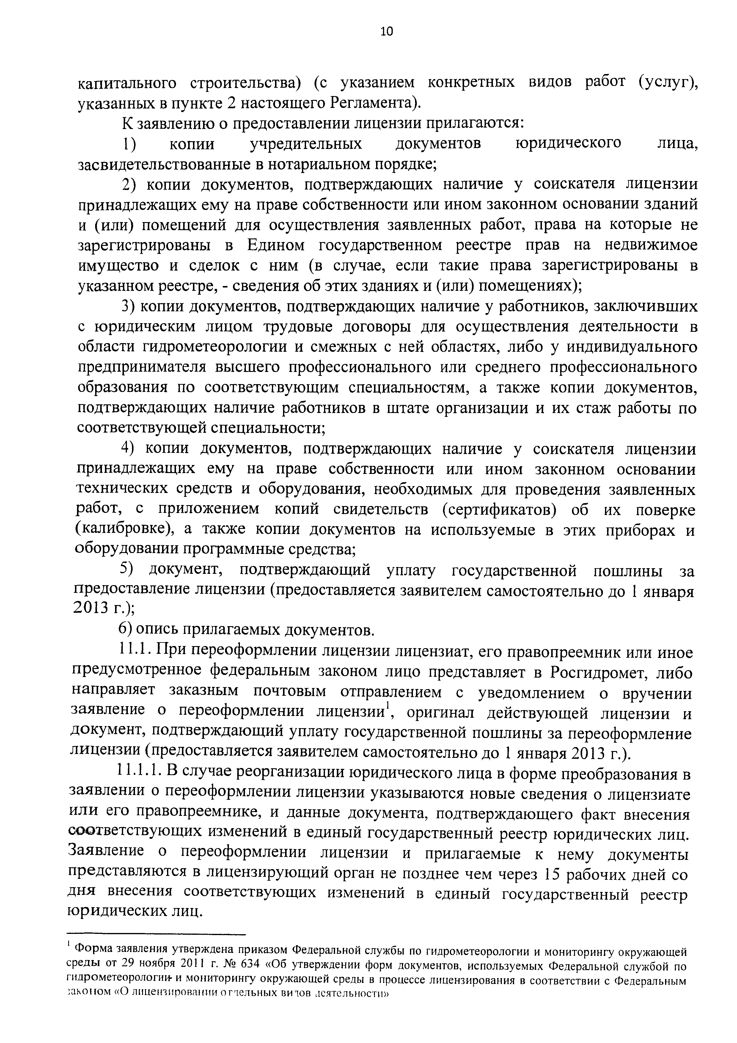 | | Нормативные ссылки: |  Кодекс «Кодекс Российской Федерации об административных правонарушениях»  Постановление 404 «О Министерстве природных ресурсов и экологии Российской Федерации»  Федеральный закон 294-ФЗ «О защите прав юридических лиц и индивидуальных предпринимателей при осуществлении государственного контроля (надзора) и муниципального контроля»  Федеральный закон 59-ФЗ «О порядке рассмотрения обращений граждан Российской Федерации»  Федеральный закон 125-ФЗ «Об архивном деле в Российской Федерации»  Федеральный закон 99-ФЗ «О лицензировании отдельных видов деятельности» Постановление 957 «Об организации лицензирования отдельных видов деятельности» Постановление 373 «О разработке и утверждении административных регламентов осуществления государственного контроля (надзора) и административных регламентов предоставления государственных услуг»  Федеральный закон 210-ФЗ «Об организации предоставления государственных и муниципальных услуг»  Федеральный закон 113-ФЗ «О гидрометеорологической службе» «Положение о создании и ведении Единого государственного фонда данных о состоянии окружающей среды, ее загрязнении» «Положение о Федеральной службе по гидрометеорологии и мониторингу окружающей среды» «Положение об информационных услугах в области гидрометеорологии и мониторинга загрязнения окружающей природной среды»  «Типовая форма лицензии»  Постановление 1219 «Об утверждении Положения о Министерстве природных ресурсов и экологии Российской Федерации и об изменении и признании утратившими силу некоторых актов Правительства Российской Федерации»  «Требования к предоставлению в электронной форме государственных и муниципальных услуг» «Правила подготовки докладов об осуществлении государственного контроля (надзора), муниципального контроля в соответствующих сферах деятельности и об эффективности такого контроля (надзора)» «Правила направления запроса и получения на безвозмездной основе, в том числе в электронной форме, документов и (или) информации органами государственного контроля (надзора), органами муниципального контроля при организации и проведении проверок от иных государственных органов, органов местного самоуправления либо подведомственных государственным органам или органам местного самоуправления организаций, в распоряжении которых находятся эти документы и (или) информация, в рамках межведомственного информационного взаимодействия» «Правила подачи и рассмотрения жалоб на решения и действия (бездействие) федеральных органов исполнительной власти и их должностных лиц, федеральных государственных служащих, должностных лиц государственных внебюджетных фондов Российской Федерации, государственных корпораций, наделенных в соответствии с федеральными законами полномочиями по предоставлению государственных услуг в установленной сфере деятельности, и их должностных лиц, организаций, предусмотренных частью 1.1 статьи 16 Федерального закона "Об организации предоставления государственных и муниципальных услуг", и их работников, а также многофункциональных центров предоставления государственных и муниципальных услуг и их работников»  Федеральный закон 181-ФЗ «О социальной защите инвалидов в Российской Федерации»