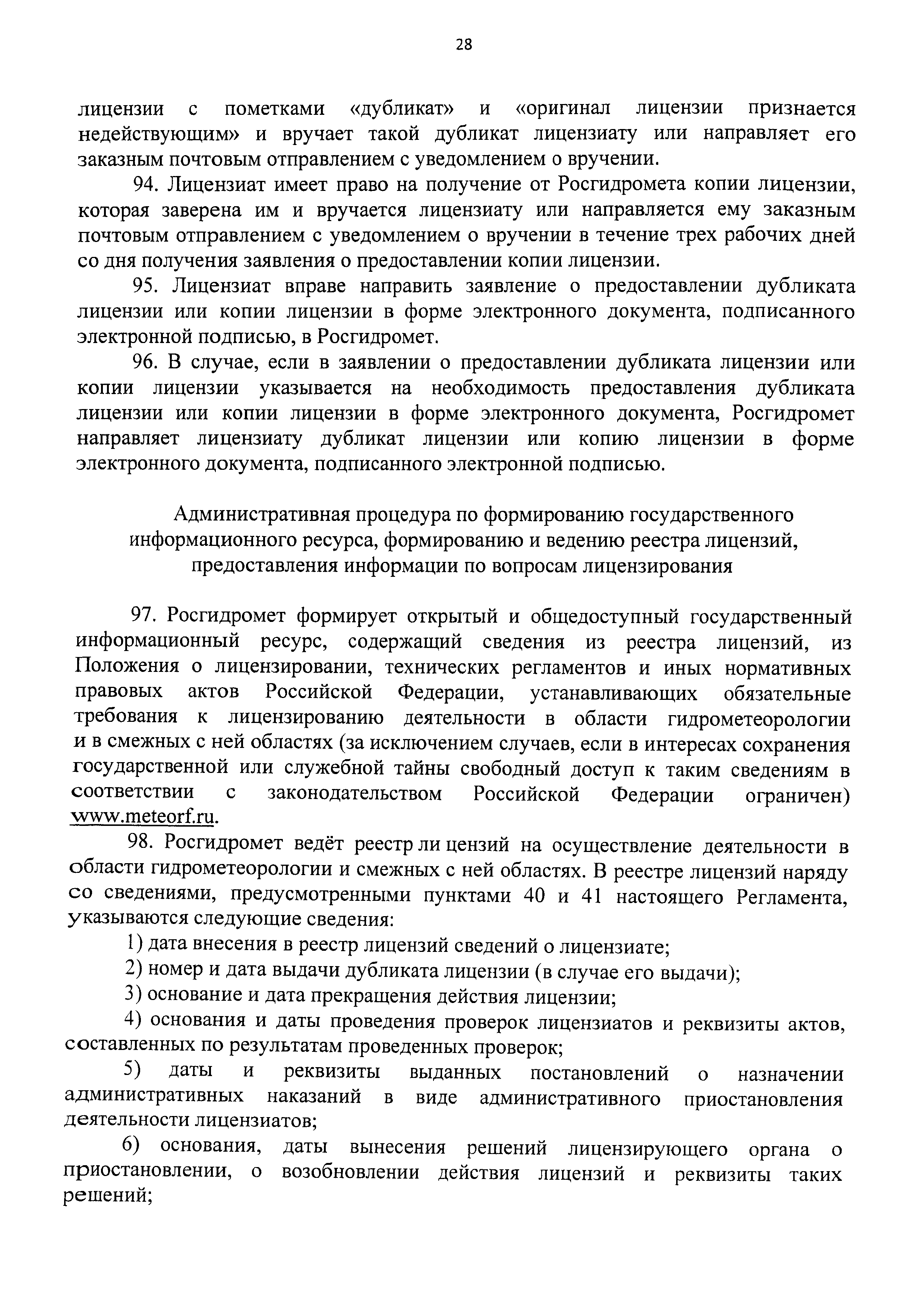 Скачать Административный регламент предоставления Федеральной службой по гидрометеорологии и мониторингу окружающей среды государственной услуги по лицензированию деятельности в области гидрометеорологии и в смежных с ней областях (за исключением указанной деятельности, осуществляемой в ходе инженерных изысканий, выполняемых для подготовки проектной документации, строительства, реконструкции объектов капитального строительства)Дата актуализации: 01.01.2021