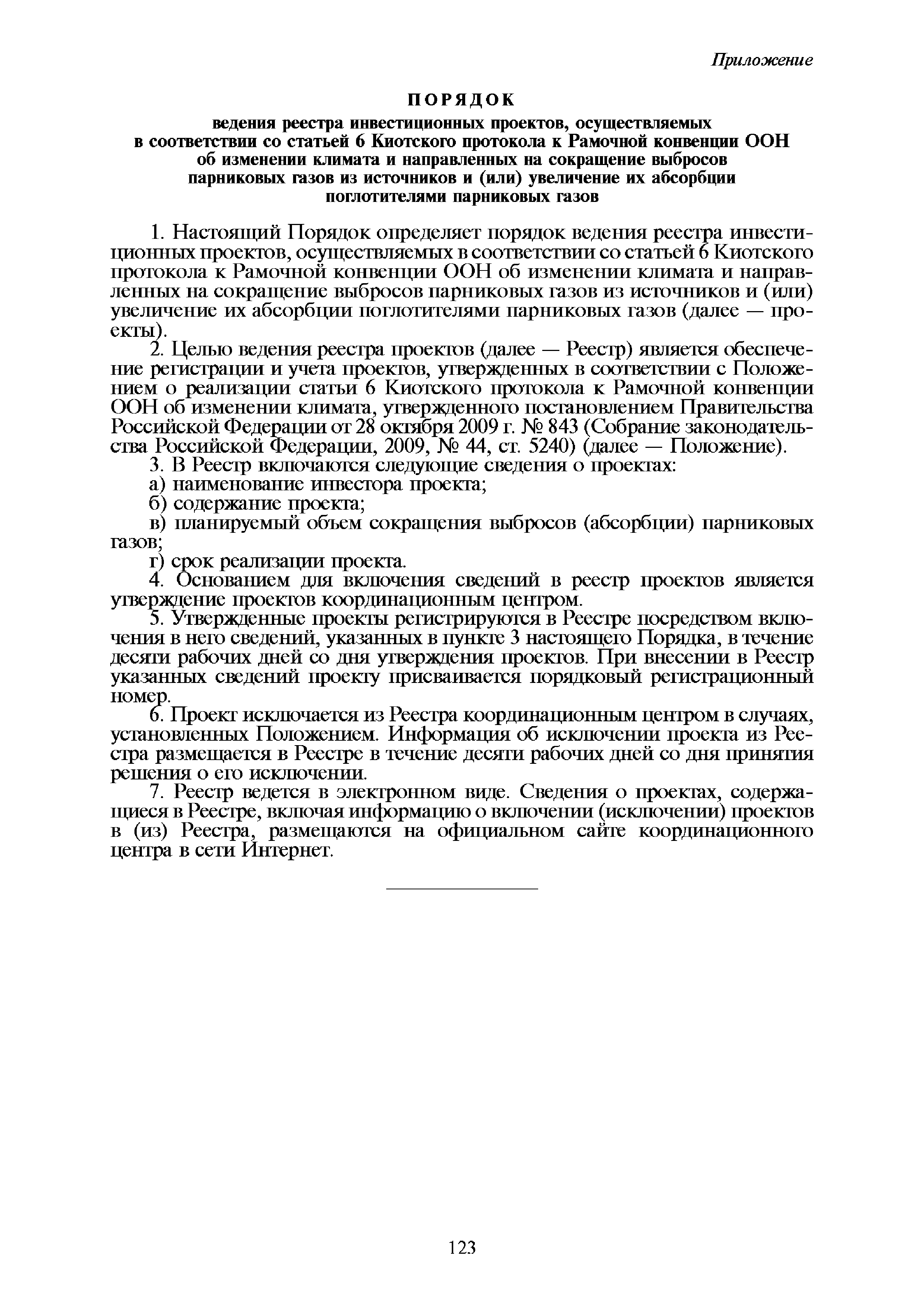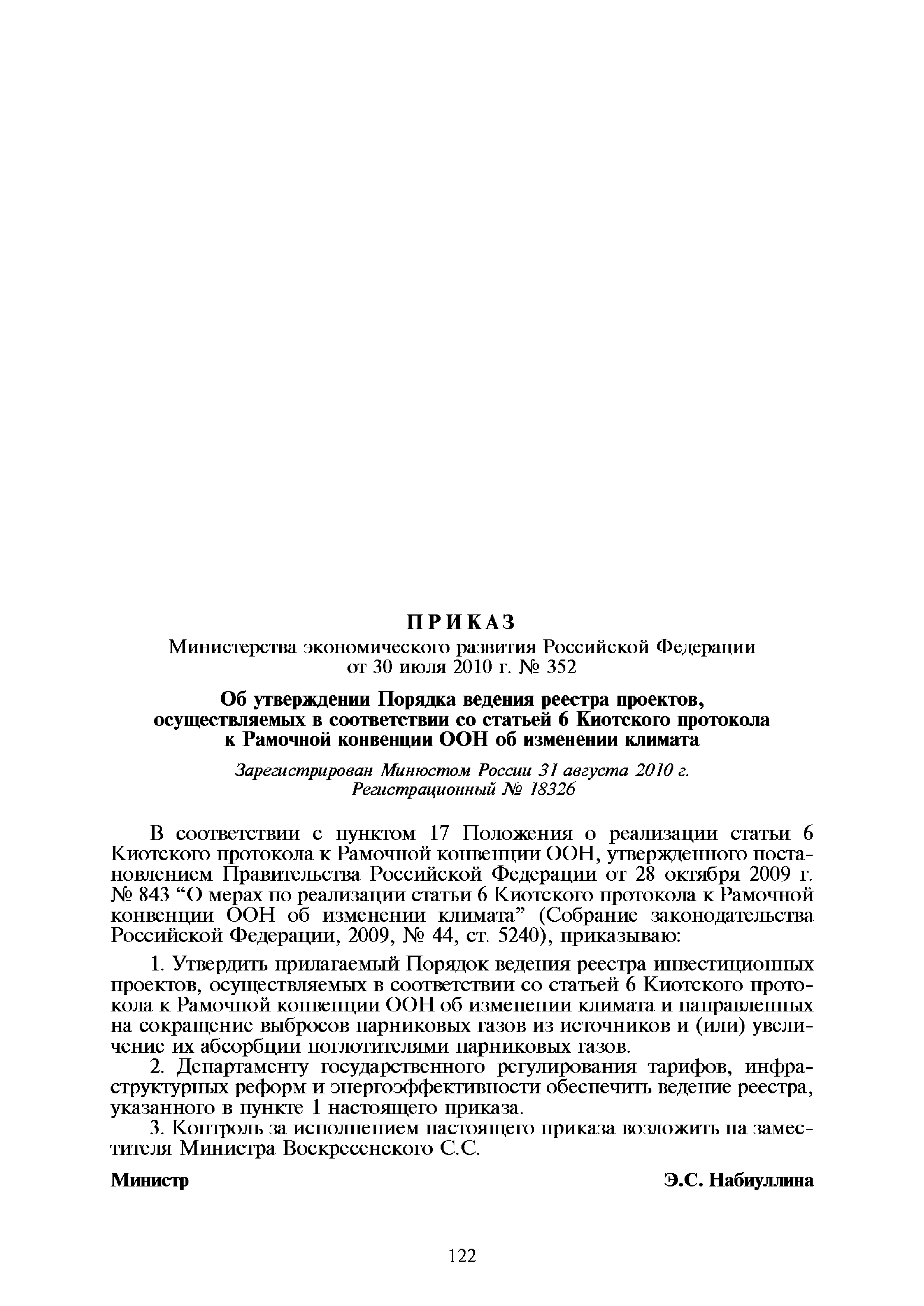 Порядок ведения реестра инвестиционных проектов, осуществляемых в соответствии со статьей 6 Киотского протокола к Рамочной конвенции ООН об изменении климата и направленных на сокращение выбросов парниковых газов из источников и (или) увеличение их абсорбции поглотителями парниковых газов| Статус: | действует | | Название рус.: | Порядок ведения реестра инвестиционных проектов, осуществляемых в соответствии со статьей 6 Киотского протокола к Рамочной конвенции ООН об изменении климата и направленных на сокращение выбросов парниковых газов из источников и (или) увеличение их абсорбции поглотителями парниковых газов | | Дата добавления в базу: | 05.05.2017 | | Дата актуализации: | 01.01.2021 | | Дата введения: | 08.10.2010 | | Утверждён: | 30.07.2010 Министерство экономического развития РФ (352)
