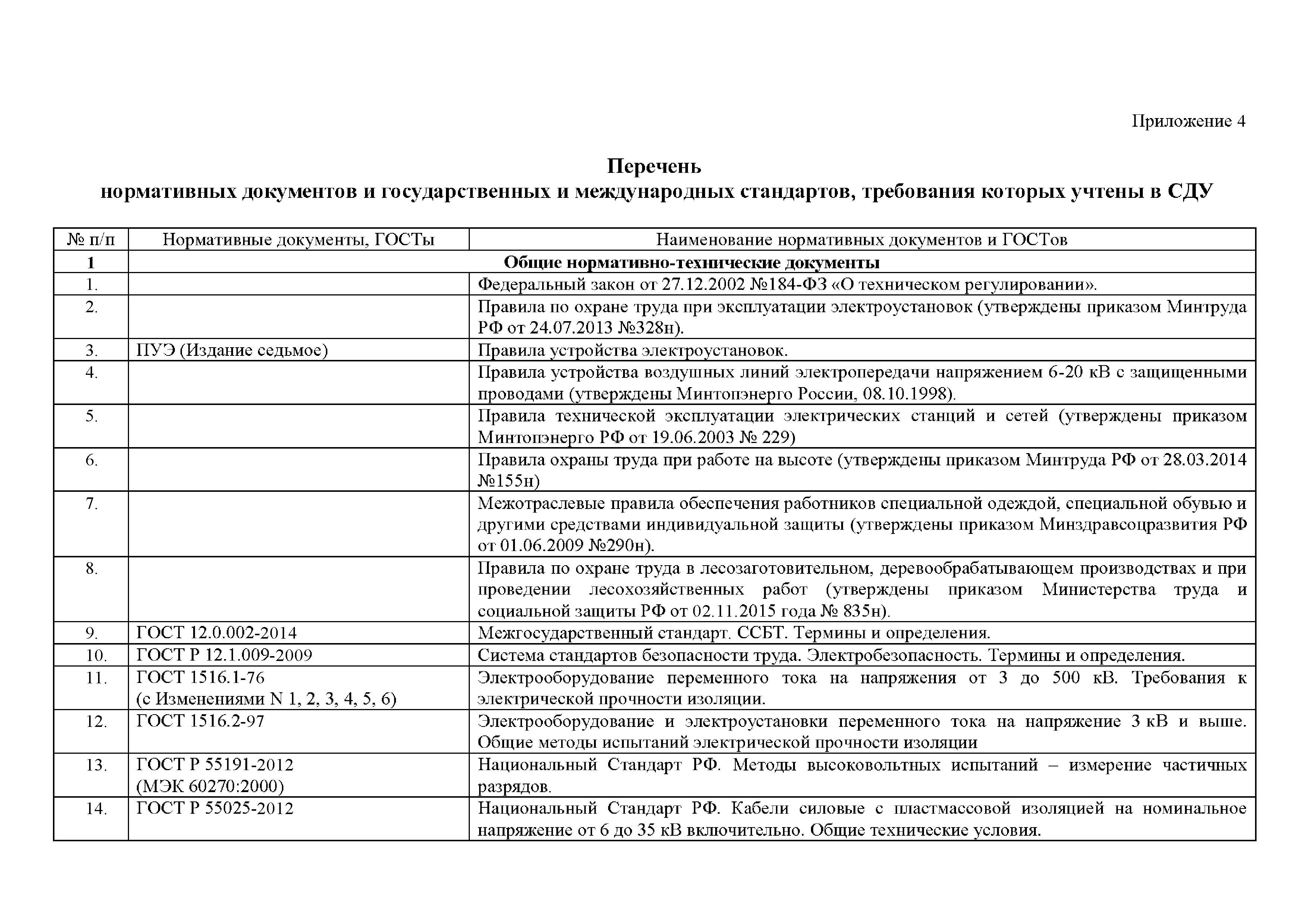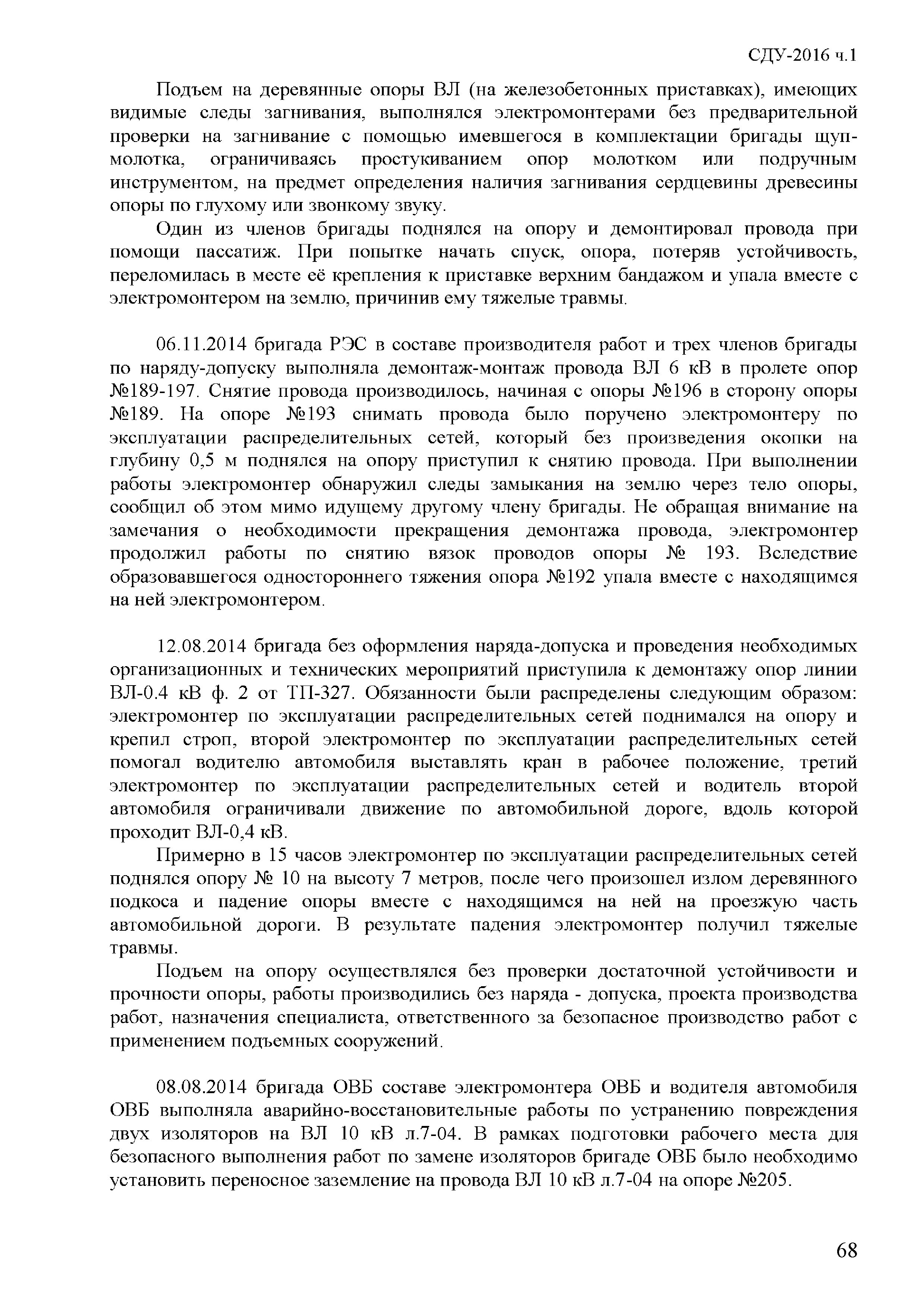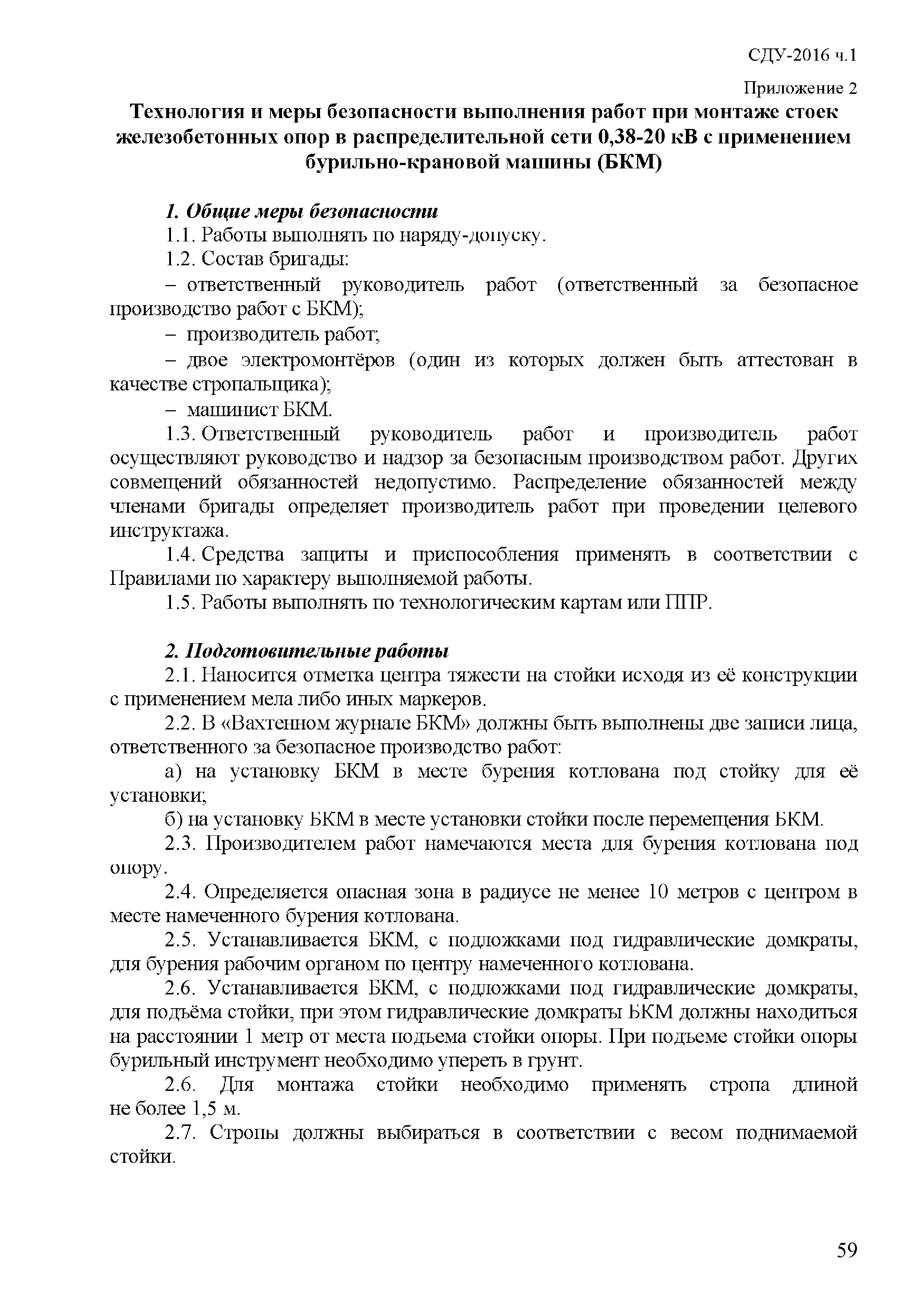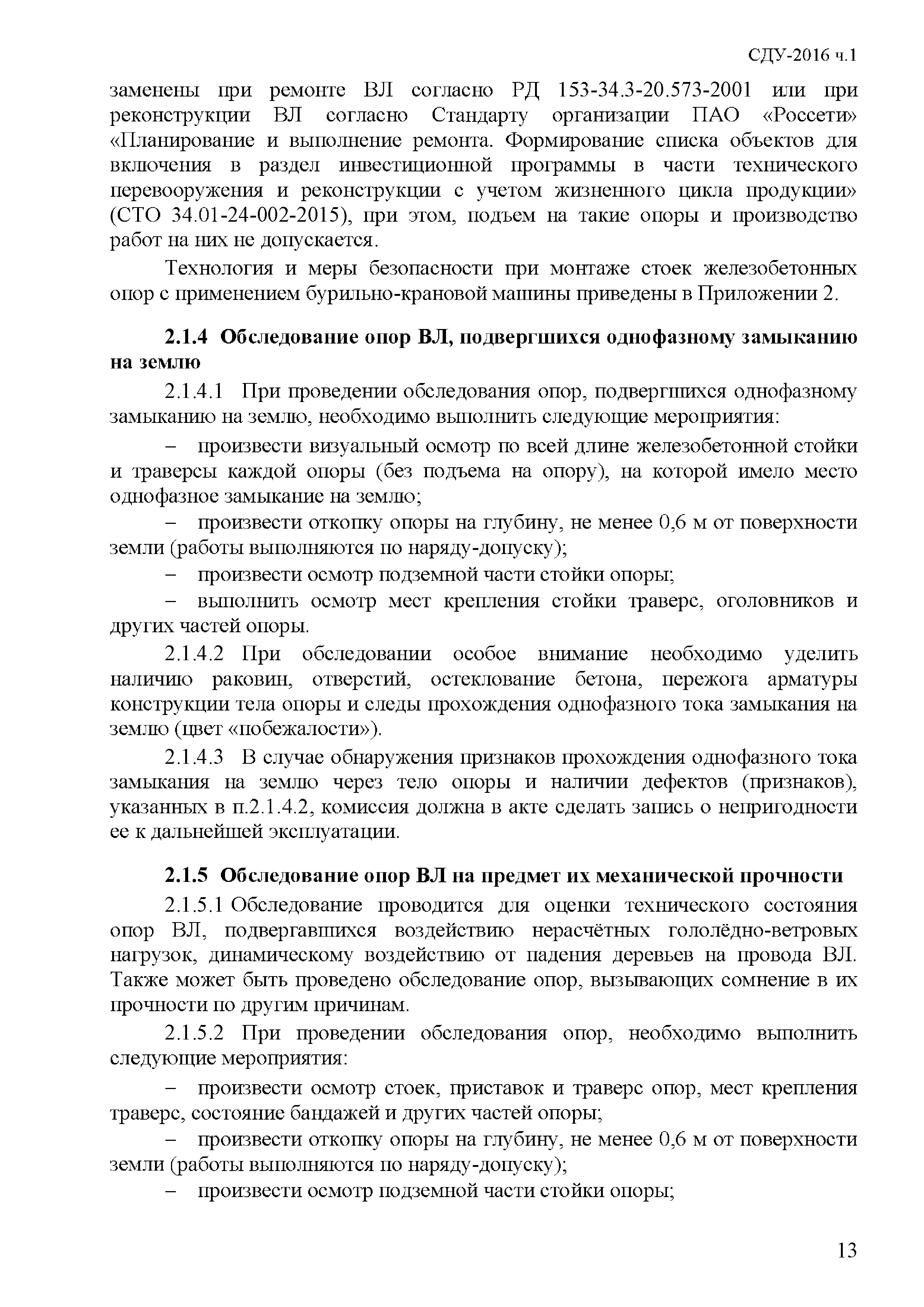 | Оглавление: | 1 Общие положения . 1.1 Назначение и область применения Сборника 1.2 Основные термины, определения. Принятые сокращения 2 Мероприятия, направленные на повышение надёжности и безопасности при эксплуатации ВЛ 0,38 - 20 кВ 2.1 Выполнение мероприятий на опорах ВЛ, имеющих дефекты, влияющие на надежность и безопасную эксплуатацию 2.2 Эксплуатация коммутационных аппаратов наружной установки типа РЛНД 6 - 20 кВ и низковольтных рубильников типа РПЦ-2 2.3 О порядке шунтирования разъединителей 6 - 20 кВ 2.4 Требования безопасности при выполнение работ при расчистке просек ВЛ 2.5 Меры безопасности при обесточении (отключении) электроустановок, находящихся под напряжением при возникновении пожара в жилом секторе 2.6 Порядок выполнения работ в "бесхозяйных сетях" 2.7 Меры безопасности при выполнении работ на участках резервирования электроснабжения автономными источниками электроэнергии 3 Повышение надежности и безопасности при эксплуатации ВЛИ 0,38 кВ и ВЛЗ 6 - 20 кВ 3.1 Мероприятия по повышению надёжности и безопасности при эксплуатации ВЛИ - 0,38 кВ 3.2 Мероприятия по повышению надёжности и безопасности при эксплуатации ВЛЗ 6 - 20 кВ. Основные технические решения 3.3 Порядок снятия напряжения с ВЛИ-0,38 кВ и ВЛЗ 6 - 20 кВ при спуске пострадавшего с опоры 4 Повышение надёжности при эксплуатации КЛ 6 кВ и выше 4.1 Основные требования при прокладке КЛ 6 - 20 кВ 4.2 Мероприятия по повышению надёжности при эксплуатации КЛ 6 кВ и выше Приложение 1. Форма акта обследования опор, имеющих дефекты, влияющие на надежность и безопасность эксплуатации Приложение 2. Технология и меры безопасности выполнения работ при монтаже стоек железобетонных опор в распределительной сети 0,38 - 20 кВ с применением бурильно-крановой машины (БКМ) Приложение 3. Описание несчастных случаев, происшедших в ДЗО ПАО "Россети" с 2012 года из-за неудовлетворительного технического состояния разъединителей наружной установки типа РЛНД - 10 кВ Приложение 4. Перечень нормативных документов, государственных и международных стандартов, требования которых учтены в СДУ |