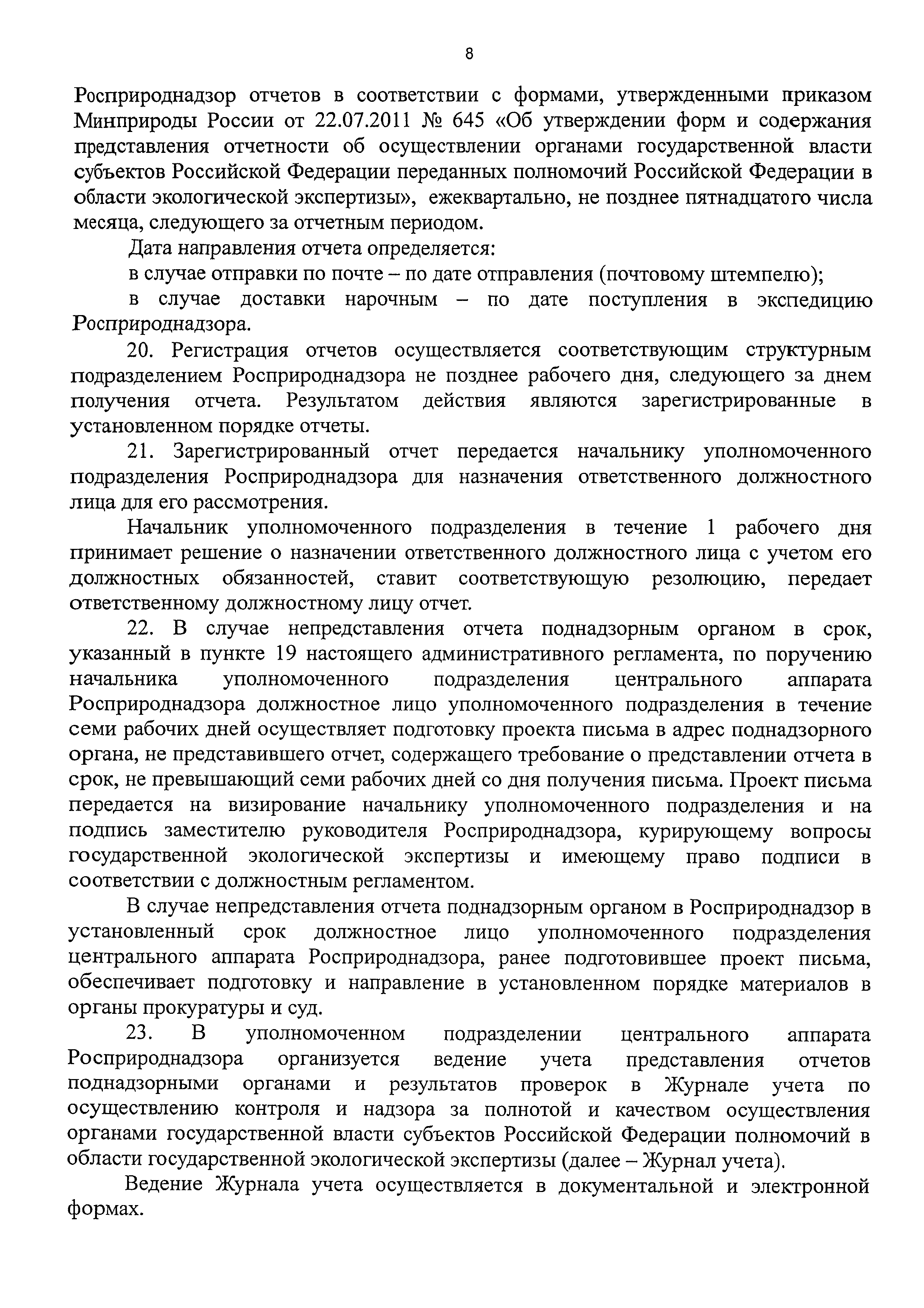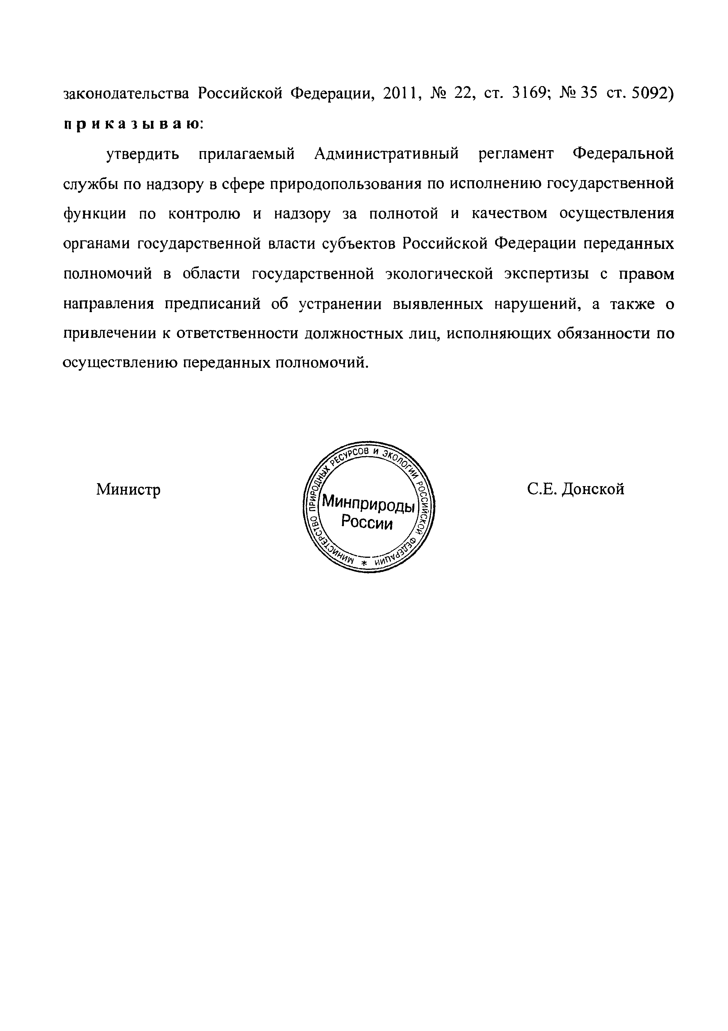 | Название рус.: | Административный регламент Федеральной службы по надзору в сфере природопользования по исполнению государственной функции по контролю и надзору за полнотой и качеством осуществления органами государственной власти субъектов Российской Федерации переданных полномочий в области государственной экологической экспертизы с правом направления предписаний об устранении выявленных нарушений, а также о привлечении к ответственности должностных лиц, исполняющих обязанности по осуществлению переданных полномочий |