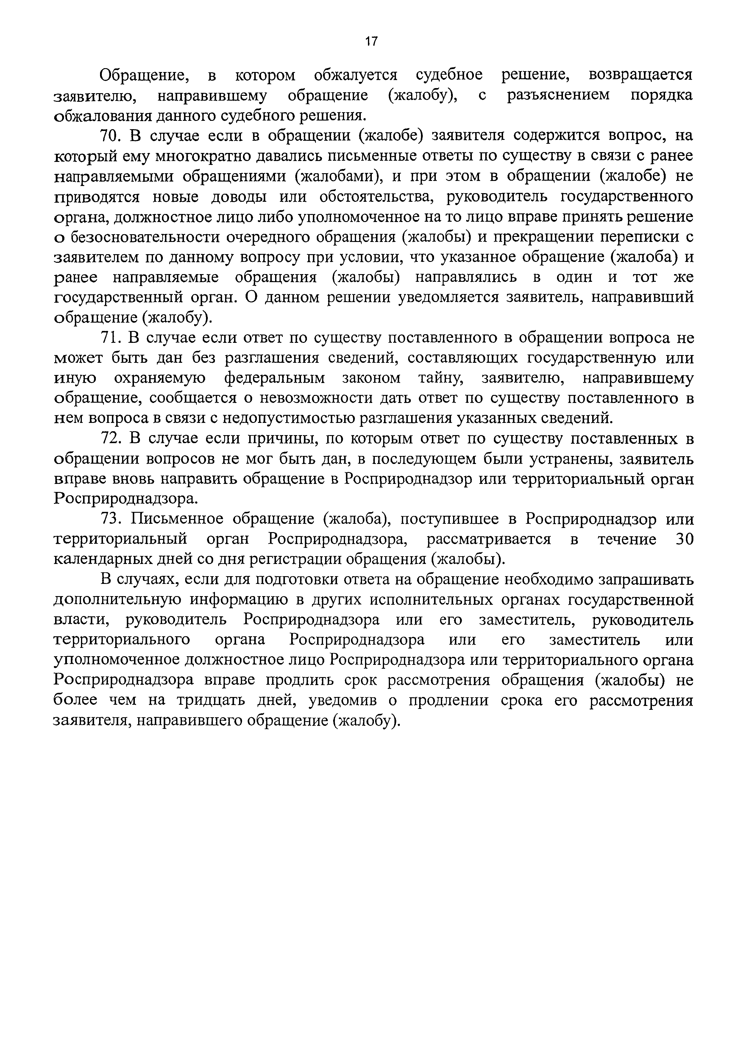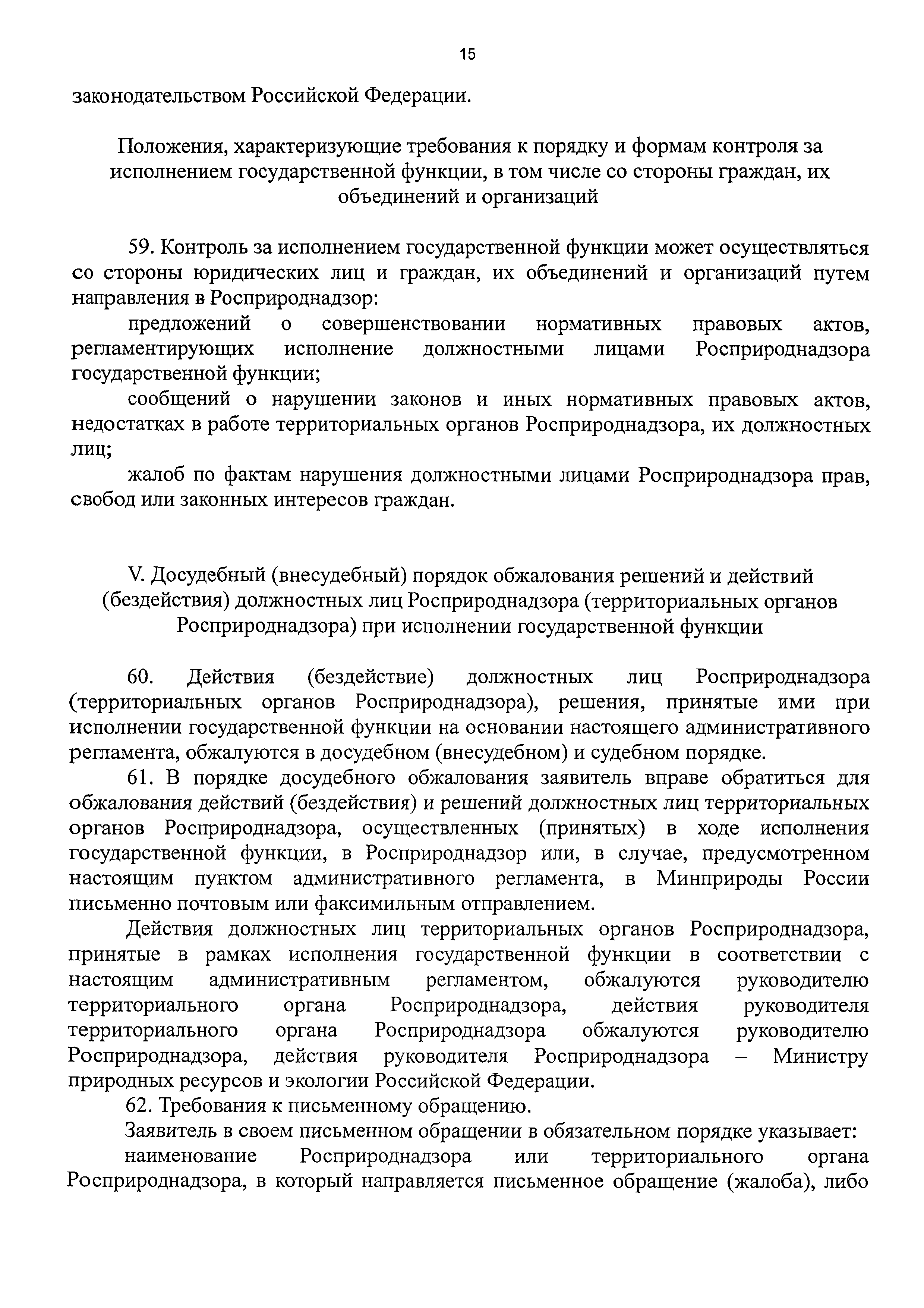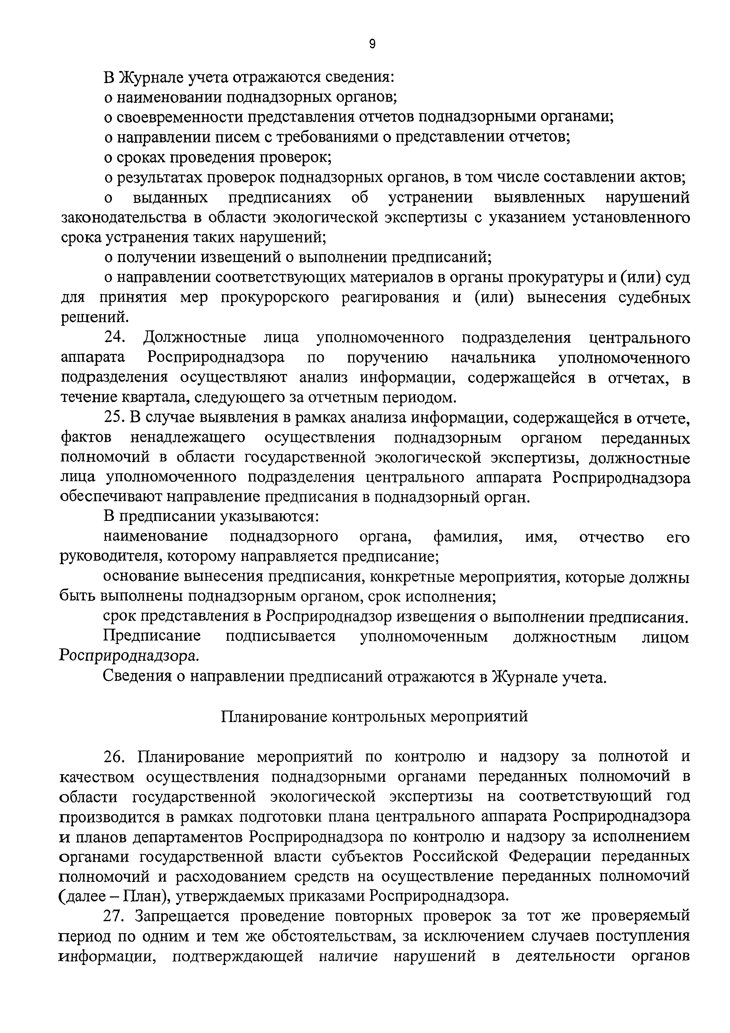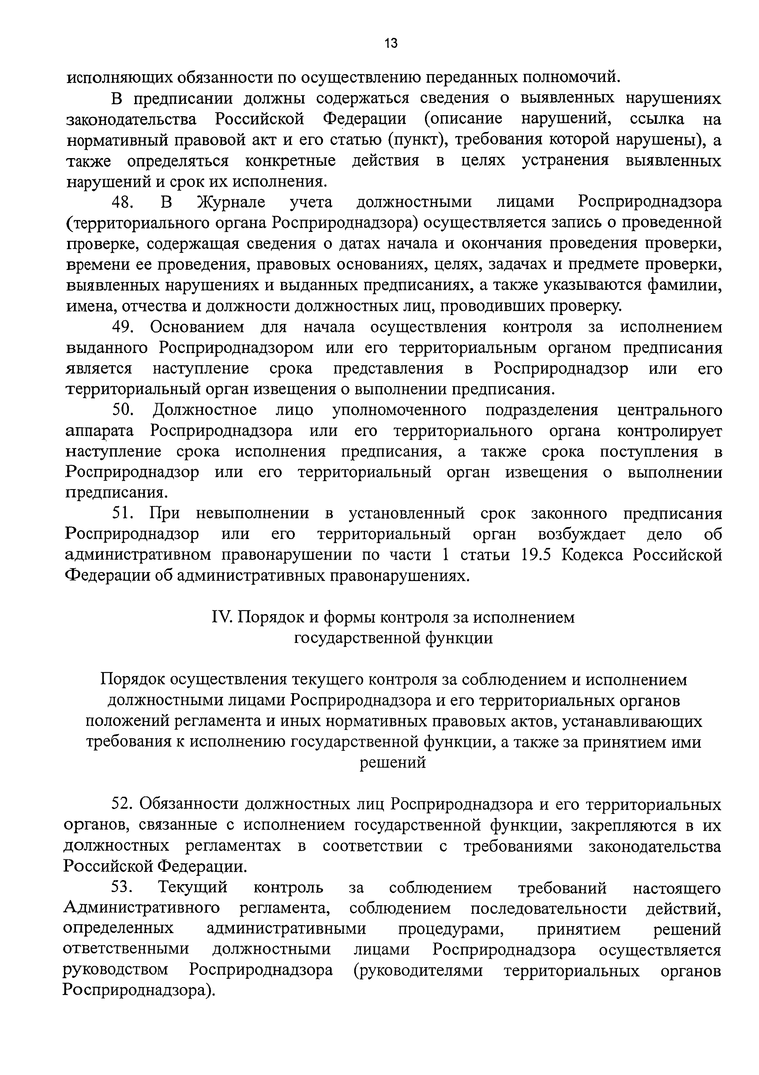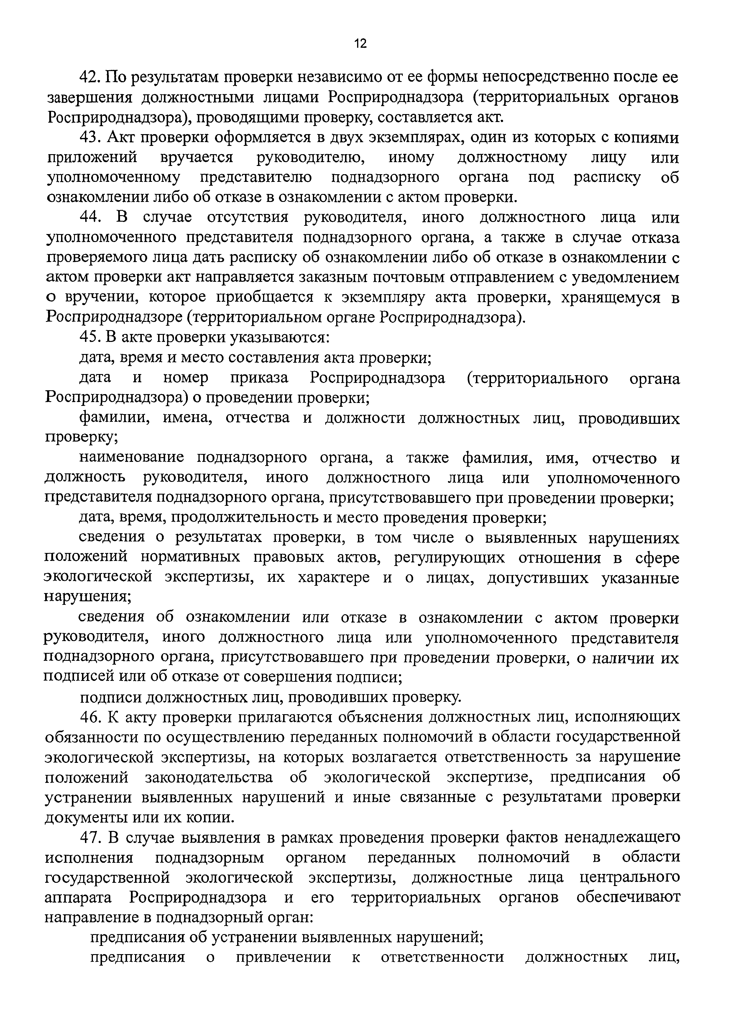 | Оглавление: | I. Общие положения II. Требования к порядку исполнения государственной функции III. Состав, последовательность и сроки выполнения административных процедур (действий), требования к порядку их выполнения, в том числе особенности выполнения административных процедур (действий) в электронной форме IV. Порядок и формы контроля за исполнением государственной функции V. Досудебный (внесудебный) порядок обжалования решений и действий (бездействия) должностных лиц Росприроднадзора (территориальных органов Росприроднадзора) при исполнении государственной функции Приложение 1. Список территориальных органов Федеральной службы по надзору в сфере природопользования Приложение 2. Блок-схема последовательности действий при исполнении государственной функции по контролю и надзору за полнотой и качеством осуществления органами государственной власти субъектов Российской Федерации переданных полномочий в области государственной экологической экспертизы с правом направления предписаний об устранении выявленных нарушений, а также о привлечении к ответственности должностных лиц, исполняющих обязанности по осуществлению переданных полномочий |