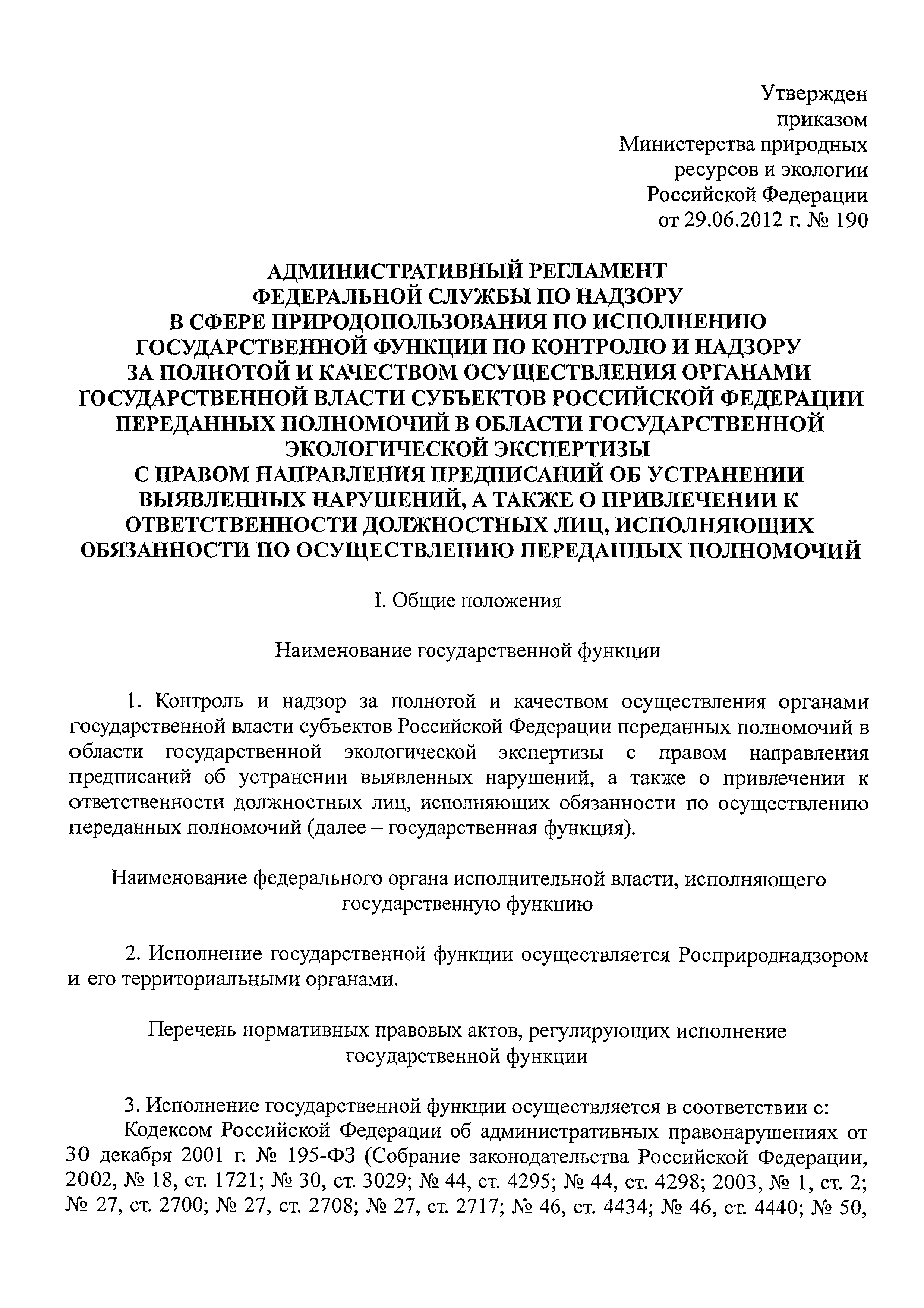 | Утверждён: | 29.06.2012 Министерство природных ресурсов и экологии Российской Федерации (190) |