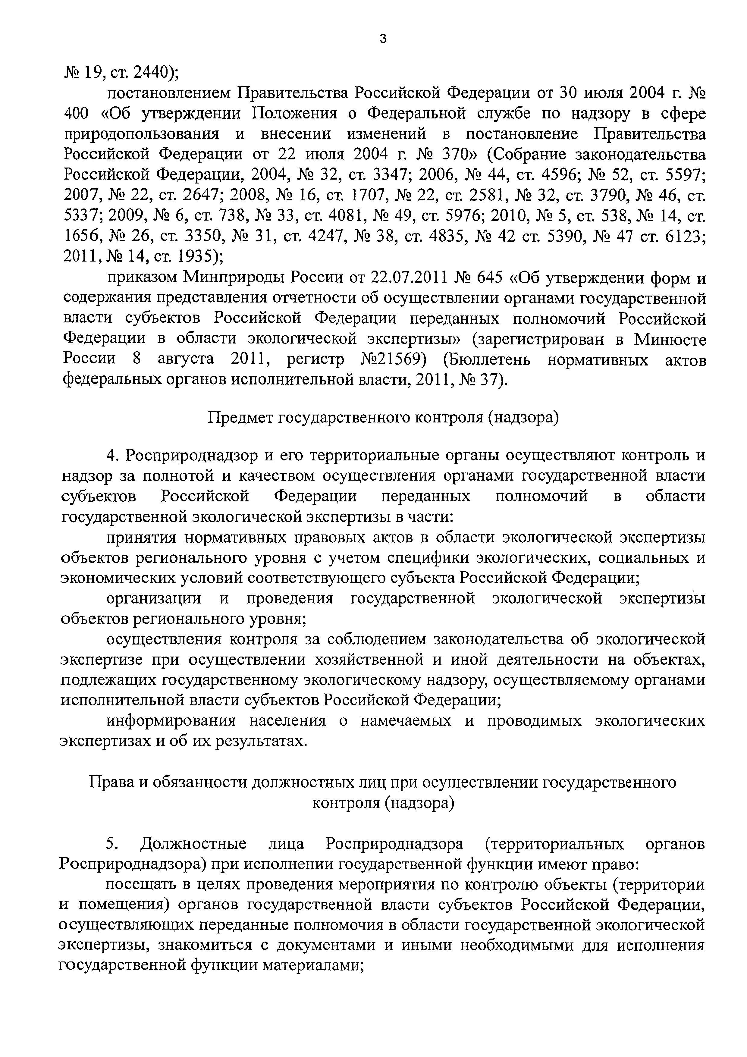 | Область применения: | Контроль и надзор за полнотой и качеством осуществления органами государственной власти субъектов Российской Федерации переданных полномочий в области государственной экологической экспертизы с правом направления предписаний об устранении выявленных нарушений, а также о привлечении к ответственности должностных лиц, исполняющих обязанности по осуществлению переданных полномочий |