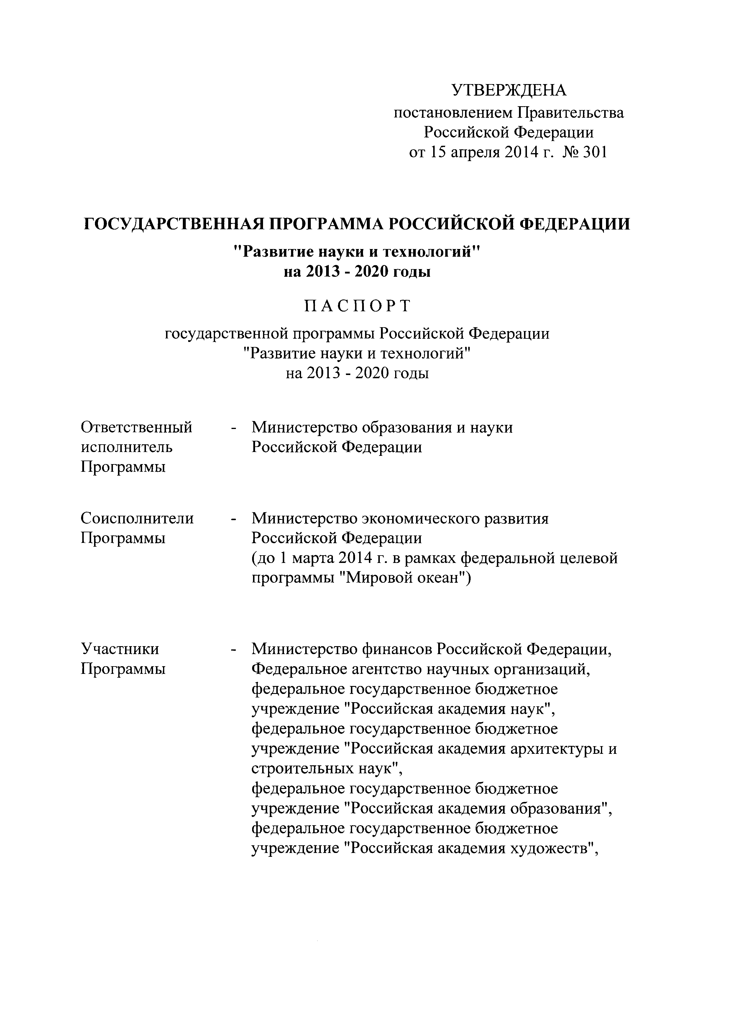 | Утверждён: | 15.04.2014 Правительство Российской Федерации (301) |