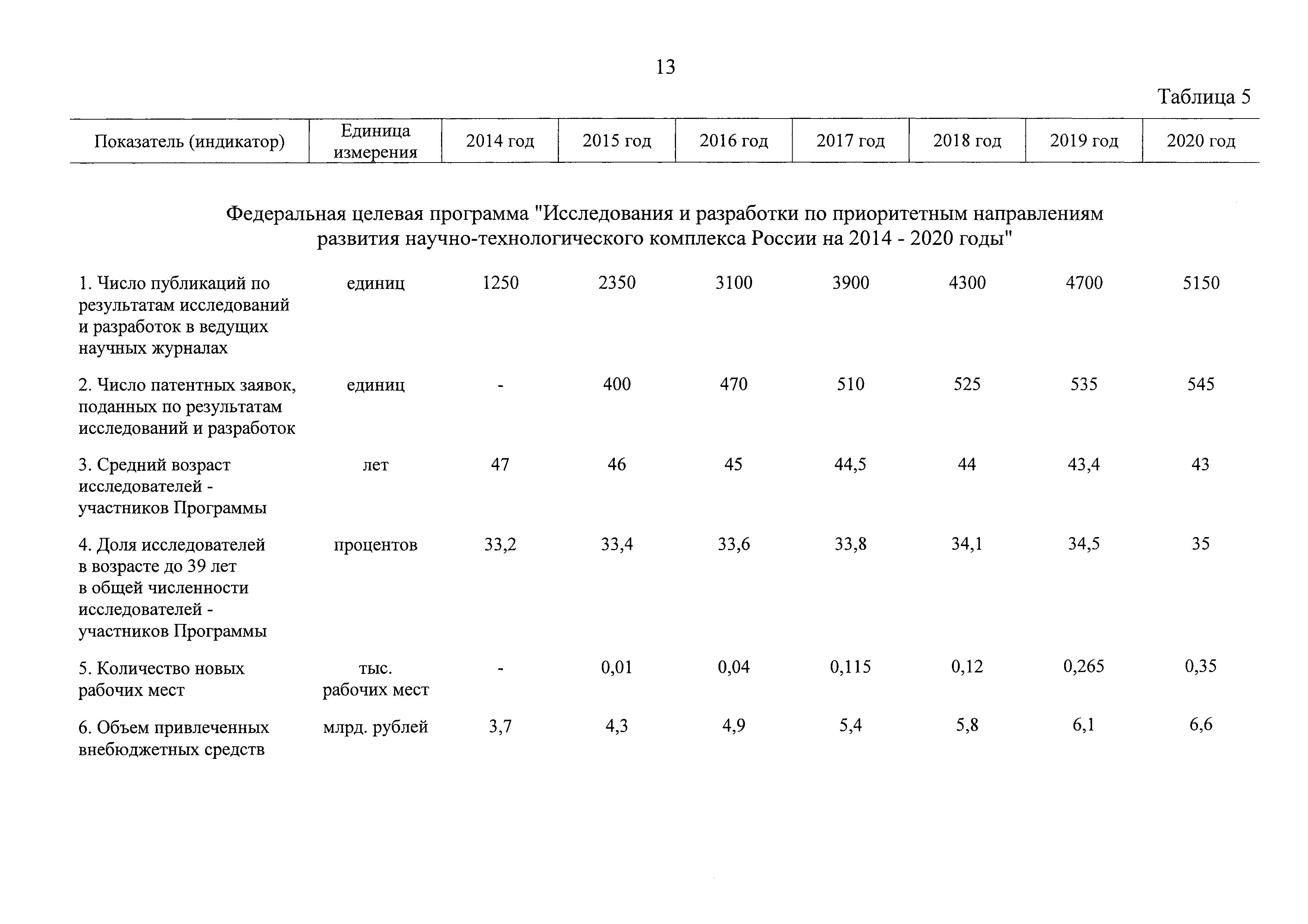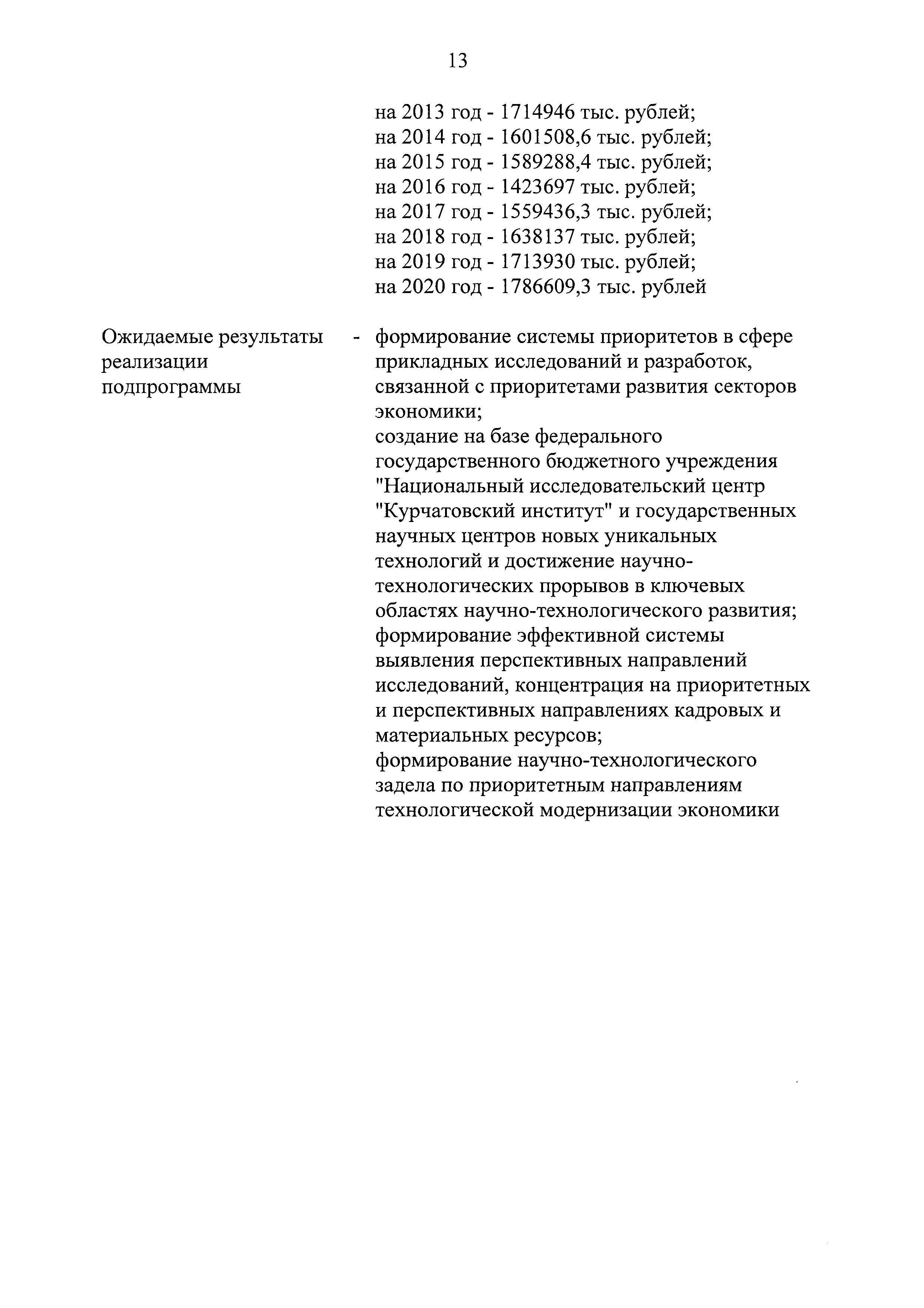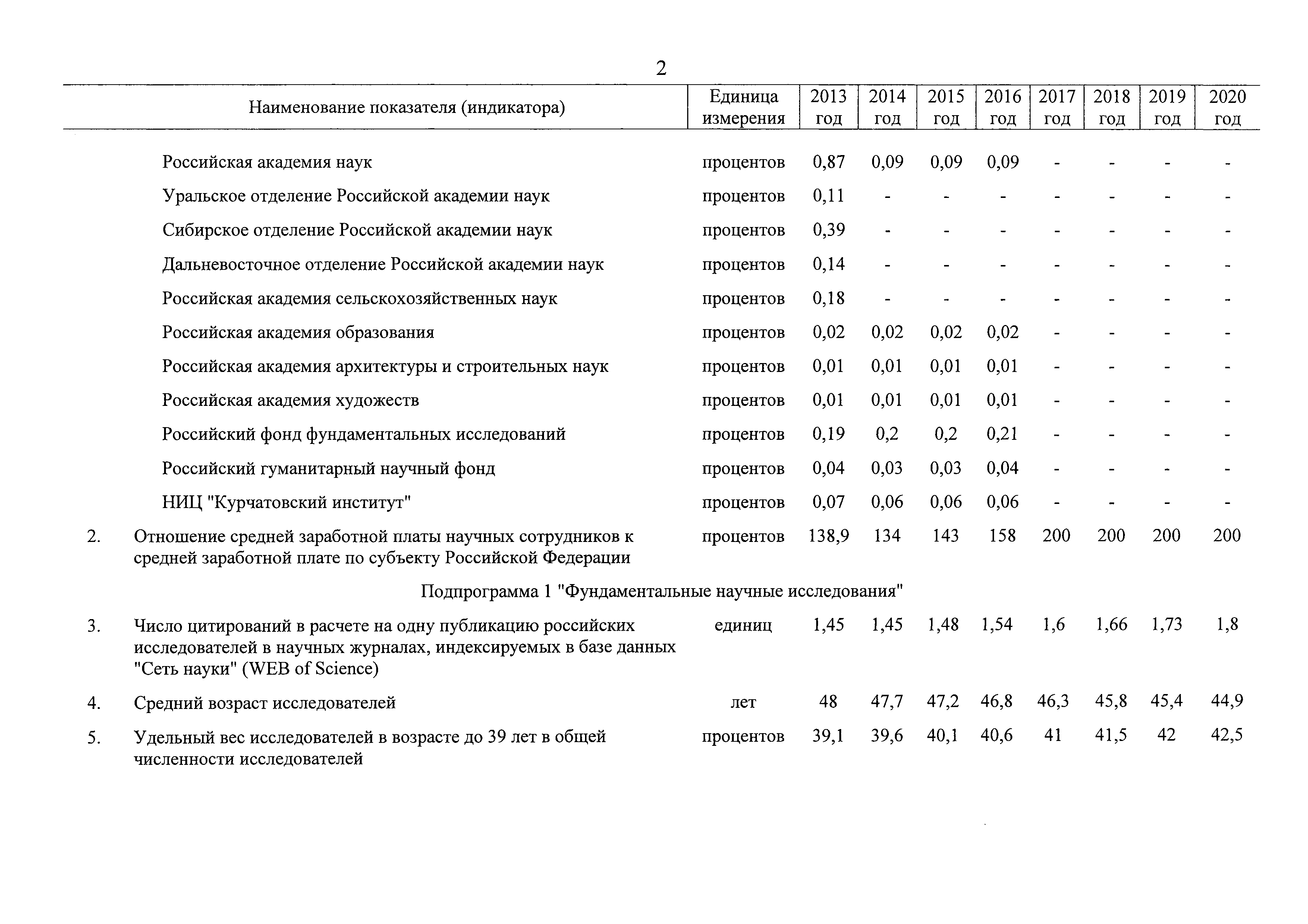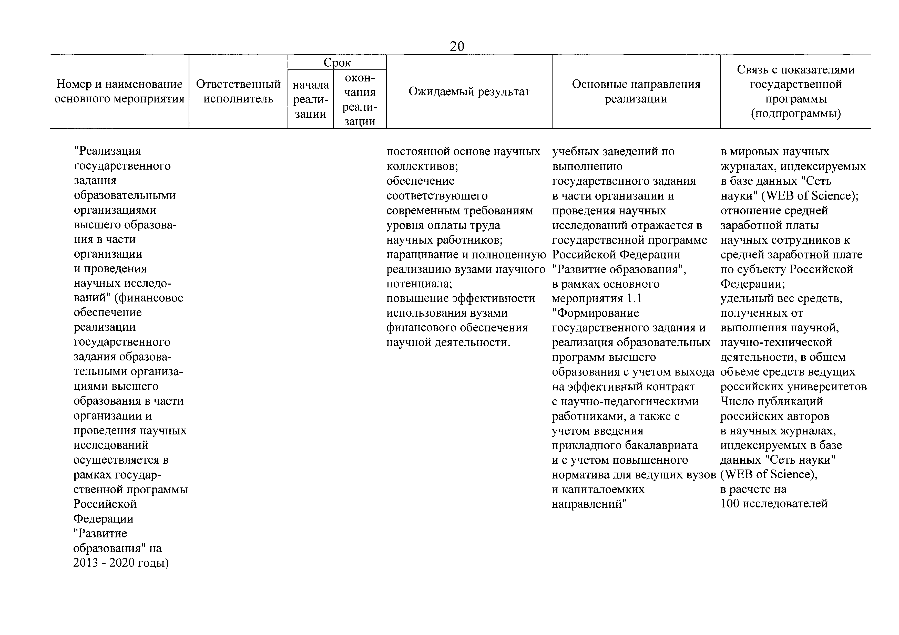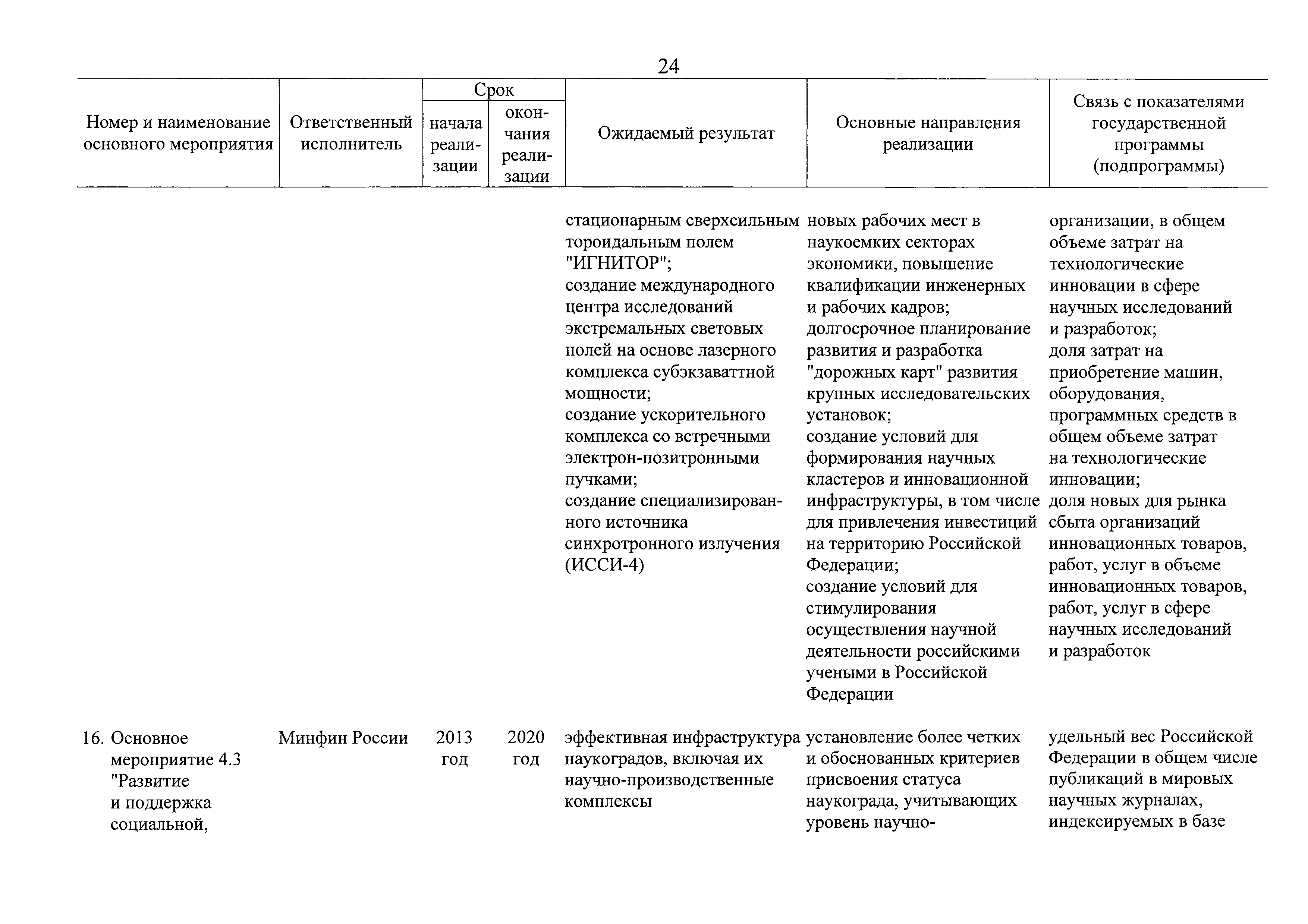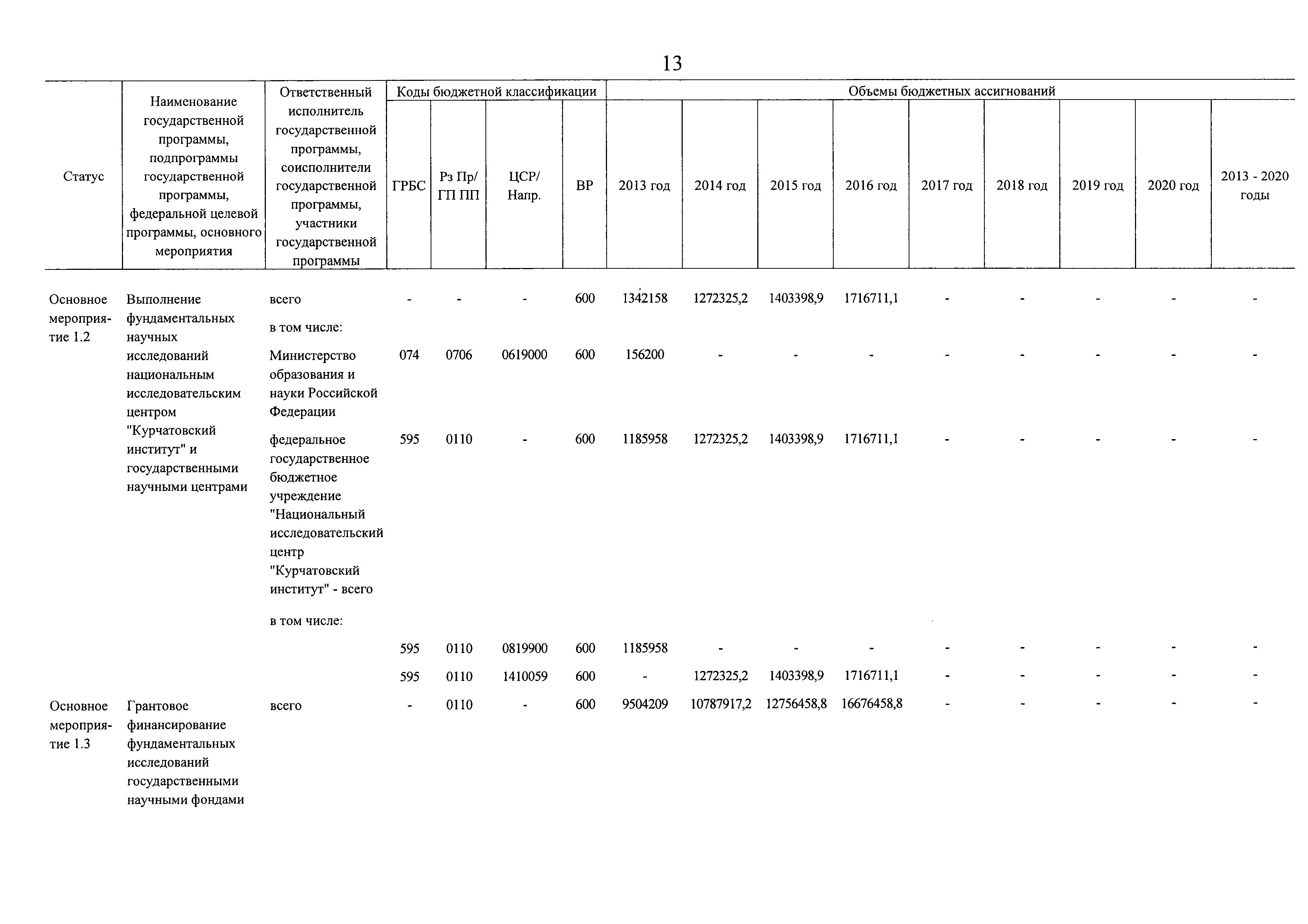 | Оглавление: | Паспорт государственной программы Российской Федерации "Развитие науки и технологий" на 2013 - 2020 годы Паспорт подпрограммы 1 "Фундаментальные научные исследования" государственной программы Российской Федерации "Развитие науки и технологий" на 2013 - 2020 годы Паспорт подпрограммы 2 "Прикладные проблемно ориентированные исследования и развитие научно-технологического задела в области перспективных технологий" государственной программы Российской Федерации "Развитие науки и технологий" на 2013 - 2020 годы Паспорт подпрограммы 3 "Институциональное развитие научно-исследовательского сектора" государственной программы Российской Федерации "Развитие науки и технологий" на 2013 - 2020 годы Паспорт подпрограммы 4 "Развитие межотраслевой инфраструктуры сектора исследований и разработок" государственной программы Российской Федерации "Развитие науки и технологий" на 2013 - 2020 годы Паспорт подпрограммы 5 "Международное сотрудничество в сфере науки" государственной программы Российской Федерации "Развитие науки и технологий" на 2013 - 2020 годы Паспорт подпрограммы 6 "Обеспечение реализации Государственной программы" государственной программы Российской Федерации "Развитие науки и технологий" на 2013 - 2020 годы Федеральная целевая программа "Исследования и разработки по приоритетным направлениям развития научно-технологического комплекса России на 2007 - 2013 годы" Паспорт федеральной целевой программы "Исследования и разработки по приоритетным направлениям развития научно-технологического комплекса России на 2007 - 2013 годы" Федеральная целевая программа "Исследования и разработки по приоритетным направлениям развития научно-технологического комплекса России на 2014 - 2020 годы" Паспорт федеральной целевой программы "Исследования и разработки по приоритетным направлениям развития научно-технологического комплекса России на 2014 - 2020 годы" Федеральная целевая программа "Научные и научно-педагогические кадры инновационной России" на 2009 - 2013 годы Паспорт федеральной целевой программы "Научные и научно-педагогические кадры инновационной России" на 2009 - 2013 годы Федеральная целевая программа "Научные и научно-педагогические кадры инновационной России" на 2014 - 2020 годы Паспорт федеральной целевой программы "Научные и научно-педагогические кадры инновационной России" на 2014 - 2020 годы Федеральная целевая программа "Мировой океан" Паспорт федеральной целевой программы "Мировой океан" Приоритеты и цели государственной политики в сфере реализации государственной программы Российской Федерации "Развитие науки и технологий" на 2013 - 2020 годы Приложение № 1. Сведения о показателях (индикаторах) государственной программы Российской Федерации "Развитие науки и технологий" на 2013 - 2020 годы, подпрограмм государственной программы Российской Федерации "Развитие науки и технологий" на 2013 - 2020 годы, федеральных целевых программ (подпрограмм федеральных целевых программ) Приложение № 2. Перечень основных мероприятий государственной программы Российской Федерации "Развитие науки и технологий" на 2013 - 2020 годы Приложение № 3. Сведения об основных мерах правового регулирования в сфере реализации государственной программы Российской Федерации "Развитие науки и технологий" на 2013 - 2020 годы Приложение № 4. Ресурсное обеспечение реализации государственной прогр