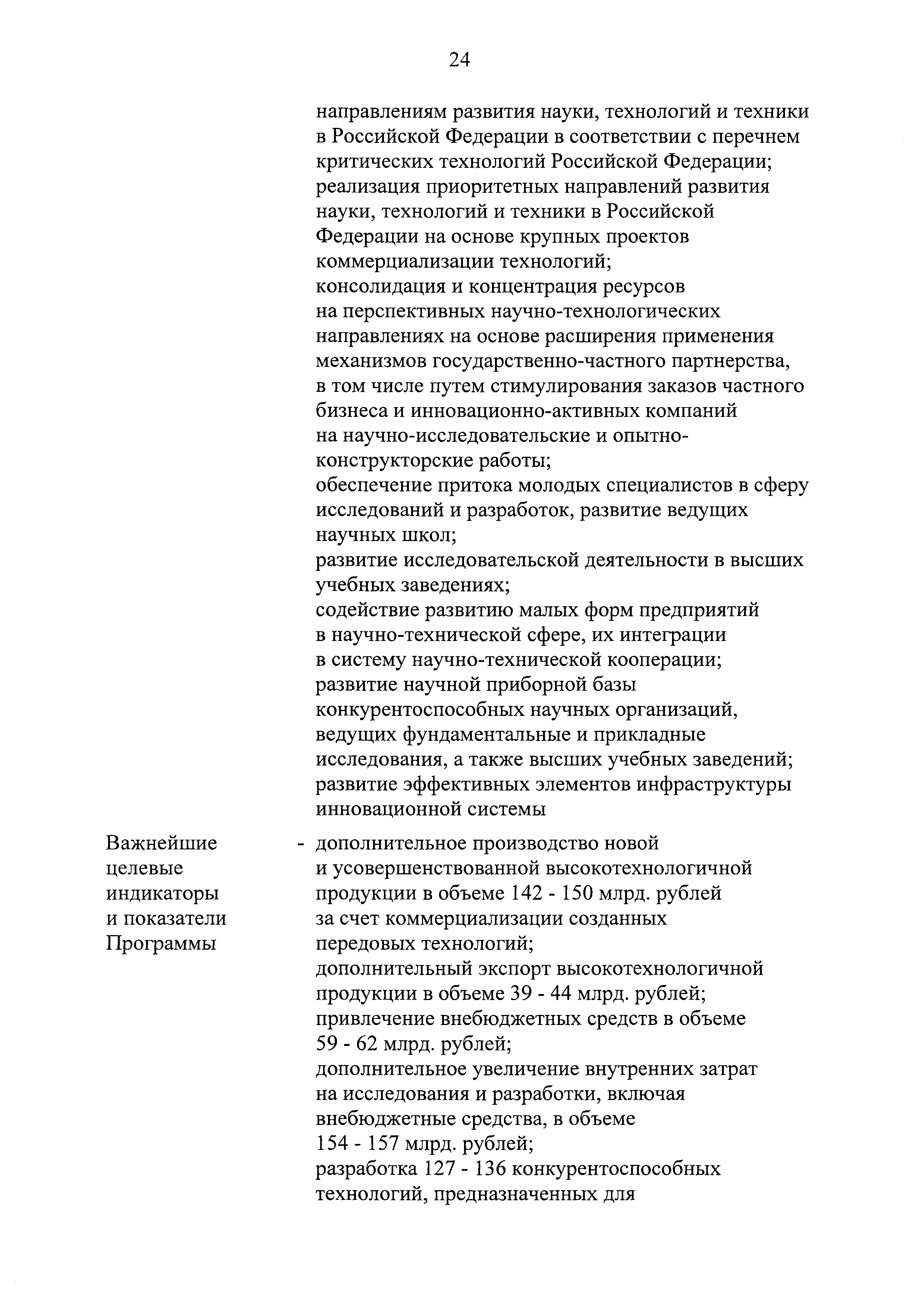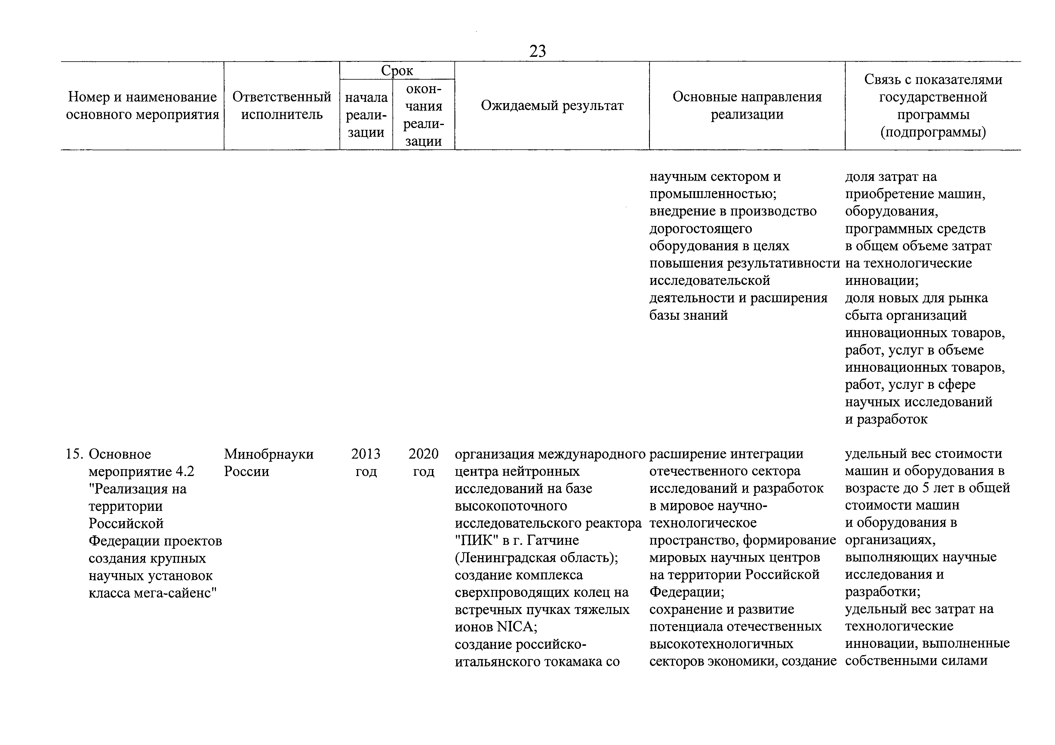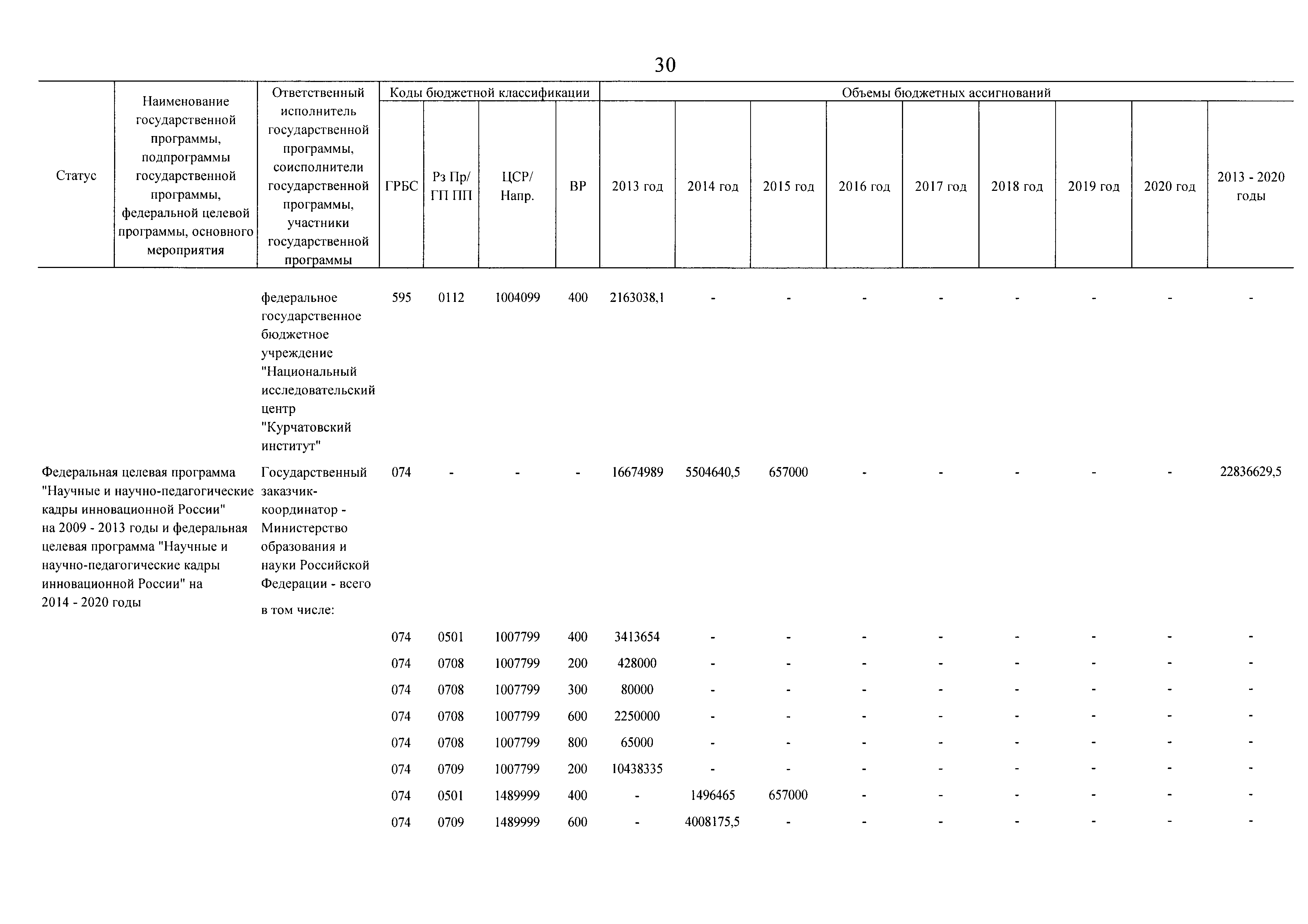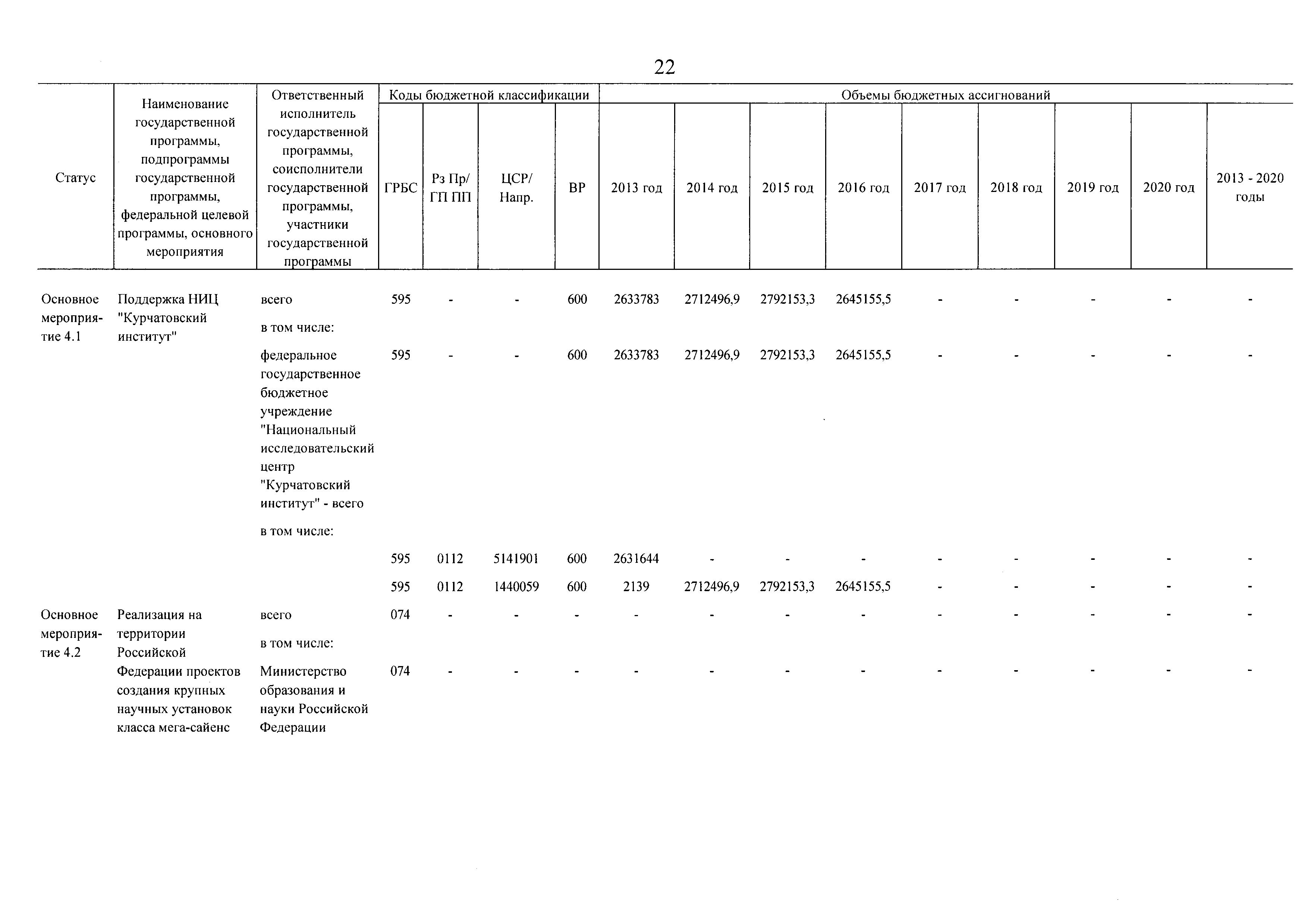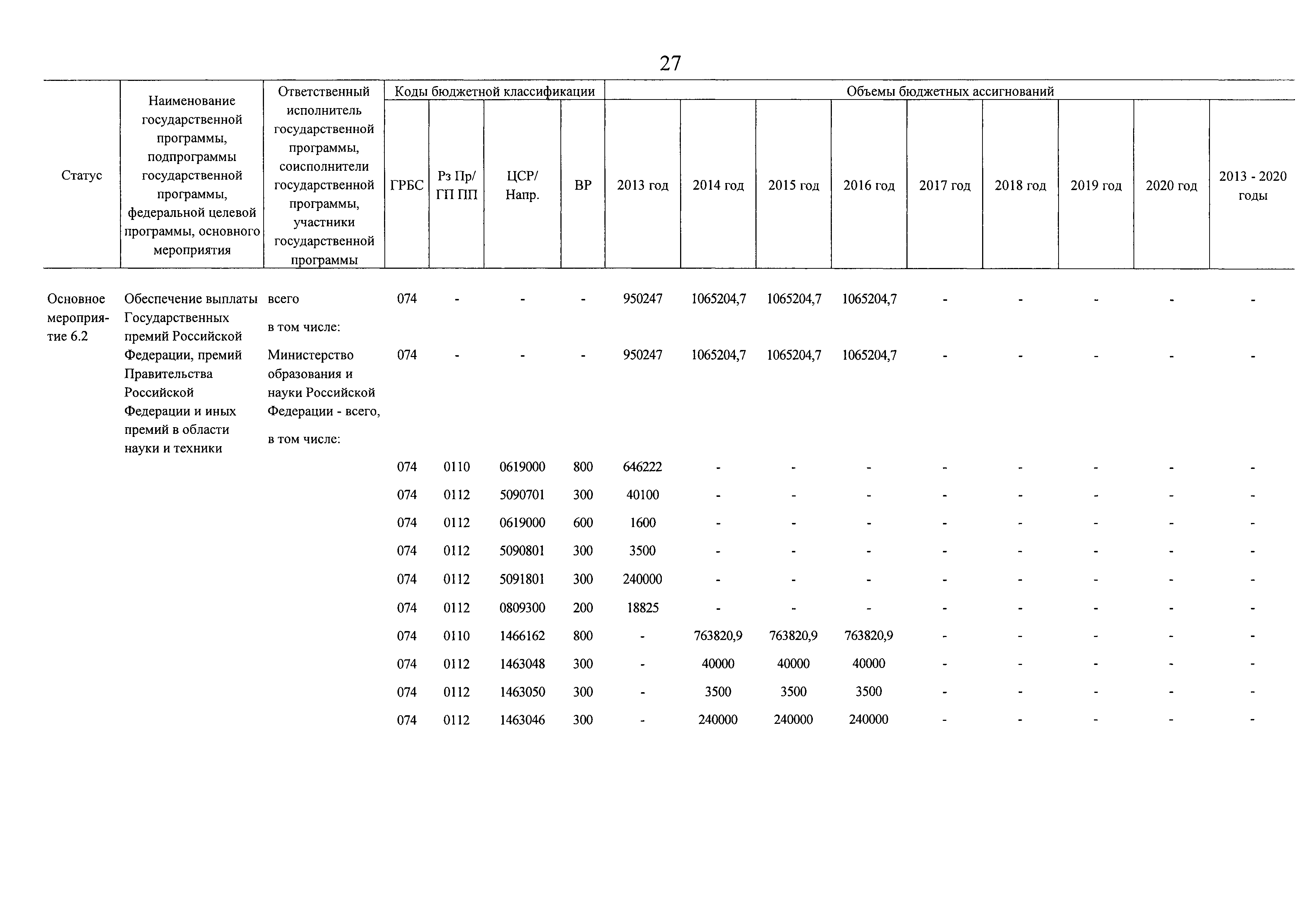 | Оглавление: | Паспорт государственной программы Российской Федерации "Развитие науки и технологий" на 2013 - 2020 годы Паспорт подпрограммы 1 "Фундаментальные научные исследования" государственной программы Российской Федерации "Развитие науки и технологий" на 2013 - 2020 годы Паспорт подпрограммы 2 "Прикладные проблемно ориентированные исследования и развитие научно-технологического задела в области перспективных технологий" государственной программы Российской Федерации "Развитие науки и технологий" на 2013 - 2020 годы Паспорт подпрограммы 3 "Институциональное развитие научно-исследовательского сектора" государственной программы Российской Федерации "Развитие науки и технологий" на 2013 - 2020 годы Паспорт подпрограммы 4 "Развитие межотраслевой инфраструктуры сектора исследований и разработок" государственной программы Российской Федерации "Развитие науки и технологий" на 2013 - 2020 годы Паспорт подпрограммы 5 "Международное сотрудничество в сфере науки" государственной программы Российской Федерации "Развитие науки и технологий" на 2013 - 2020 годы Паспорт подпрограммы 6 "Обеспечение реализации Государственной программы" государственной программы Российской Федерации "Развитие науки и технологий" на 2013 - 2020 годы Федеральная целевая программа "Исследования и разработки по приоритетным направлениям развития научно-технологического комплекса России на 2007 - 2013 годы" Паспорт федеральной целевой программы "Исследования и разработки по приоритетным направлениям развития научно-технологического комплекса России на 2007 - 2013 годы" Федеральная целевая программа "Исследования и разработки по приоритетным направлениям развития научно-технологического комплекса России на 2014 - 2020 годы" Паспорт федеральной целевой программы "Исследования и разработки по приоритетным направлениям развития научно-технологического комплекса России на 2014 - 2020 годы" Федеральная целевая программа "Научные и научно-педагогические кадры инновационной России" на 2009 - 2013 годы Паспорт федеральной целевой программы "Научные и научно-педагогические кадры инновационной России" на 2009 - 2013 годы Федеральная целевая программа "Научные и научно-педагогические кадры инновационной России" на 2014 - 2020 годы Паспорт федеральной целевой программы "Научные и научно-педагогические кадры инновационной России" на 2014 - 2020 годы Федеральная целевая программа "Мировой океан" Паспорт федеральной целевой программы "Мировой океан" Приоритеты и цели государственной политики в сфере реализации государственной программы Российской Федерации "Развитие науки и технологий" на 2013 - 2020 годы Приложение № 1. Сведения о показателях (индикаторах) государственной программы Российской Федерации "Развитие науки и технологий" на 2013 - 2020 годы, подпрограмм государственной программы Российской Федерации "Развитие науки и технологий" на 2013 - 2020 годы, федеральных целевых программ (подпрограмм федеральных целевых программ) Приложение № 2. Перечень основных мероприятий государственной программы Российской Федерации "Развитие науки и технологий" на 2013 - 2020 годы Приложение № 3. Сведения об основных мерах правового регулирования в сфере реализации государственной программы Российской Федерации "Развитие науки и технологий" на 2013 - 2020 годы Приложение № 4. Ресурсное обеспечение реализации государственной прогр