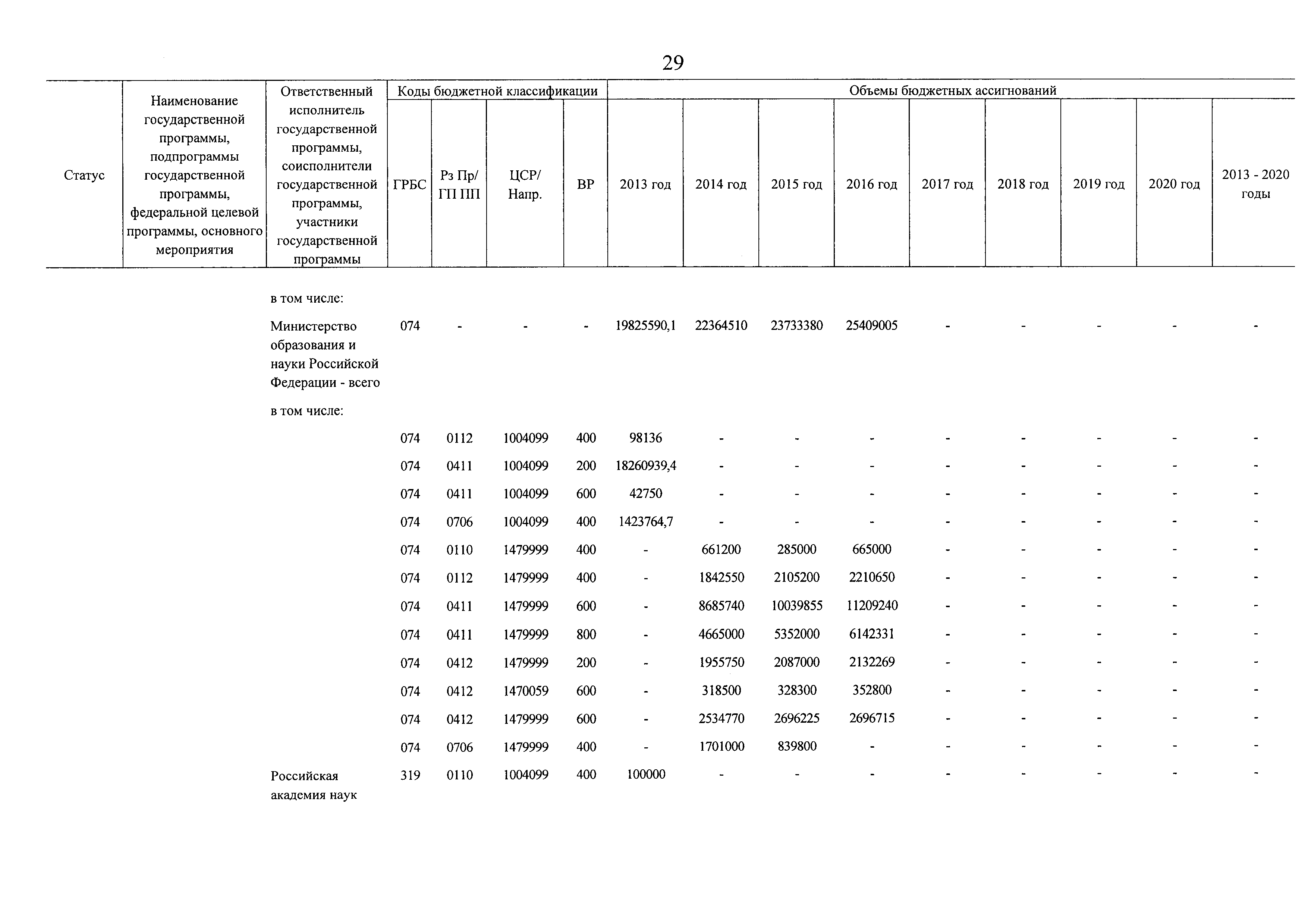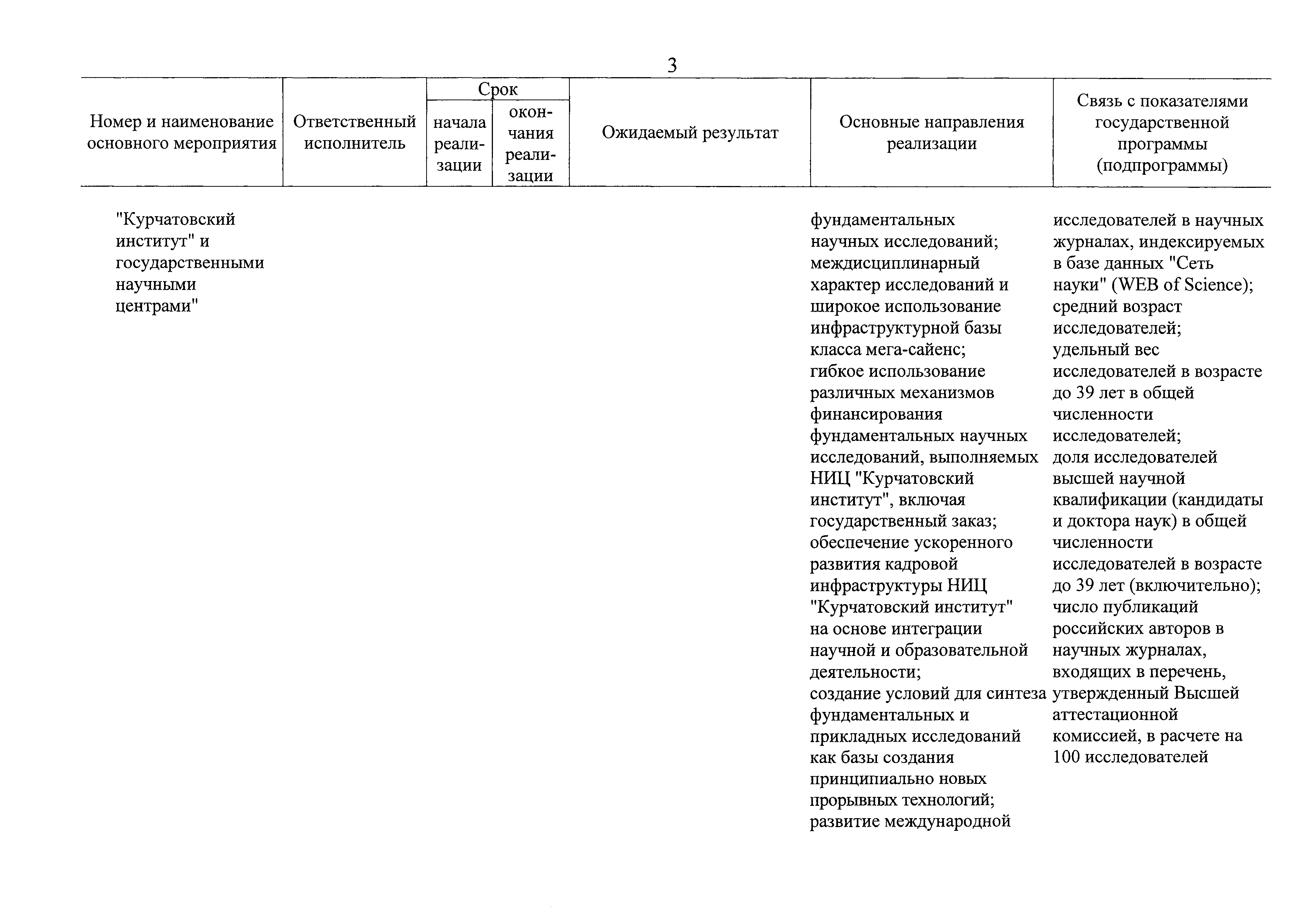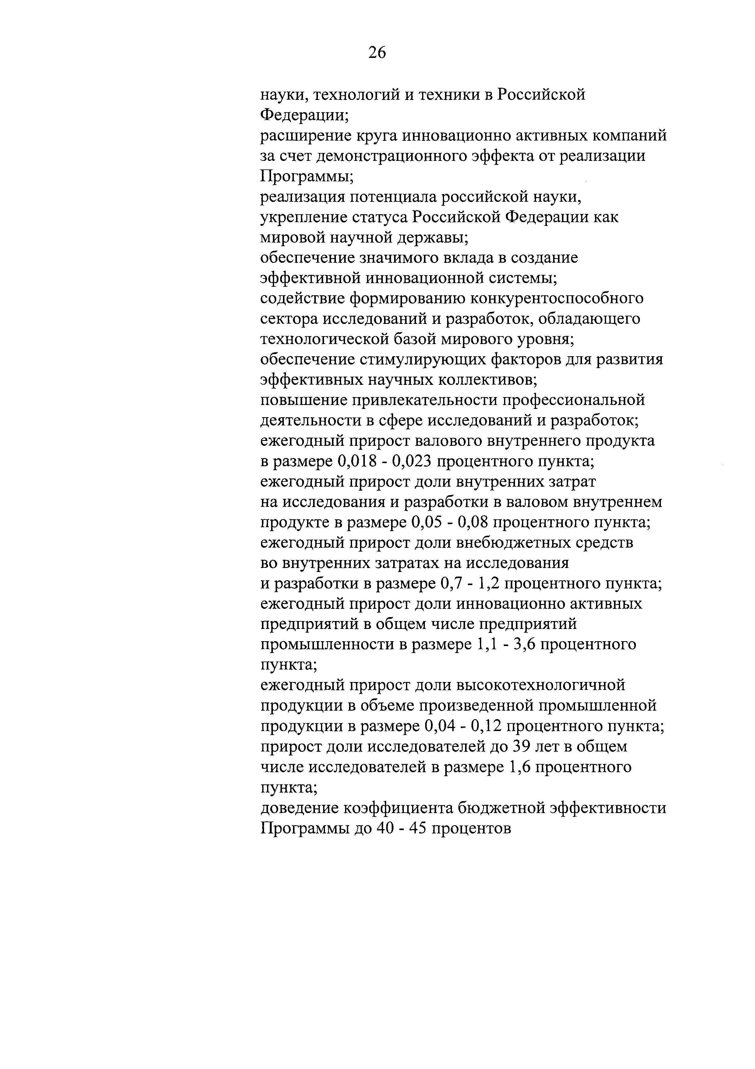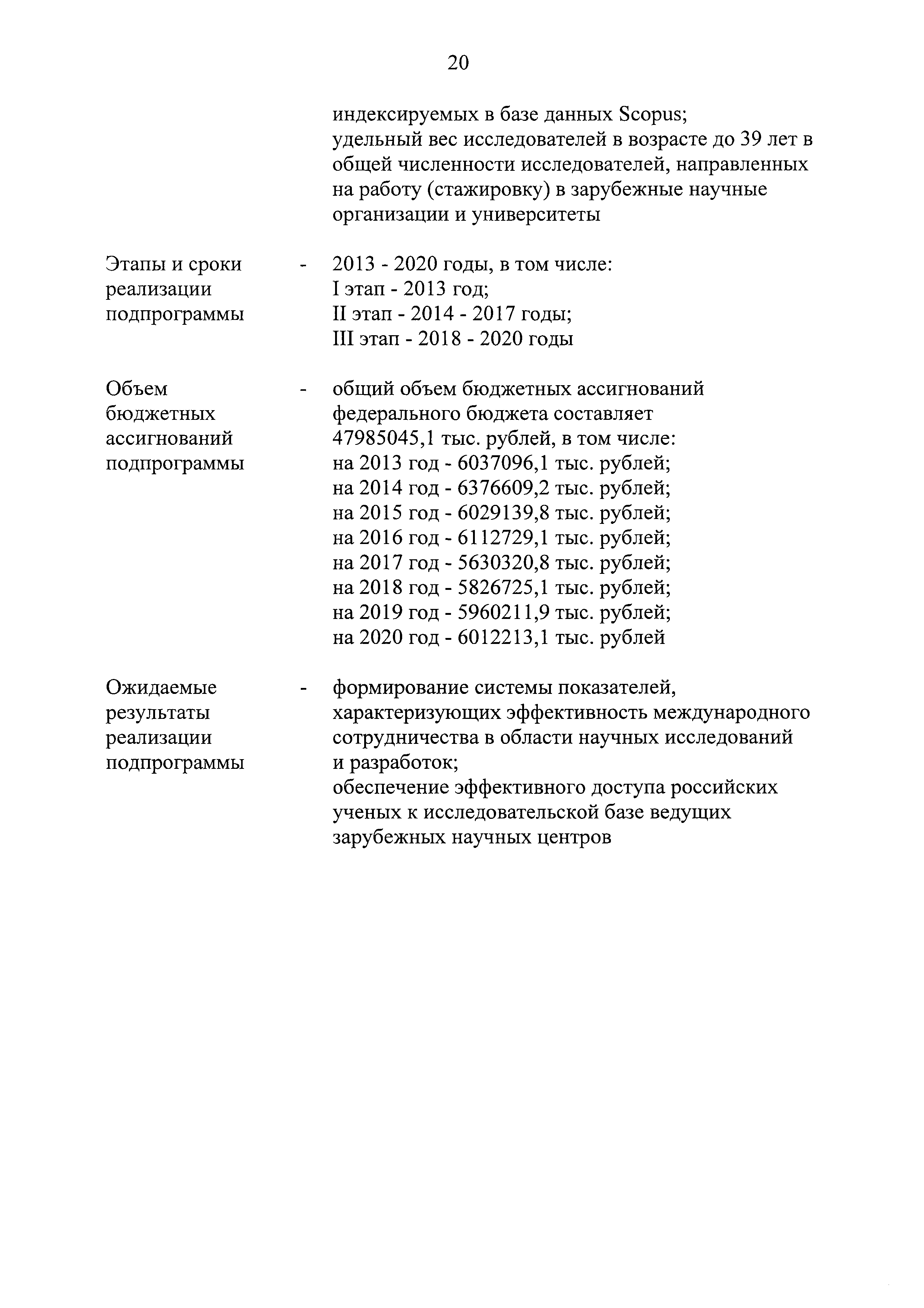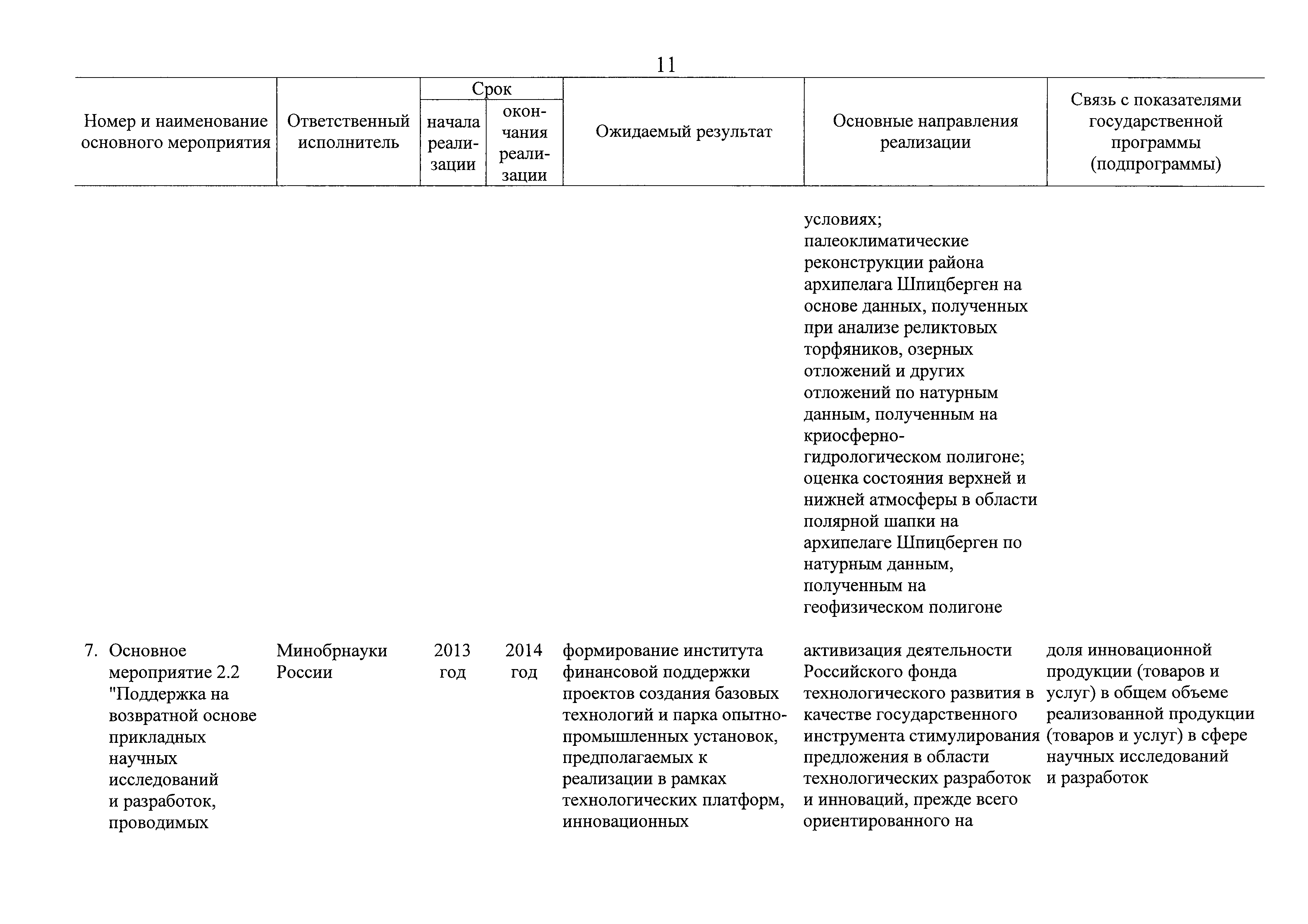 | Оглавление: | Паспорт государственной программы Российской Федерации "Развитие науки и технологий" на 2013 - 2020 годы Паспорт подпрограммы 1 "Фундаментальные научные исследования" государственной программы Российской Федерации "Развитие науки и технологий" на 2013 - 2020 годы Паспорт подпрограммы 2 "Прикладные проблемно ориентированные исследования и развитие научно-технологического задела в области перспективных технологий" государственной программы Российской Федерации "Развитие науки и технологий" на 2013 - 2020 годы Паспорт подпрограммы 3 "Институциональное развитие научно-исследовательского сектора" государственной программы Российской Федерации "Развитие науки и технологий" на 2013 - 2020 годы Паспорт подпрограммы 4 "Развитие межотраслевой инфраструктуры сектора исследований и разработок" государственной программы Российской Федерации "Развитие науки и технологий" на 2013 - 2020 годы Паспорт подпрограммы 5 "Международное сотрудничество в сфере науки" государственной программы Российской Федерации "Развитие науки и технологий" на 2013 - 2020 годы Паспорт подпрограммы 6 "Обеспечение реализации Государственной программы" государственной программы Российской Федерации "Развитие науки и технологий" на 2013 - 2020 годы Федеральная целевая программа "Исследования и разработки по приоритетным направлениям развития научно-технологического комплекса России на 2007 - 2013 годы" Паспорт федеральной целевой программы "Исследования и разработки по приоритетным направлениям развития научно-технологического комплекса России на 2007 - 2013 годы" Федеральная целевая программа "Исследования и разработки по приоритетным направлениям развития научно-технологического комплекса России на 2014 - 2020 годы" Паспорт федеральной целевой программы "Исследования и разработки по приоритетным направлениям развития научно-технологического комплекса России на 2014 - 2020 годы" Федеральная целевая программа "Научные и научно-педагогические кадры инновационной России" на 2009 - 2013 годы Паспорт федеральной целевой программы "Научные и научно-педагогические кадры инновационной России" на 2009 - 2013 годы Федеральная целевая программа "Научные и научно-педагогические кадры инновационной России" на 2014 - 2020 годы Паспорт федеральной целевой программы "Научные и научно-педагогические кадры инновационной России" на 2014 - 2020 годы Федеральная целевая программа "Мировой океан" Паспорт федеральной целевой программы "Мировой океан" Приоритеты и цели государственной политики в сфере реализации государственной программы Российской Федерации "Развитие науки и технологий" на 2013 - 2020 годы Приложение № 1. Сведения о показателях (индикаторах) государственной программы Российской Федерации "Развитие науки и технологий" на 2013 - 2020 годы, подпрограмм государственной программы Российской Федерации "Развитие науки и технологий" на 2013 - 2020 годы, федеральных целевых программ (подпрограмм федеральных целевых программ) Приложение № 2. Перечень основных мероприятий государственной программы Российской Федерации "Развитие науки и технологий" на 2013 - 2020 годы Приложение № 3. Сведения об основных мерах правового регулирования в сфере реализации государственной программы Российской Федерации "Развитие науки и технологий" на 2013 - 2020 годы Приложение № 4. Ресурсное обеспечение реализации государственной прогр