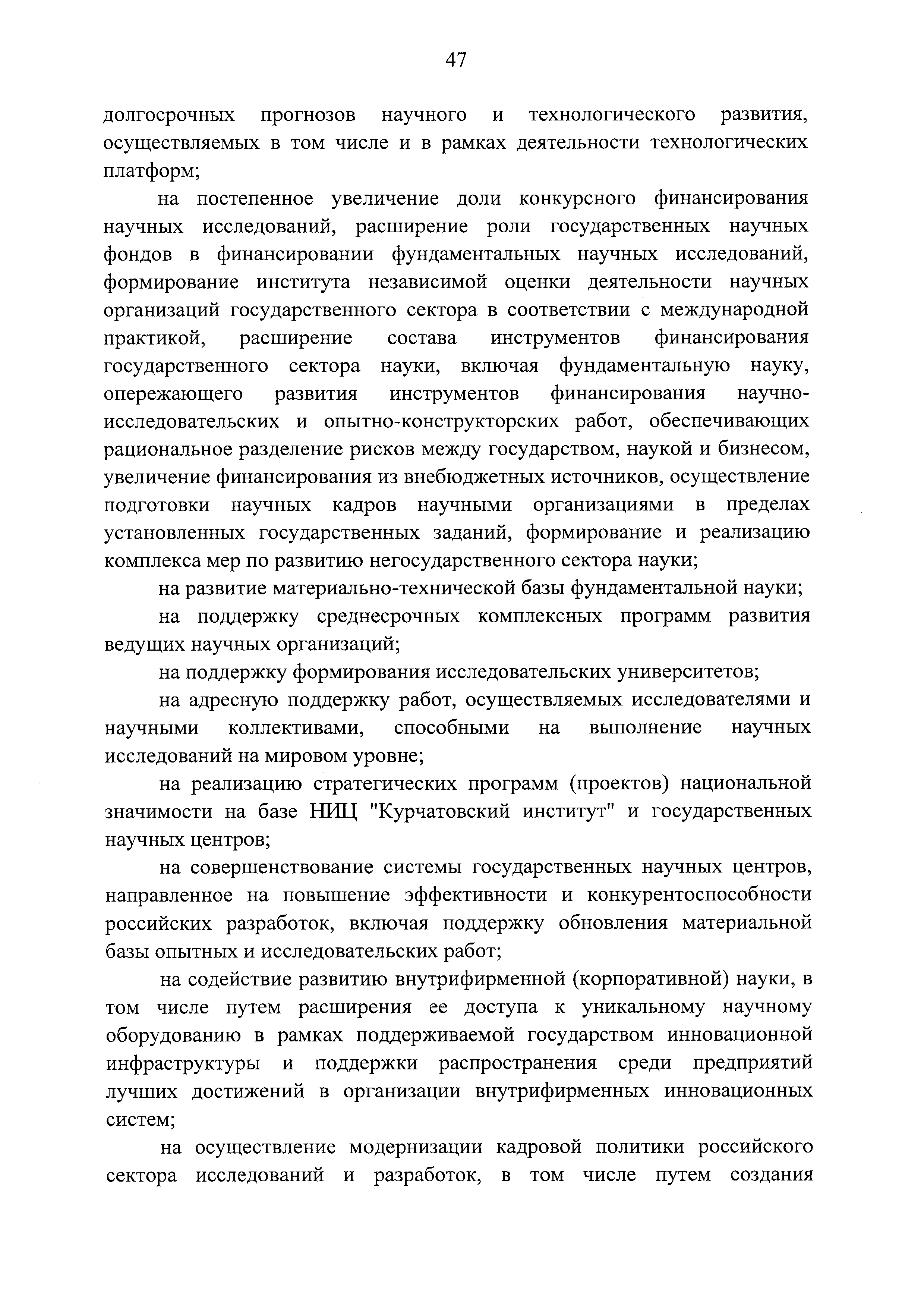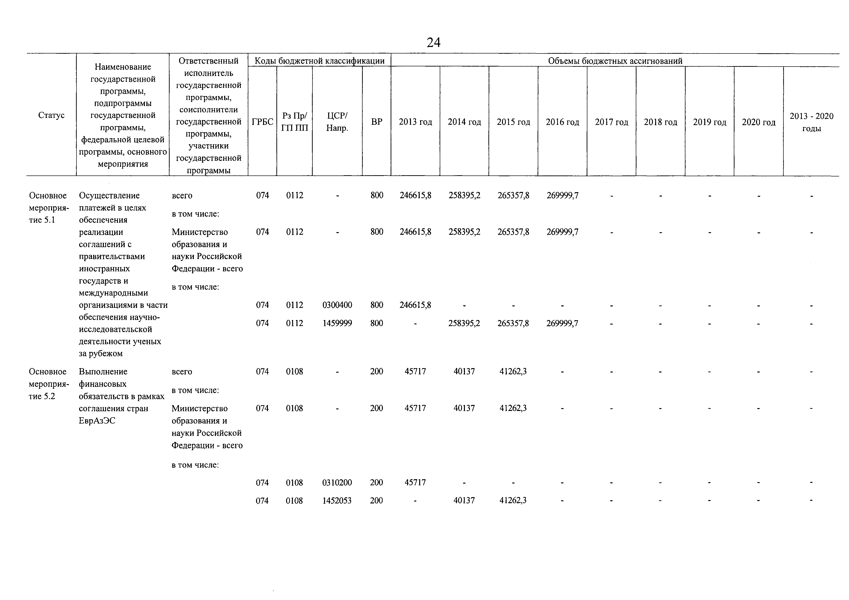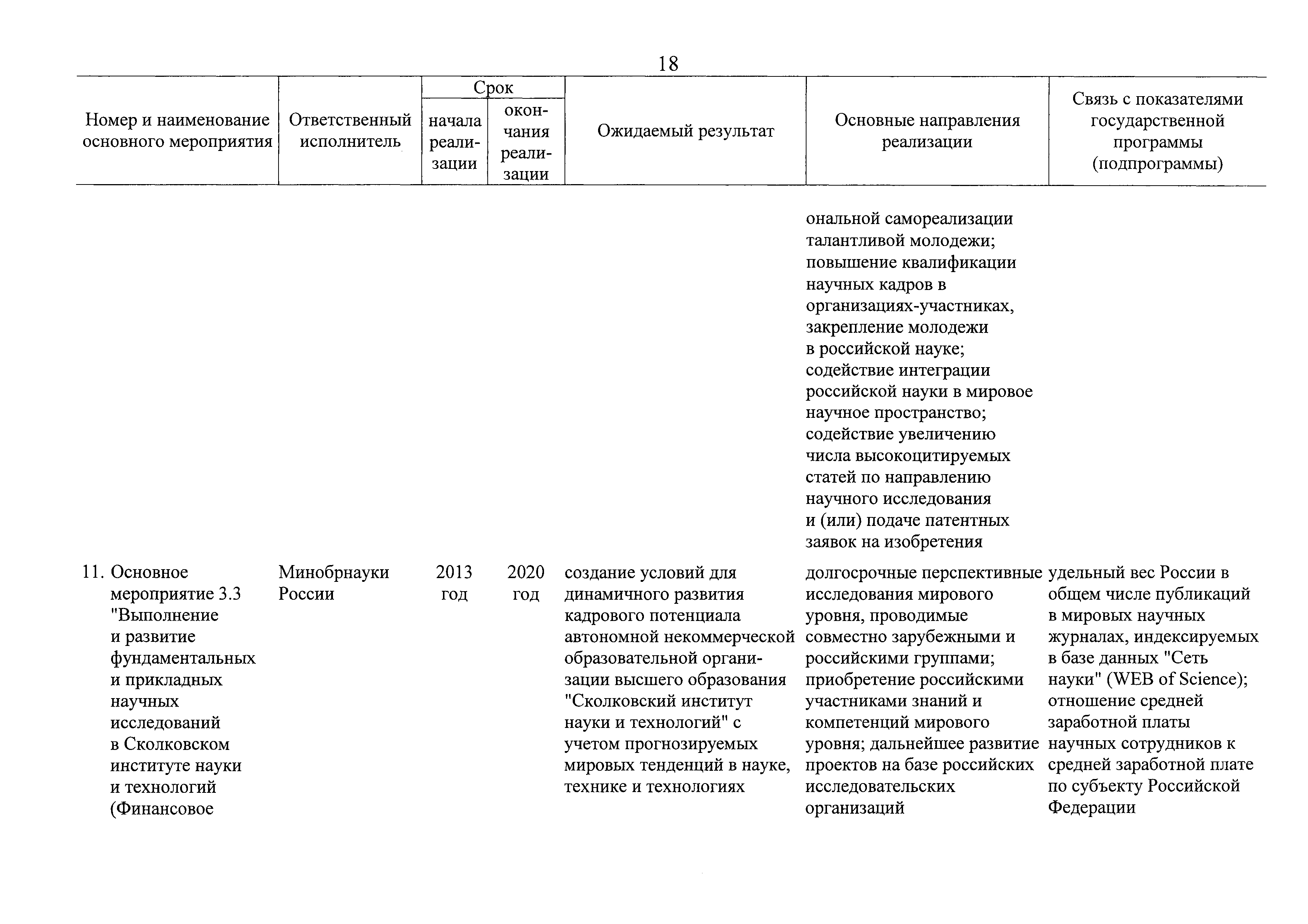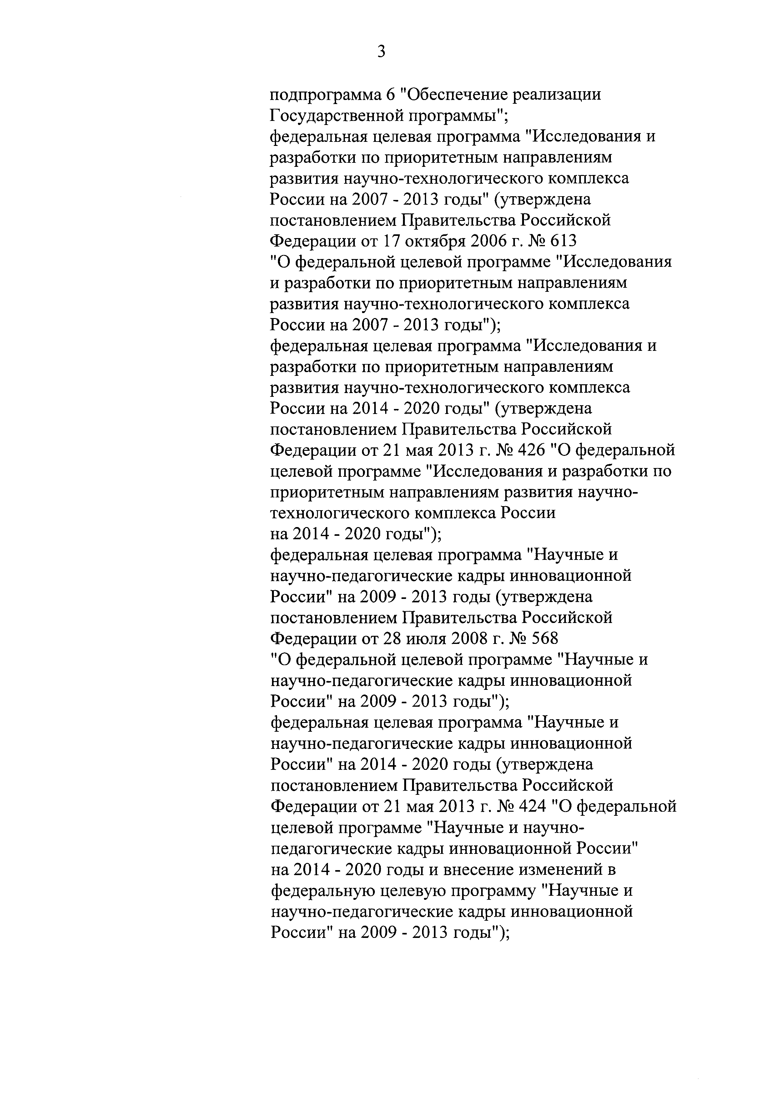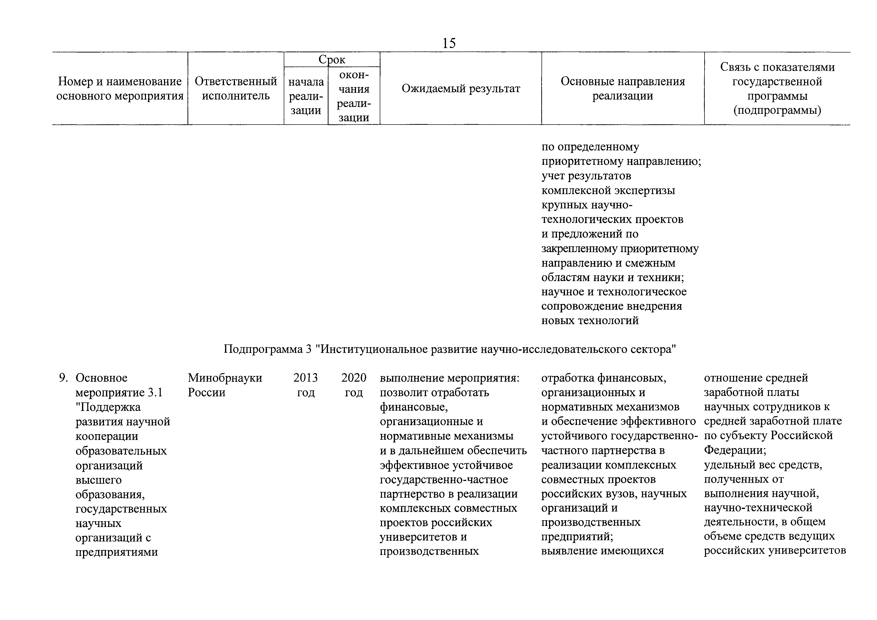 | Оглавление: | Паспорт государственной программы Российской Федерации "Развитие науки и технологий" на 2013 - 2020 годы Паспорт подпрограммы 1 "Фундаментальные научные исследования" государственной программы Российской Федерации "Развитие науки и технологий" на 2013 - 2020 годы Паспорт подпрограммы 2 "Прикладные проблемно ориентированные исследования и развитие научно-технологического задела в области перспективных технологий" государственной программы Российской Федерации "Развитие науки и технологий" на 2013 - 2020 годы Паспорт подпрограммы 3 "Институциональное развитие научно-исследовательского сектора" государственной программы Российской Федерации "Развитие науки и технологий" на 2013 - 2020 годы Паспорт подпрограммы 4 "Развитие межотраслевой инфраструктуры сектора исследований и разработок" государственной программы Российской Федерации "Развитие науки и технологий" на 2013 - 2020 годы Паспорт подпрограммы 5 "Международное сотрудничество в сфере науки" государственной программы Российской Федерации "Развитие науки и технологий" на 2013 - 2020 годы Паспорт подпрограммы 6 "Обеспечение реализации Государственной программы" государственной программы Российской Федерации "Развитие науки и технологий" на 2013 - 2020 годы Федеральная целевая программа "Исследования и разработки по приоритетным направлениям развития научно-технологического комплекса России на 2007 - 2013 годы" Паспорт федеральной целевой программы "Исследования и разработки по приоритетным направлениям развития научно-технологического комплекса России на 2007 - 2013 годы" Федеральная целевая программа "Исследования и разработки по приоритетным направлениям развития научно-технологического комплекса России на 2014 - 2020 годы" Паспорт федеральной целевой программы "Исследования и разработки по приоритетным направлениям развития научно-технологического комплекса России на 2014 - 2020 годы" Федеральная целевая программа "Научные и научно-педагогические кадры инновационной России" на 2009 - 2013 годы Паспорт федеральной целевой программы "Научные и научно-педагогические кадры инновационной России" на 2009 - 2013 годы Федеральная целевая программа "Научные и научно-педагогические кадры инновационной России" на 2014 - 2020 годы Паспорт федеральной целевой программы "Научные и научно-педагогические кадры инновационной России" на 2014 - 2020 годы Федеральная целевая программа "Мировой океан" Паспорт федеральной целевой программы "Мировой океан" Приоритеты и цели государственной политики в сфере реализации государственной программы Российской Федерации "Развитие науки и технологий" на 2013 - 2020 годы Приложение № 1. Сведения о показателях (индикаторах) государственной программы Российской Федерации "Развитие науки и технологий" на 2013 - 2020 годы, подпрограмм государственной программы Российской Федерации "Развитие науки и технологий" на 2013 - 2020 годы, федеральных целевых программ (подпрограмм федеральных целевых программ) Приложение № 2. Перечень основных мероприятий государственной программы Российской Федерации "Развитие науки и технологий" на 2013 - 2020 годы Приложение № 3. Сведения об основных мерах правового регулирования в сфере реализации государственной программы Российской Федерации "Развитие науки и технологий" на 2013 - 2020 годы Приложение № 4. Ресурсное обеспечение реализации государственной прогр