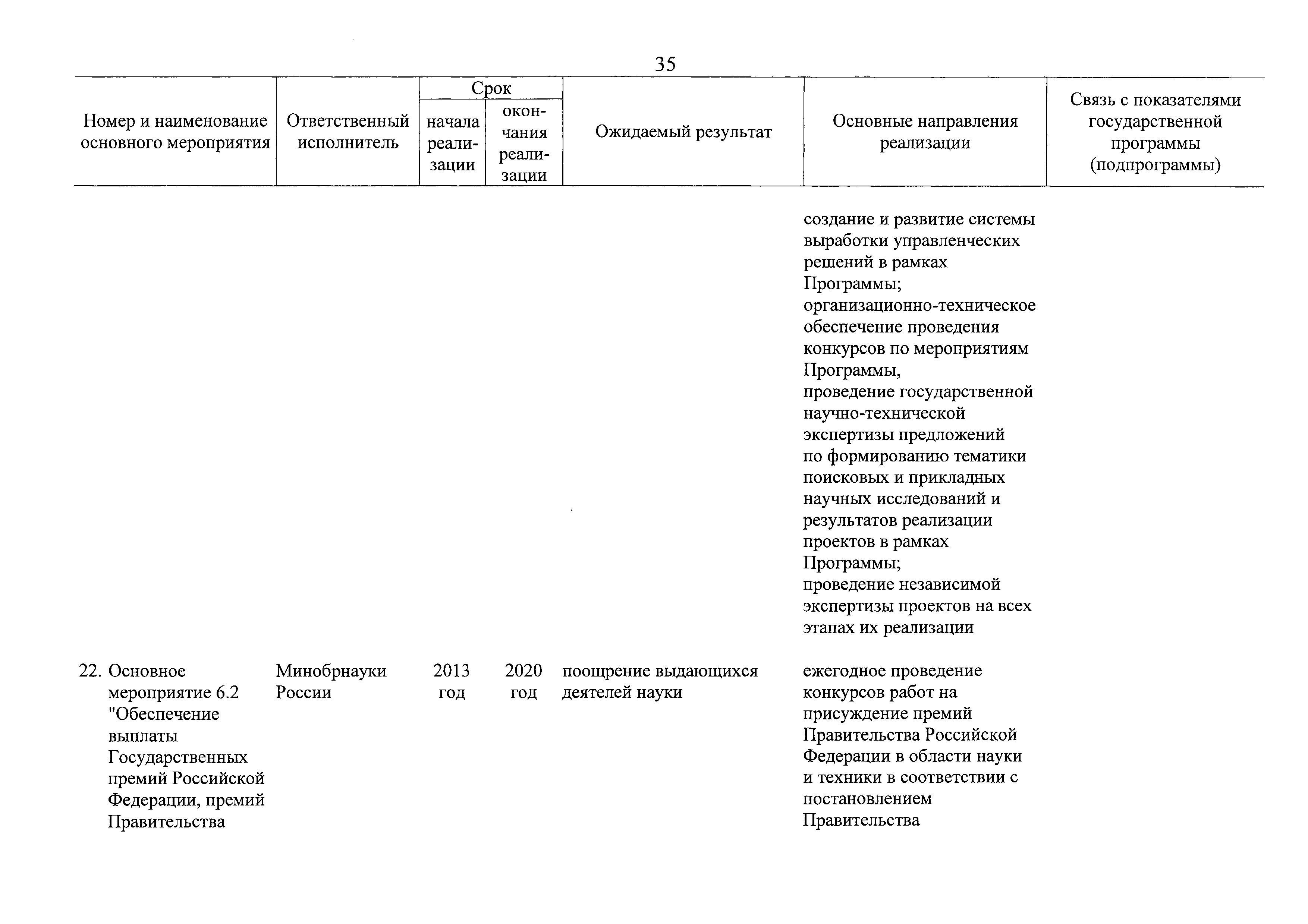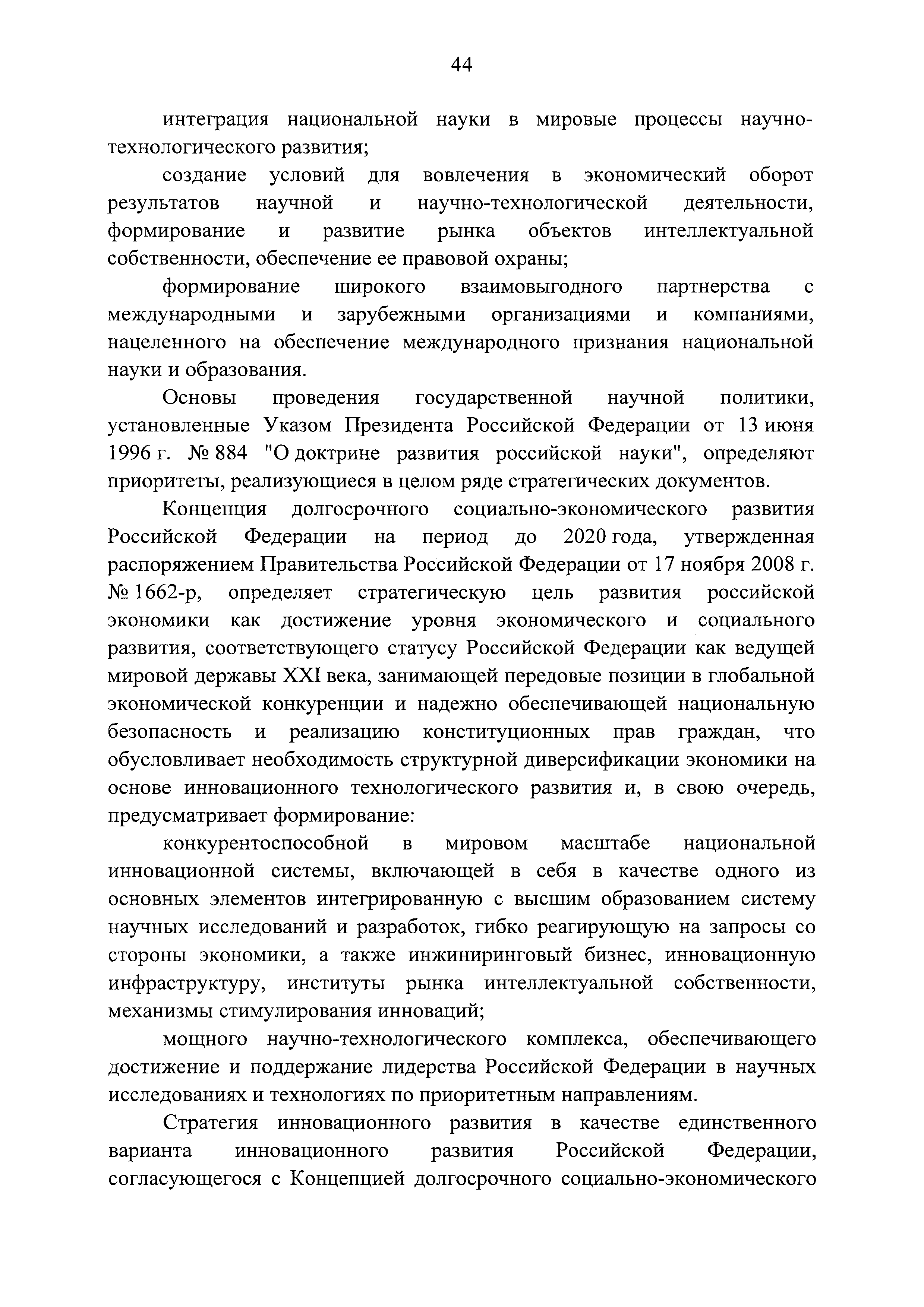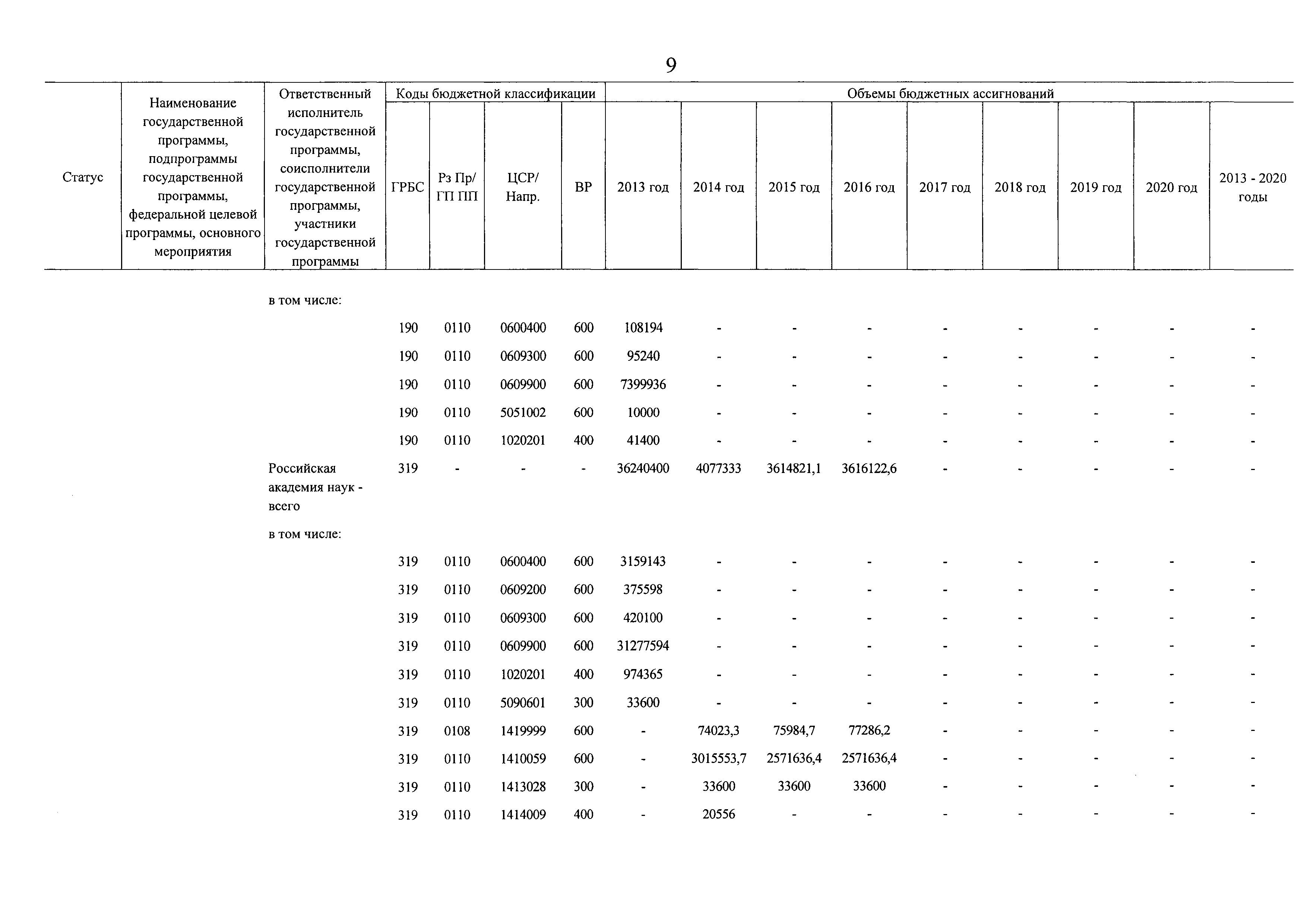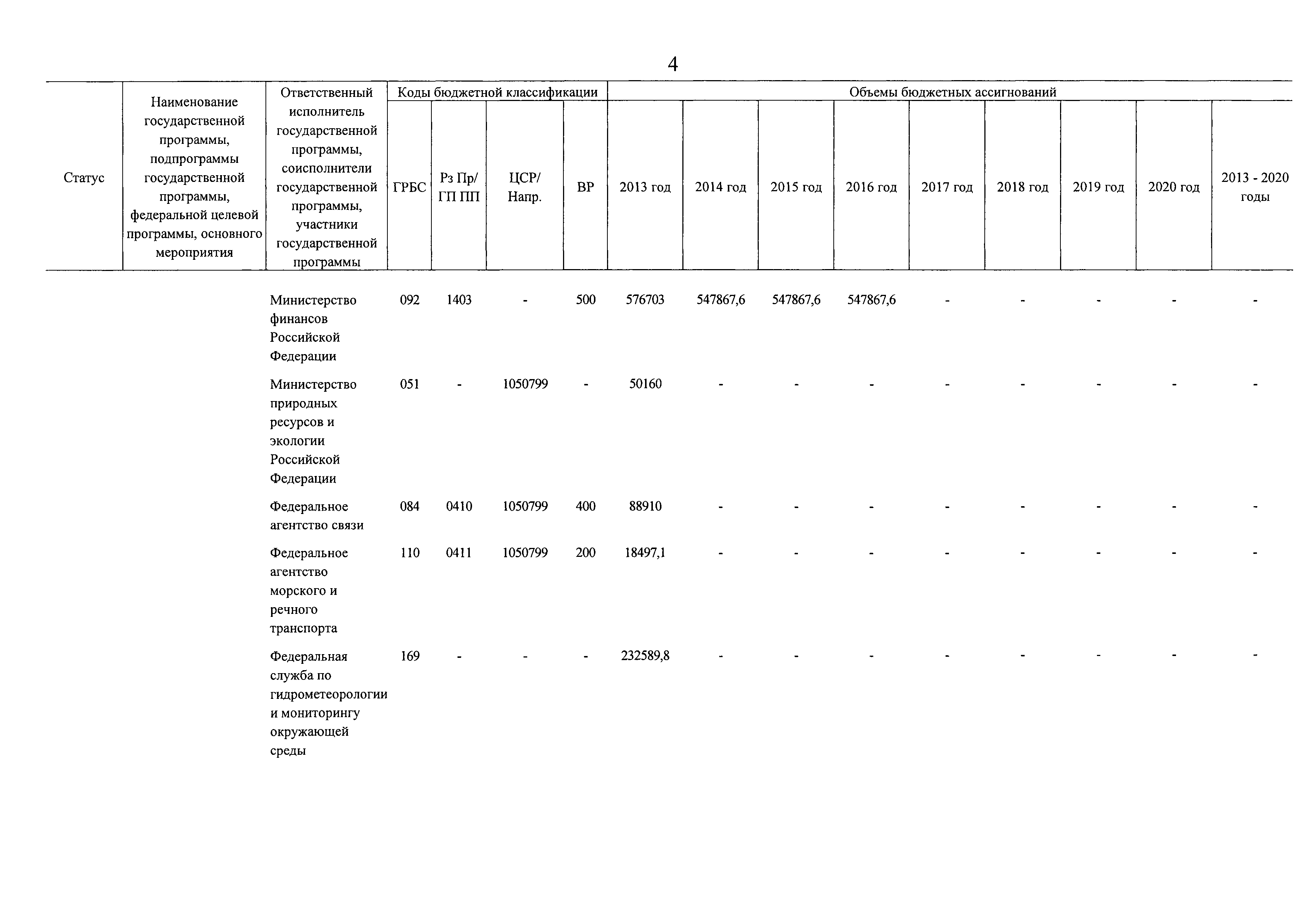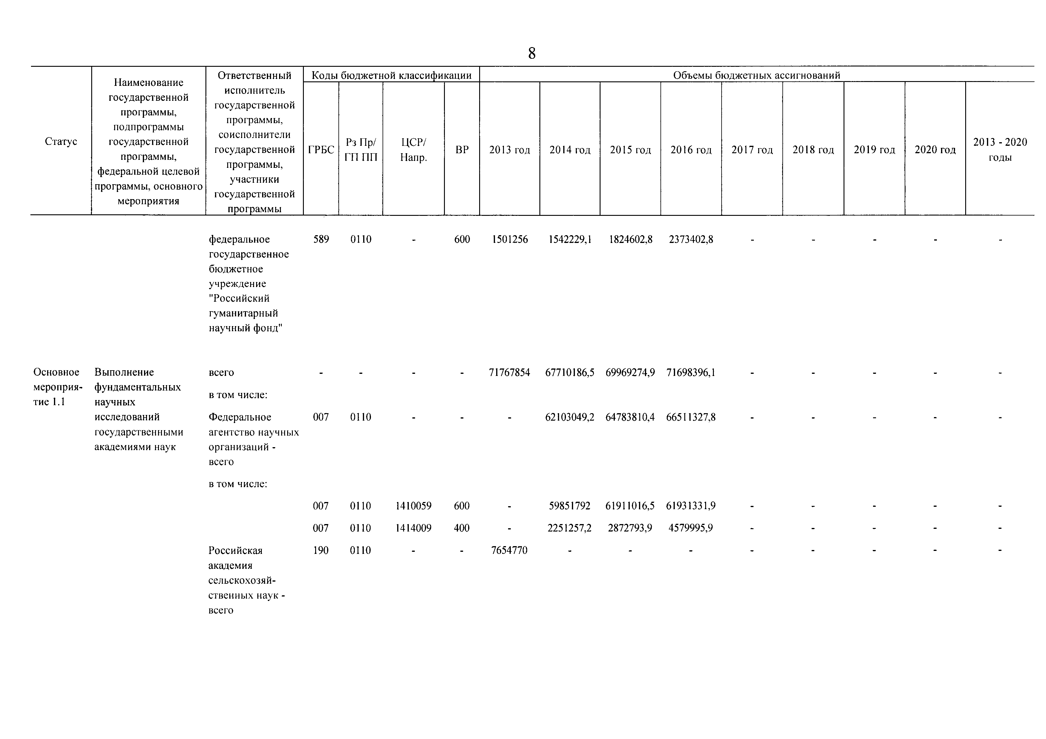 | Оглавление: | Паспорт государственной программы Российской Федерации "Развитие науки и технологий" на 2013 - 2020 годы Паспорт подпрограммы 1 "Фундаментальные научные исследования" государственной программы Российской Федерации "Развитие науки и технологий" на 2013 - 2020 годы Паспорт подпрограммы 2 "Прикладные проблемно ориентированные исследования и развитие научно-технологического задела в области перспективных технологий" государственной программы Российской Федерации "Развитие науки и технологий" на 2013 - 2020 годы Паспорт подпрограммы 3 "Институциональное развитие научно-исследовательского сектора" государственной программы Российской Федерации "Развитие науки и технологий" на 2013 - 2020 годы Паспорт подпрограммы 4 "Развитие межотраслевой инфраструктуры сектора исследований и разработок" государственной программы Российской Федерации "Развитие науки и технологий" на 2013 - 2020 годы Паспорт подпрограммы 5 "Международное сотрудничество в сфере науки" государственной программы Российской Федерации "Развитие науки и технологий" на 2013 - 2020 годы Паспорт подпрограммы 6 "Обеспечение реализации Государственной программы" государственной программы Российской Федерации "Развитие науки и технологий" на 2013 - 2020 годы Федеральная целевая программа "Исследования и разработки по приоритетным направлениям развития научно-технологического комплекса России на 2007 - 2013 годы" Паспорт федеральной целевой программы "Исследования и разработки по приоритетным направлениям развития научно-технологического комплекса России на 2007 - 2013 годы" Федеральная целевая программа "Исследования и разработки по приоритетным направлениям развития научно-технологического комплекса России на 2014 - 2020 годы" Паспорт федеральной целевой программы "Исследования и разработки по приоритетным направлениям развития научно-технологического комплекса России на 2014 - 2020 годы" Федеральная целевая программа "Научные и научно-педагогические кадры инновационной России" на 2009 - 2013 годы Паспорт федеральной целевой программы "Научные и научно-педагогические кадры инновационной России" на 2009 - 2013 годы Федеральная целевая программа "Научные и научно-педагогические кадры инновационной России" на 2014 - 2020 годы Паспорт федеральной целевой программы "Научные и научно-педагогические кадры инновационной России" на 2014 - 2020 годы Федеральная целевая программа "Мировой океан" Паспорт федеральной целевой программы "Мировой океан" Приоритеты и цели государственной политики в сфере реализации государственной программы Российской Федерации "Развитие науки и технологий" на 2013 - 2020 годы Приложение № 1. Сведения о показателях (индикаторах) государственной программы Российской Федерации "Развитие науки и технологий" на 2013 - 2020 годы, подпрограмм государственной программы Российской Федерации "Развитие науки и технологий" на 2013 - 2020 годы, федеральных целевых программ (подпрограмм федеральных целевых программ) Приложение № 2. Перечень основных мероприятий государственной программы Российской Федерации "Развитие науки и технологий" на 2013 - 2020 годы Приложение № 3. Сведения об основных мерах правового регулирования в сфере реализации государственной программы Российской Федерации "Развитие науки и технологий" на 2013 - 2020 годы Приложение № 4. Ресурсное обеспечение реализации государственной прогр