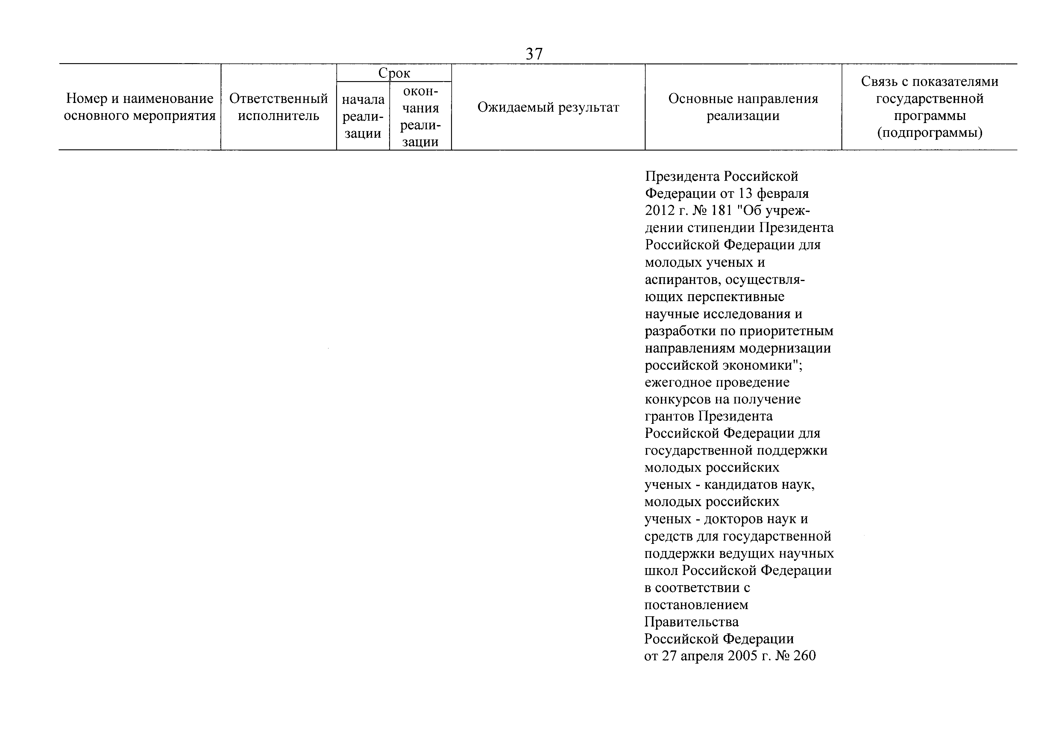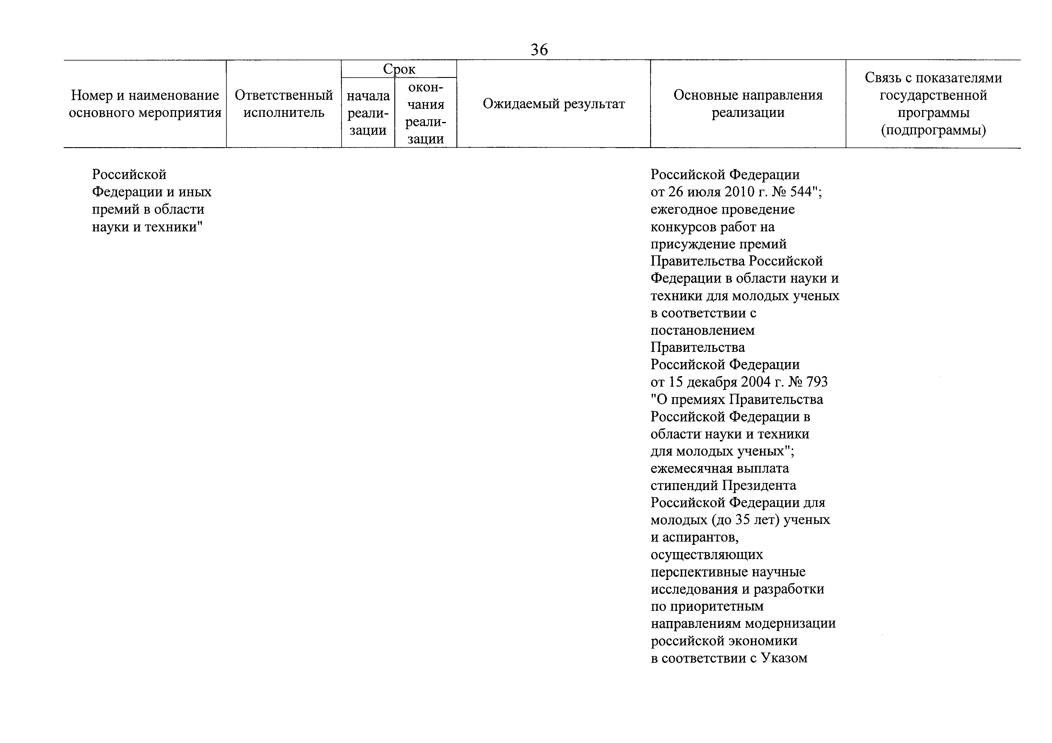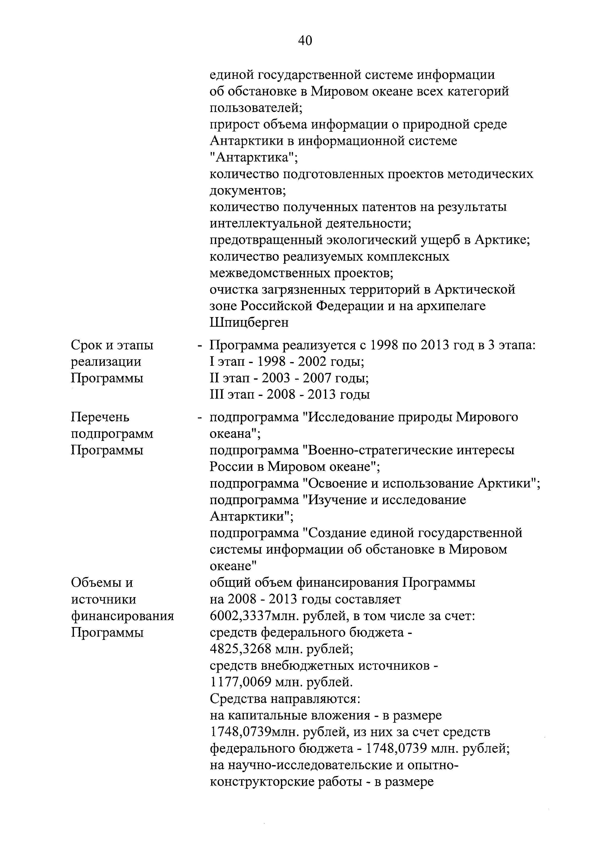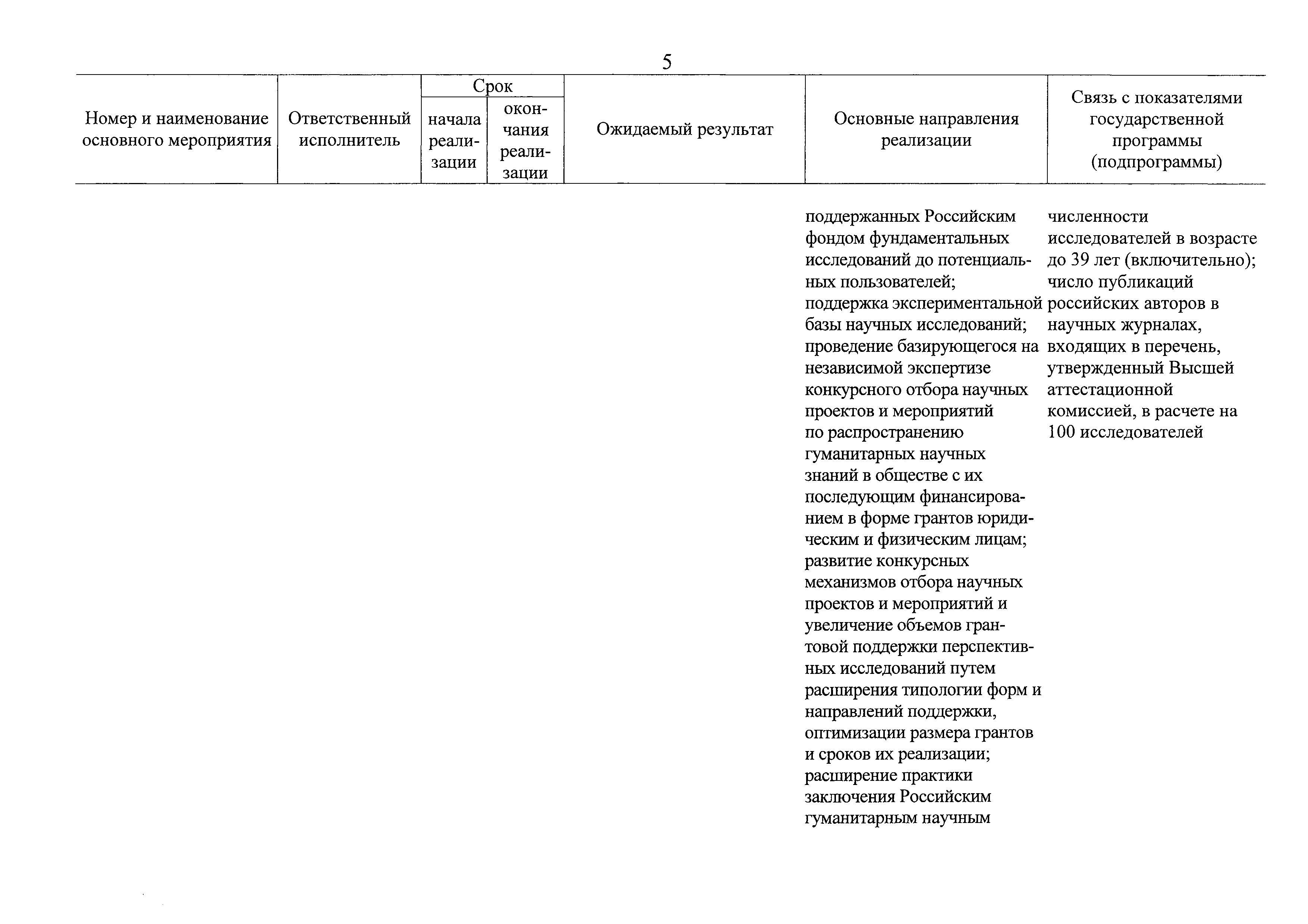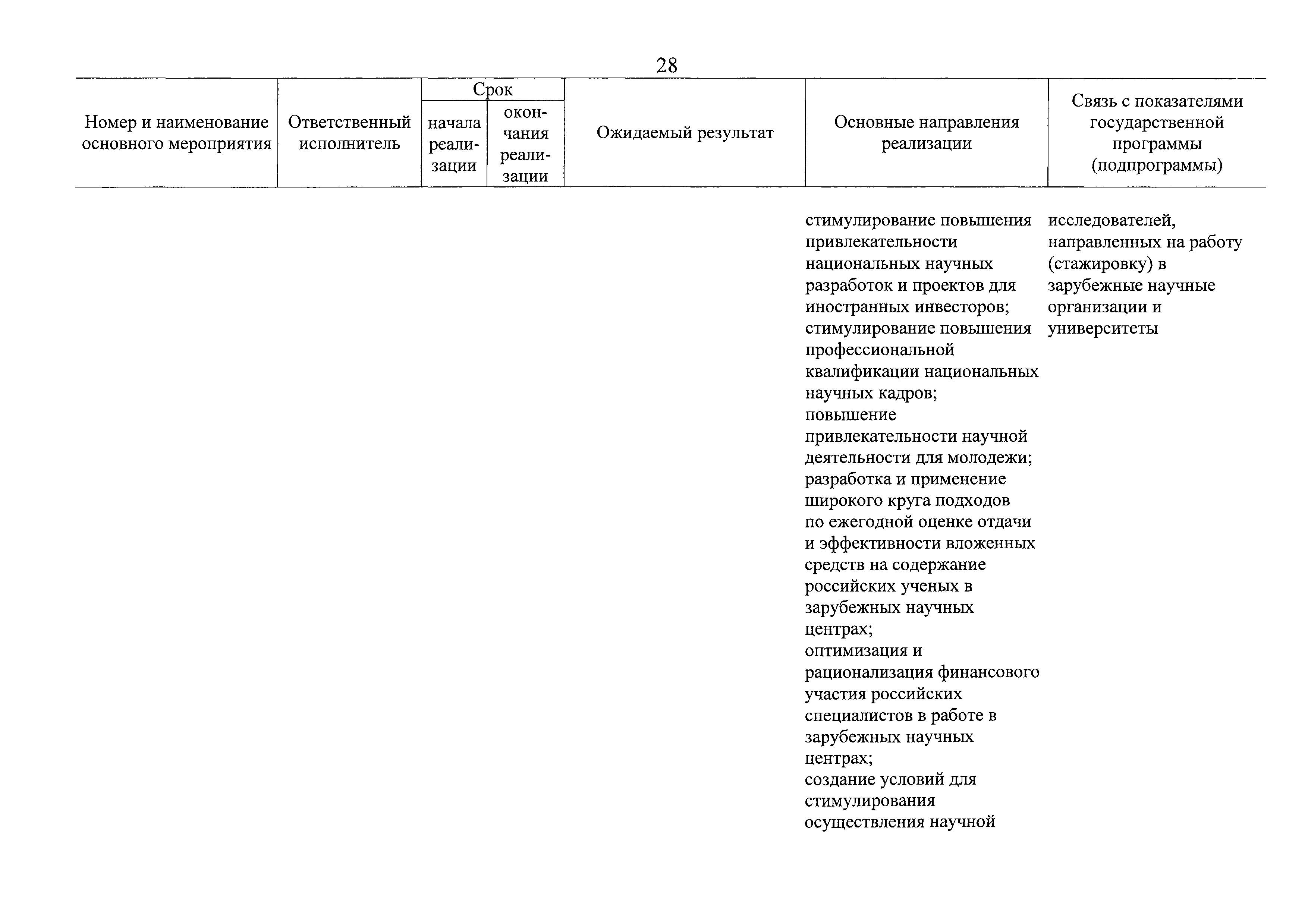 | Оглавление: | Паспорт государственной программы Российской Федерации "Развитие науки и технологий" на 2013 - 2020 годы Паспорт подпрограммы 1 "Фундаментальные научные исследования" государственной программы Российской Федерации "Развитие науки и технологий" на 2013 - 2020 годы Паспорт подпрограммы 2 "Прикладные проблемно ориентированные исследования и развитие научно-технологического задела в области перспективных технологий" государственной программы Российской Федерации "Развитие науки и технологий" на 2013 - 2020 годы Паспорт подпрограммы 3 "Институциональное развитие научно-исследовательского сектора" государственной программы Российской Федерации "Развитие науки и технологий" на 2013 - 2020 годы Паспорт подпрограммы 4 "Развитие межотраслевой инфраструктуры сектора исследований и разработок" государственной программы Российской Федерации "Развитие науки и технологий" на 2013 - 2020 годы Паспорт подпрограммы 5 "Международное сотрудничество в сфере науки" государственной программы Российской Федерации "Развитие науки и технологий" на 2013 - 2020 годы Паспорт подпрограммы 6 "Обеспечение реализации Государственной программы" государственной программы Российской Федерации "Развитие науки и технологий" на 2013 - 2020 годы Федеральная целевая программа "Исследования и разработки по приоритетным направлениям развития научно-технологического комплекса России на 2007 - 2013 годы" Паспорт федеральной целевой программы "Исследования и разработки по приоритетным направлениям развития научно-технологического комплекса России на 2007 - 2013 годы" Федеральная целевая программа "Исследования и разработки по приоритетным направлениям развития научно-технологического комплекса России на 2014 - 2020 годы" Паспорт федеральной целевой программы "Исследования и разработки по приоритетным направлениям развития научно-технологического комплекса России на 2014 - 2020 годы" Федеральная целевая программа "Научные и научно-педагогические кадры инновационной России" на 2009 - 2013 годы Паспорт федеральной целевой программы "Научные и научно-педагогические кадры инновационной России" на 2009 - 2013 годы Федеральная целевая программа "Научные и научно-педагогические кадры инновационной России" на 2014 - 2020 годы Паспорт федеральной целевой программы "Научные и научно-педагогические кадры инновационной России" на 2014 - 2020 годы Федеральная целевая программа "Мировой океан" Паспорт федеральной целевой программы "Мировой океан" Приоритеты и цели государственной политики в сфере реализации государственной программы Российской Федерации "Развитие науки и технологий" на 2013 - 2020 годы Приложение № 1. Сведения о показателях (индикаторах) государственной программы Российской Федерации "Развитие науки и технологий" на 2013 - 2020 годы, подпрограмм государственной программы Российской Федерации "Развитие науки и технологий" на 2013 - 2020 годы, федеральных целевых программ (подпрограмм федеральных целевых программ) Приложение № 2. Перечень основных мероприятий государственной программы Российской Федерации "Развитие науки и технологий" на 2013 - 2020 годы Приложение № 3. Сведения об основных мерах правового регулирования в сфере реализации государственной программы Российской Федерации "Развитие науки и технологий" на 2013 - 2020 годы Приложение № 4. Ресурсное обеспечение реализации государственной прогр