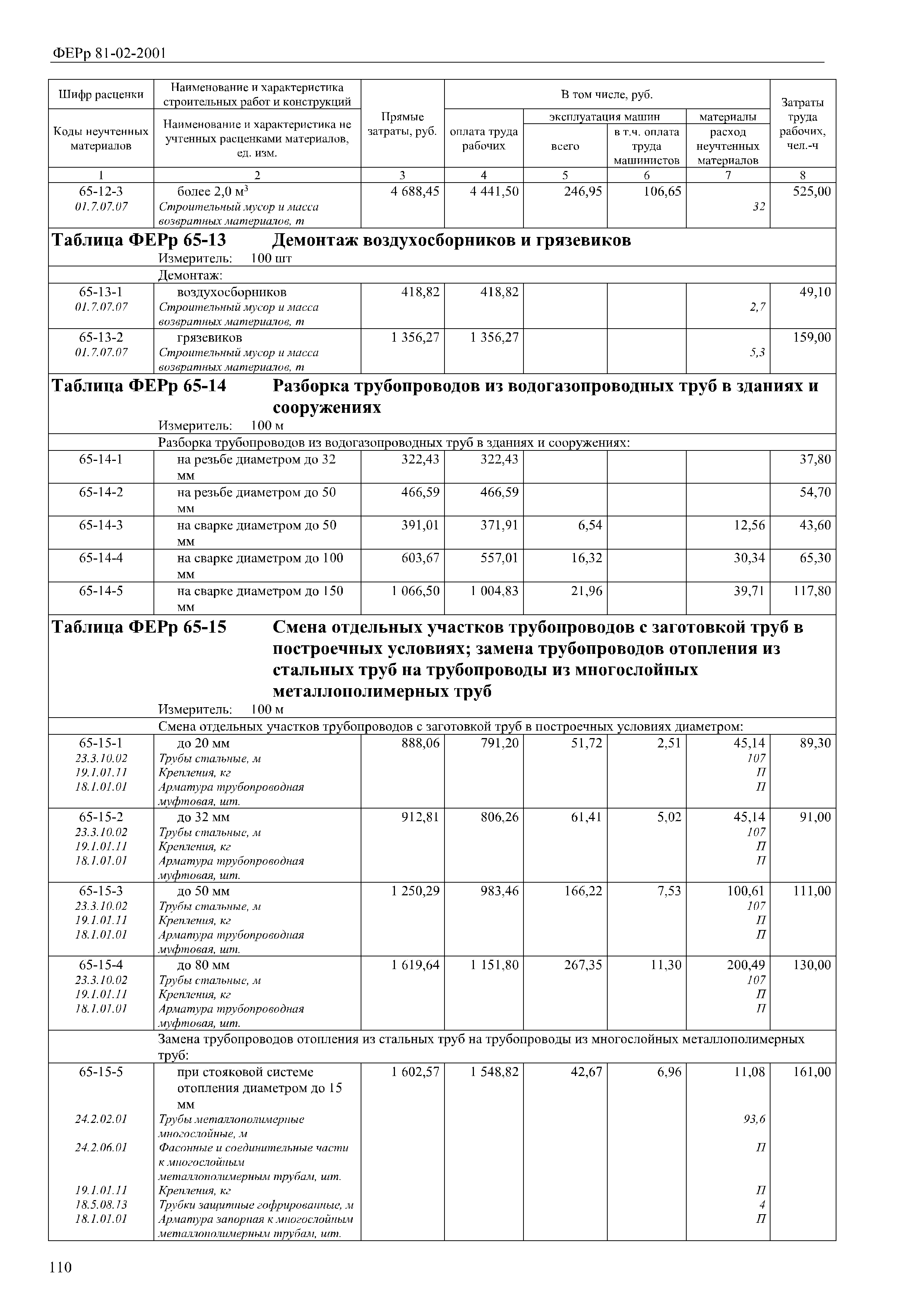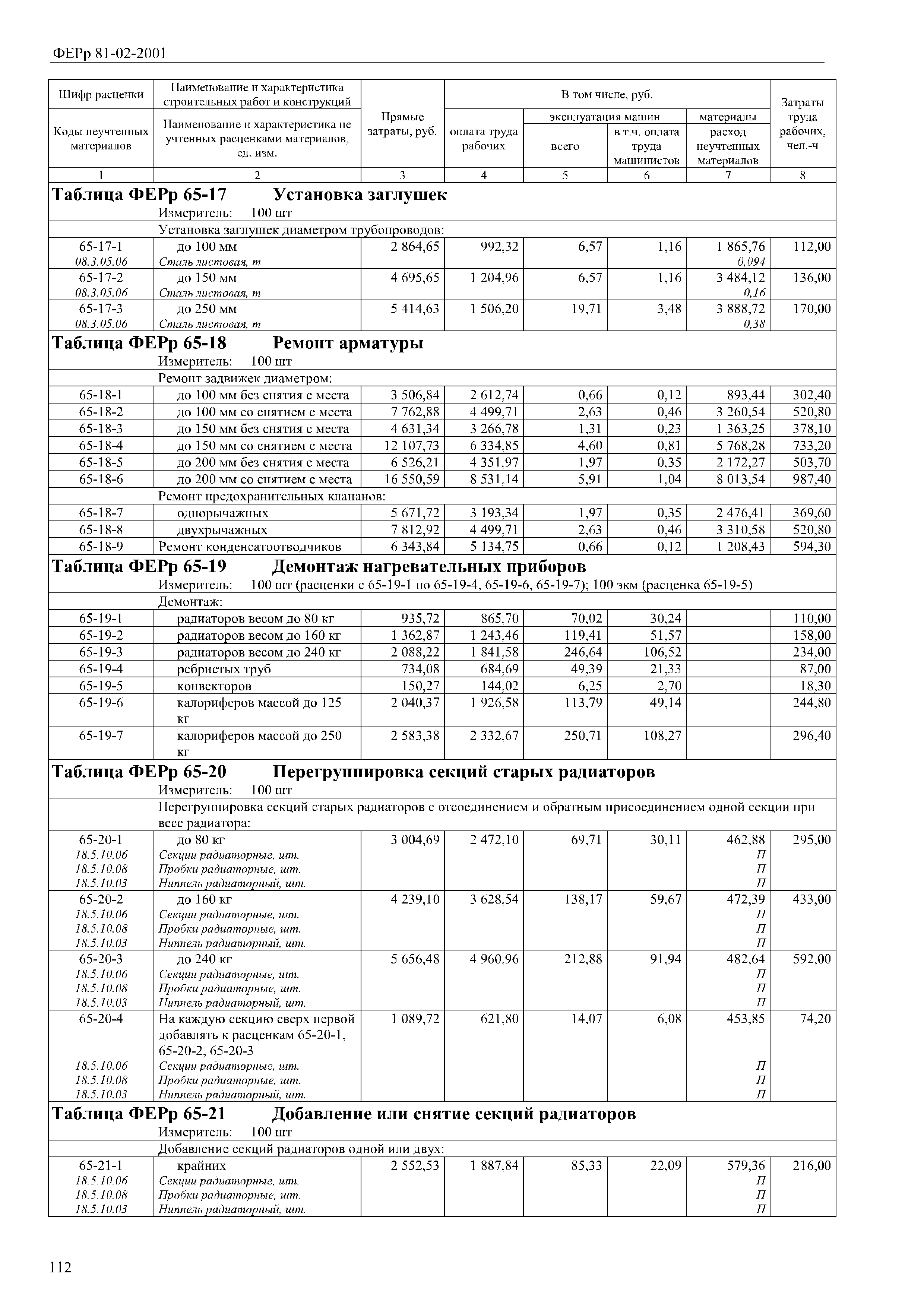 | Название рус.: | Сборник 65. Внутренние санитарно-технические работы (редакция 2017 г.). Внутренние санитарно-технические работы. Федеральные единичные расценки на ремонтно-строительные работы |