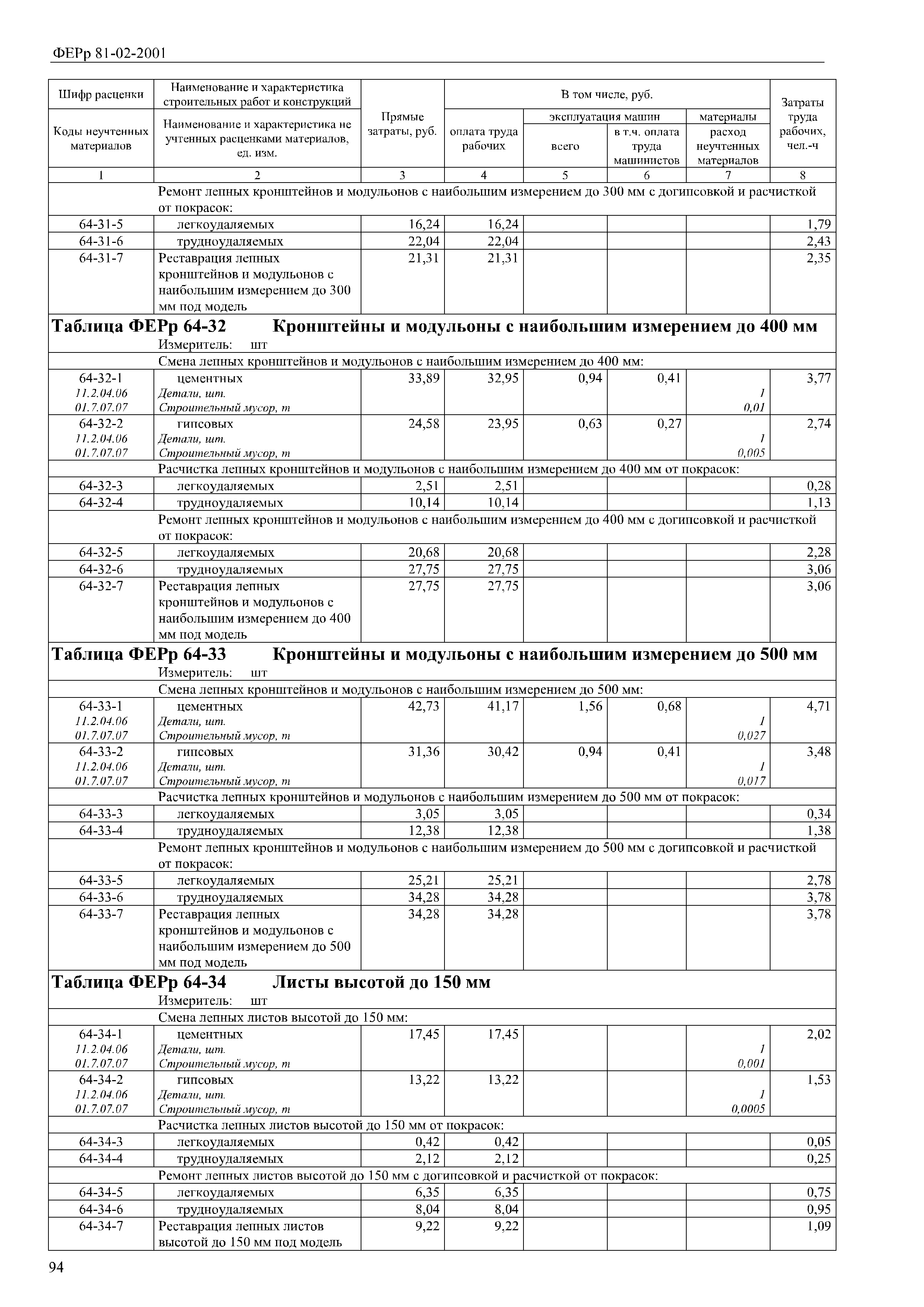 | Название рус.: | Сборник 64. Лепные работы (редакция 2017 г.). Лепные работы. Федеральные единичные расценки на ремонтно-строительные работы |