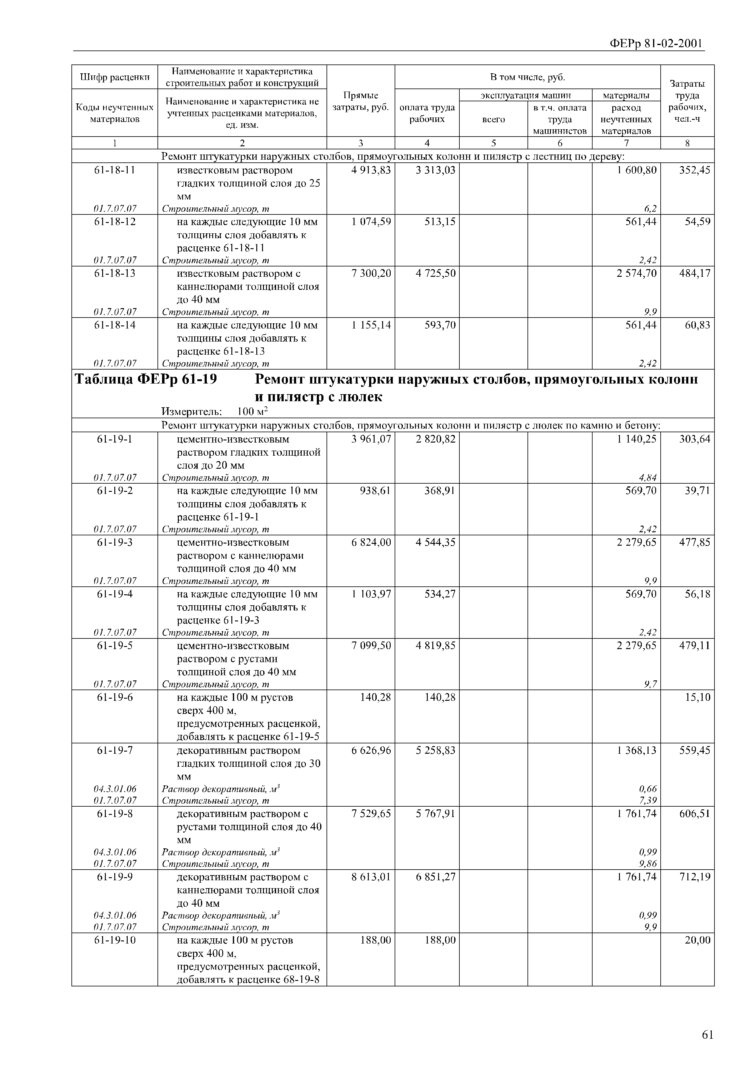 | Название рус.: | Сборник 61. Штукатурные работы (редакция 2017 г.). Штукатурные работы. Федеральные единичные расценки на ремонтно-строительные работы |
