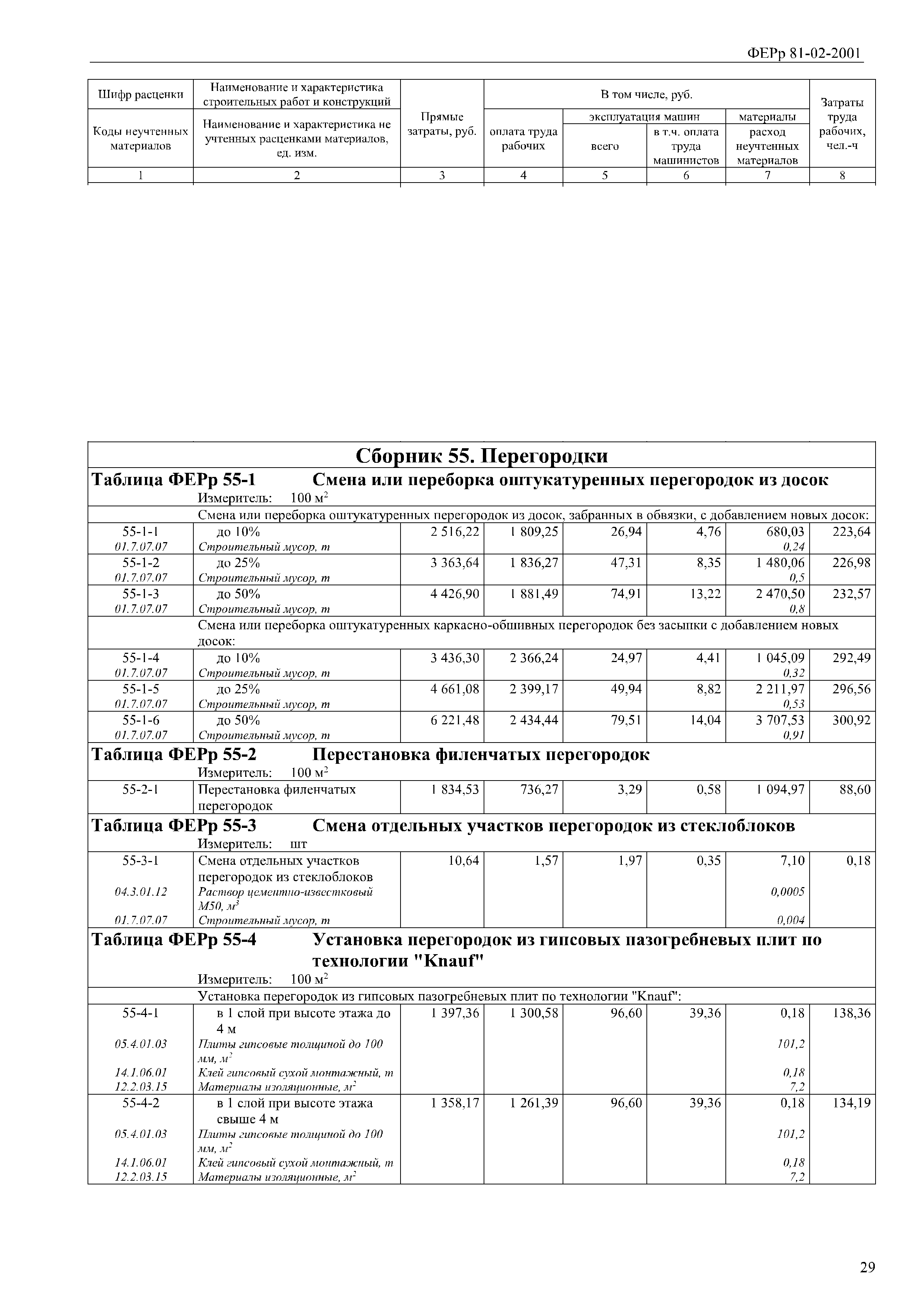 Скачать Сборник 55. Перегородки (редакция 2017 г.). Перегородки. Федеральные единичные расценки на ремонтно-строительные работыДата актуализации: 01.01.2021