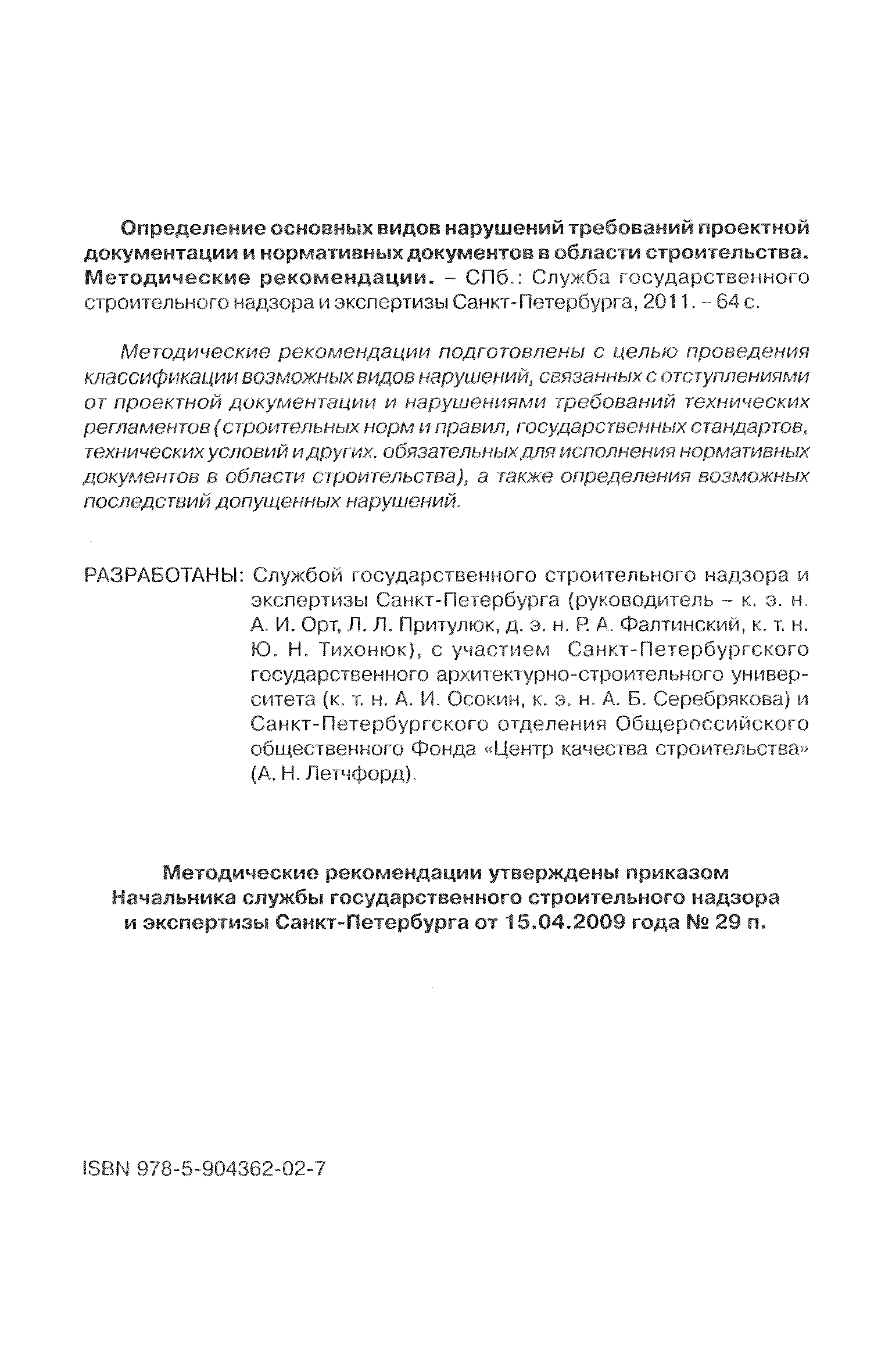 | Утверждён: | 15.04.2009 Служба государственного строительного надзора и экспертизы Санкт-Петербурга (29п) |