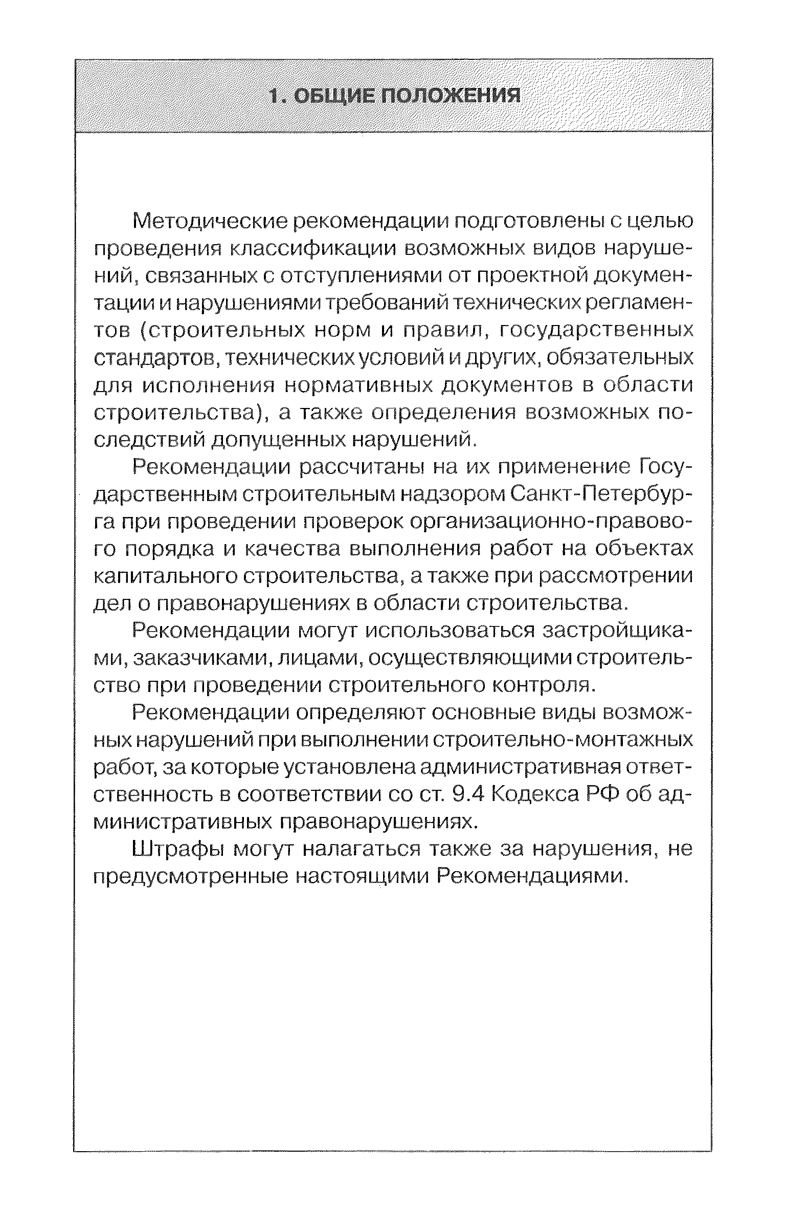 | Область применения: | Документ подготовлен с целью проведения классификации возможных видов нарушений, связанных с отступлениями от проектной документации и нарушениями требований технических регламентов (строительных норм и правил, государственных стандартов, технических условий и других, обязательных для исполнения нормативных документов в области строительства), а также определения возможных последствий допущенных нарушений |