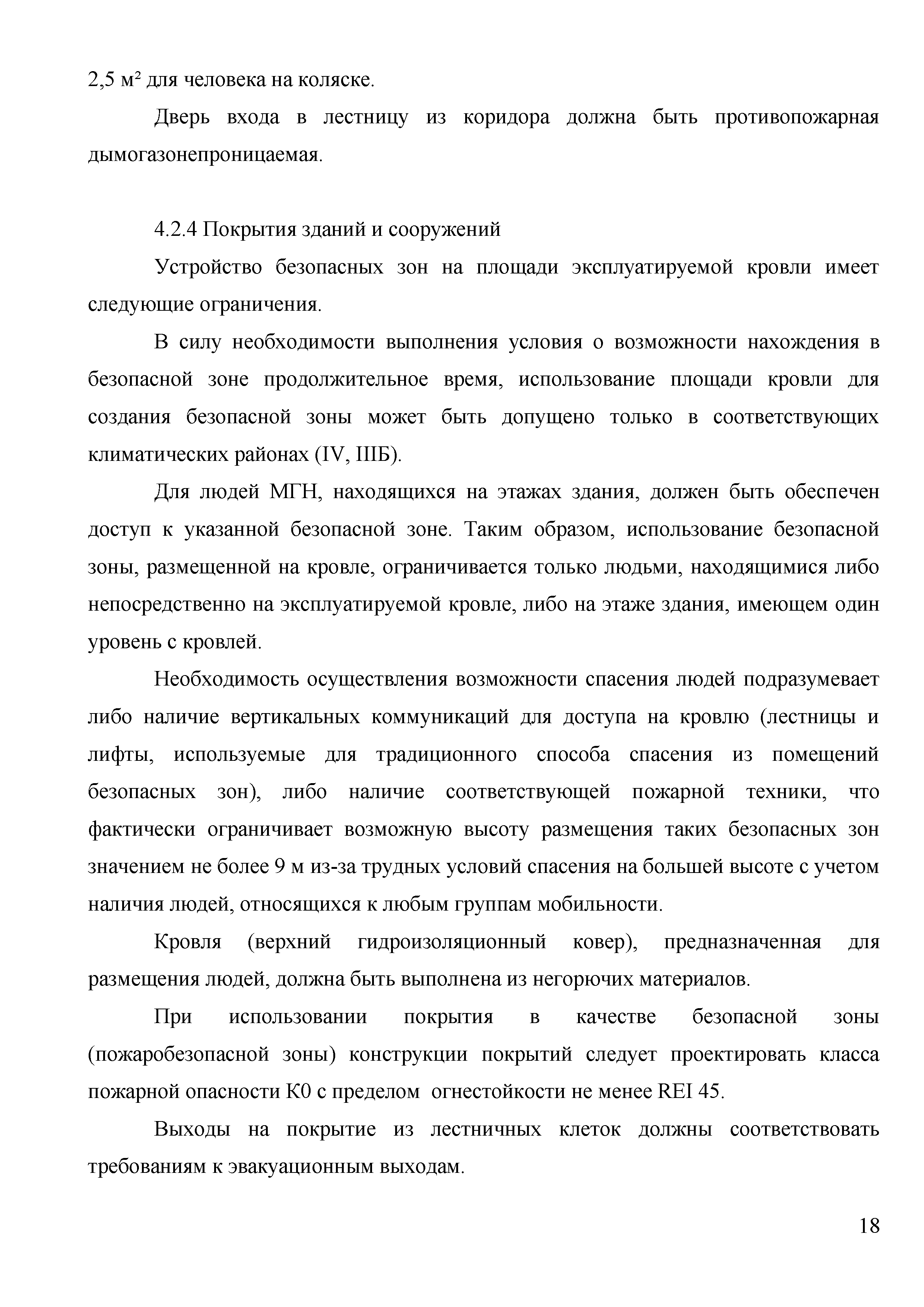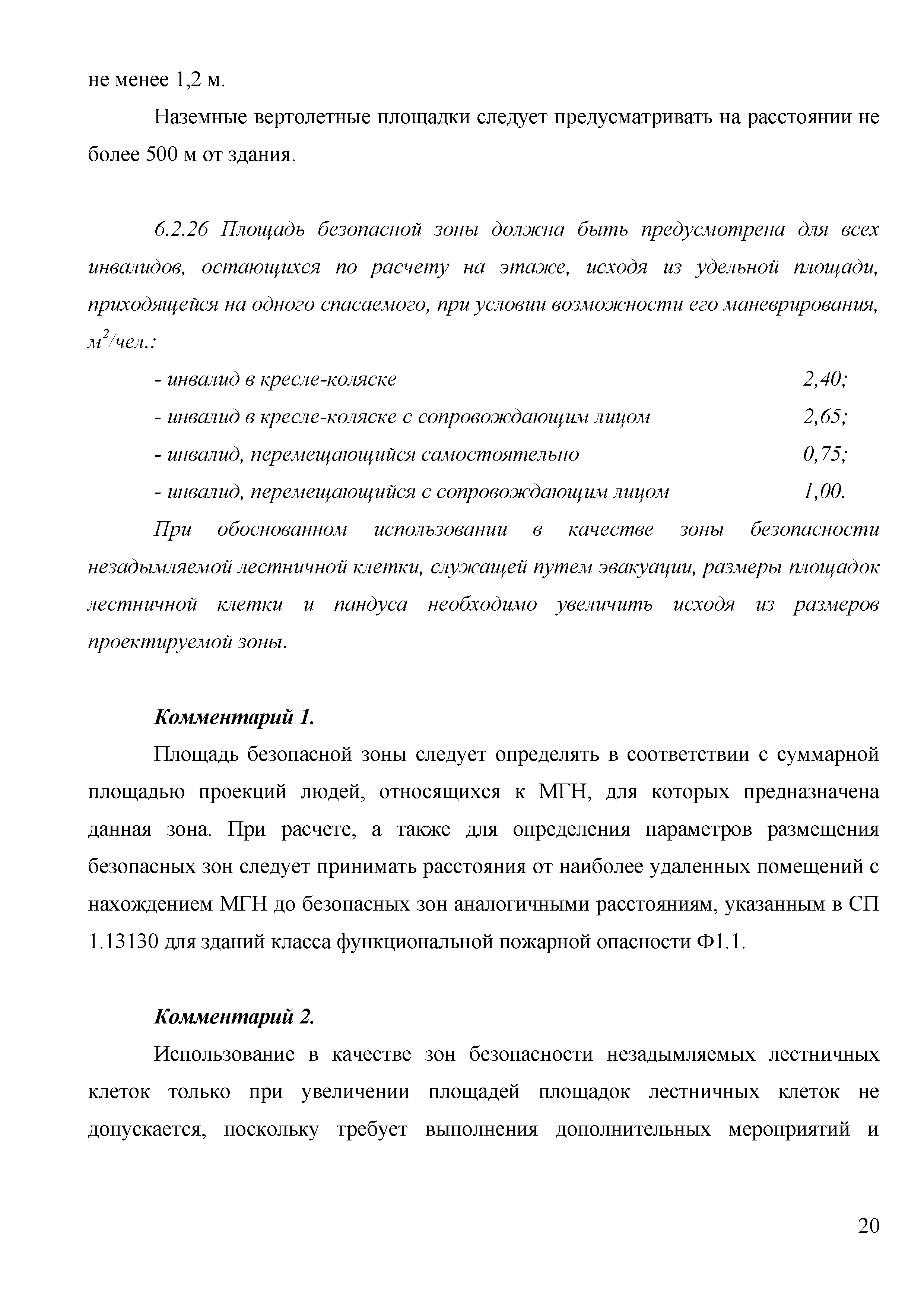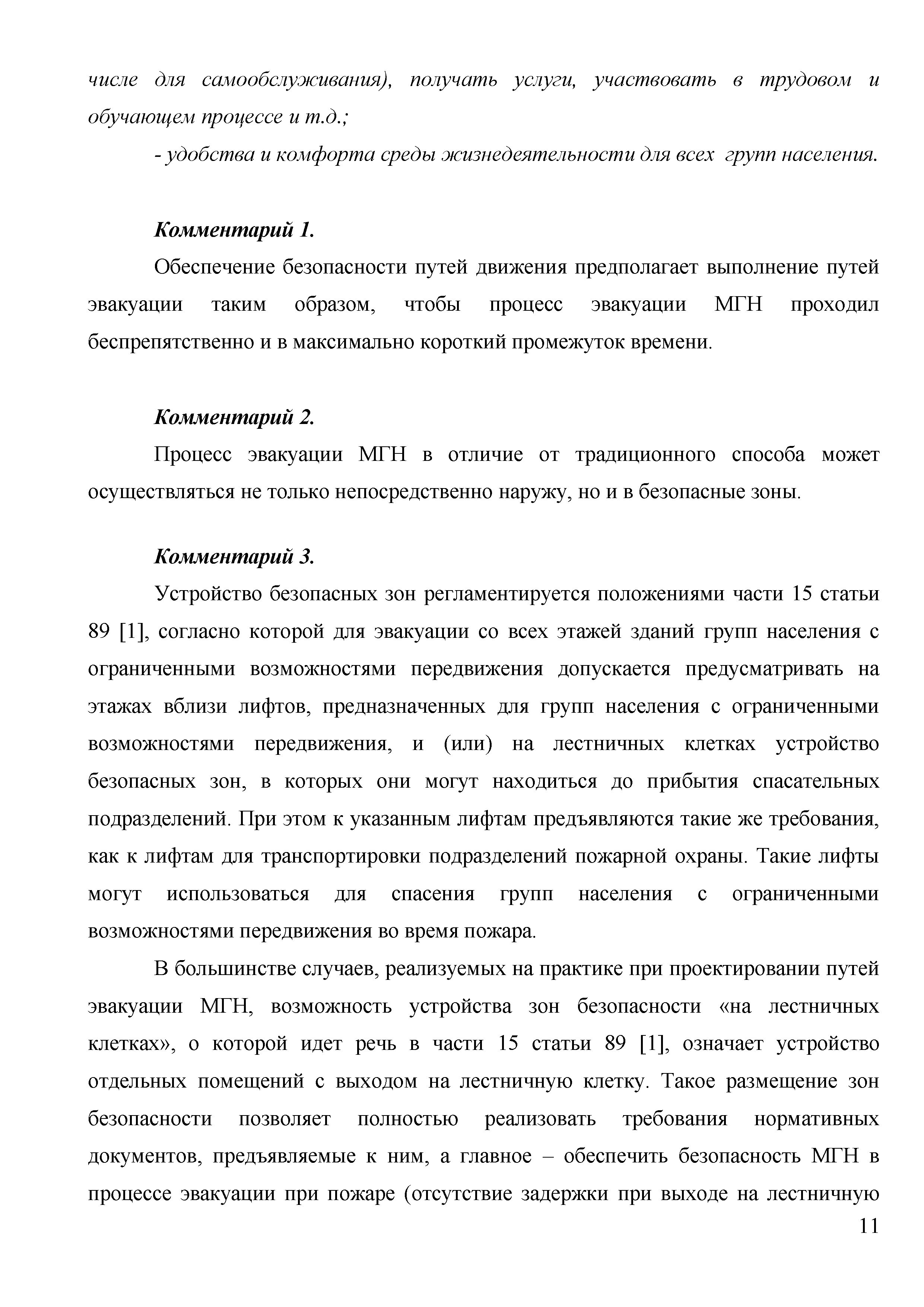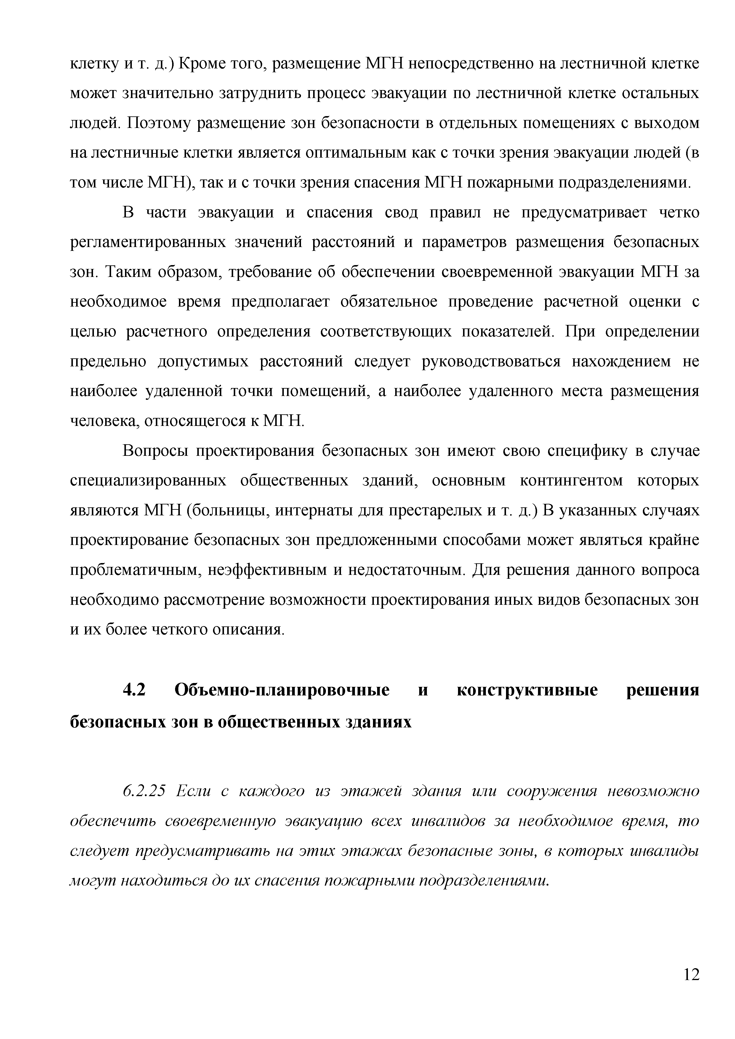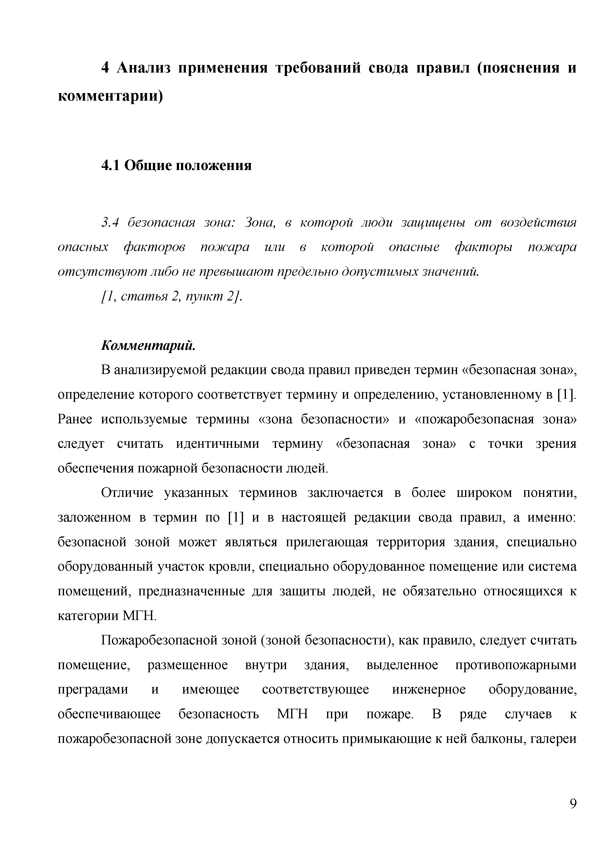 | Оглавление: | Предисловие Введение Обозначения и сокращения 1. Область применения 2. Нормативные ссылки 3. Термины и определения 4. Анализ применения требований свода правил (пояснения и комментарии) 4.1 Общие положения 4.2 Объемно-планировочные и конструктивные решения безопасных зон общественных зданиях 4.3 Инженерно-технические решения безопасных зон в общественных зданиях 4.4 Эвакуация и спасение маломобильных групп населения Приложение А. Расчет времени безопасной эвакуации маломобильных групп населения Приложение Б. Расчет времени спасения маломобильных групп населения Приложение В. Рекомендации по определению расчетной численности людей с ограниченными возможностями Библиография |