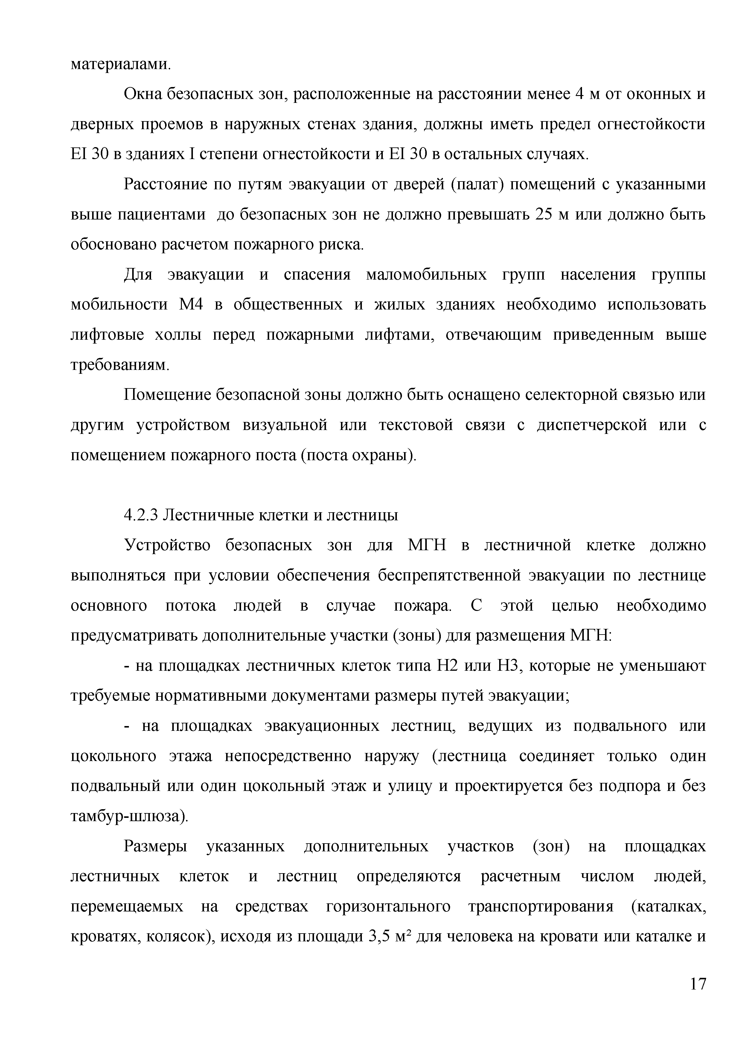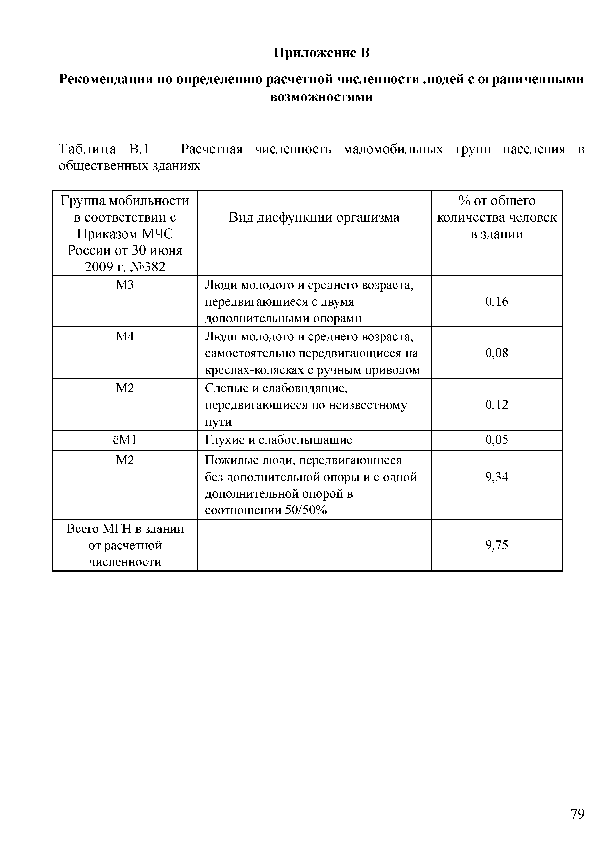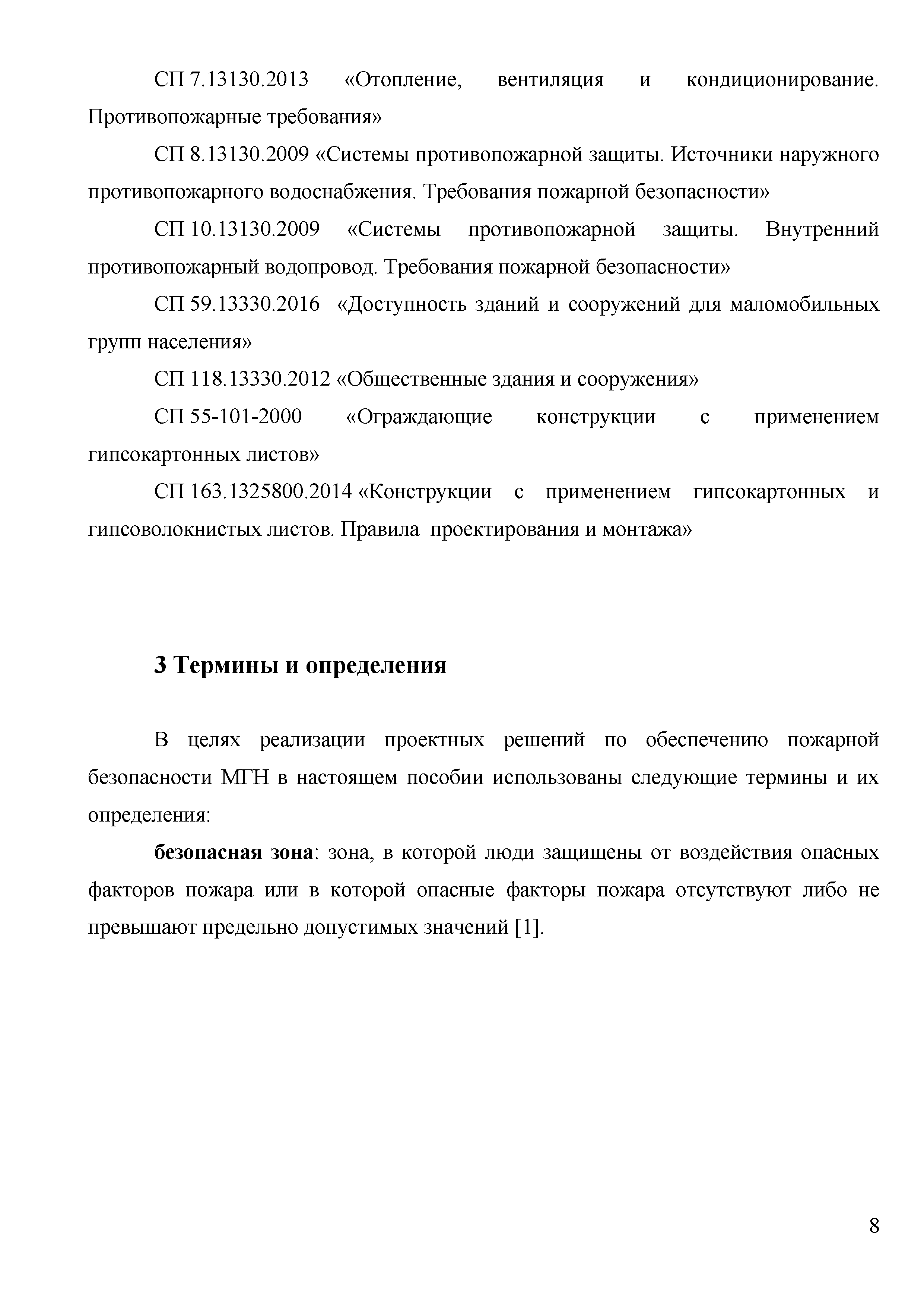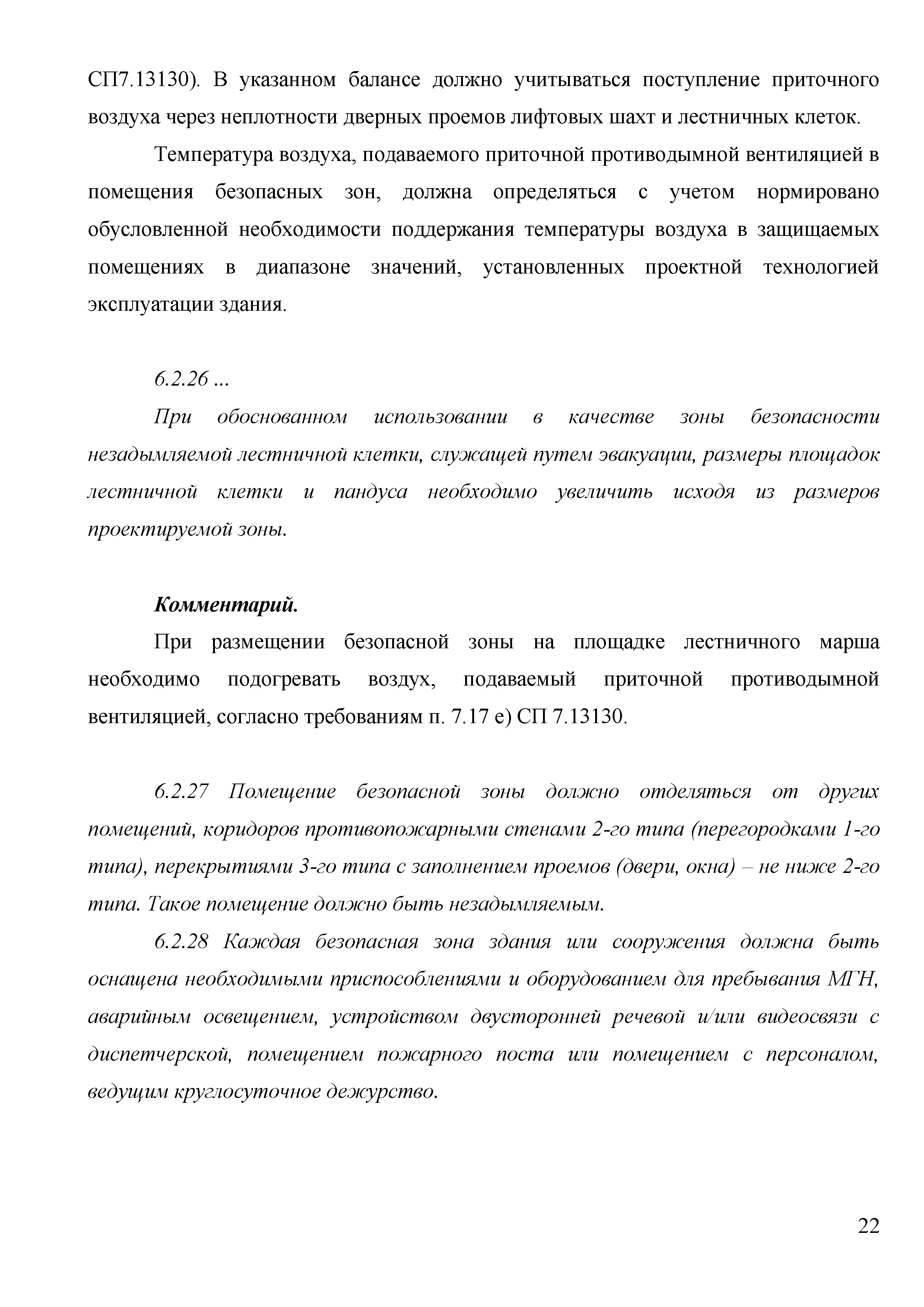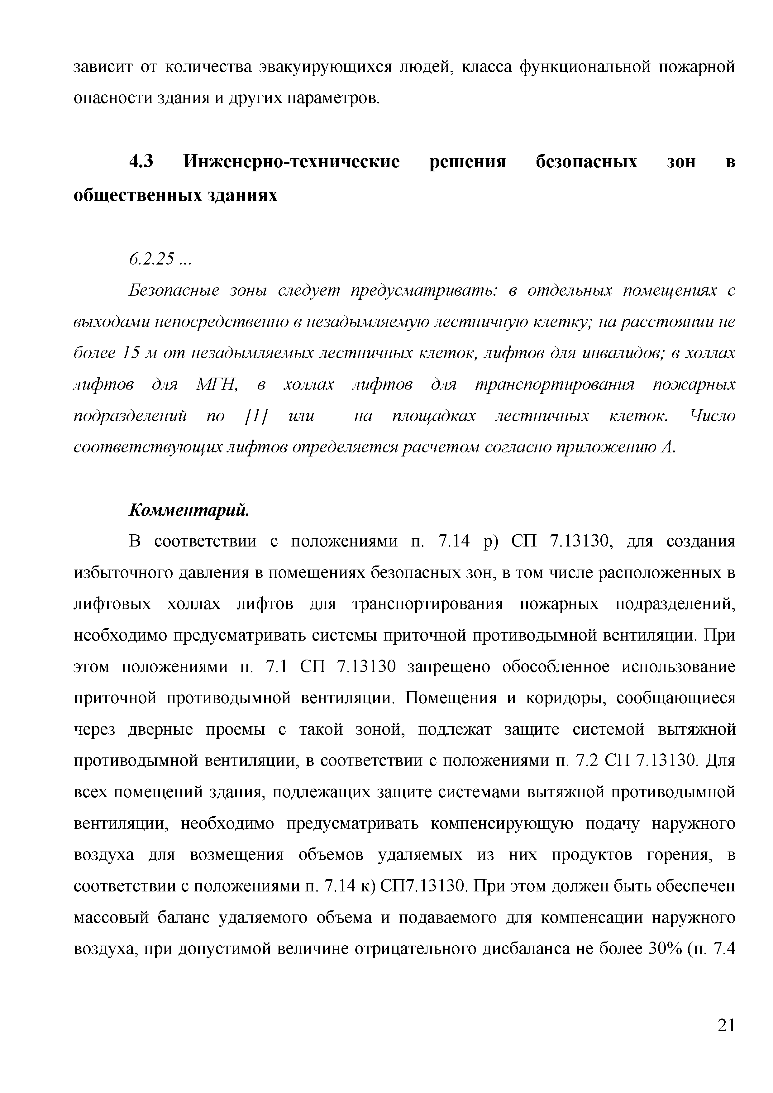 | Оглавление: | Предисловие Введение Обозначения и сокращения 1. Область применения 2. Нормативные ссылки 3. Термины и определения 4. Анализ применения требований свода правил (пояснения и комментарии) 4.1 Общие положения 4.2 Объемно-планировочные и конструктивные решения безопасных зон общественных зданиях 4.3 Инженерно-технические решения безопасных зон в общественных зданиях 4.4 Эвакуация и спасение маломобильных групп населения Приложение А. Расчет времени безопасной эвакуации маломобильных групп населения Приложение Б. Расчет времени спасения маломобильных групп населения Приложение В. Рекомендации по определению расчетной численности людей с ограниченными возможностями Библиография |