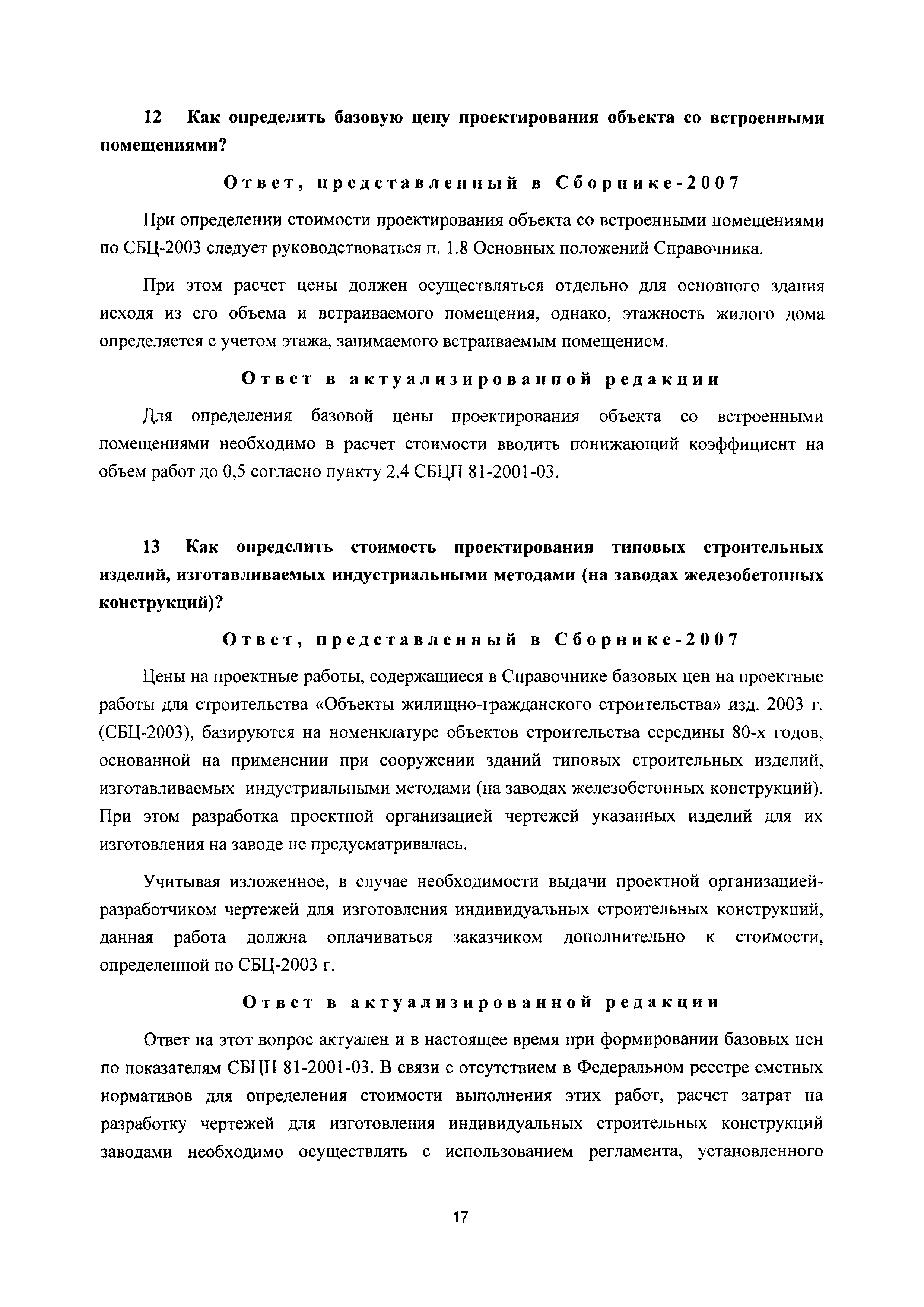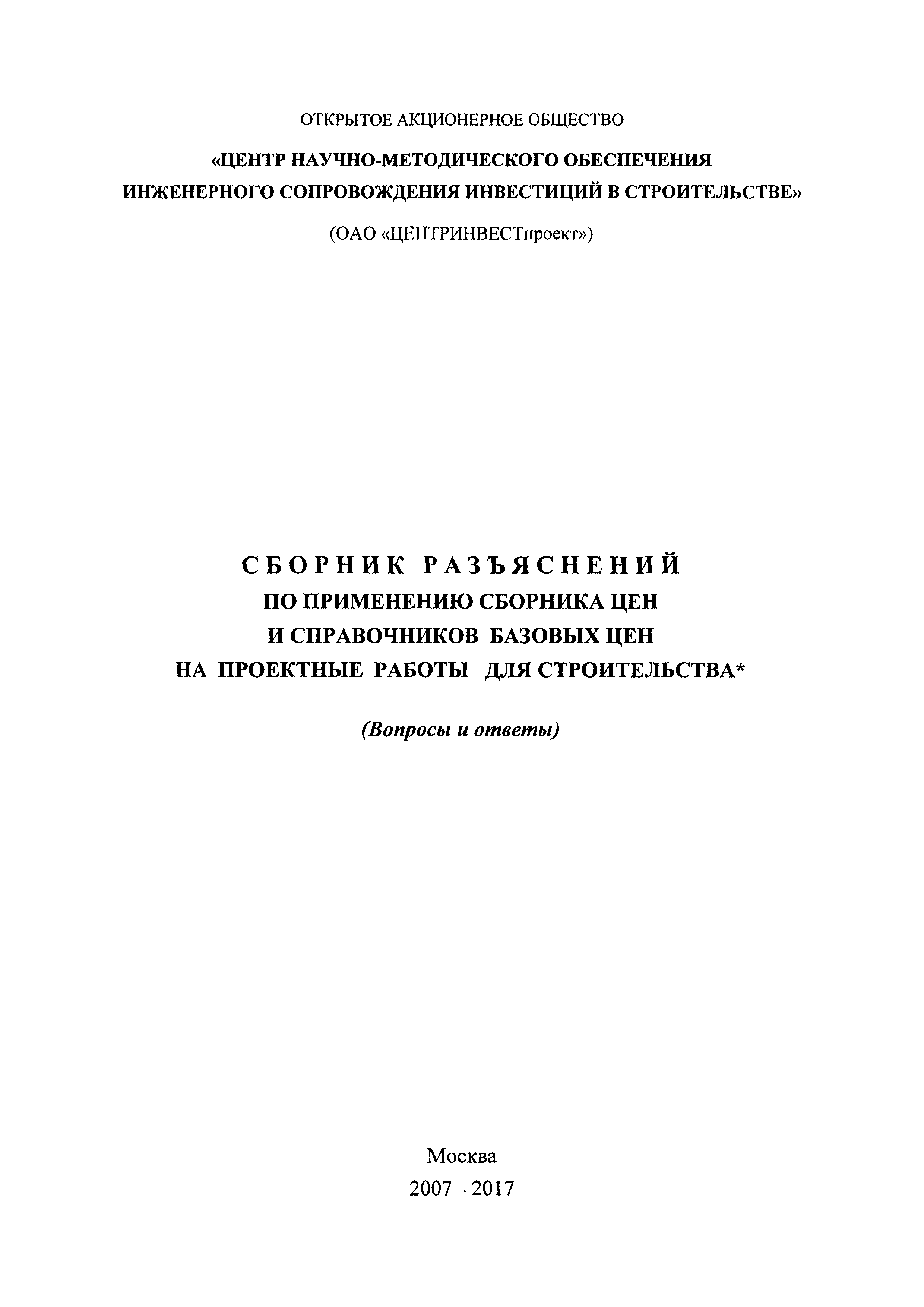 Скачать Сборник разъяснений по применению Сборника цен и Справочников базовых цен на проектные работы для строительства*. (Вопросы и ответы) 2007 - 2017Дата актуализации: 01.01.2021