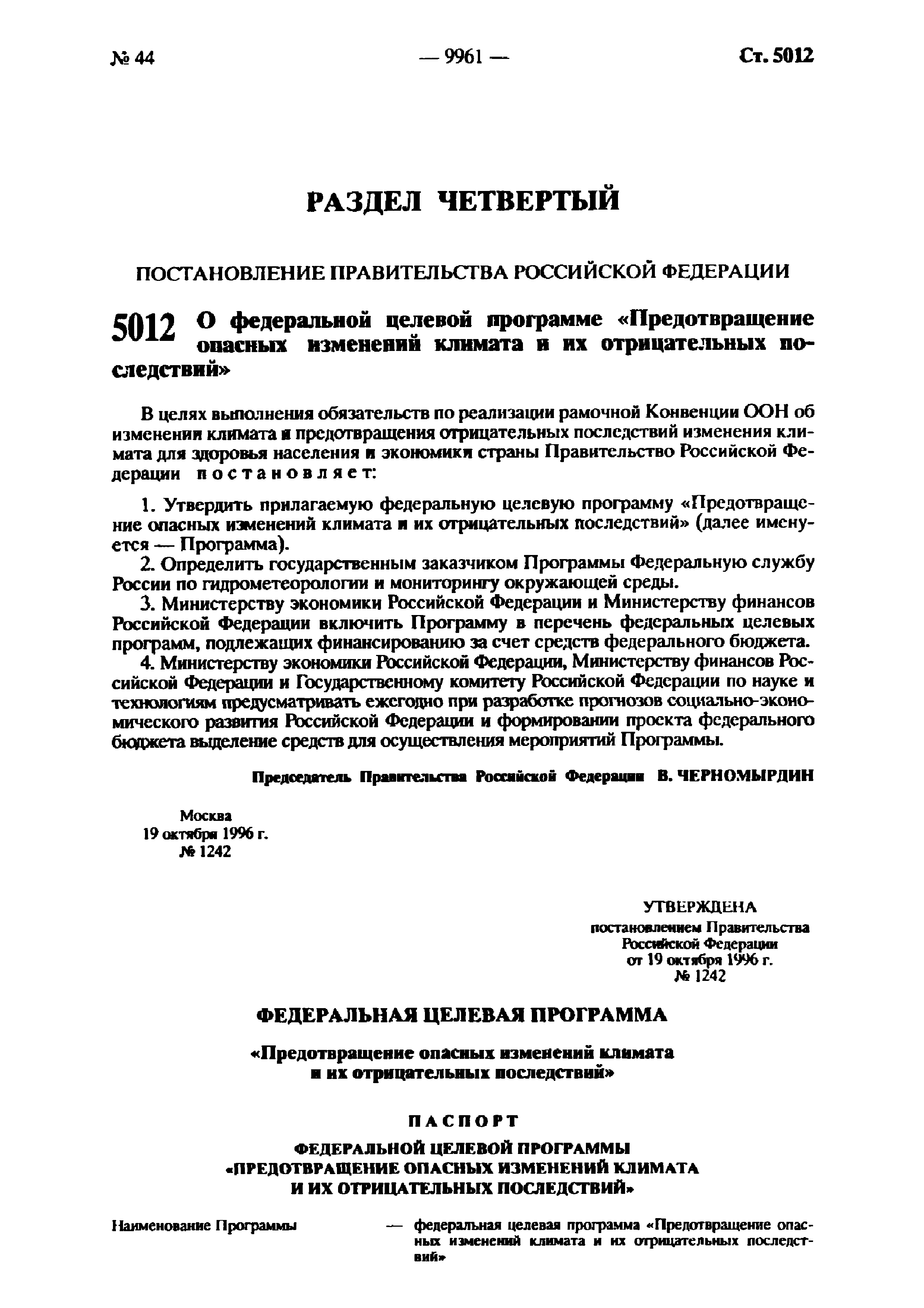 | Утверждён: | 19.10.1996 Правительство Российской Федерации (1242) |